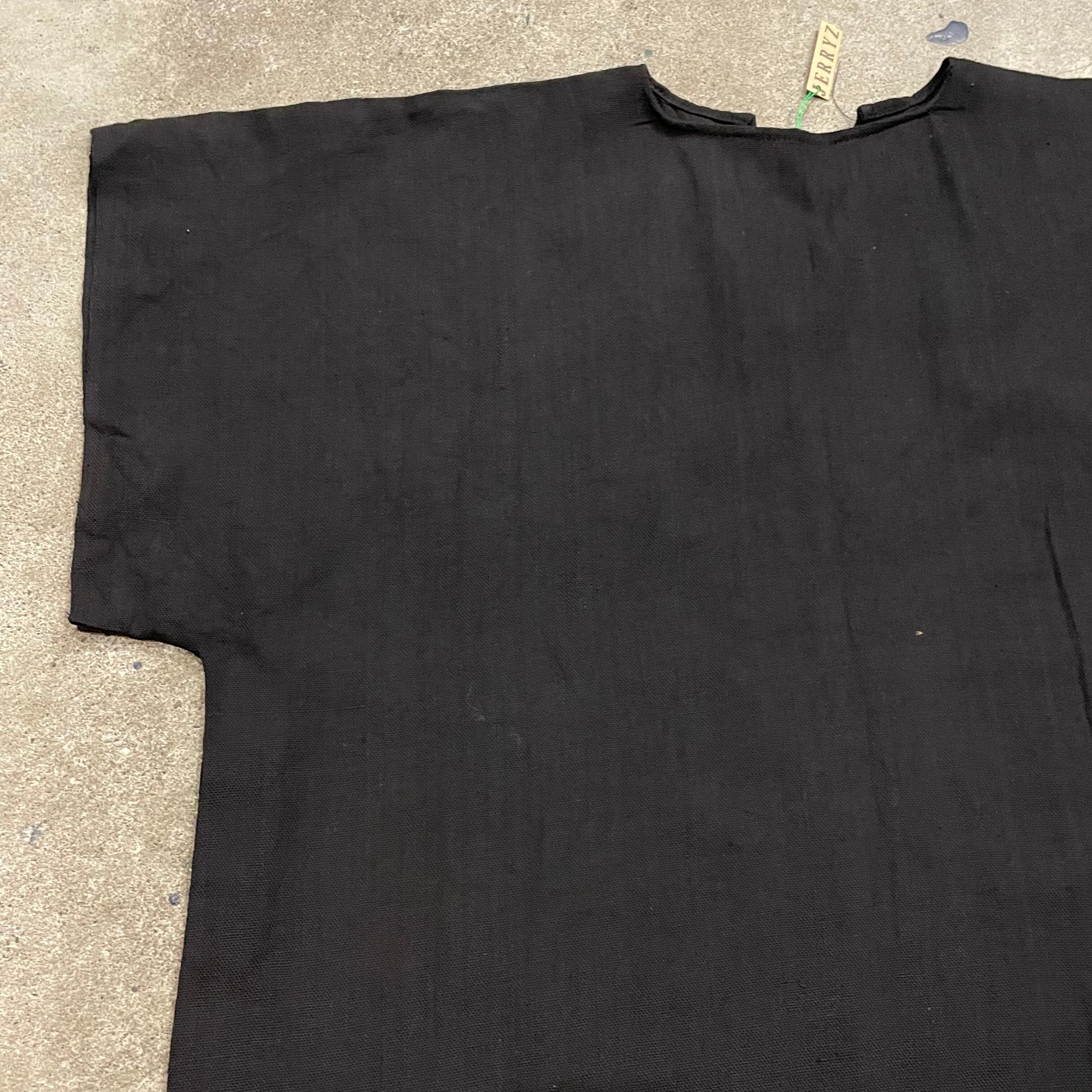 クロスステッチで幾何学模様のような長い三列が施してあり、とてもインパクトのある一着です。夏は一枚で、秋冬は中にロンTやパーカー、薄手のニットなどを重ねてお楽しみ頂けます。