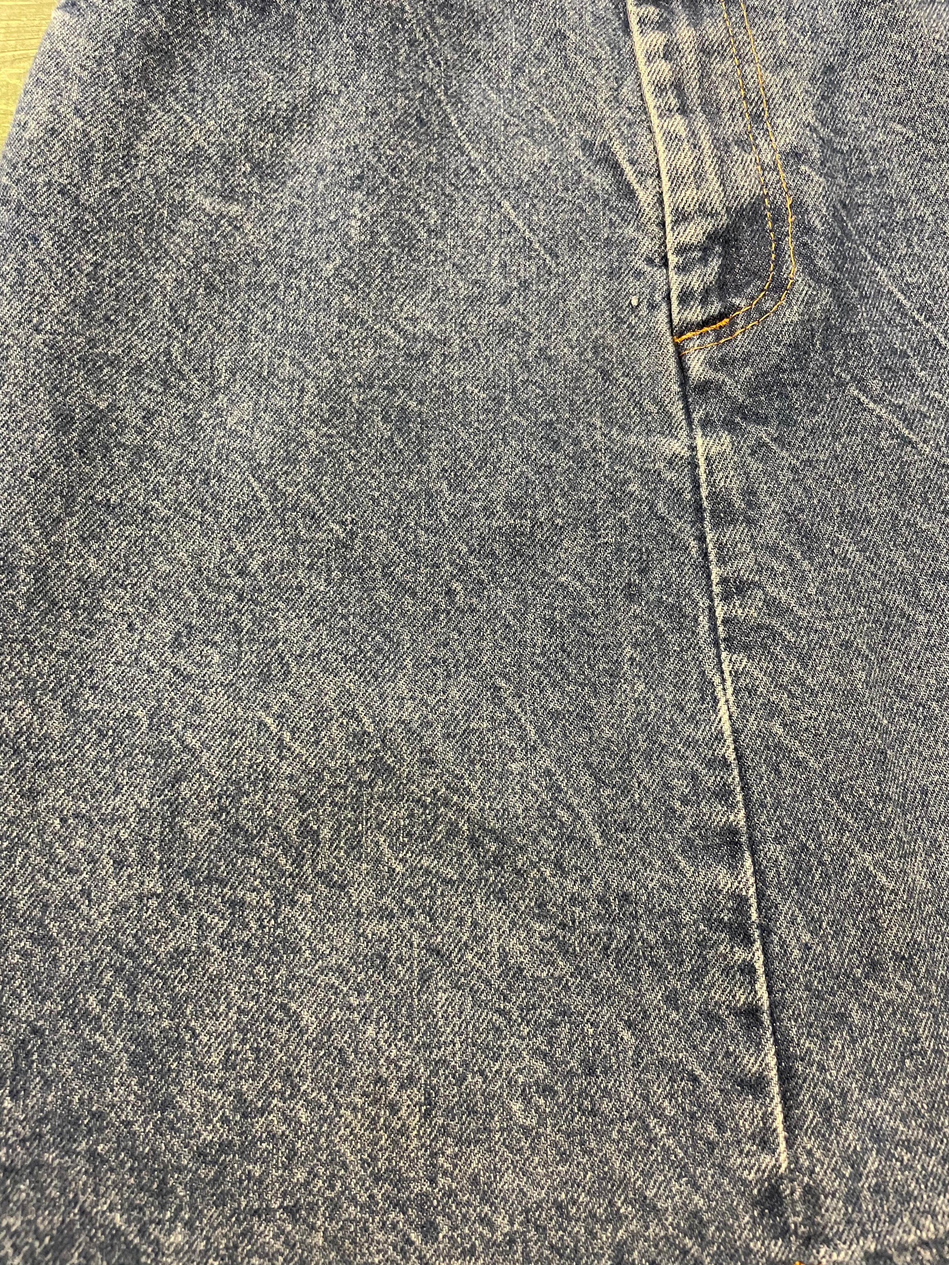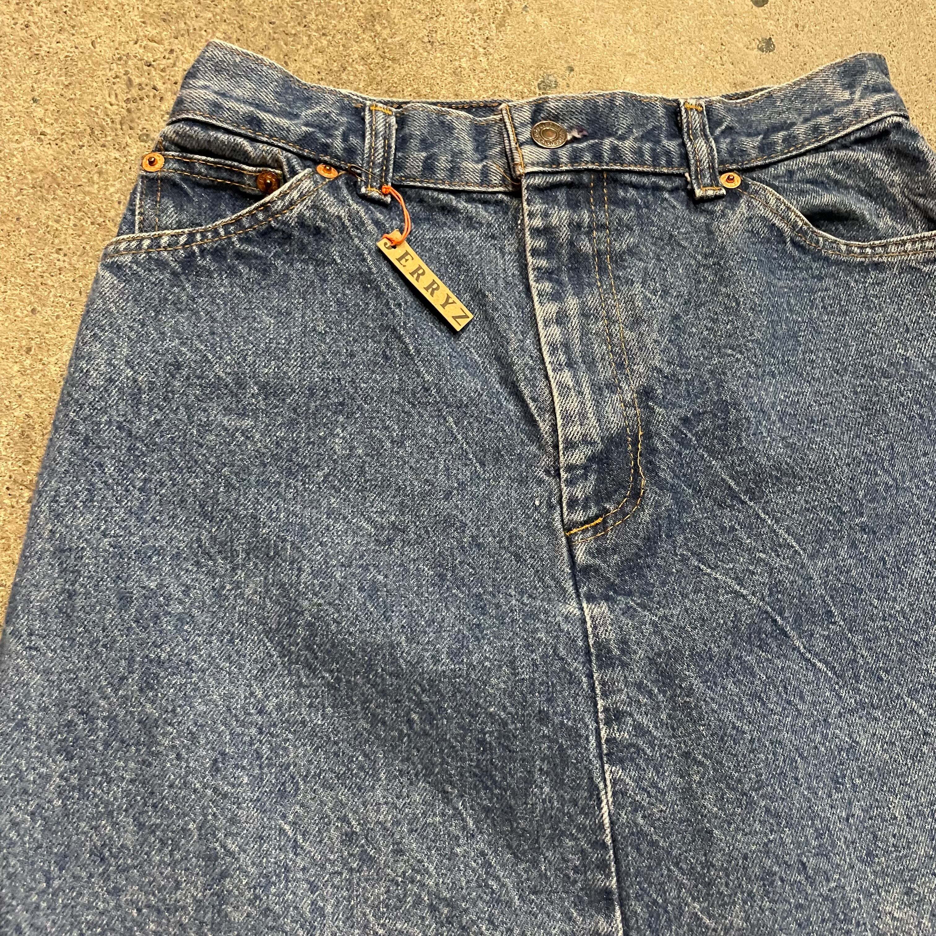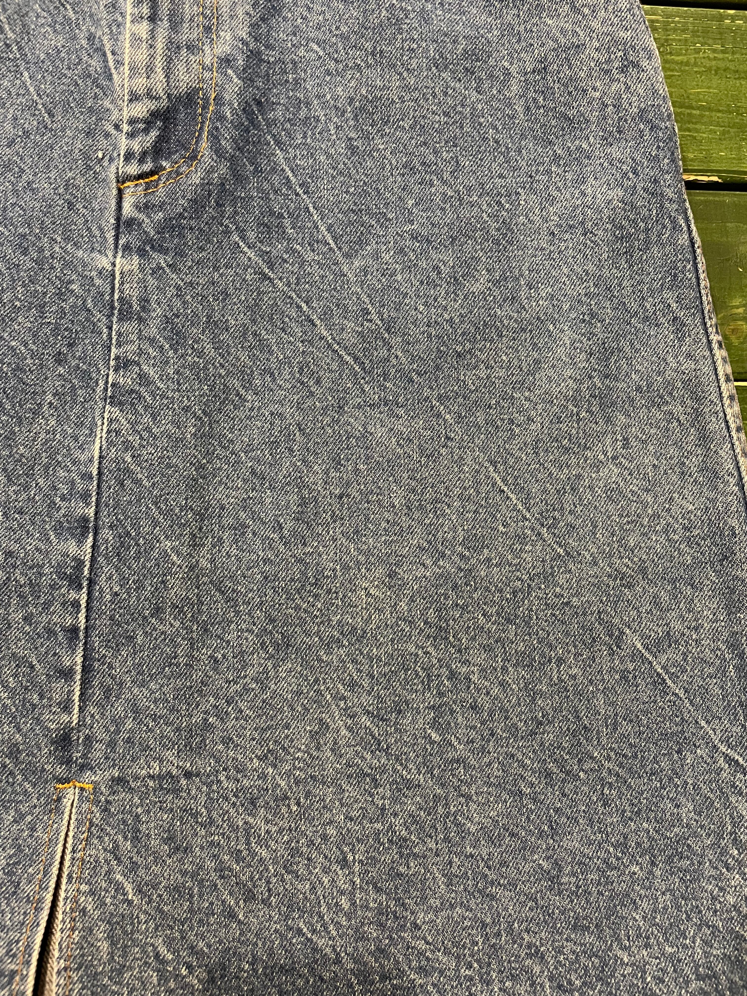 膝下丈の前中心にスリットがあるタイプで、程良い丈感と色落ちかと思います。