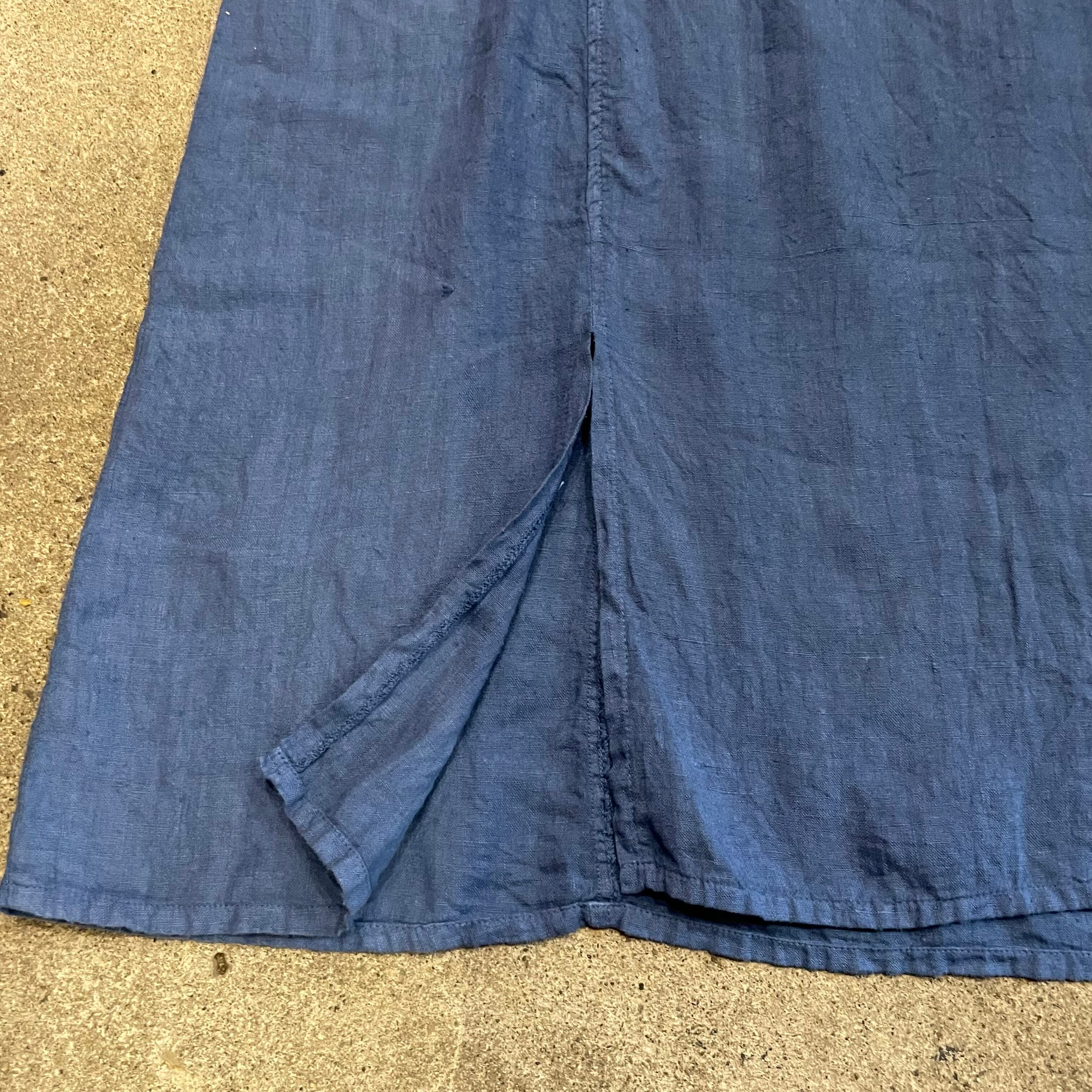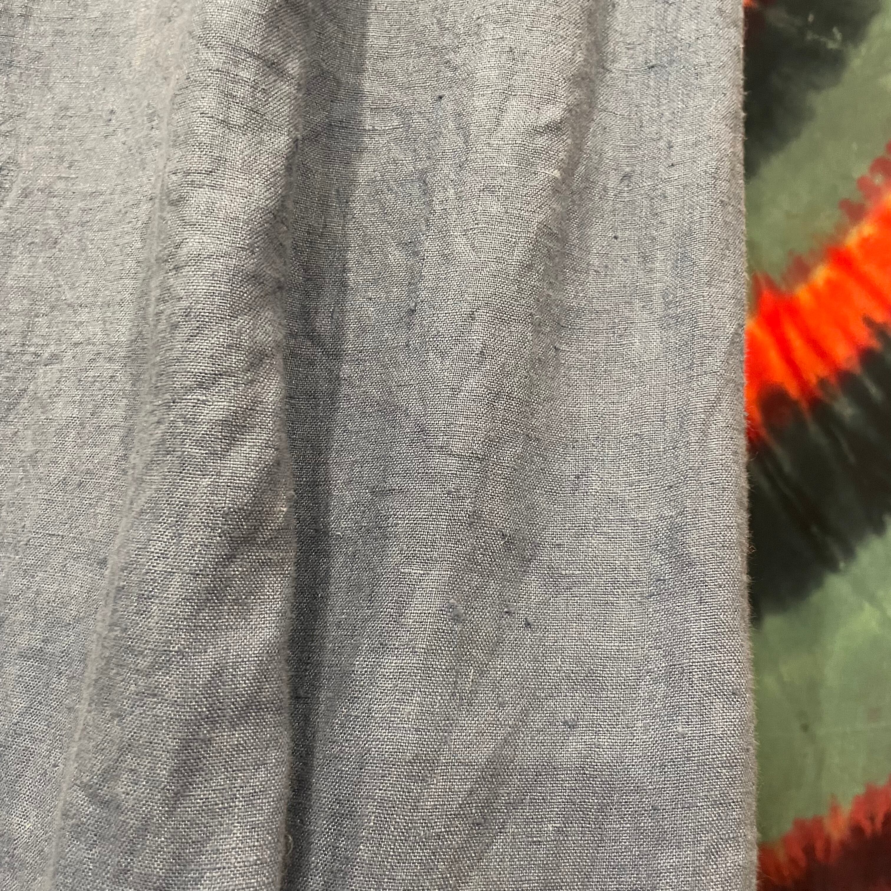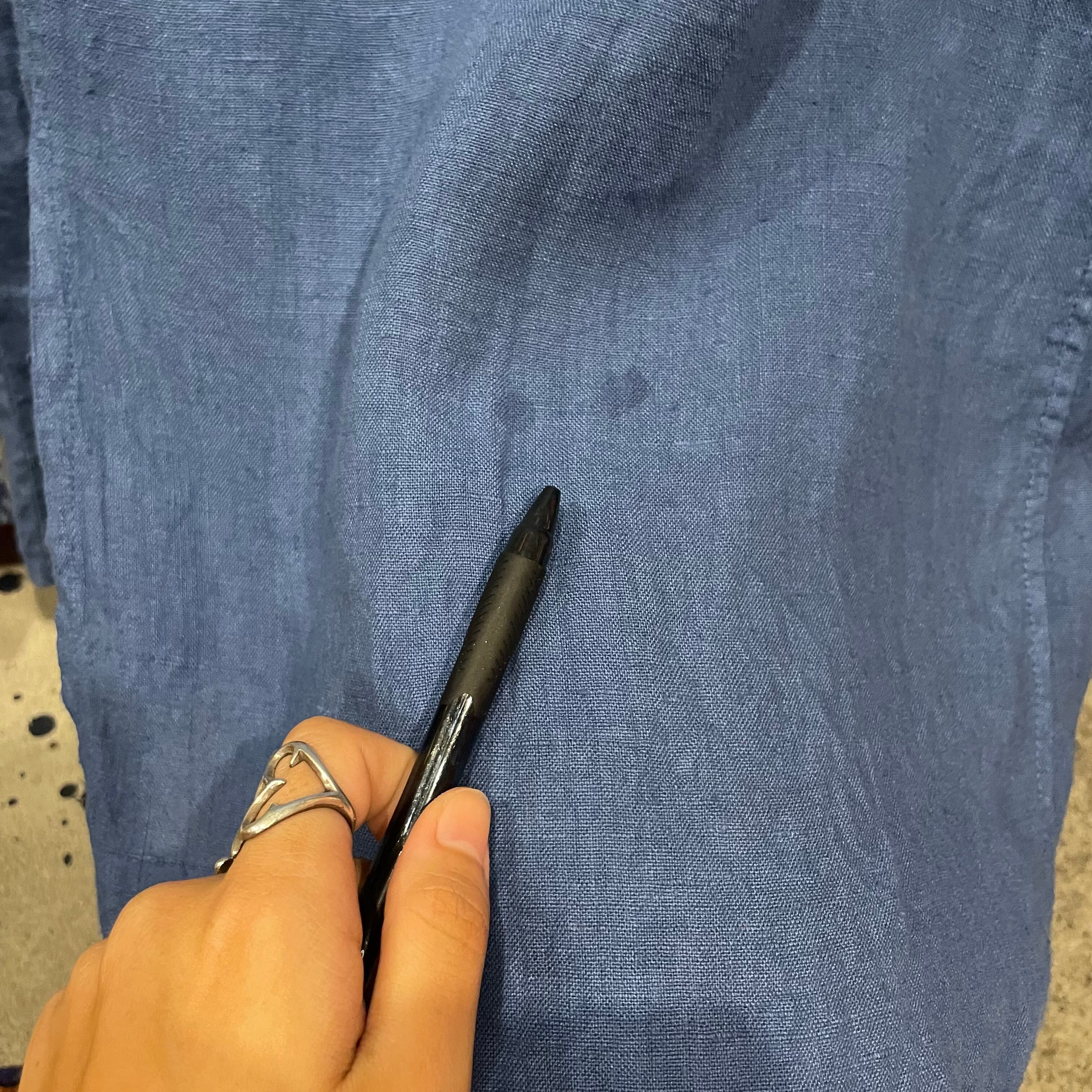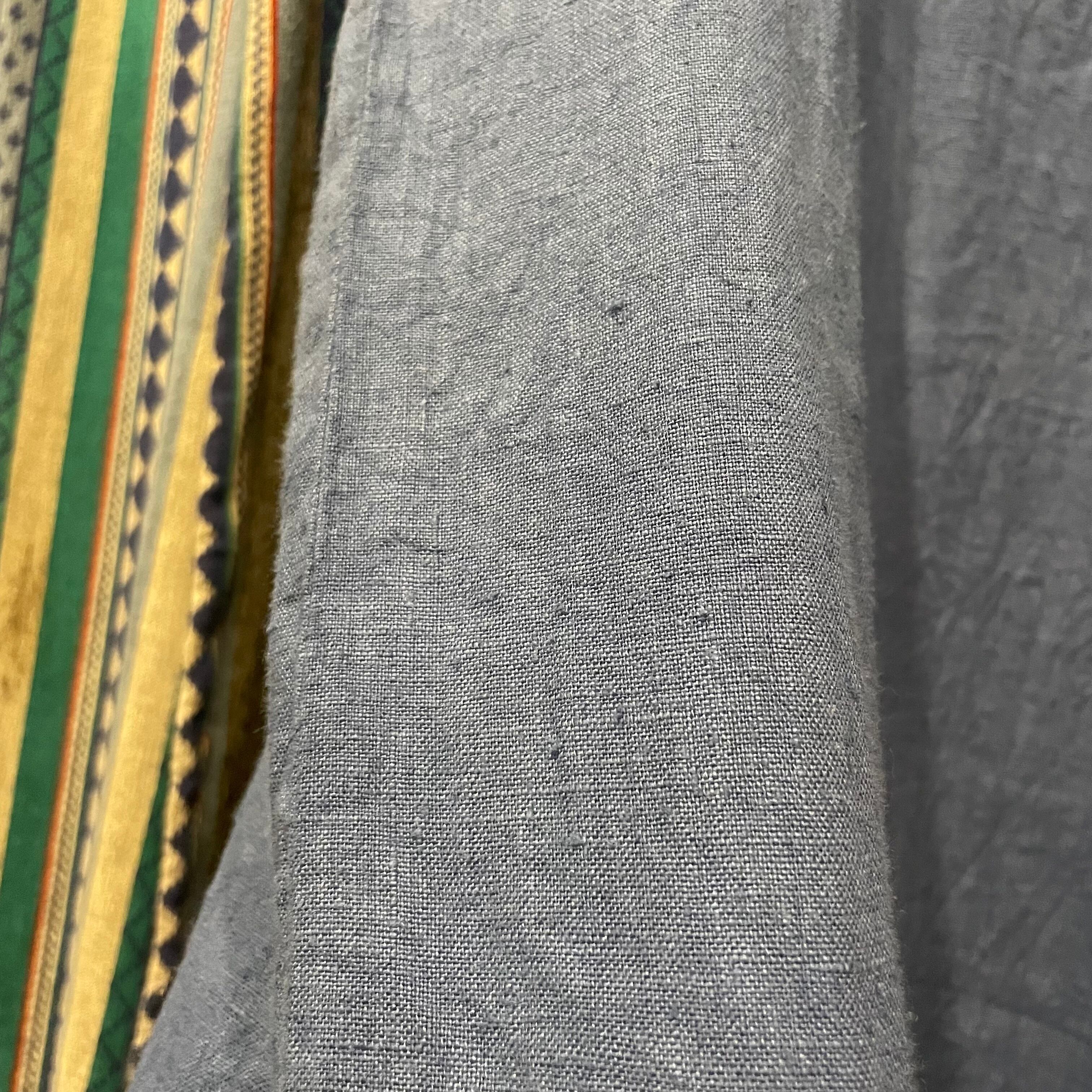 前裾付近にシミ、後ろ襟ぐりに紫っぽい糸、リネン特有のつぶつぶした箇所等ございます。