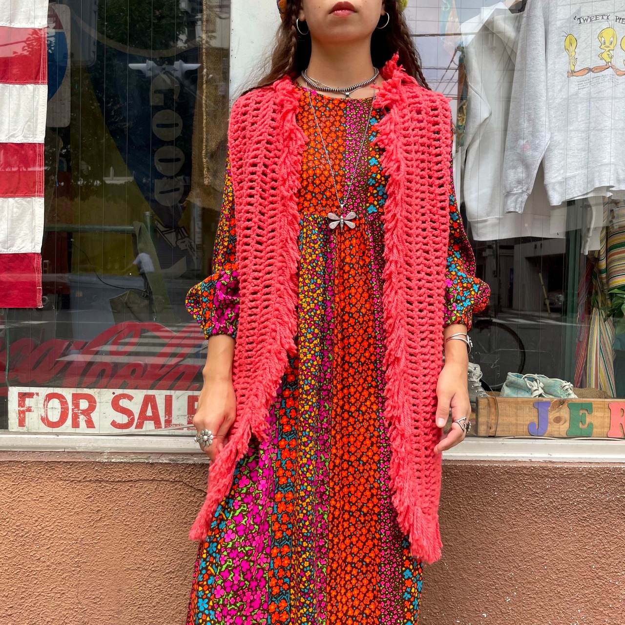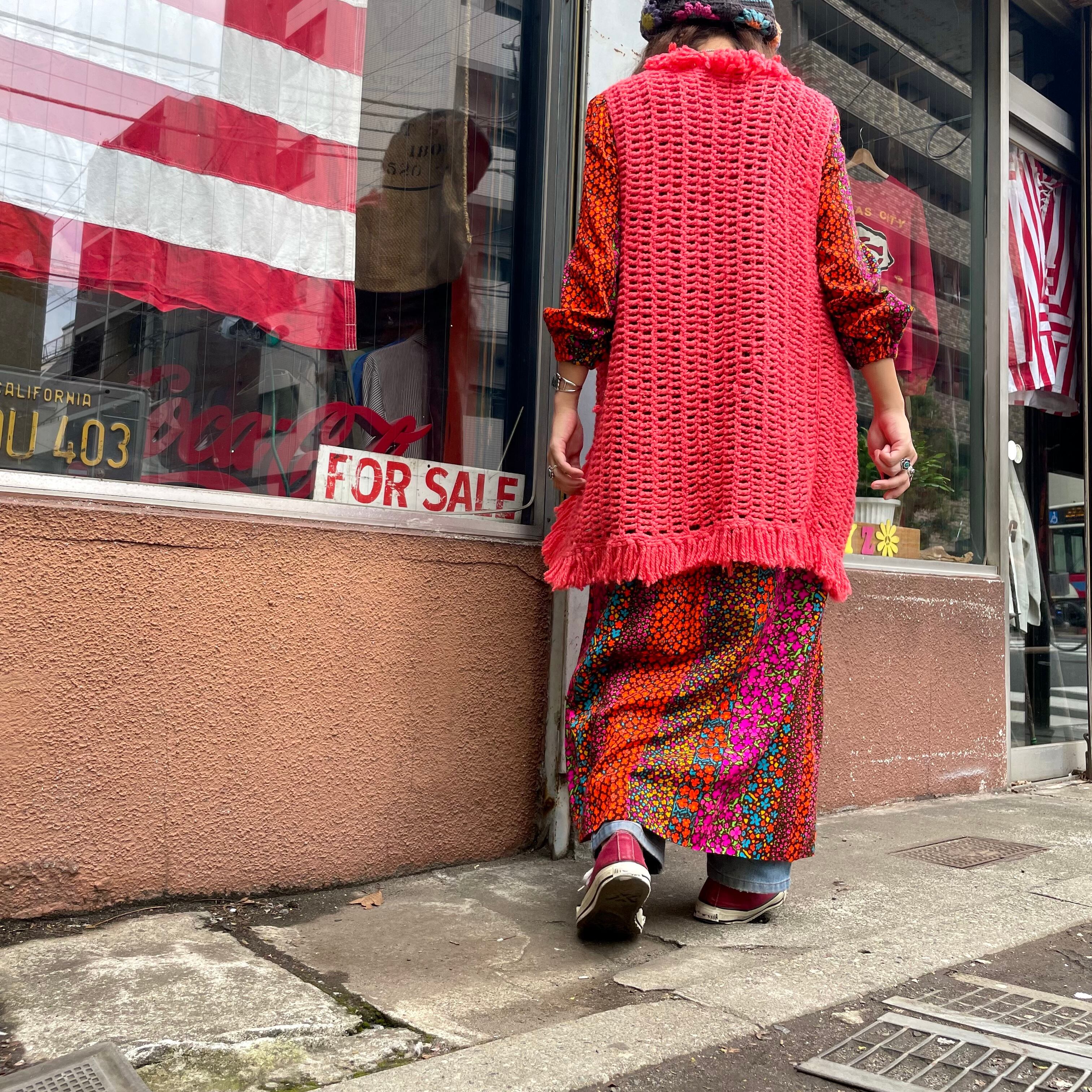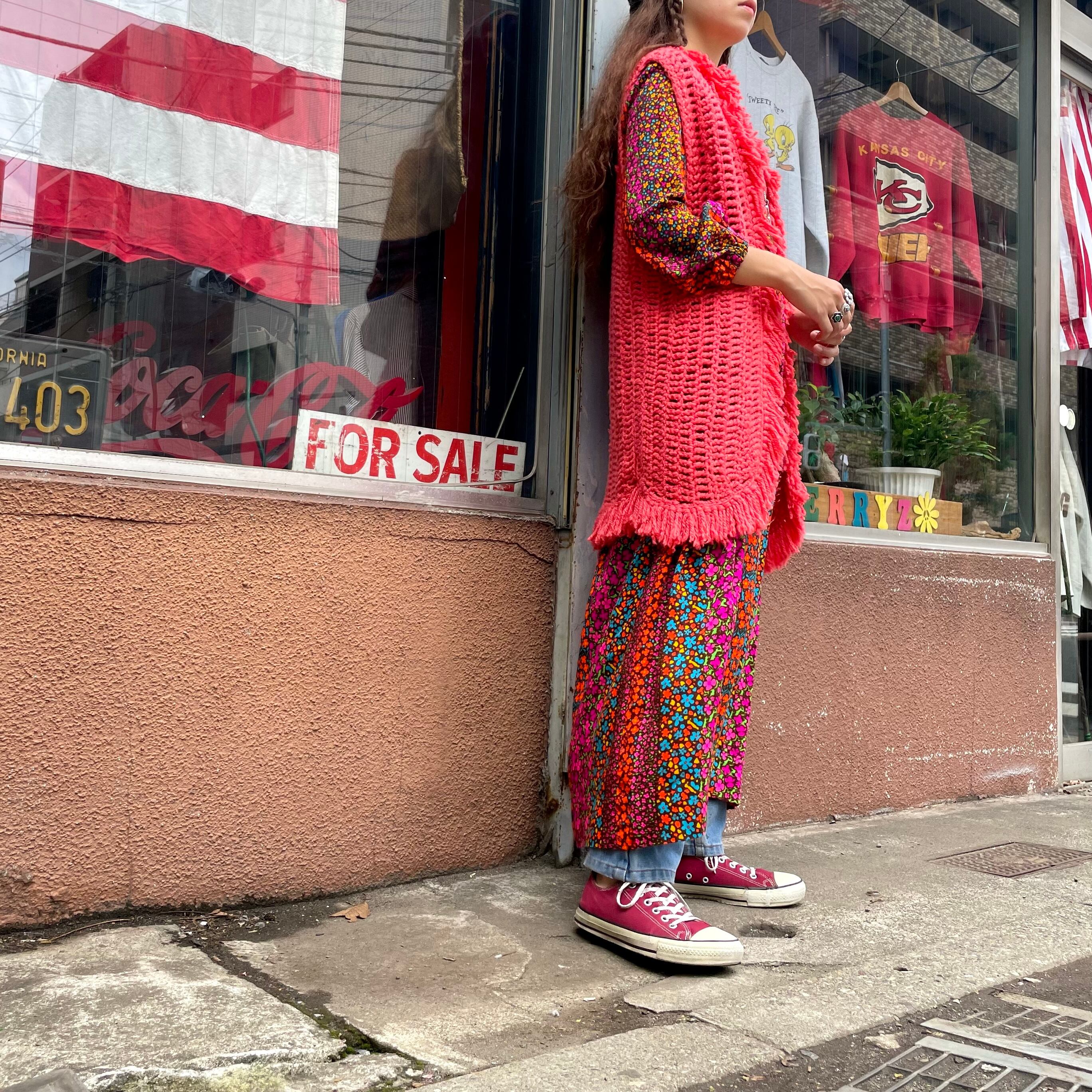 スケスケな編み地にたっぷりのフリンジ、長めの丈感が良いですね!