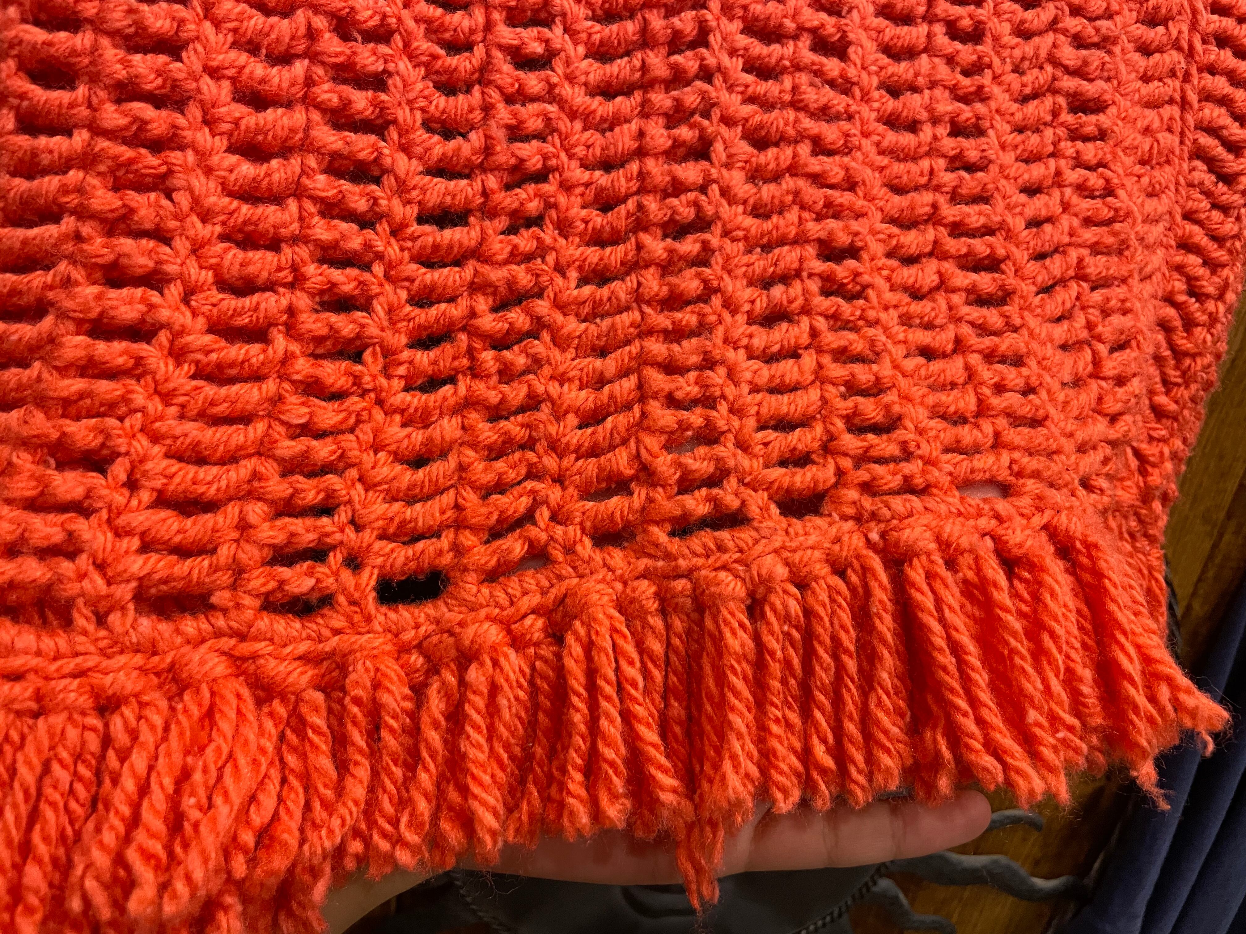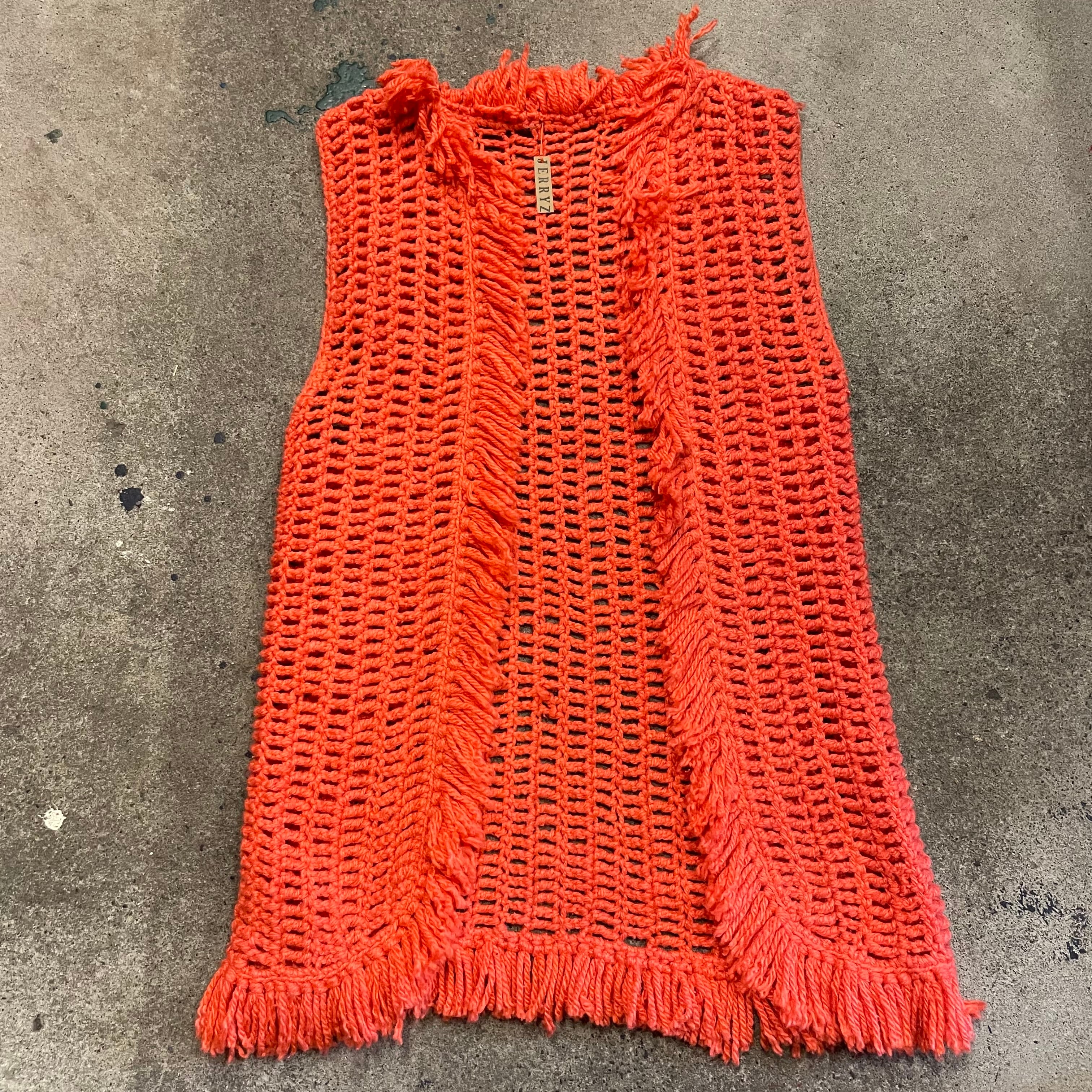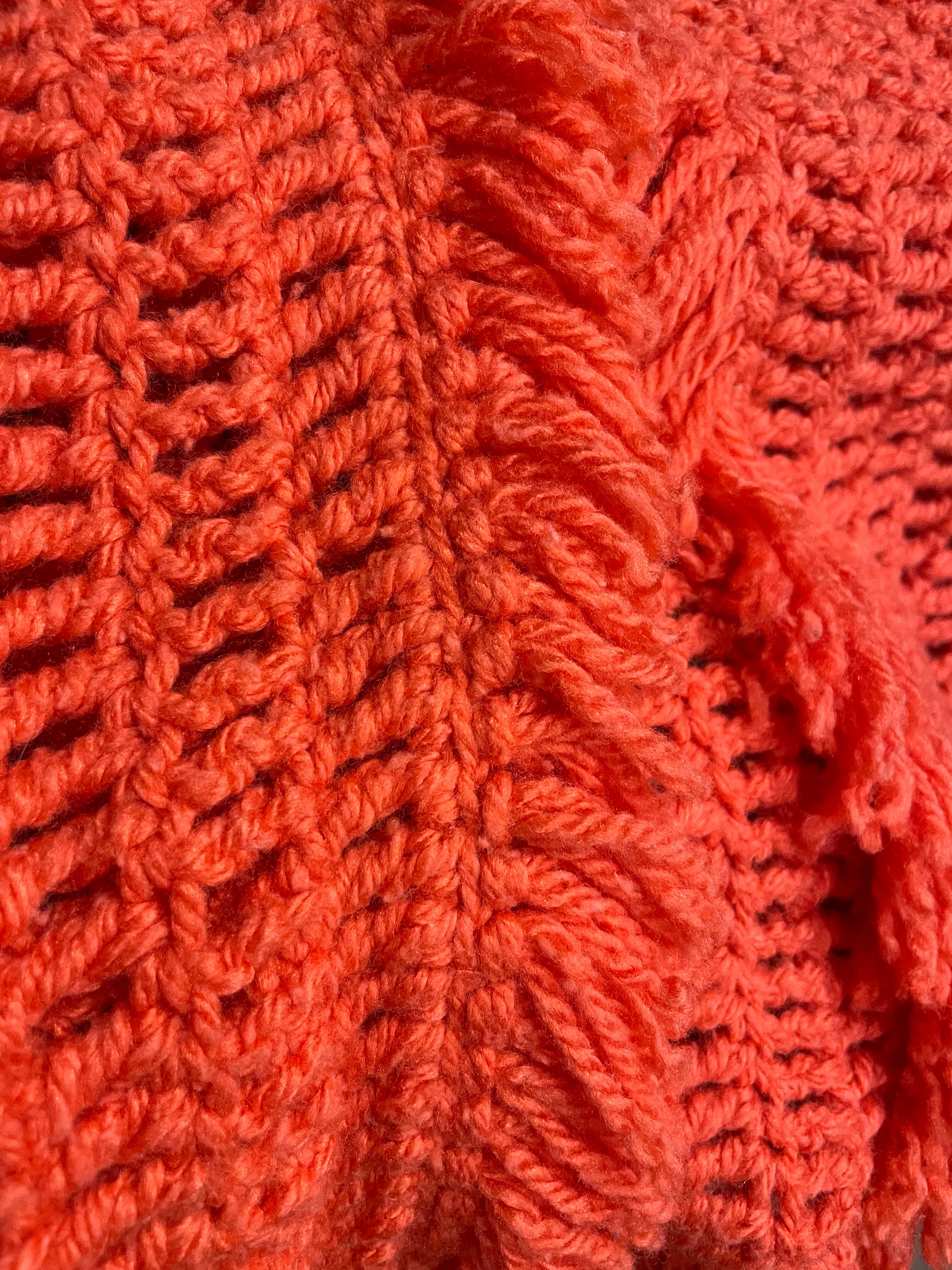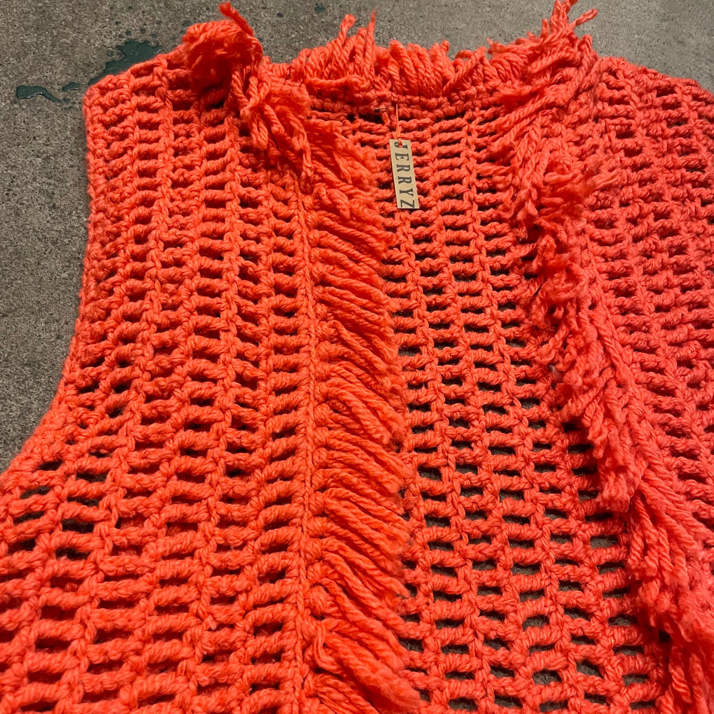 スケスケな編み地にたっぷりのフリンジ、長めの丈感が良いですね!