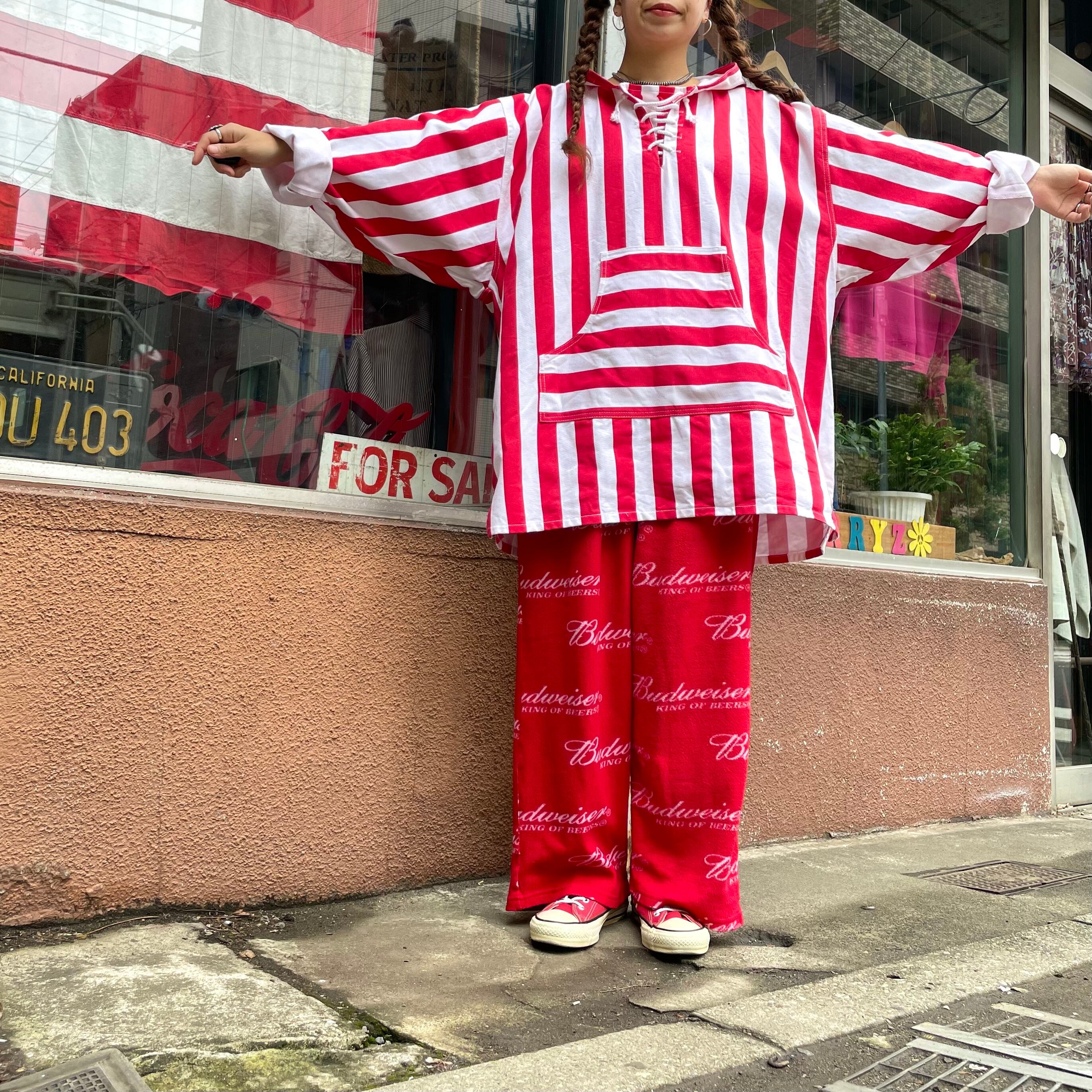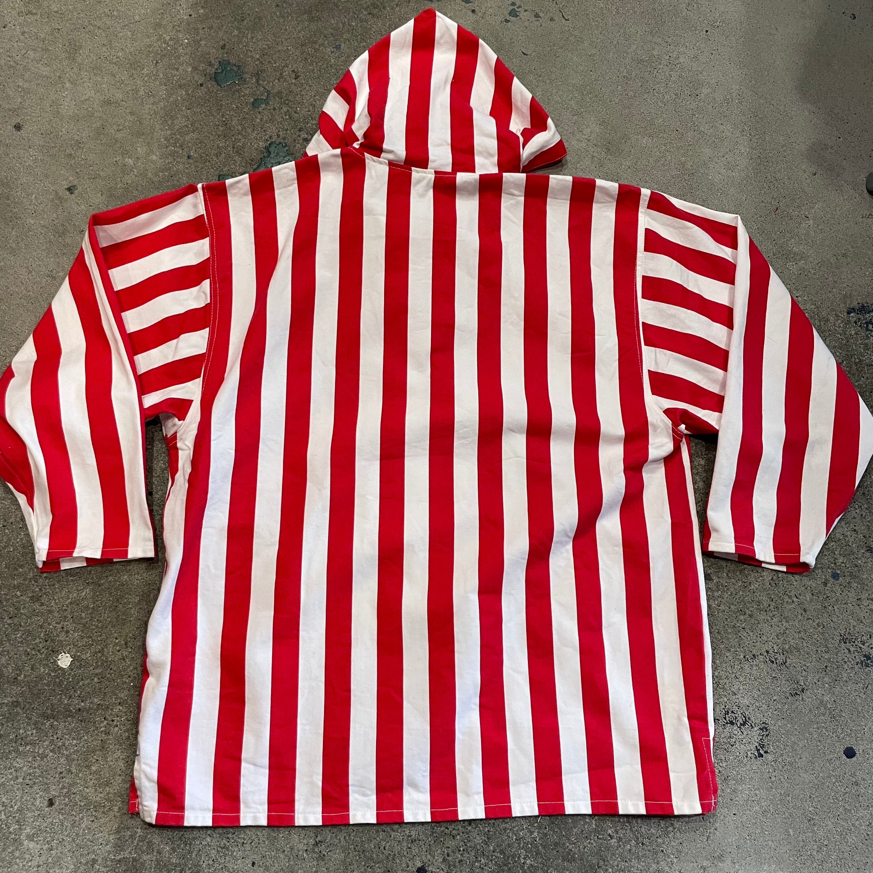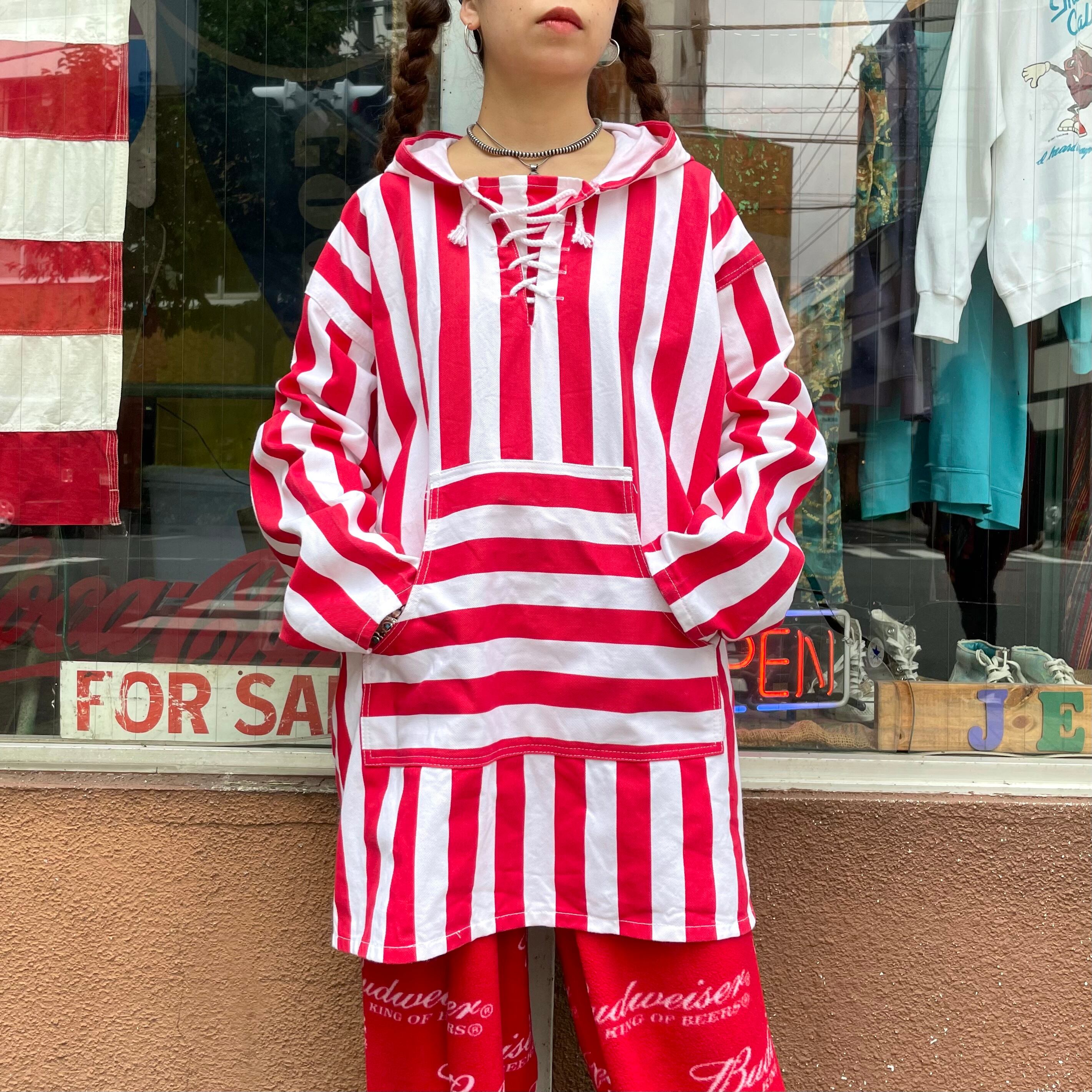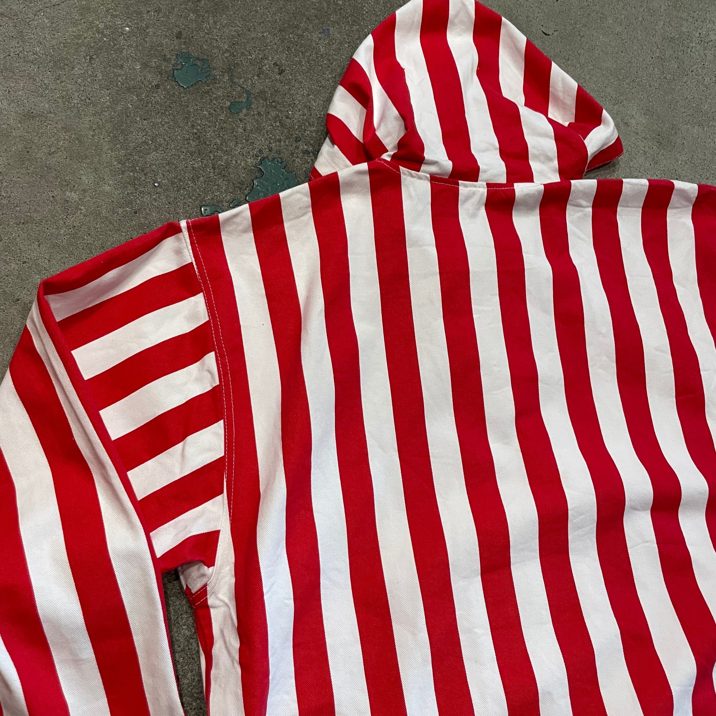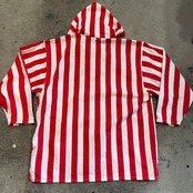 赤白ストライプがとてもハッピーでかわいいコットン素材のパーカーです。