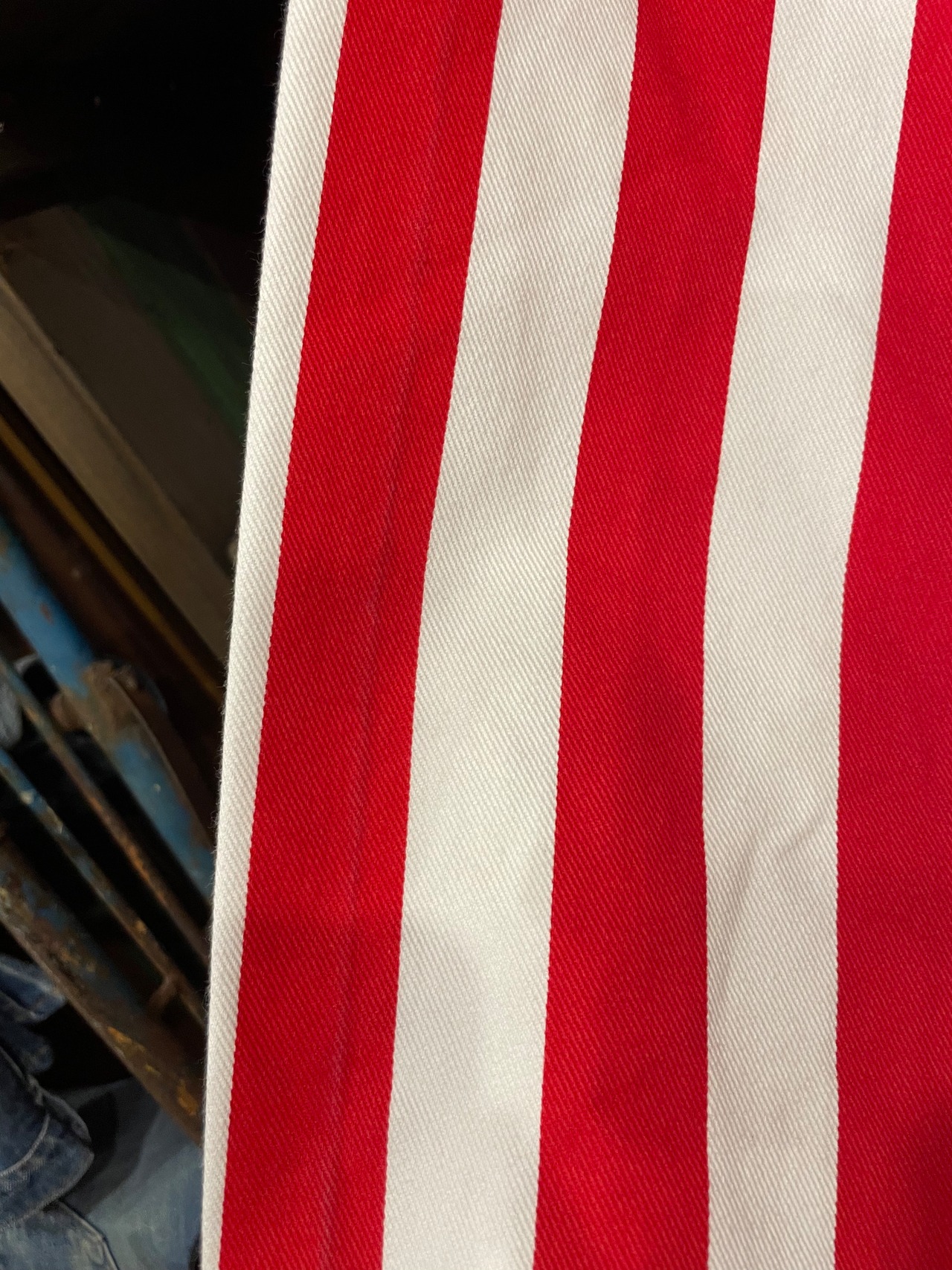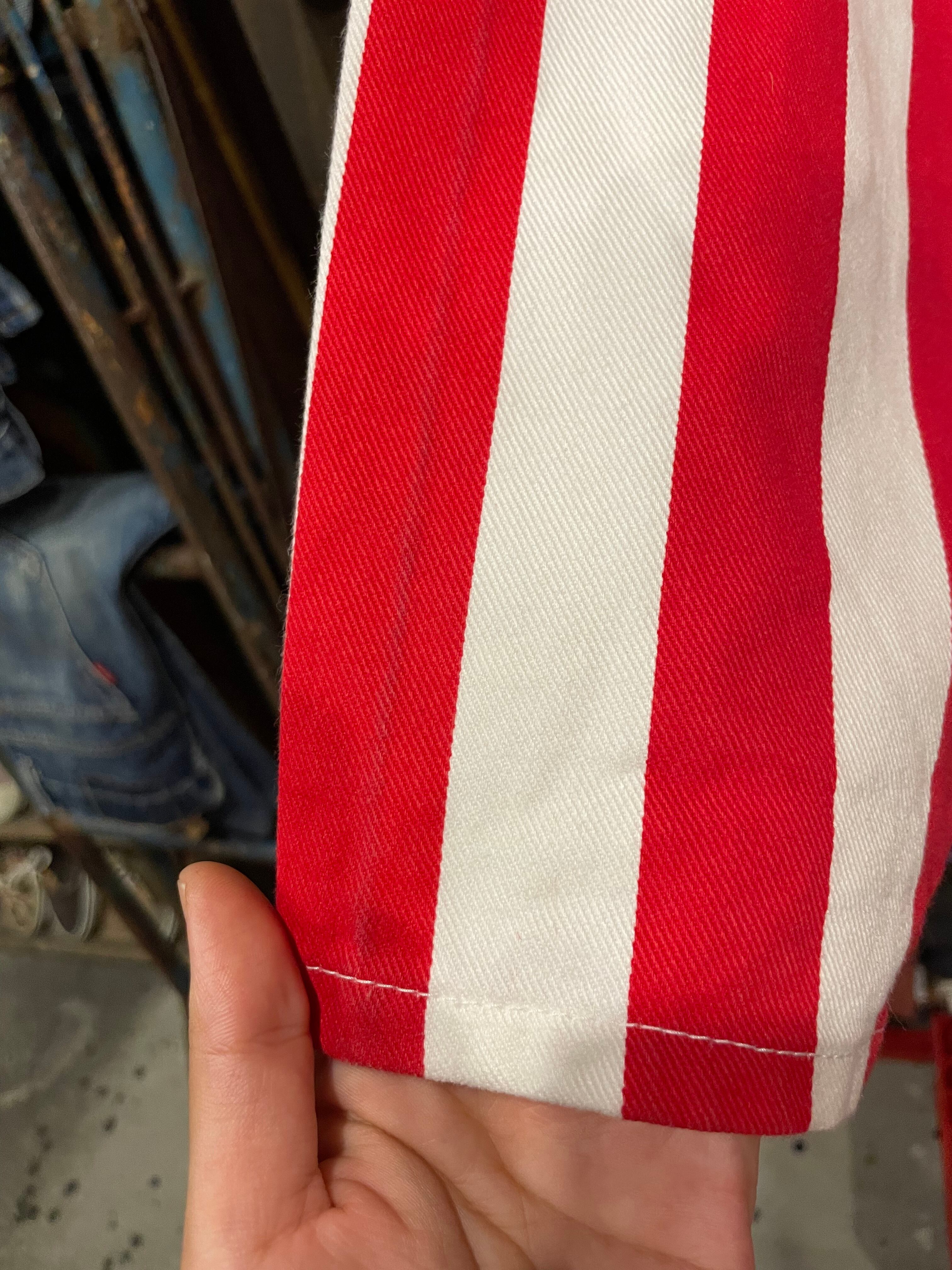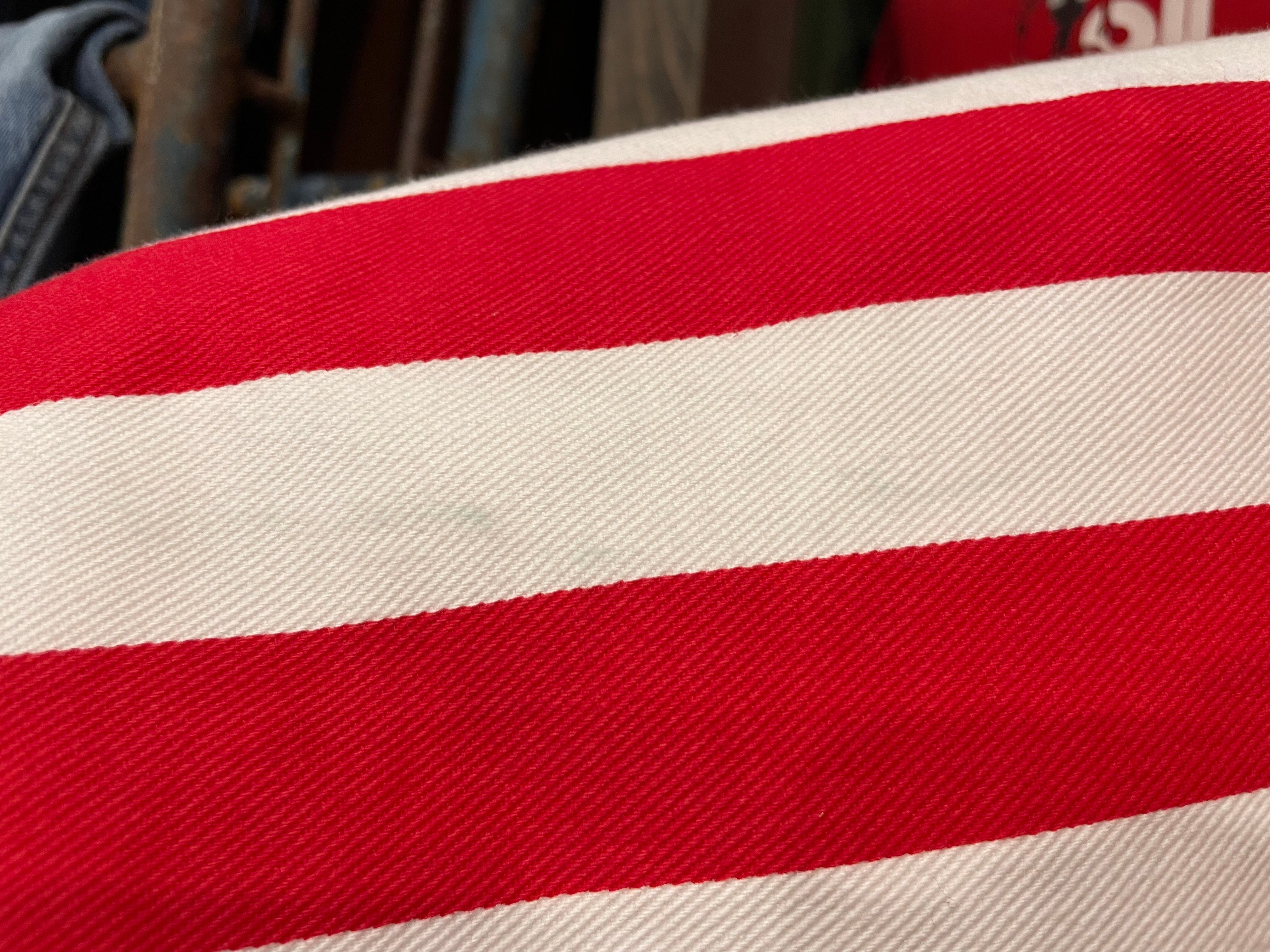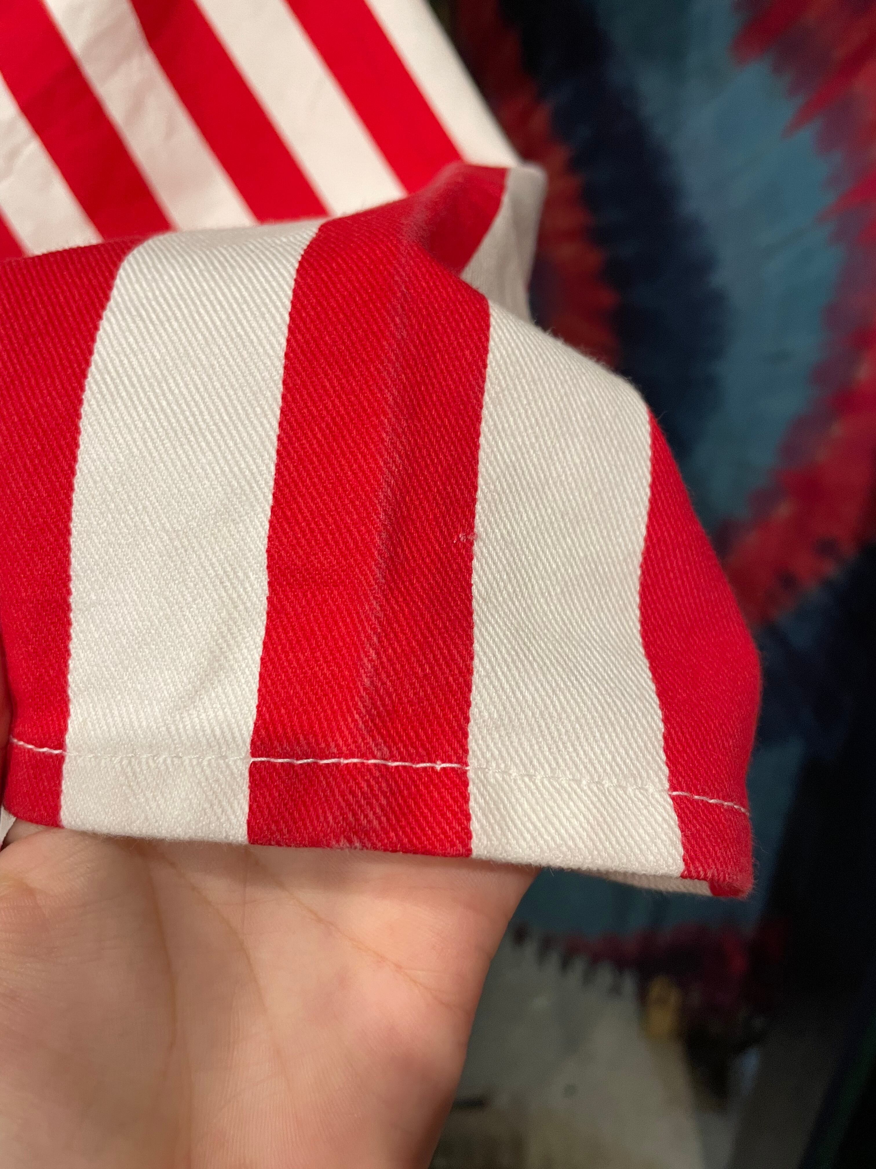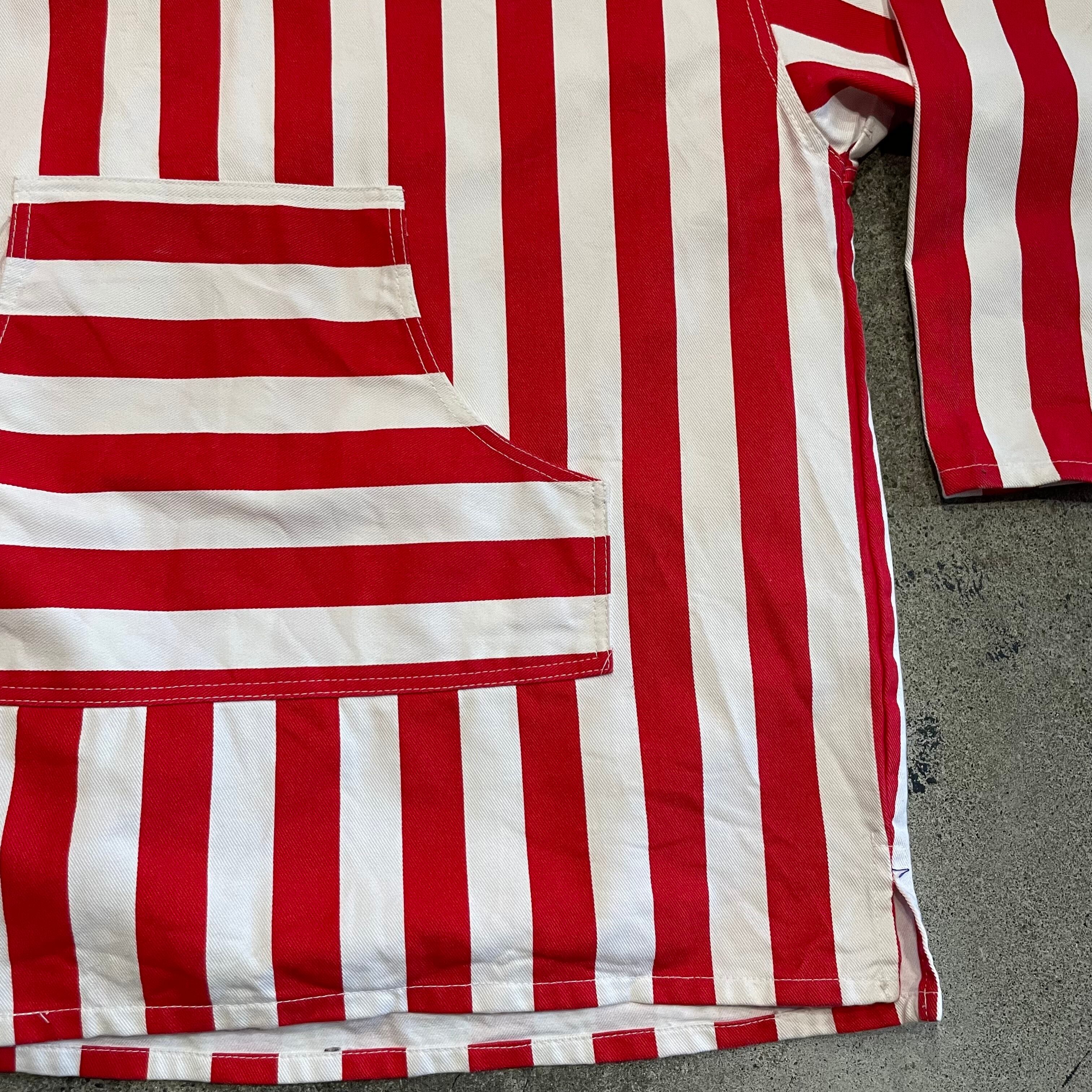 赤白ストライプがとてもハッピーでかわいいコットン素材のパーカーです。