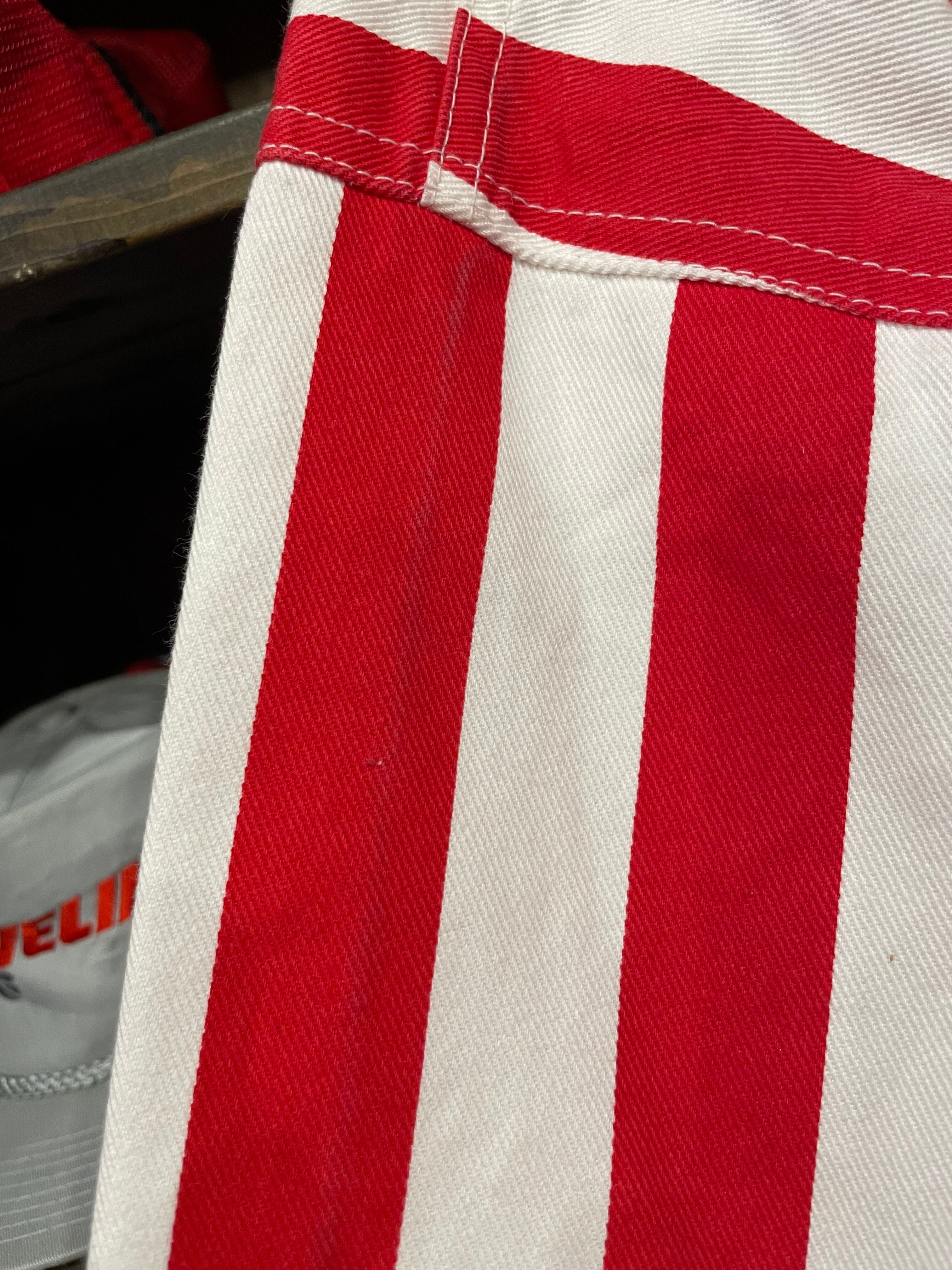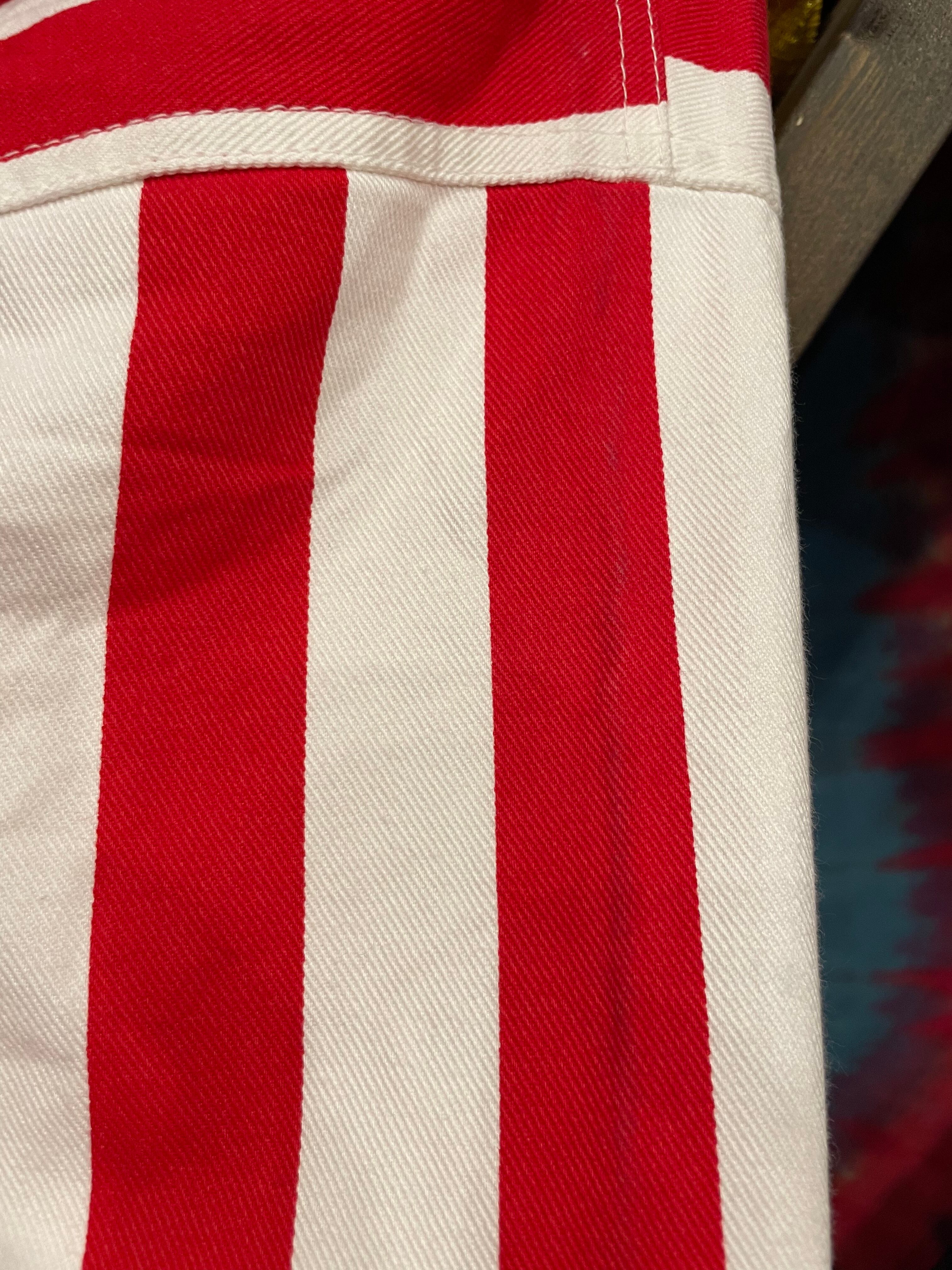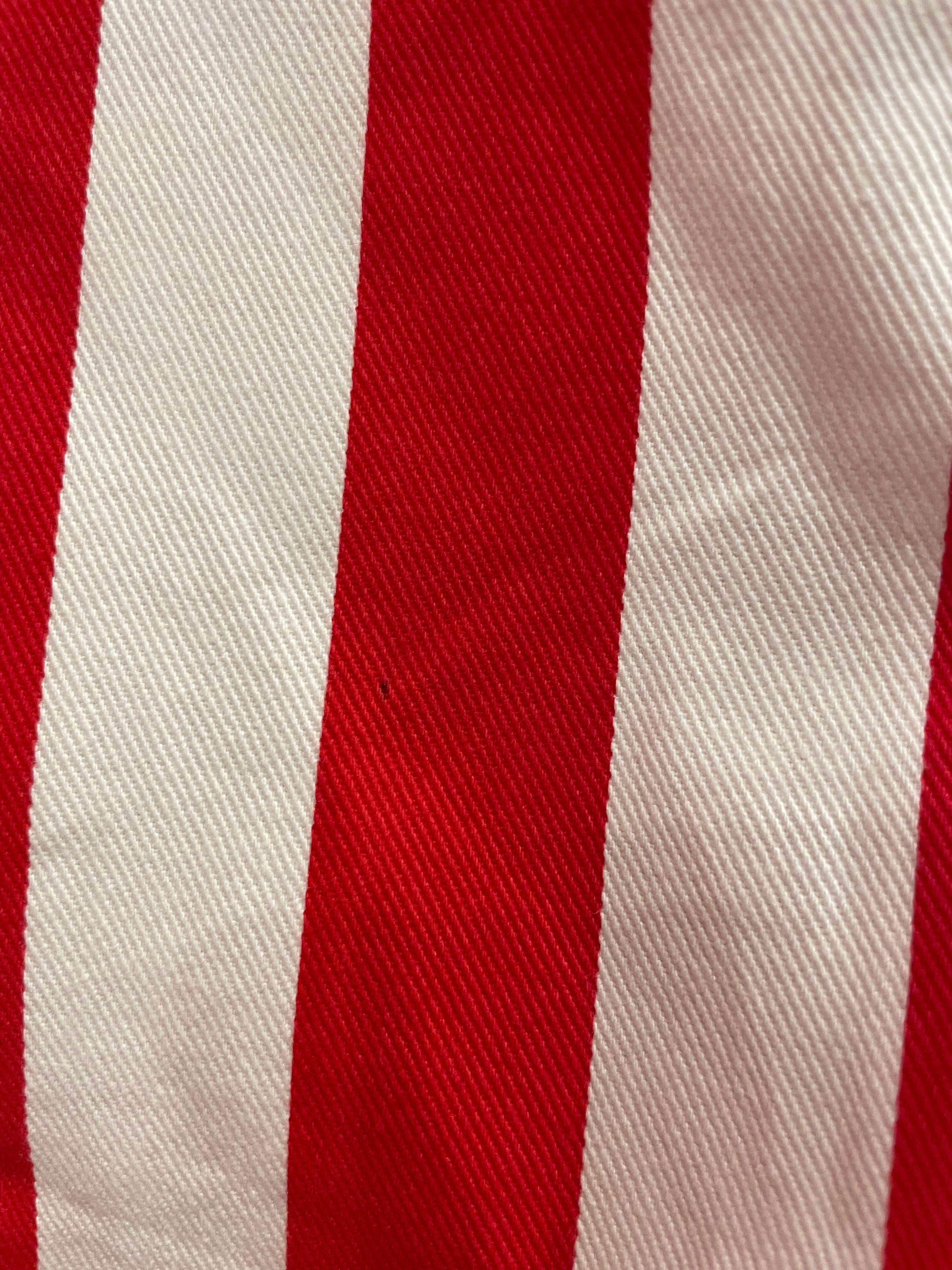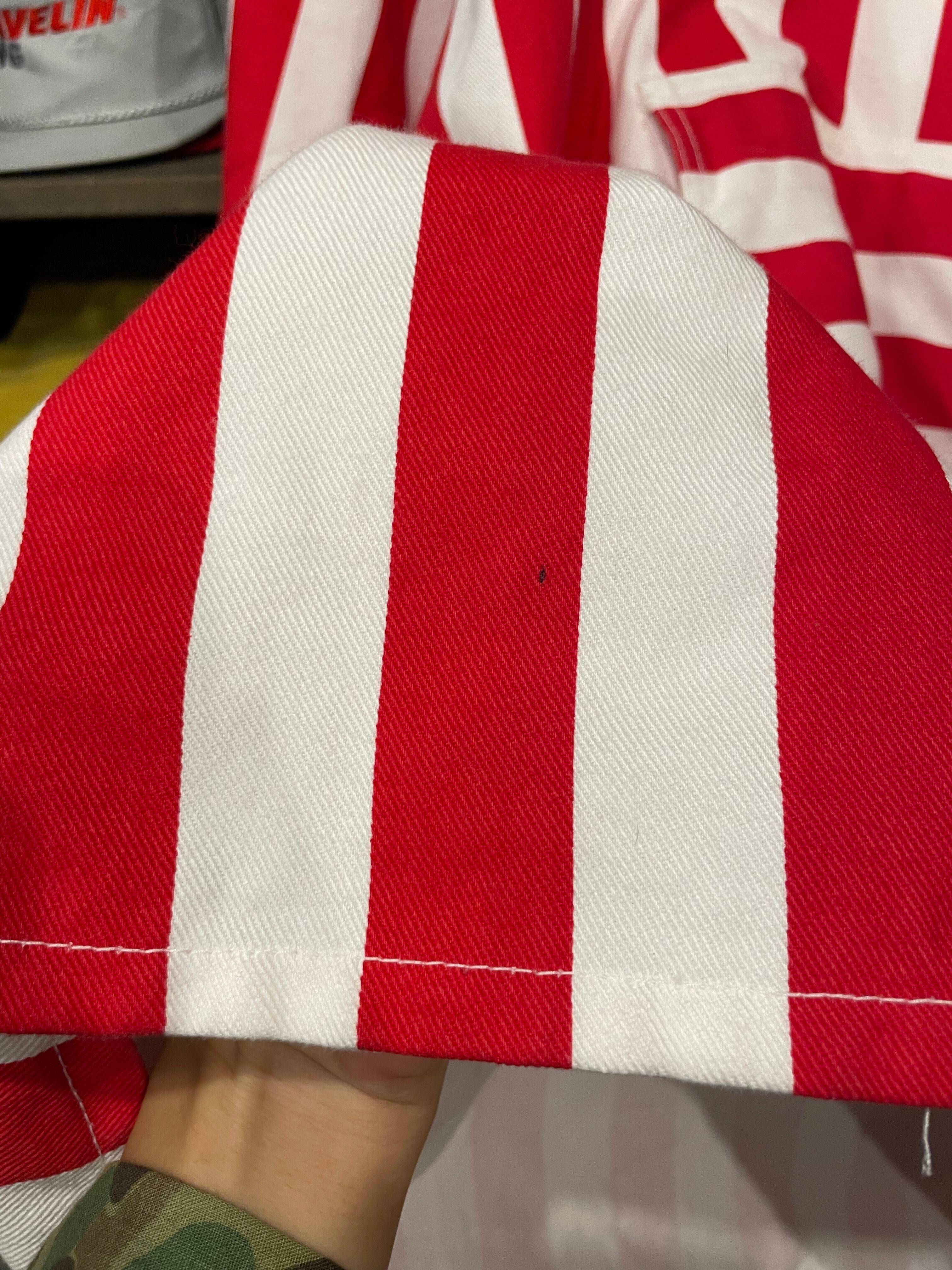 赤白ストライプがとてもハッピーでかわいいコットン素材のパーカーです。