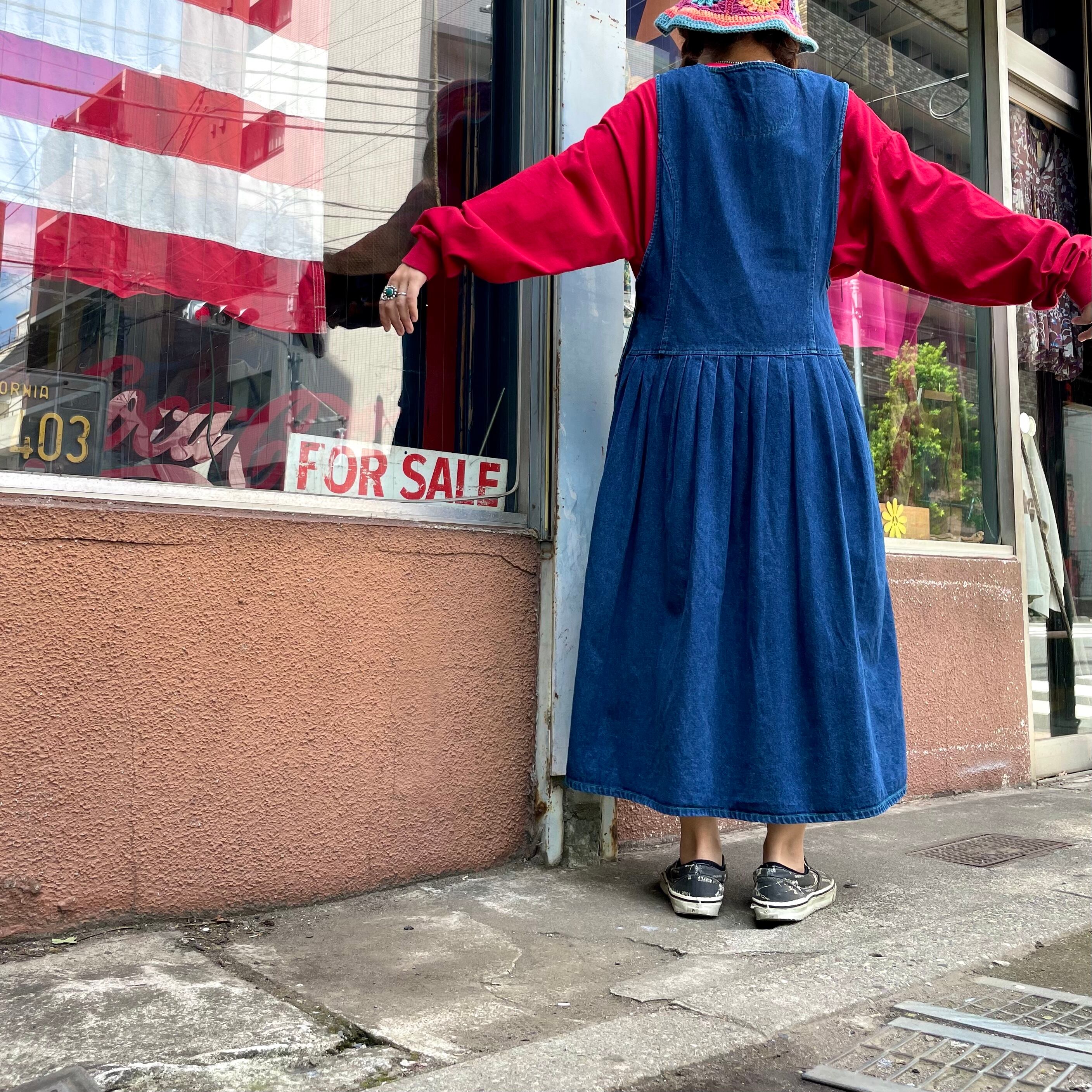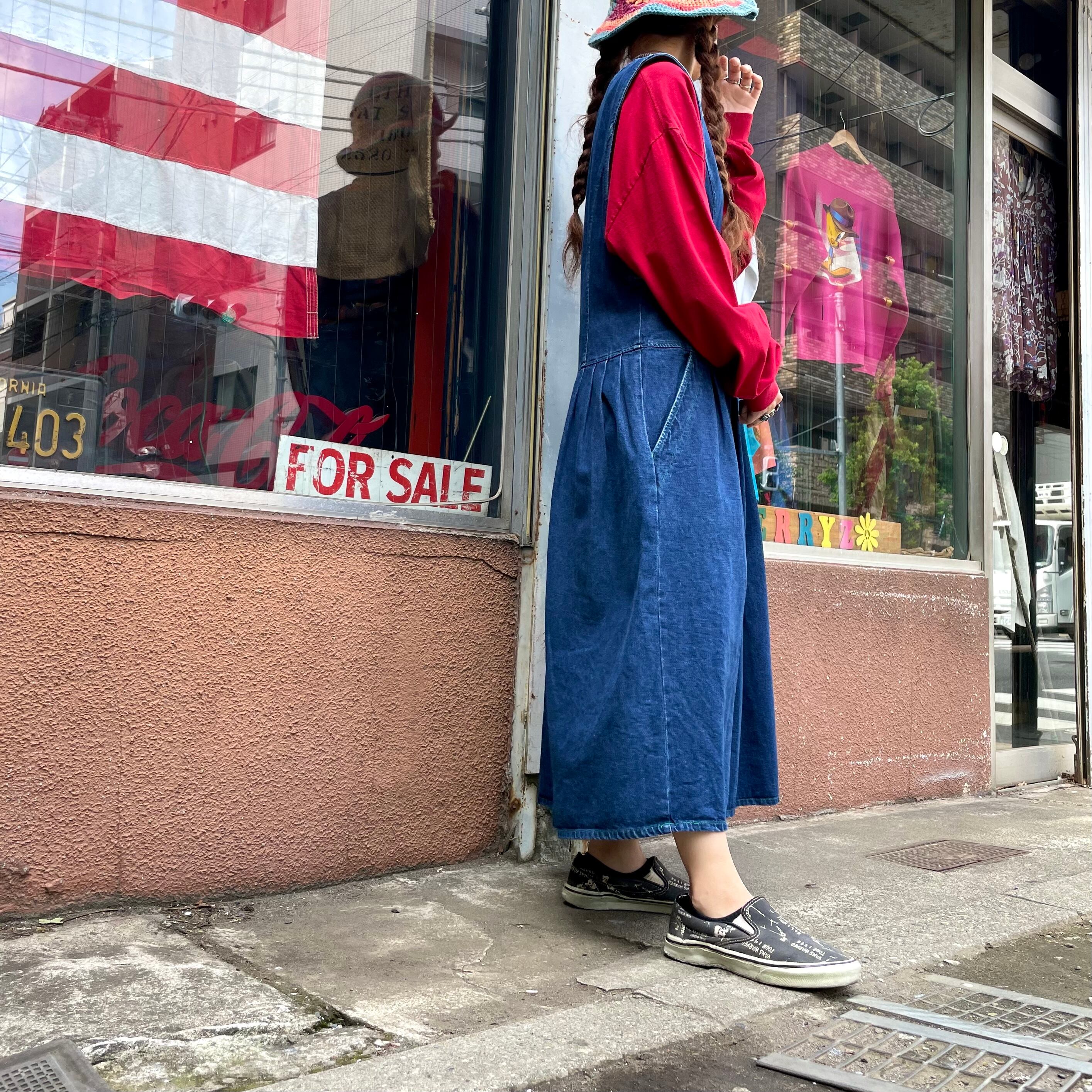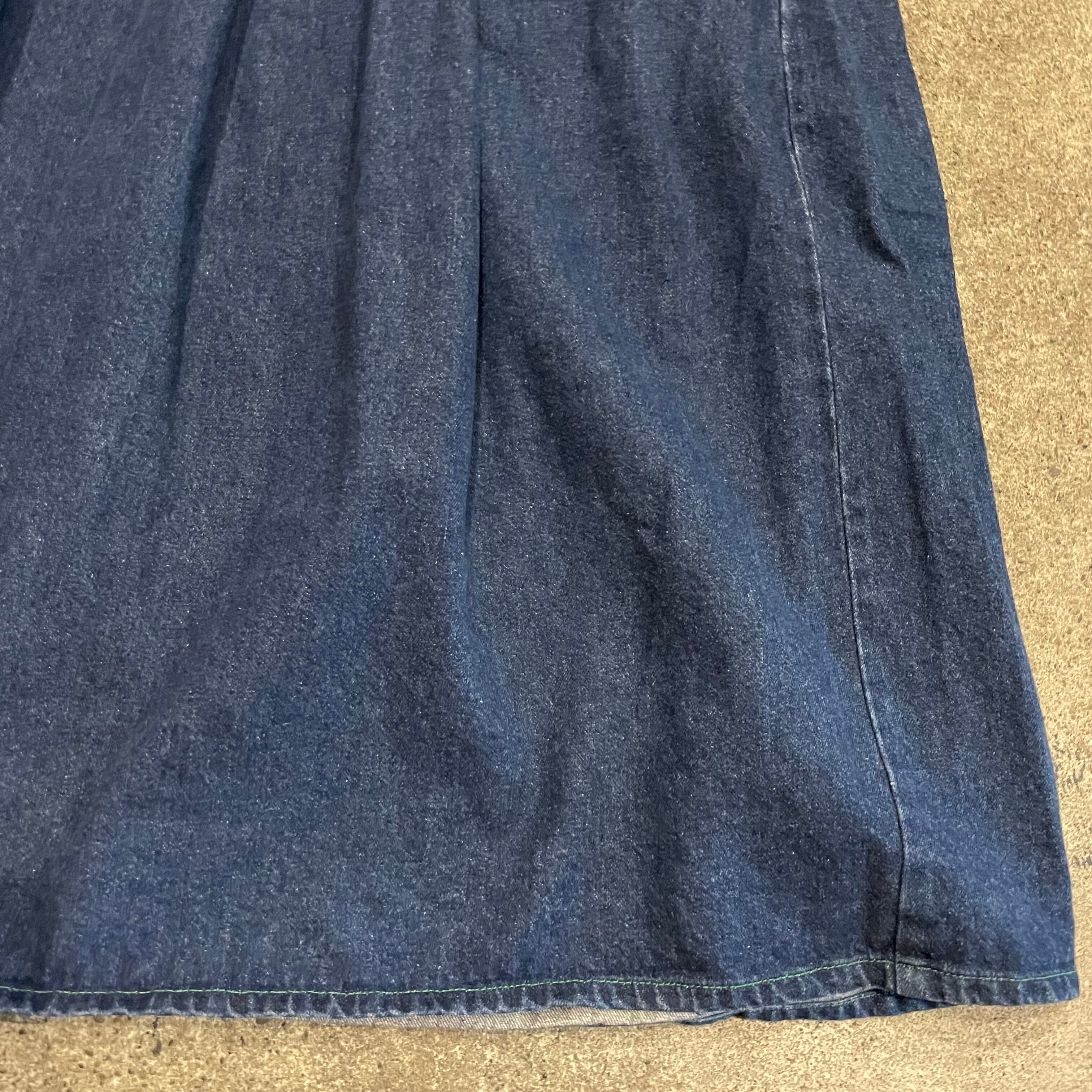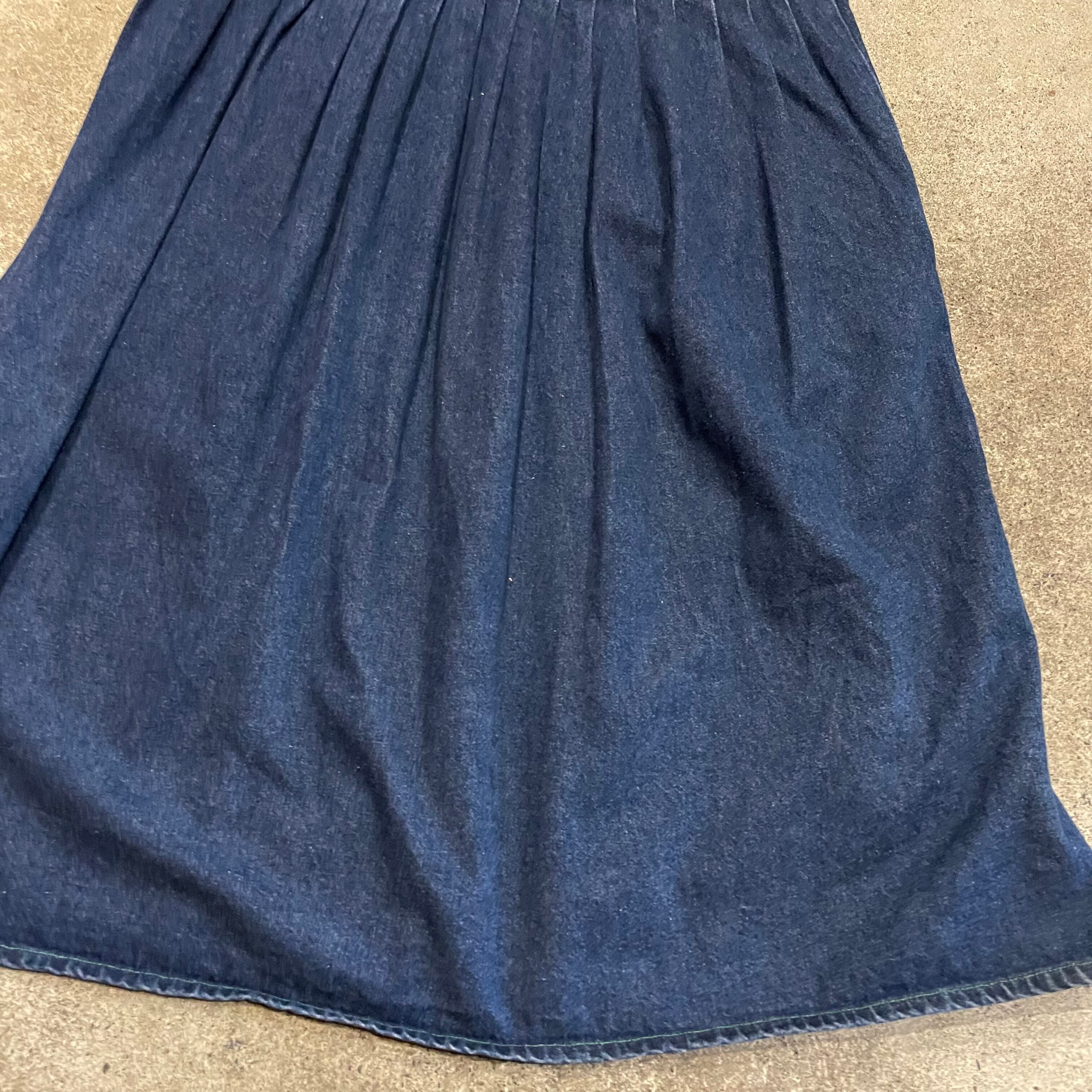 しっかり厚手のデニム素材で、身頃部分はすっきりと、スカート部分はバサバサとボリュームがあってシルエットもかわいいです。