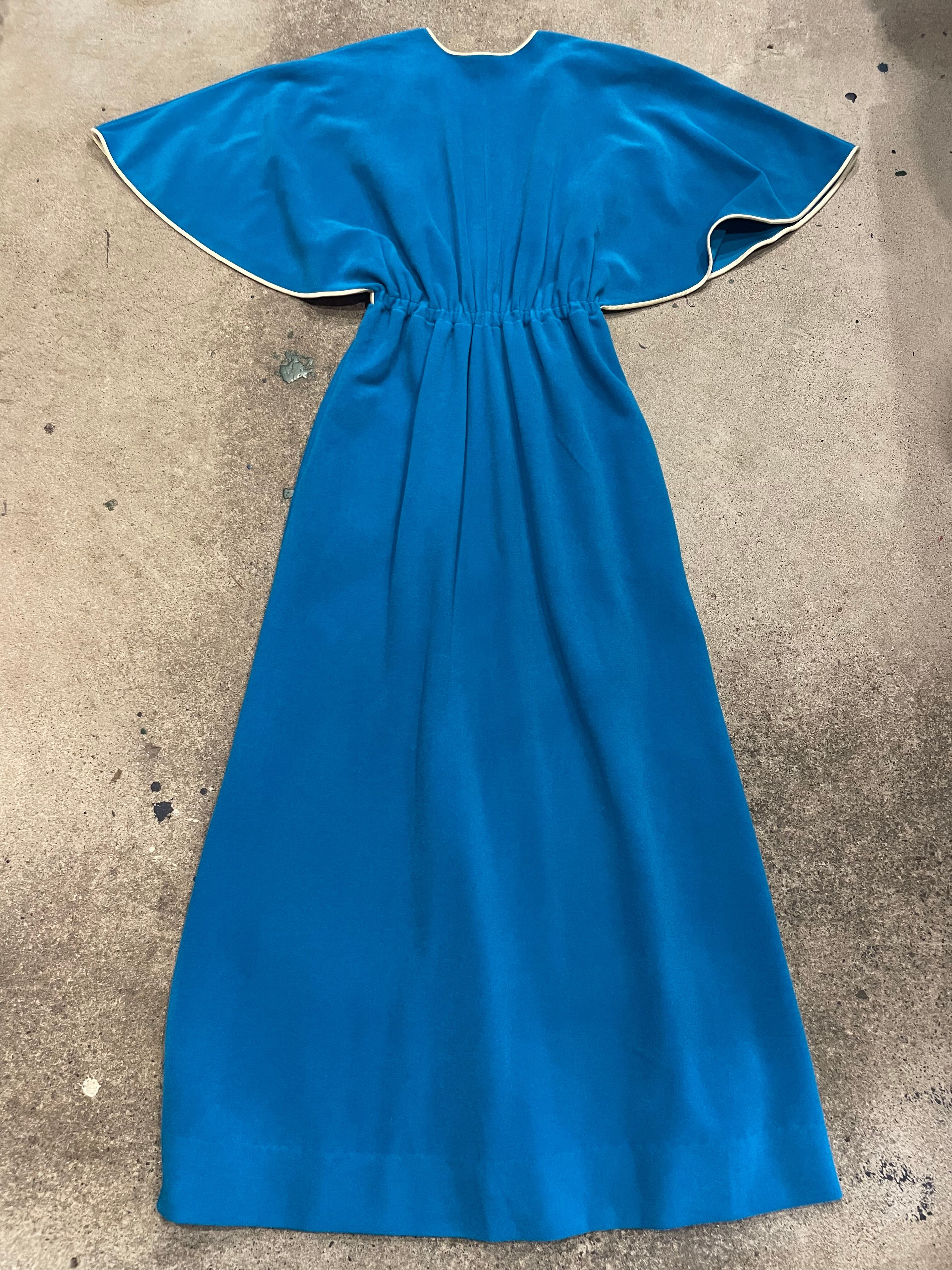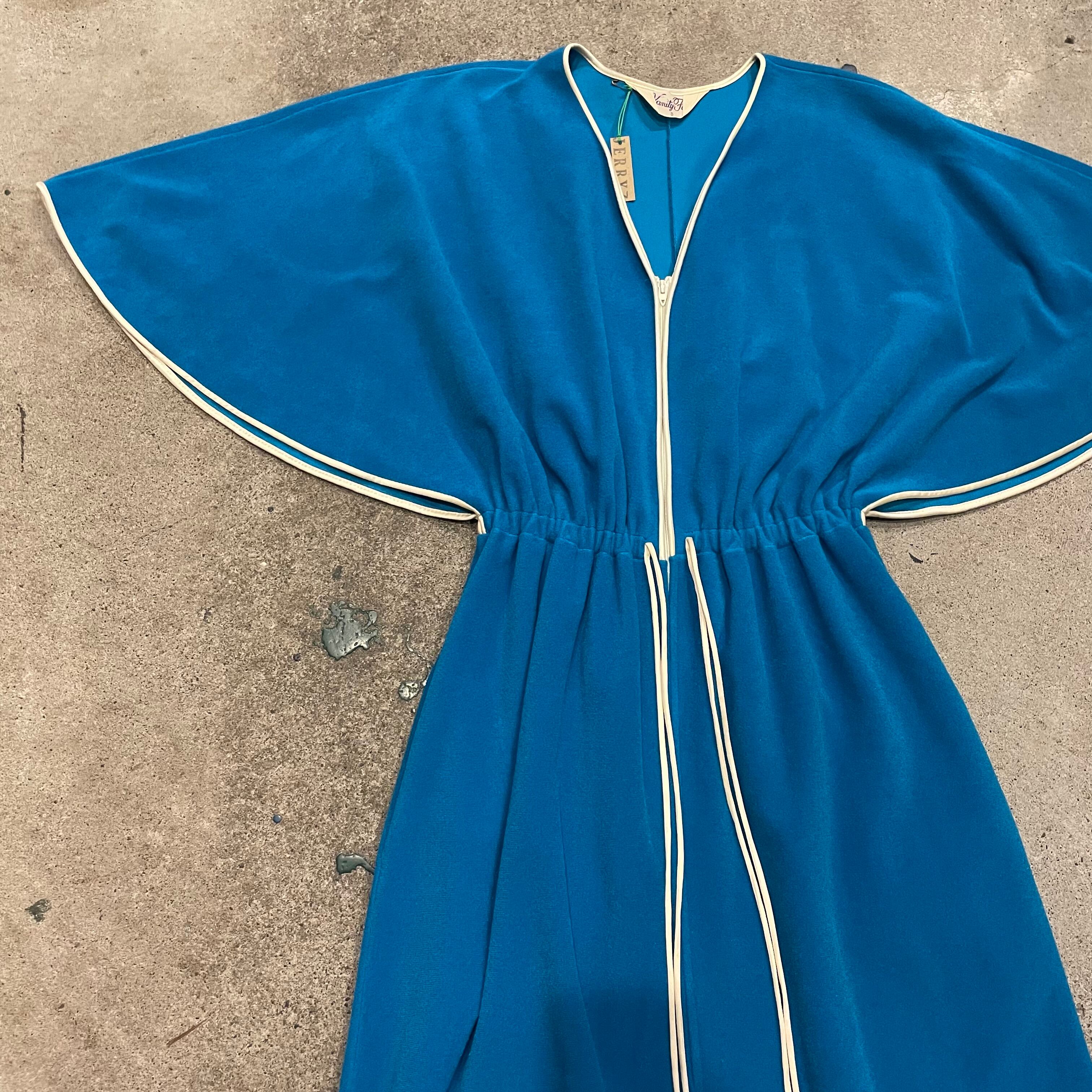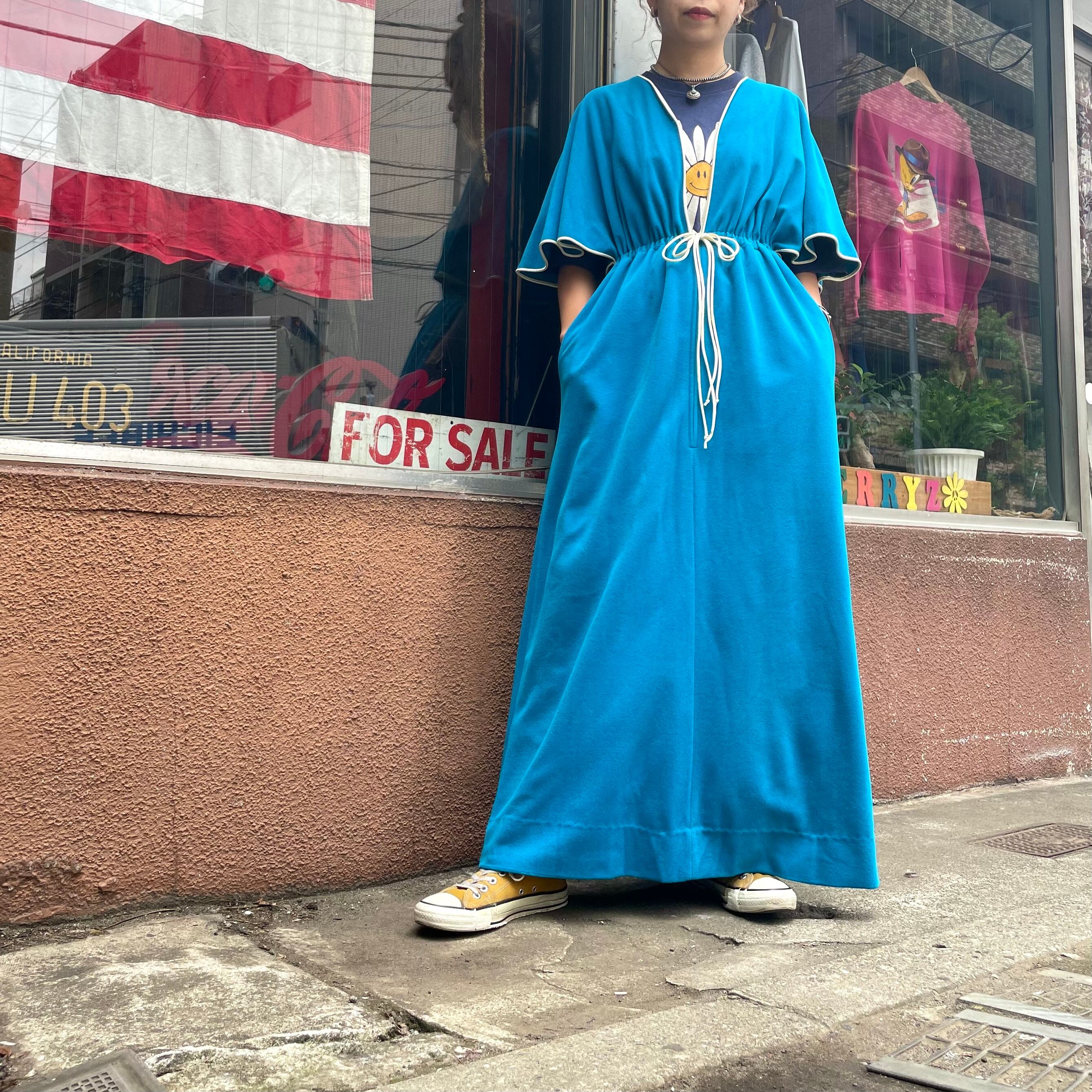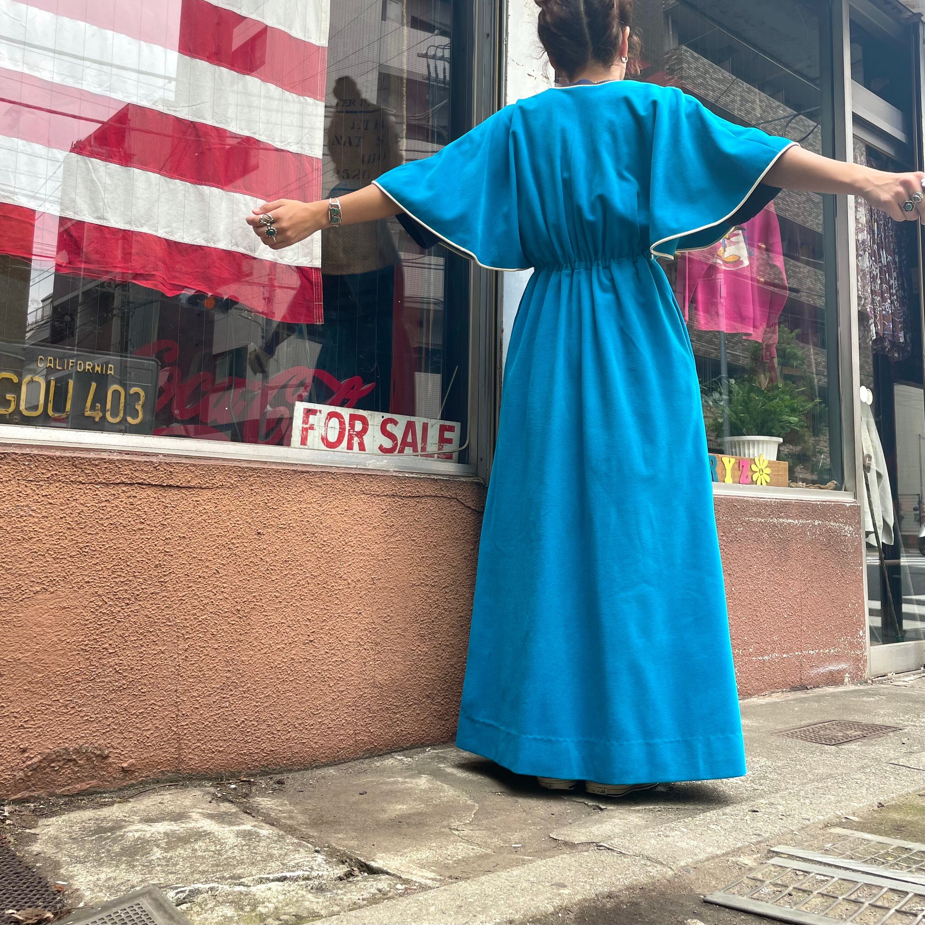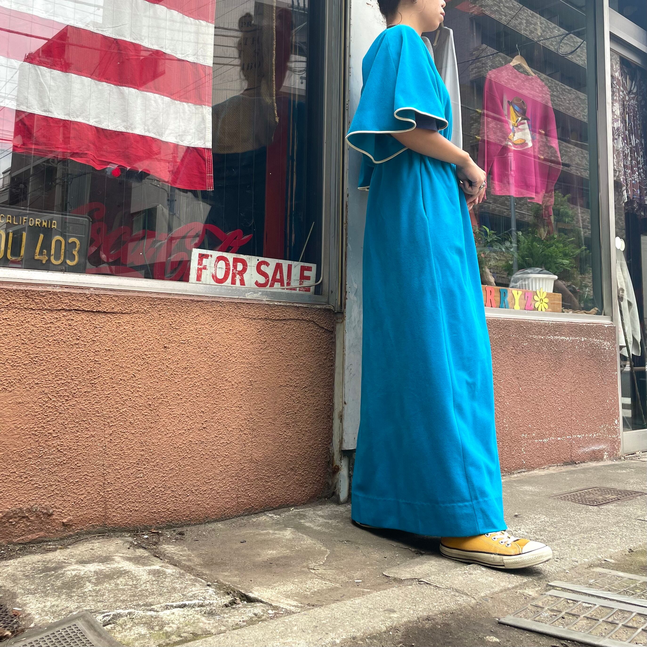 きれいな水色のケープのような袖がかわいいワンピースです。