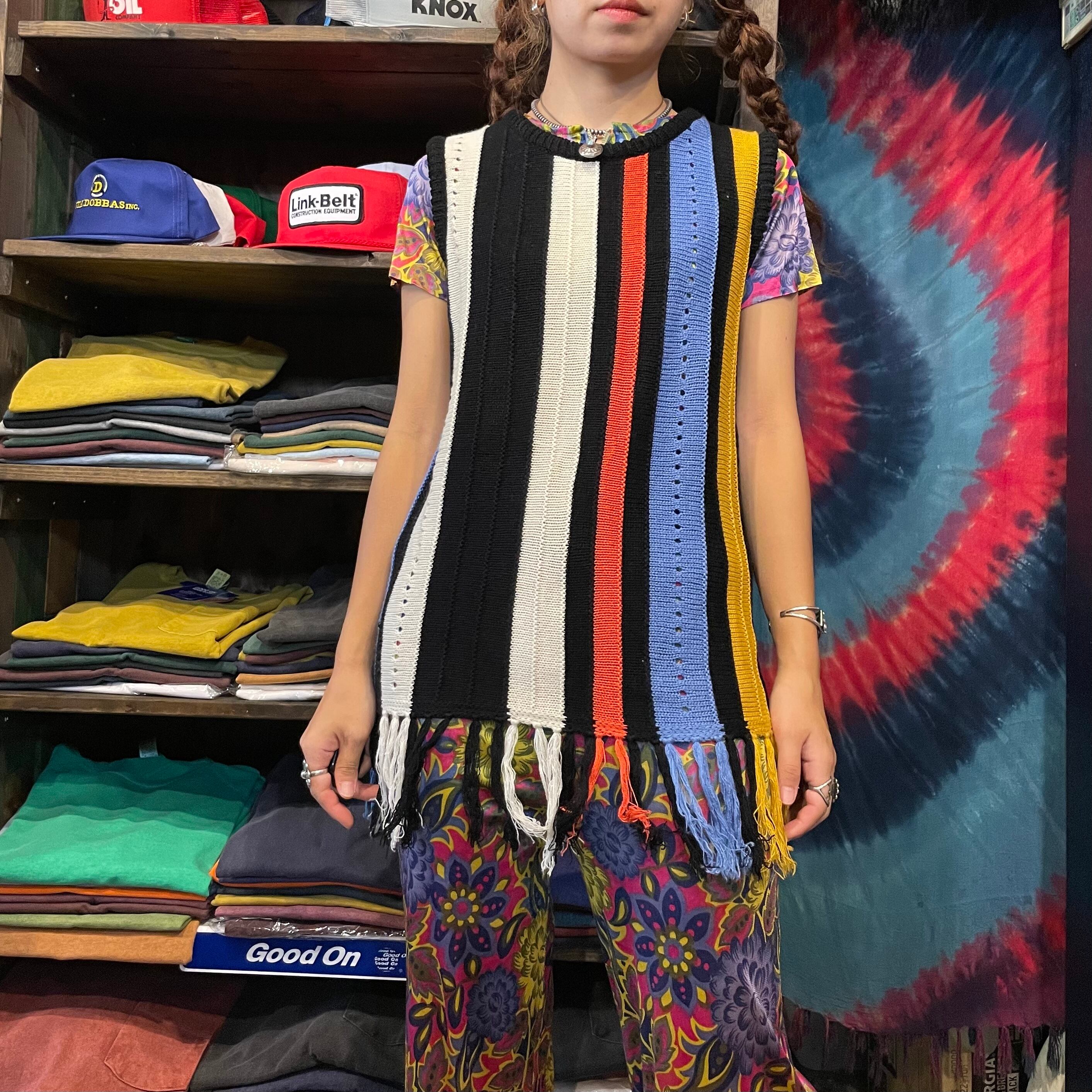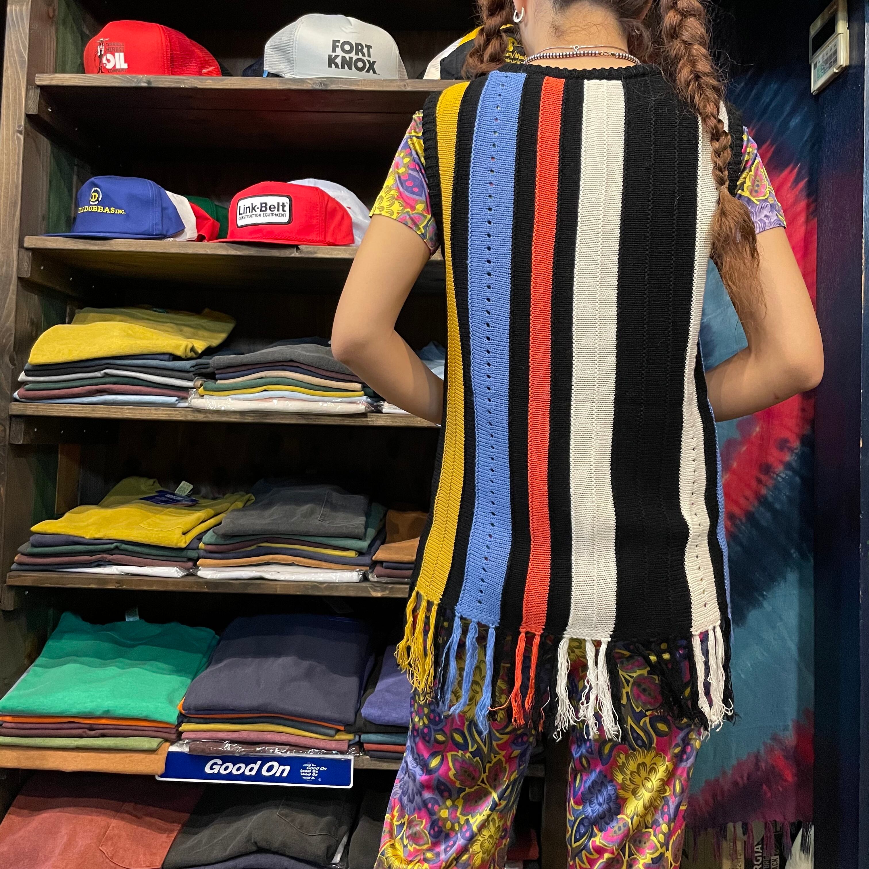 カラフル過ぎないポップさが魅力的で、シンプルなシルエットのワンピースなどに重ねたり、ブラウスやシャツと合わせたり、デニムジャケットやミリタリーシャツの裾からフリンジが見えてもかわいいと思います!