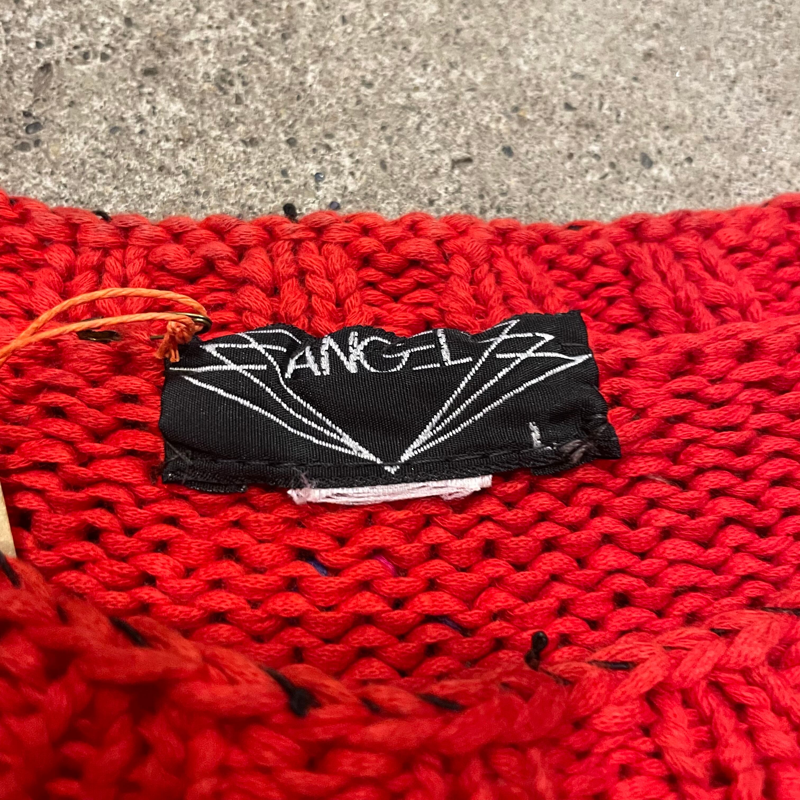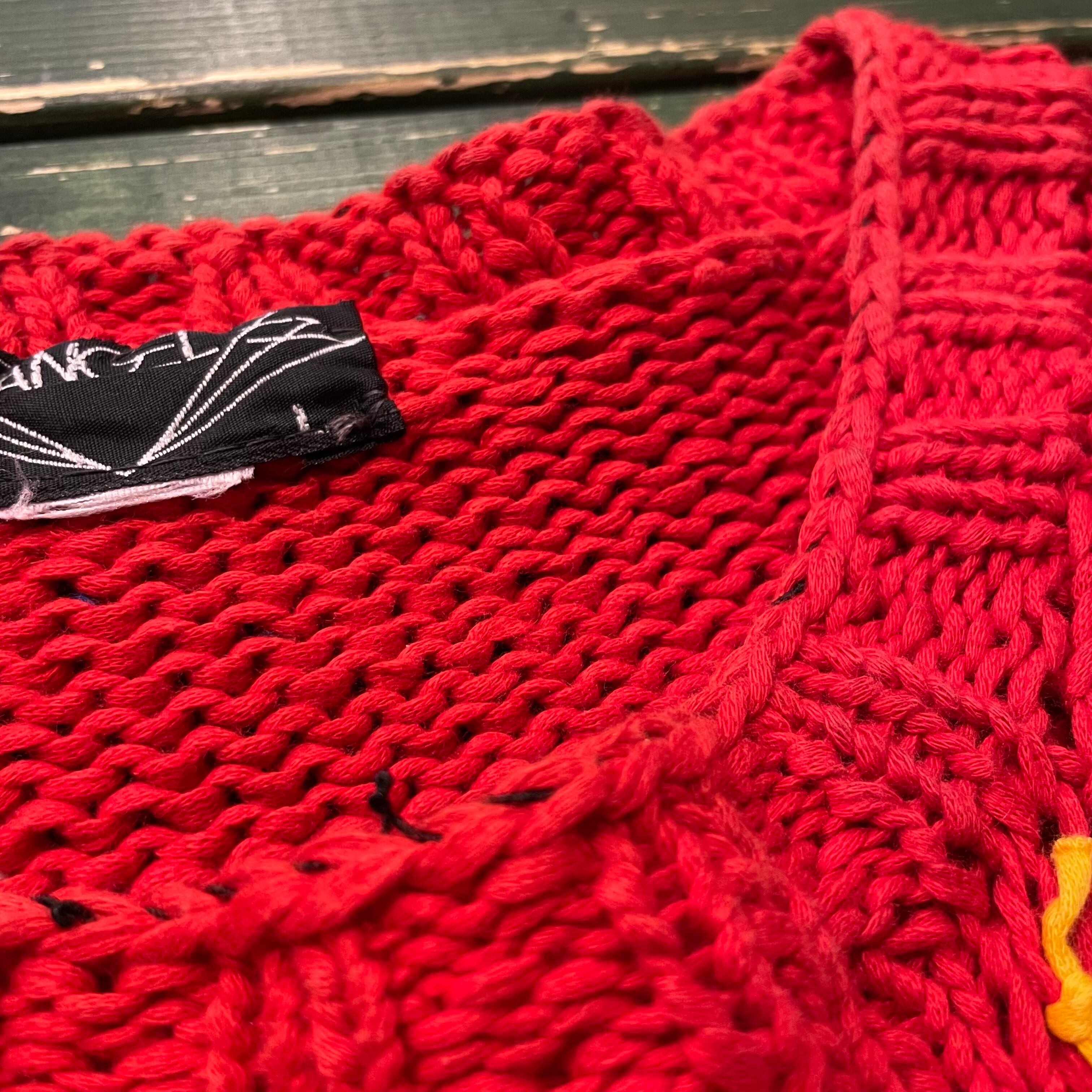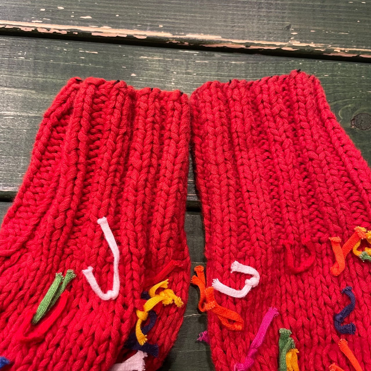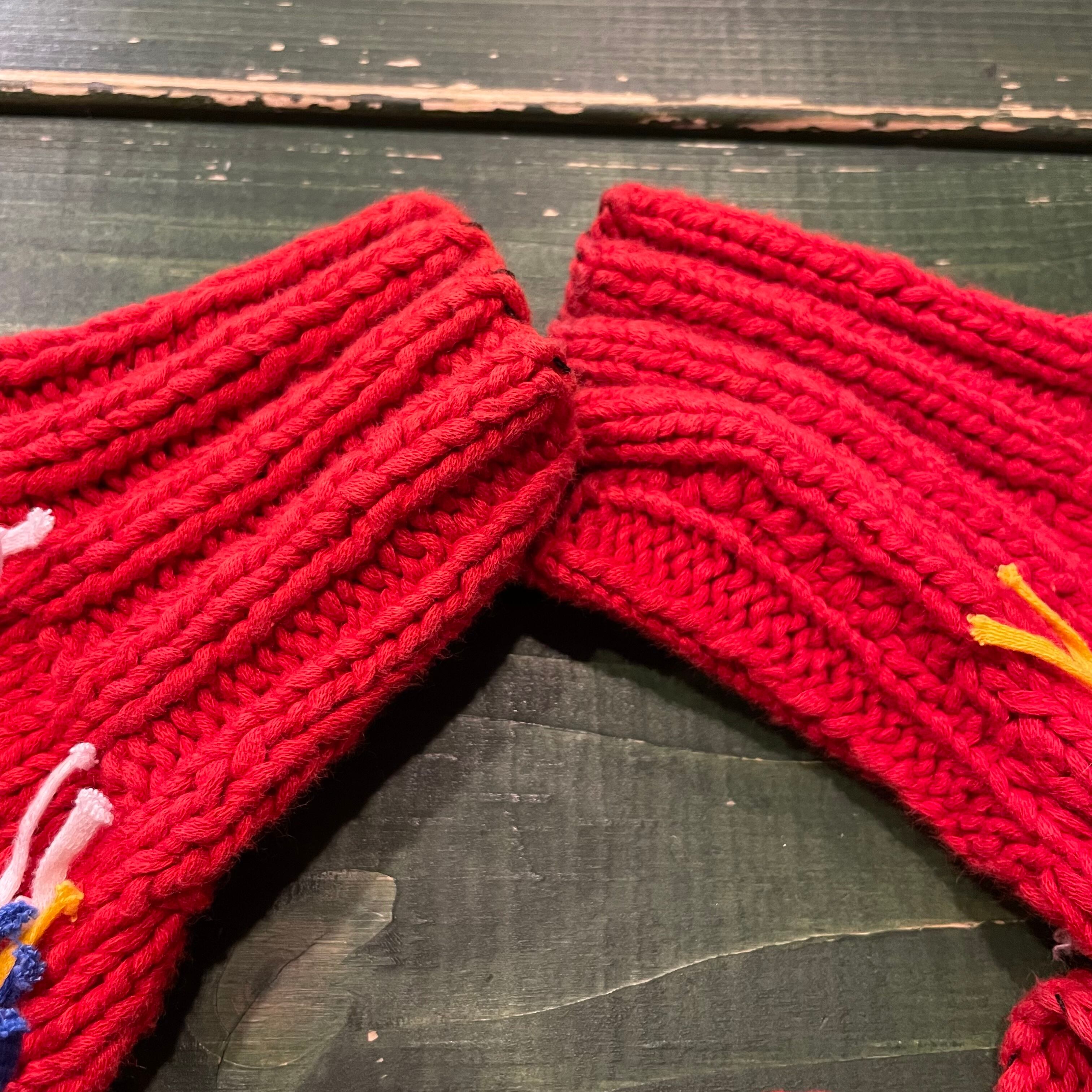ぴょこぴょこ立体感のあるカラフルな紐がたくさん結んであって、とてもかわいいニットです。