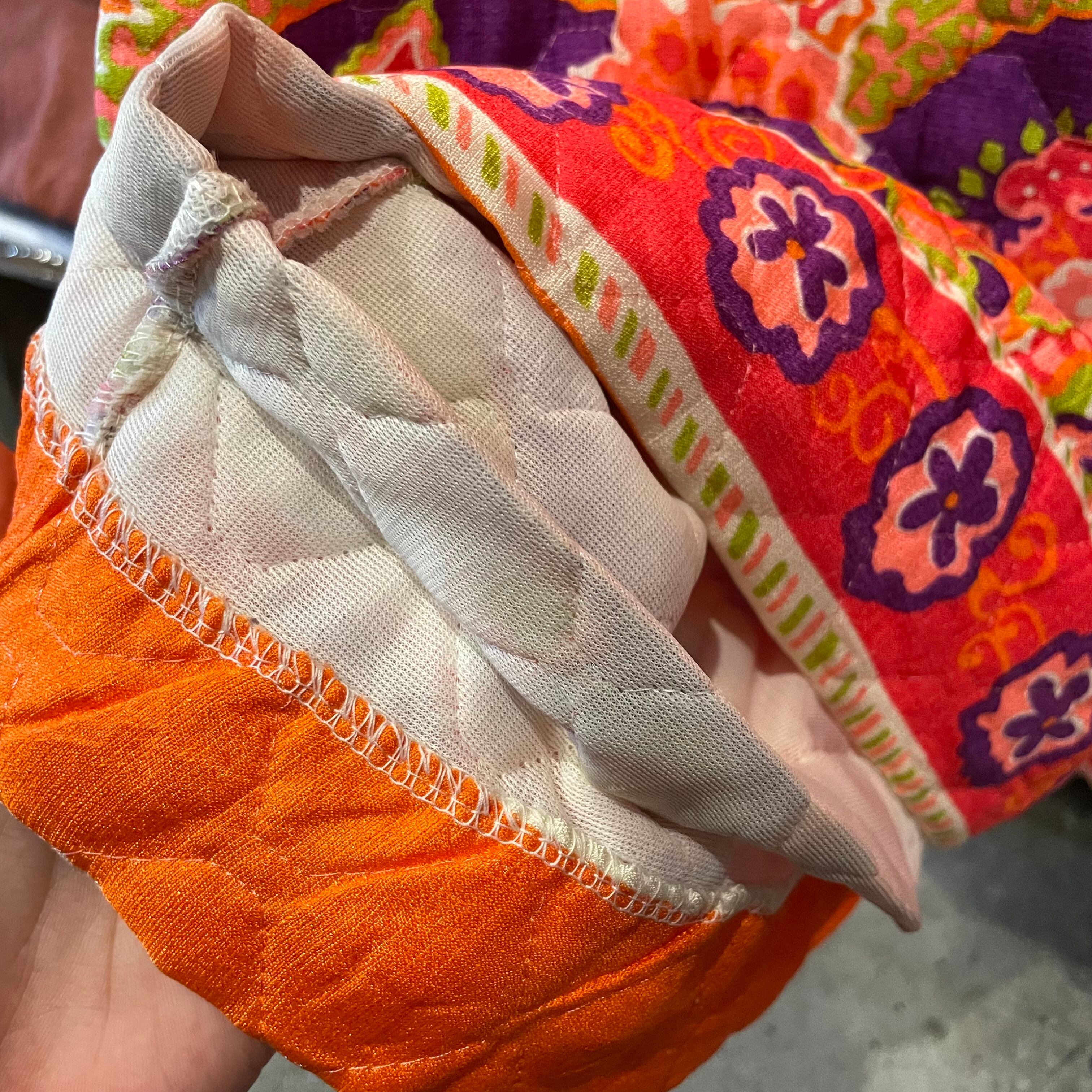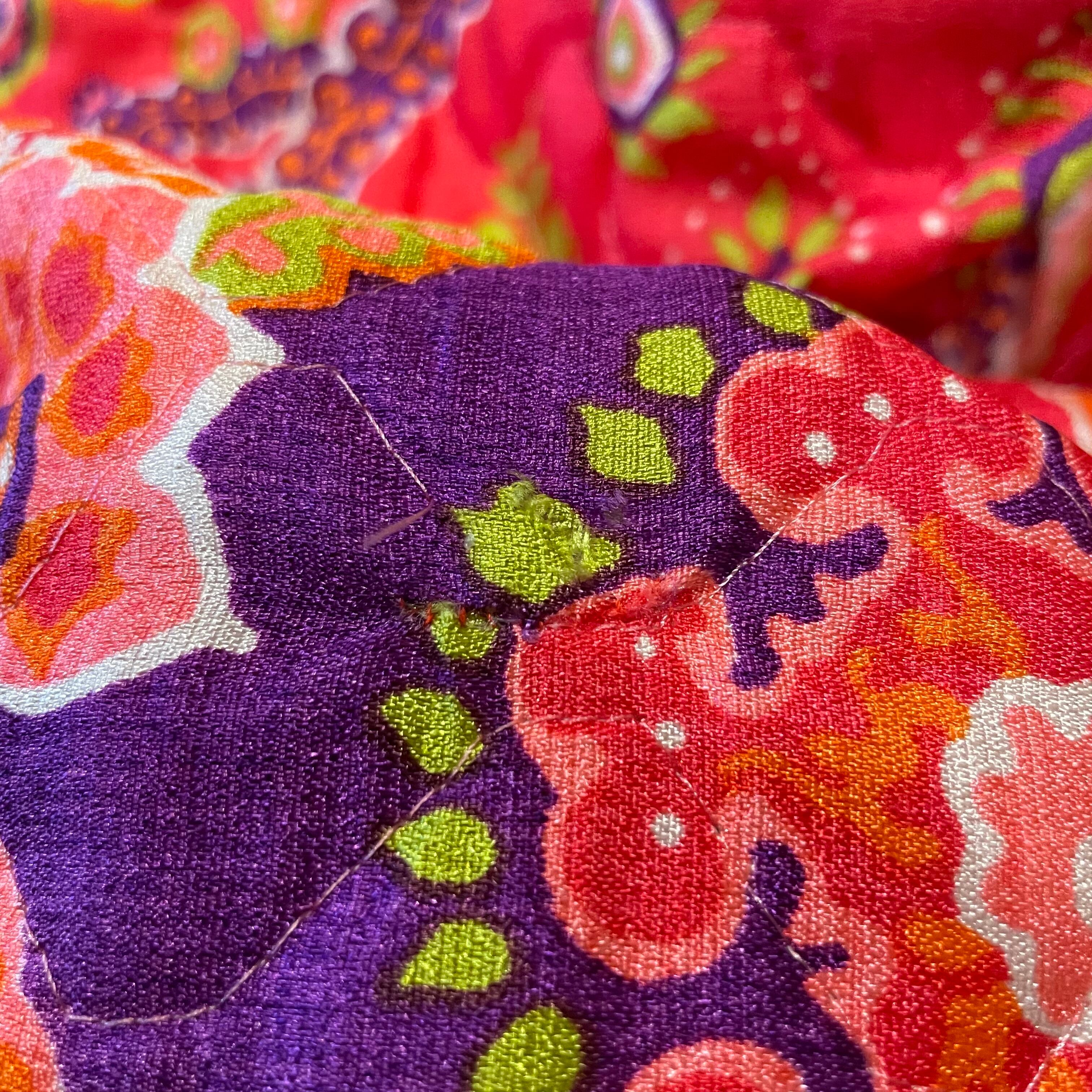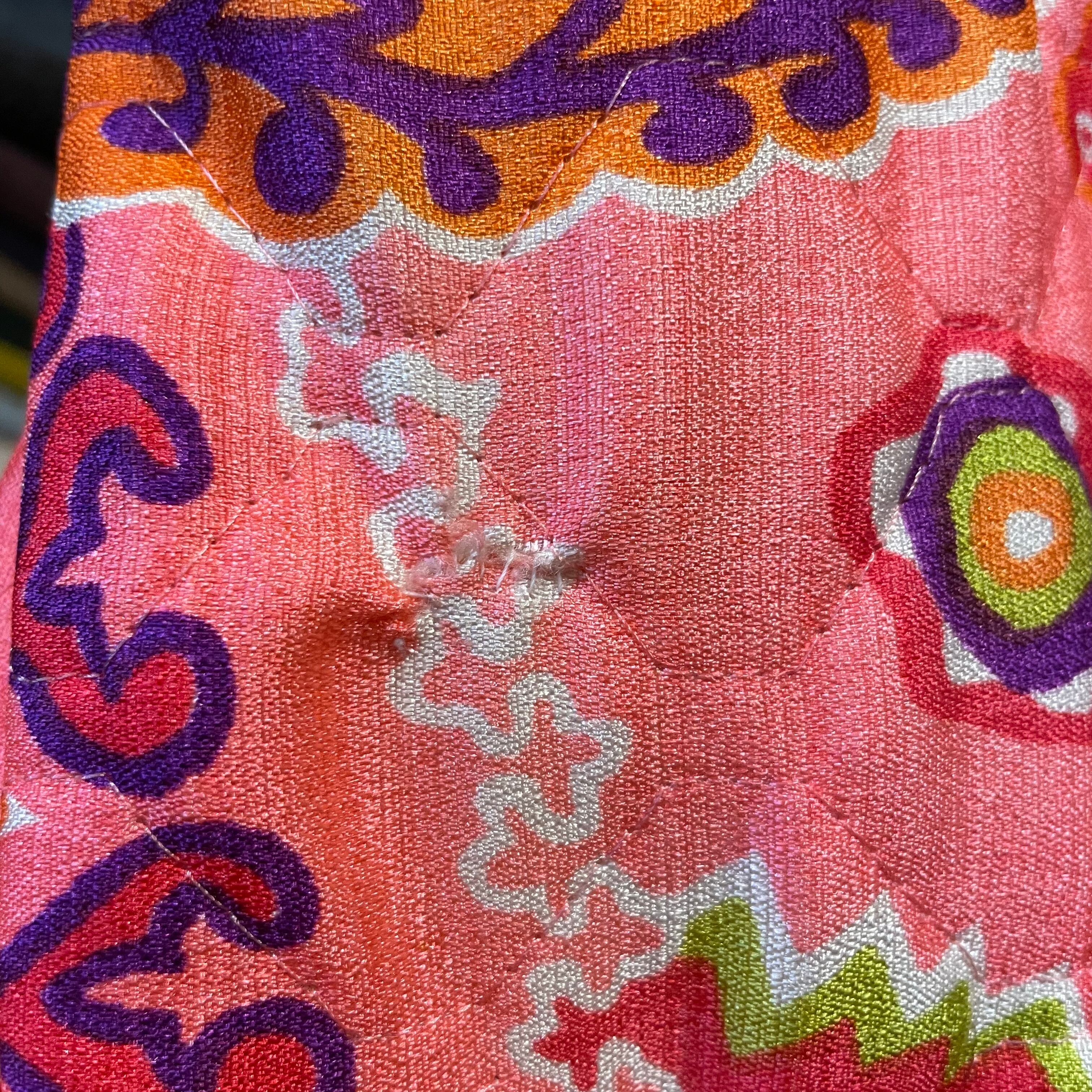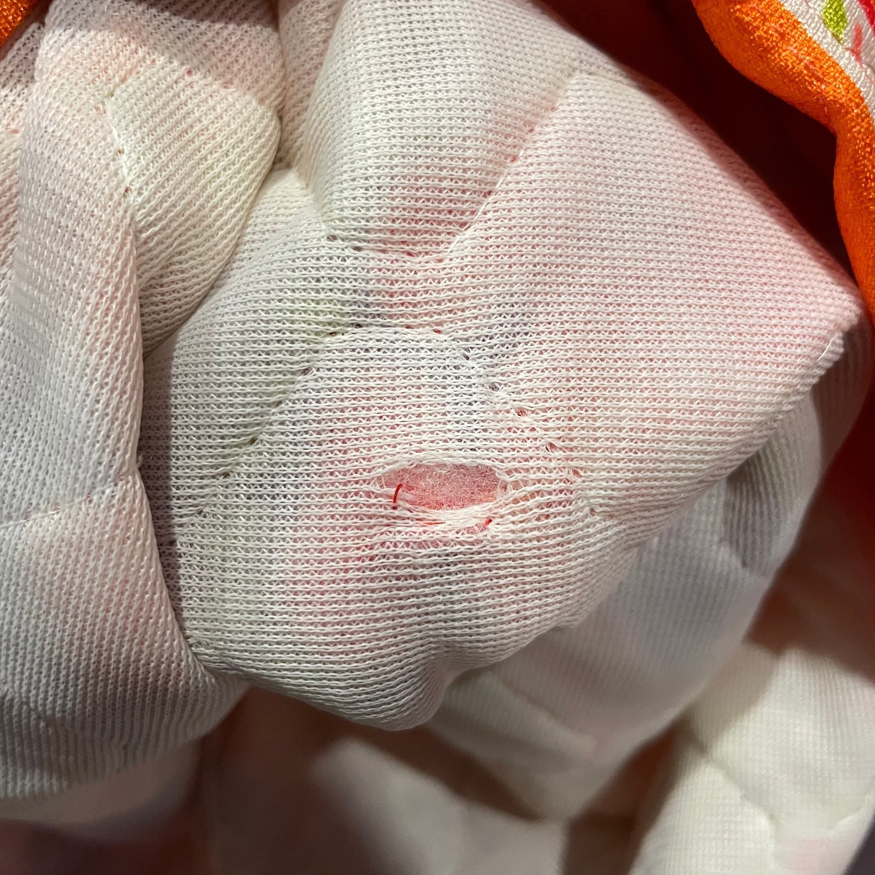 スカート部分左サイドの日焼け、キルティングの糸のほつれ、キズリペア数カ所ございます。
