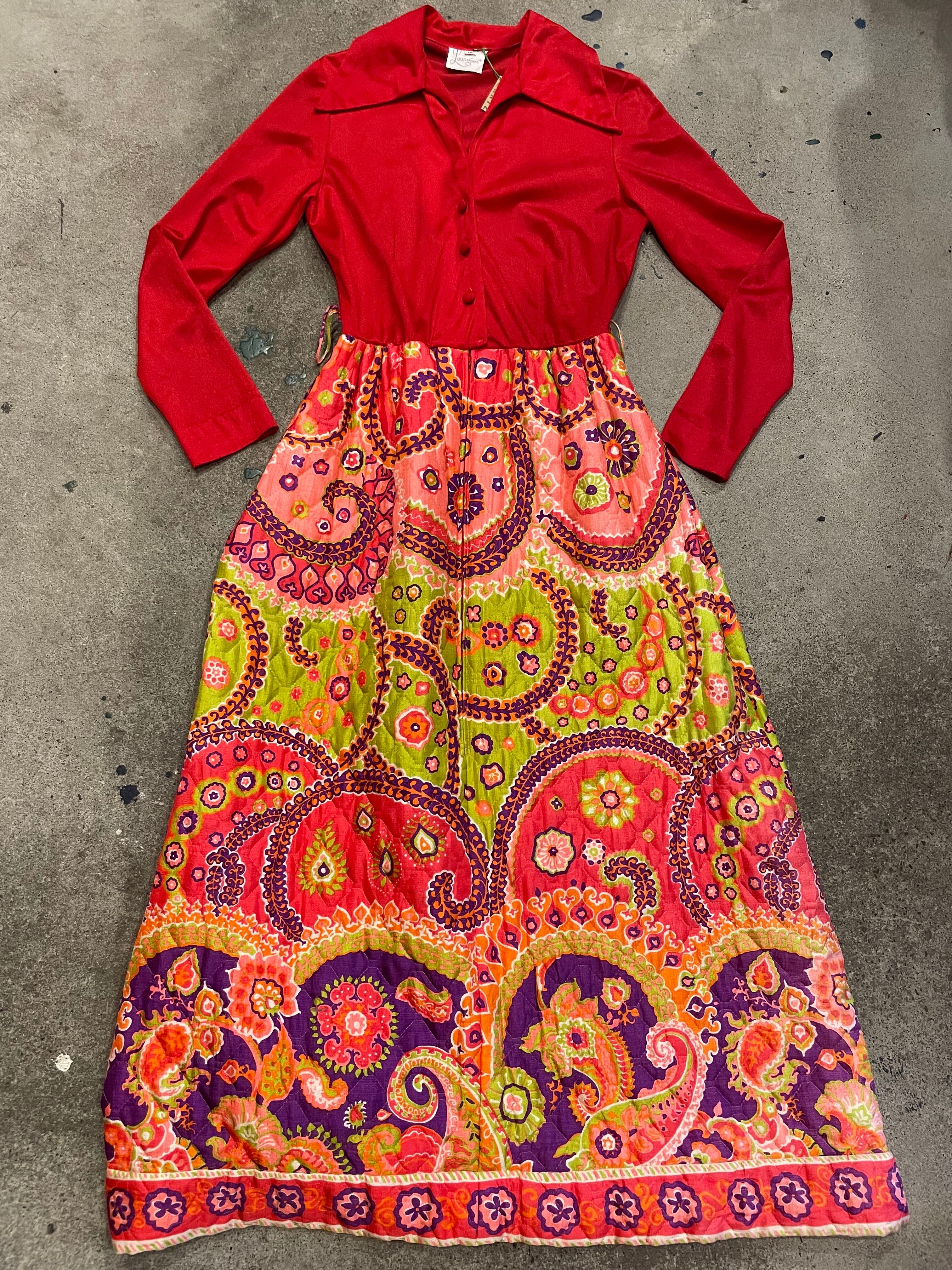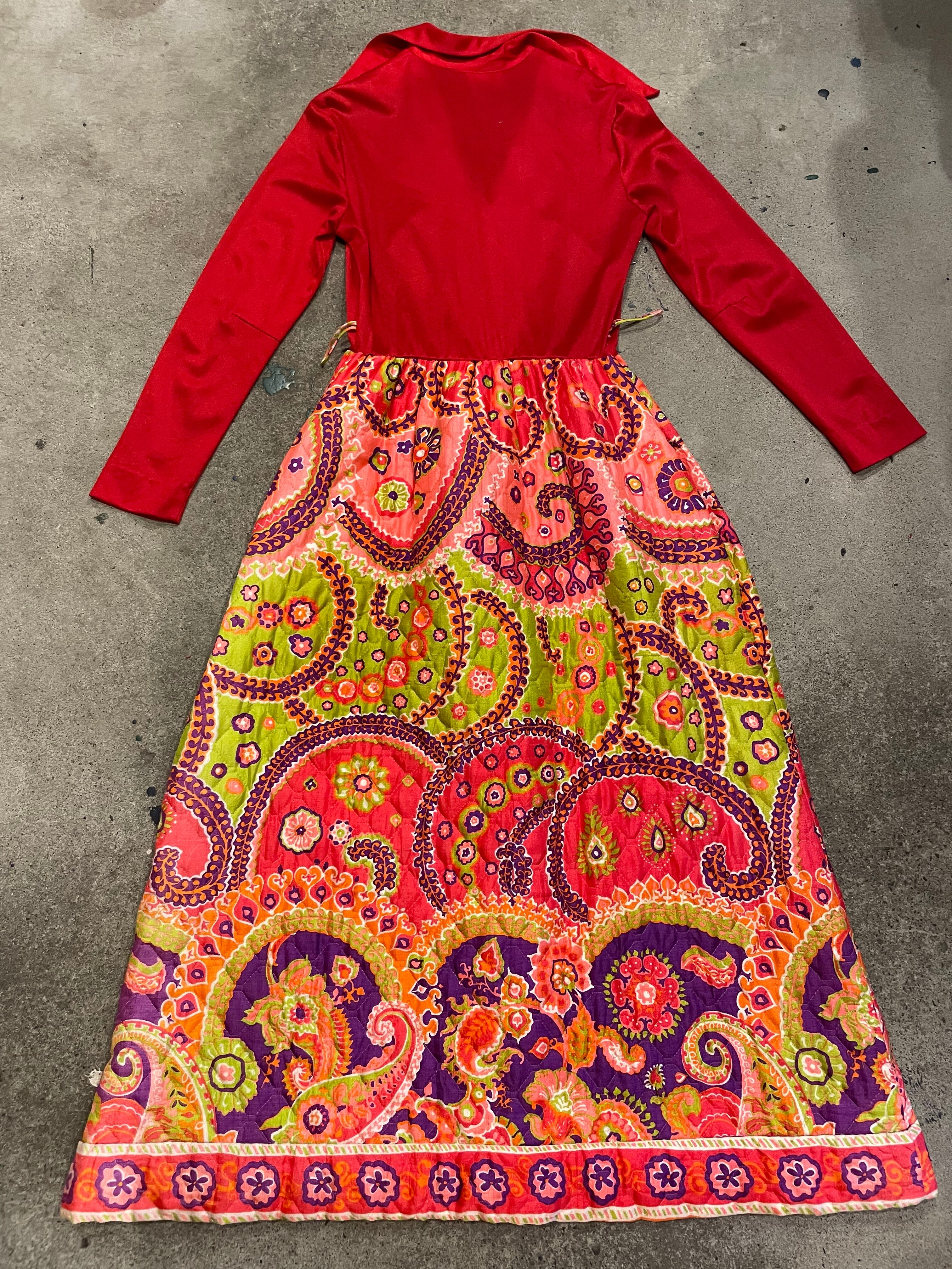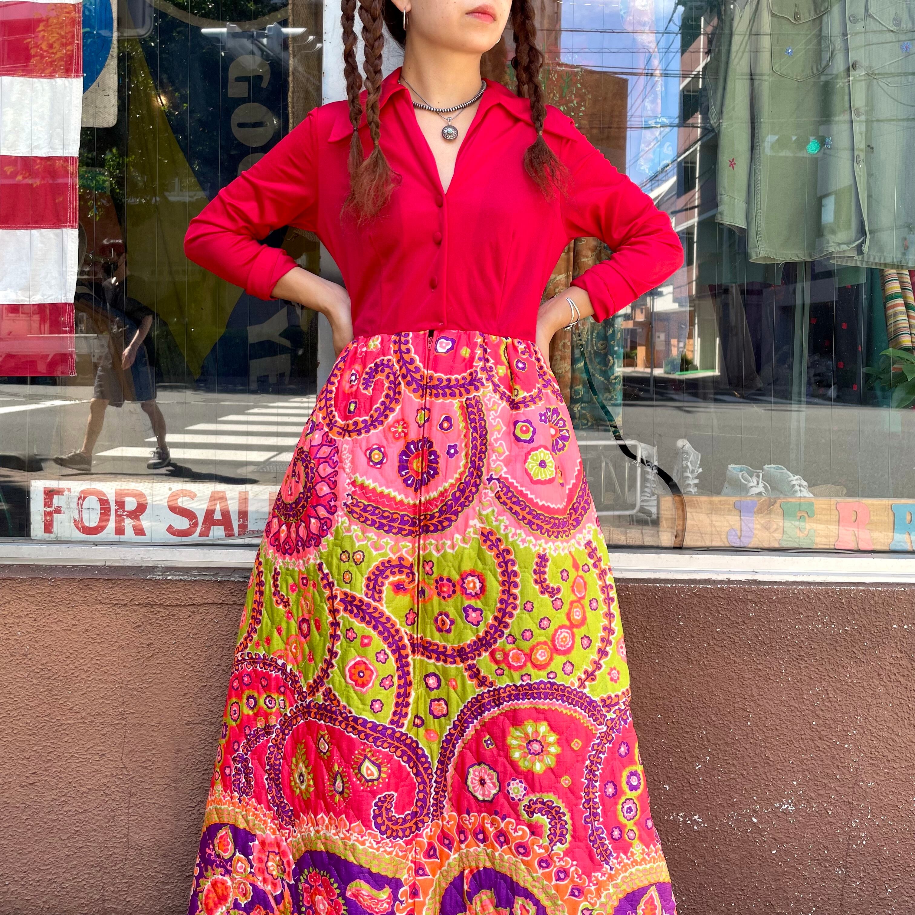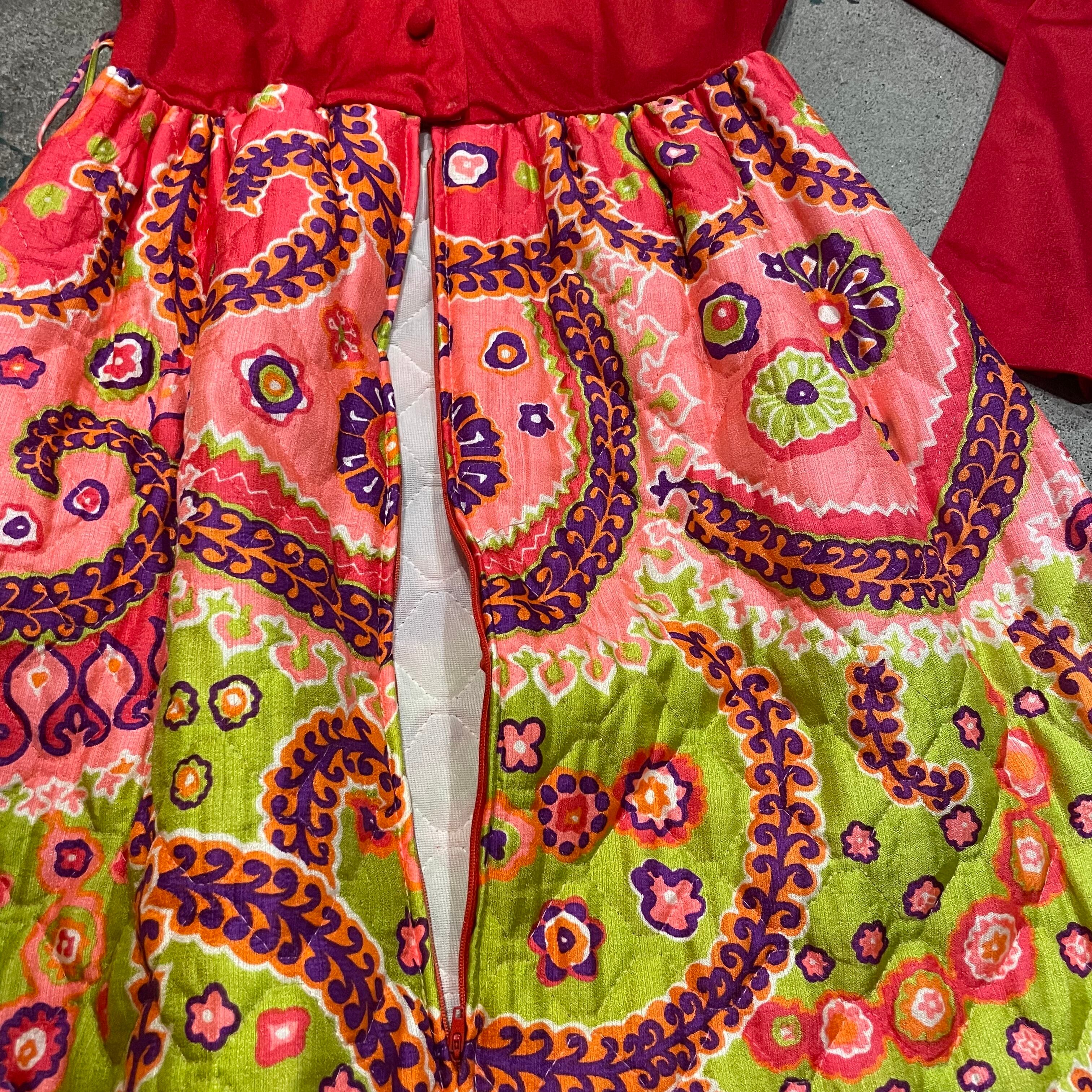 真っ赤なトップにキルティングスカートの切り替えがかわいいワンピースです。