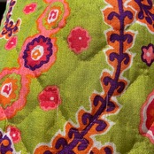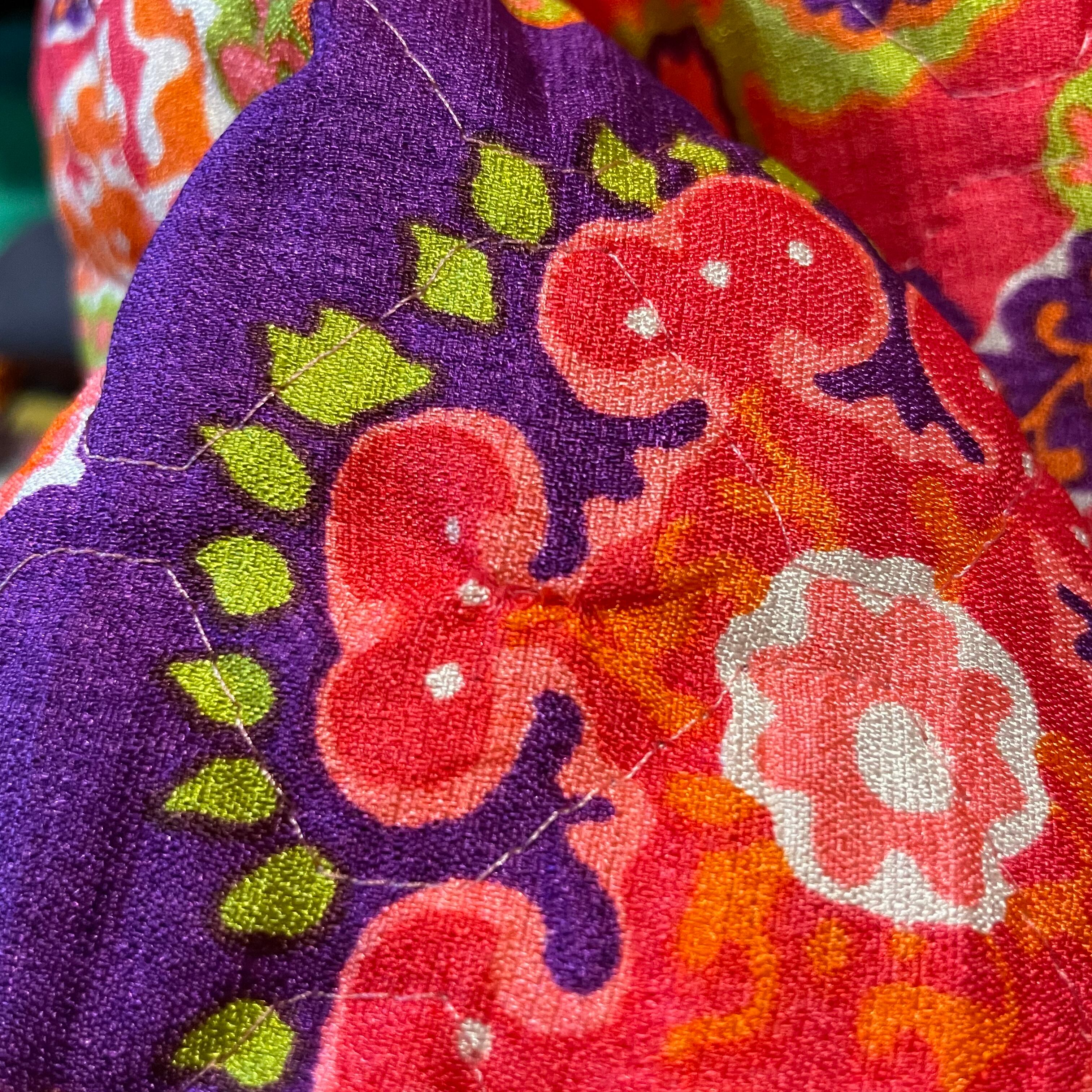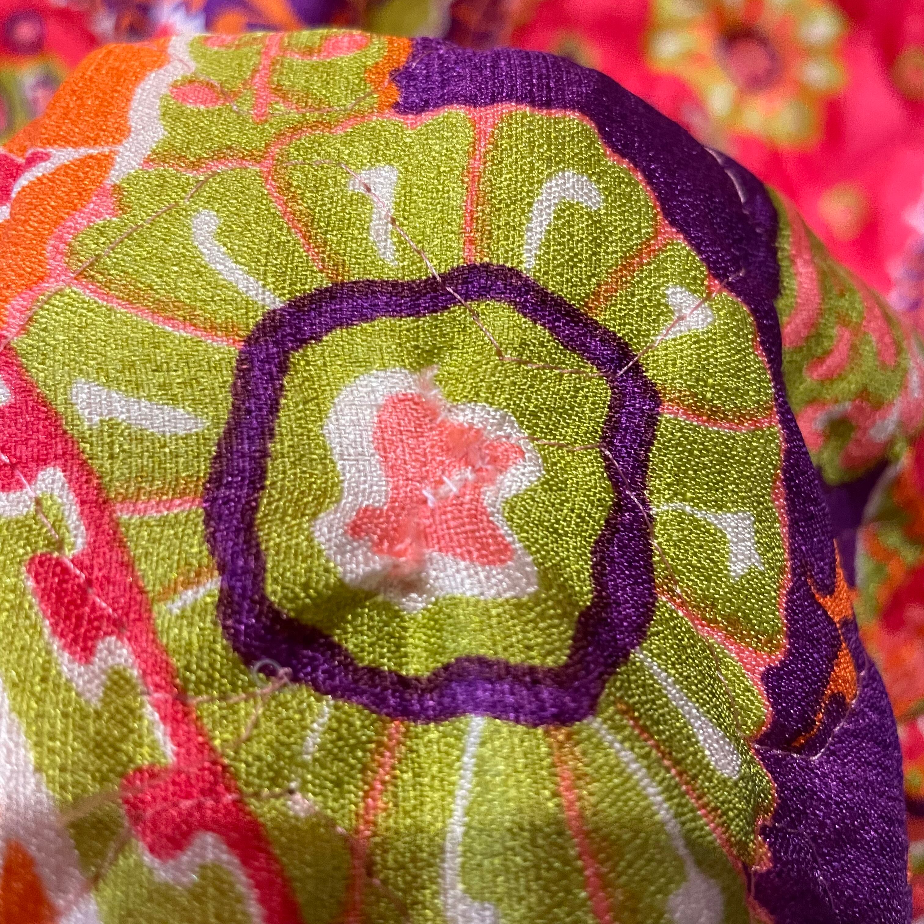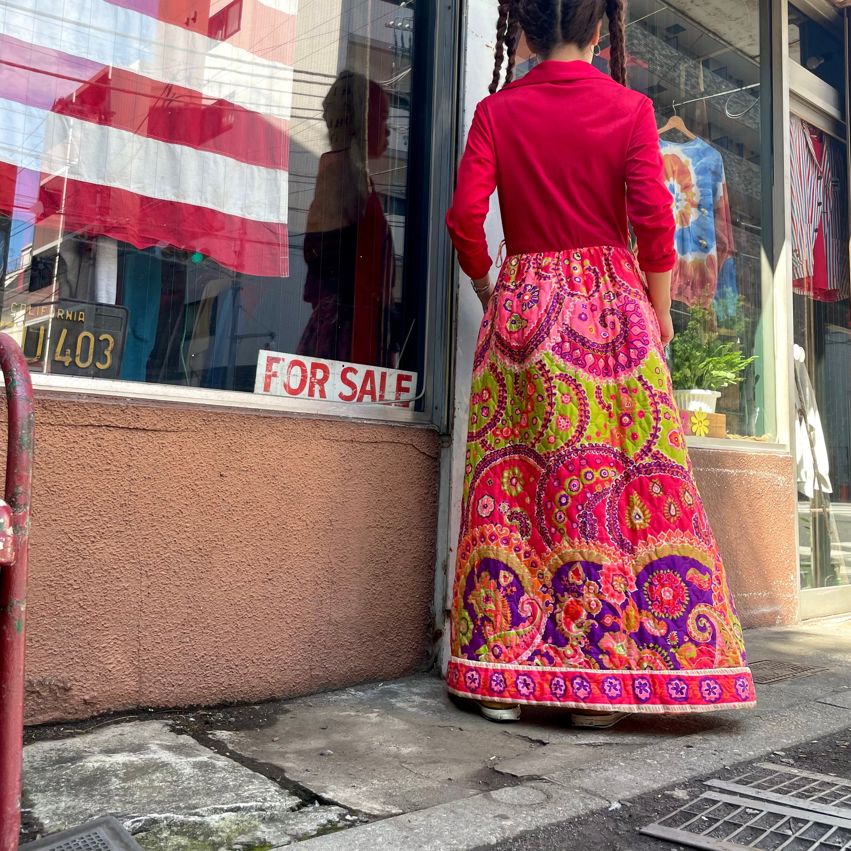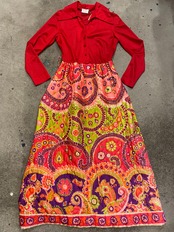大きな襟とペイズリーのような雰囲気の独特な柄が素敵ですね。