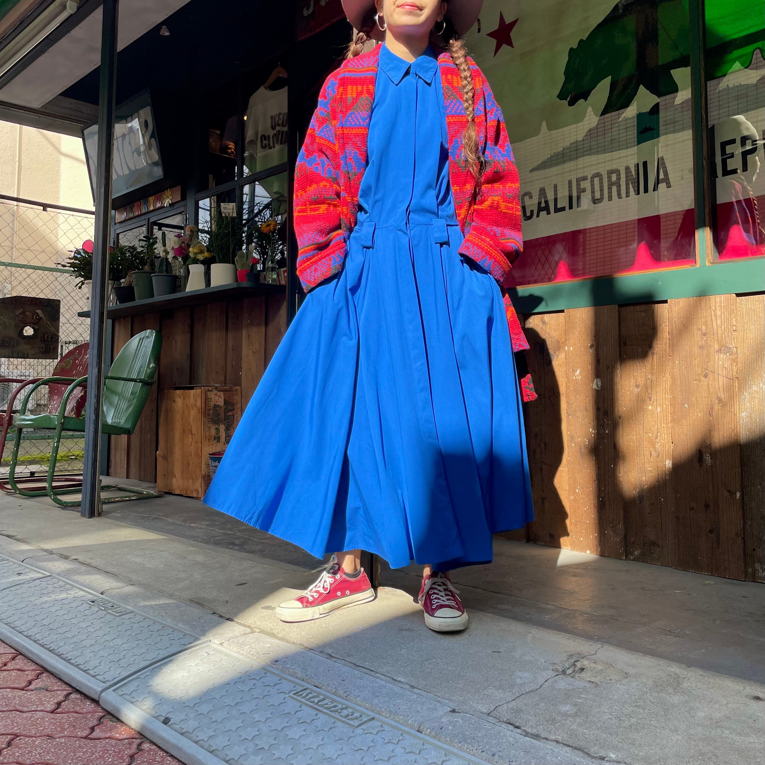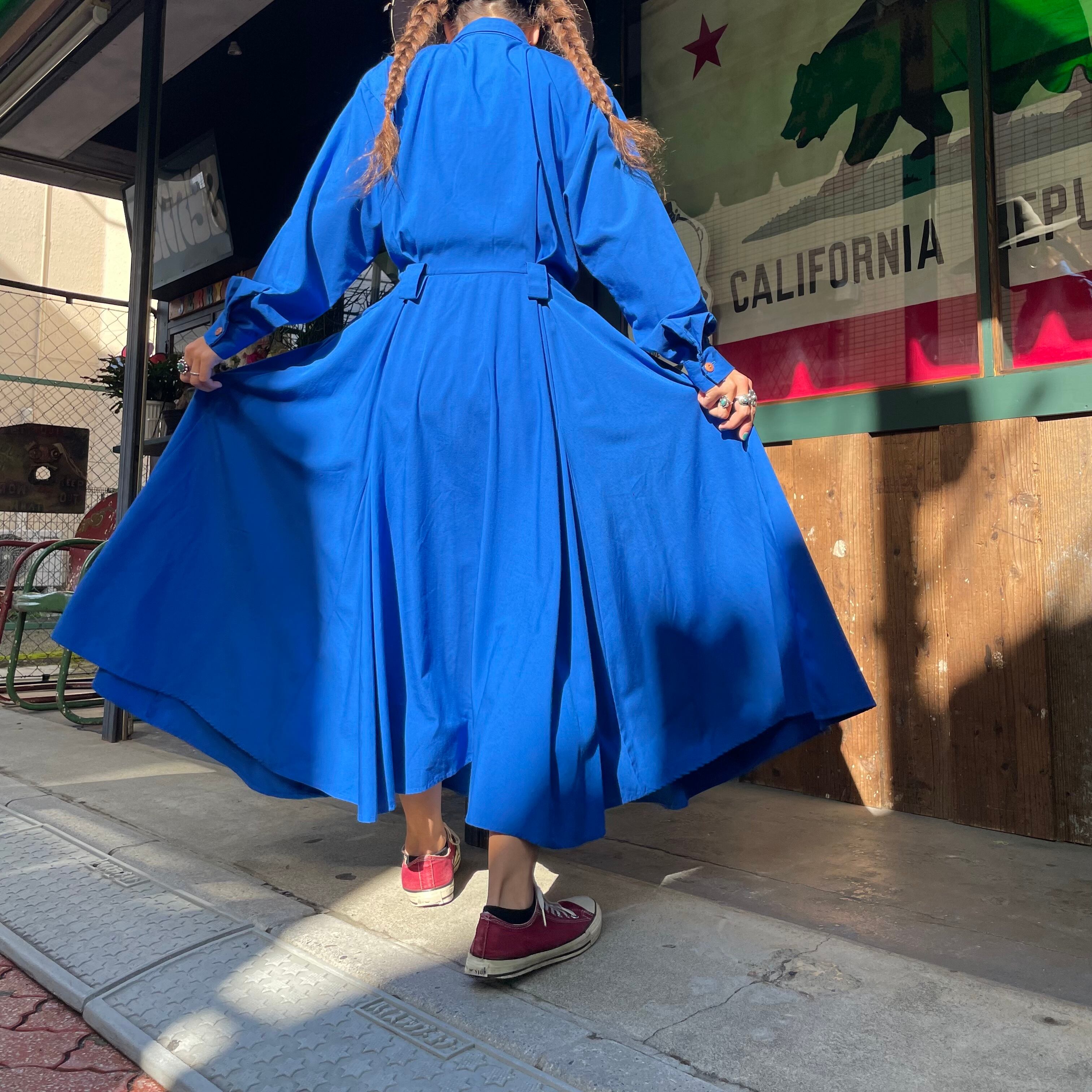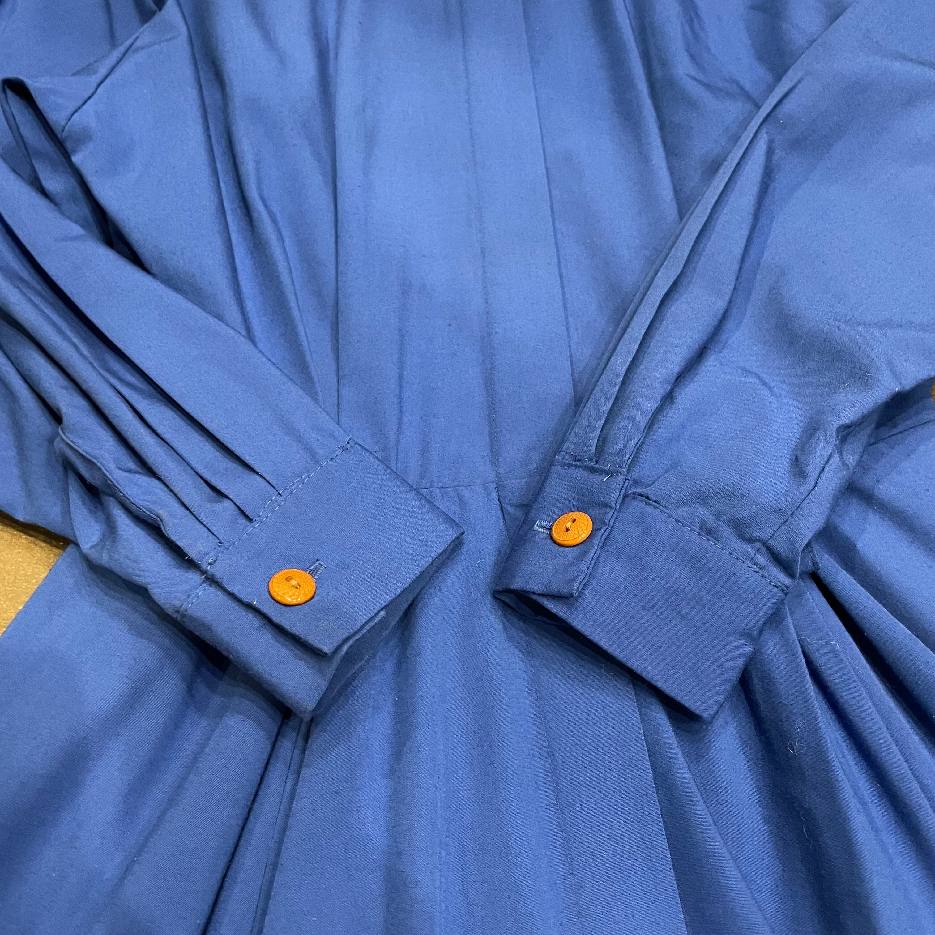 濃いめの青一色が潔くてかっこいいシャツワンピースです。