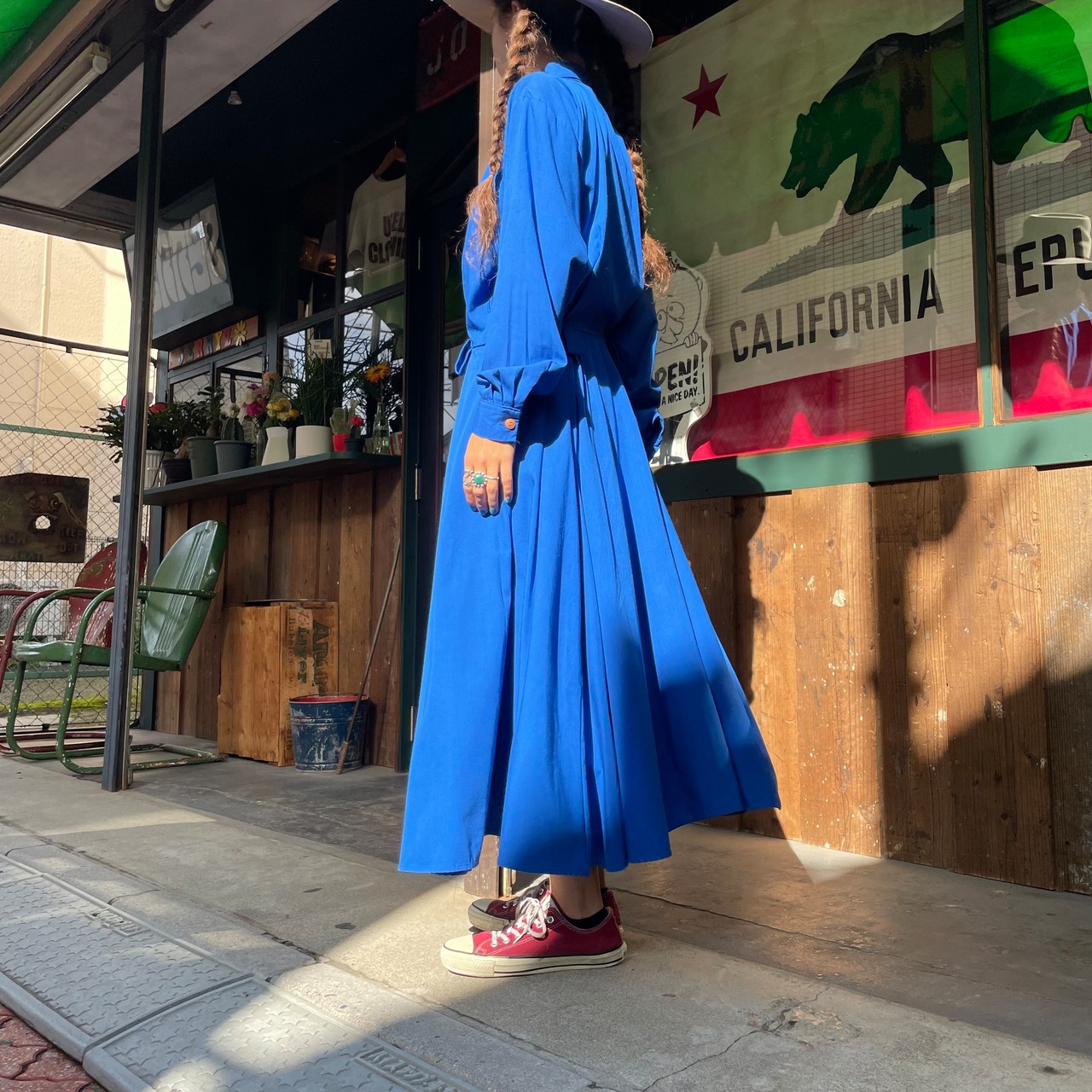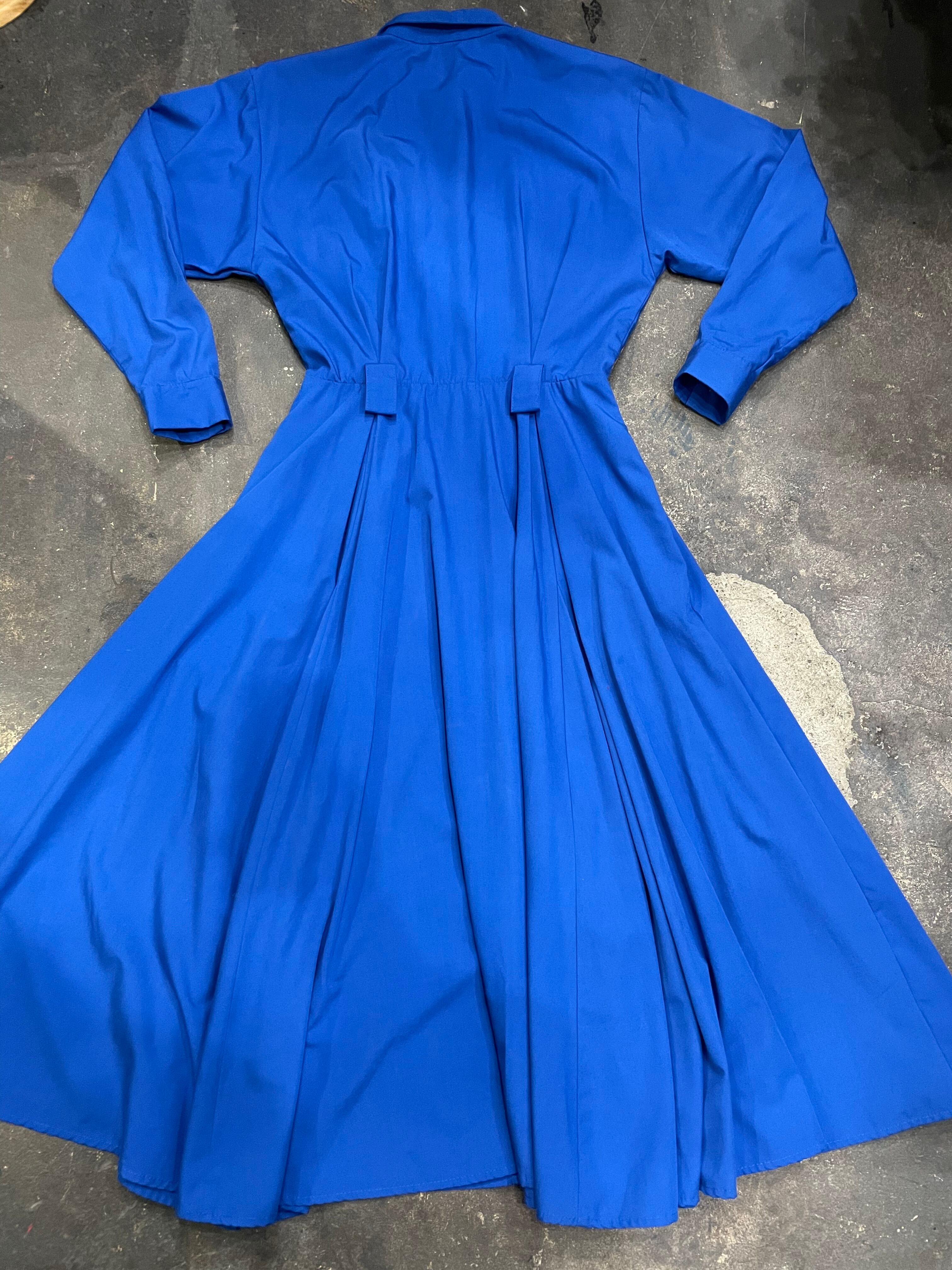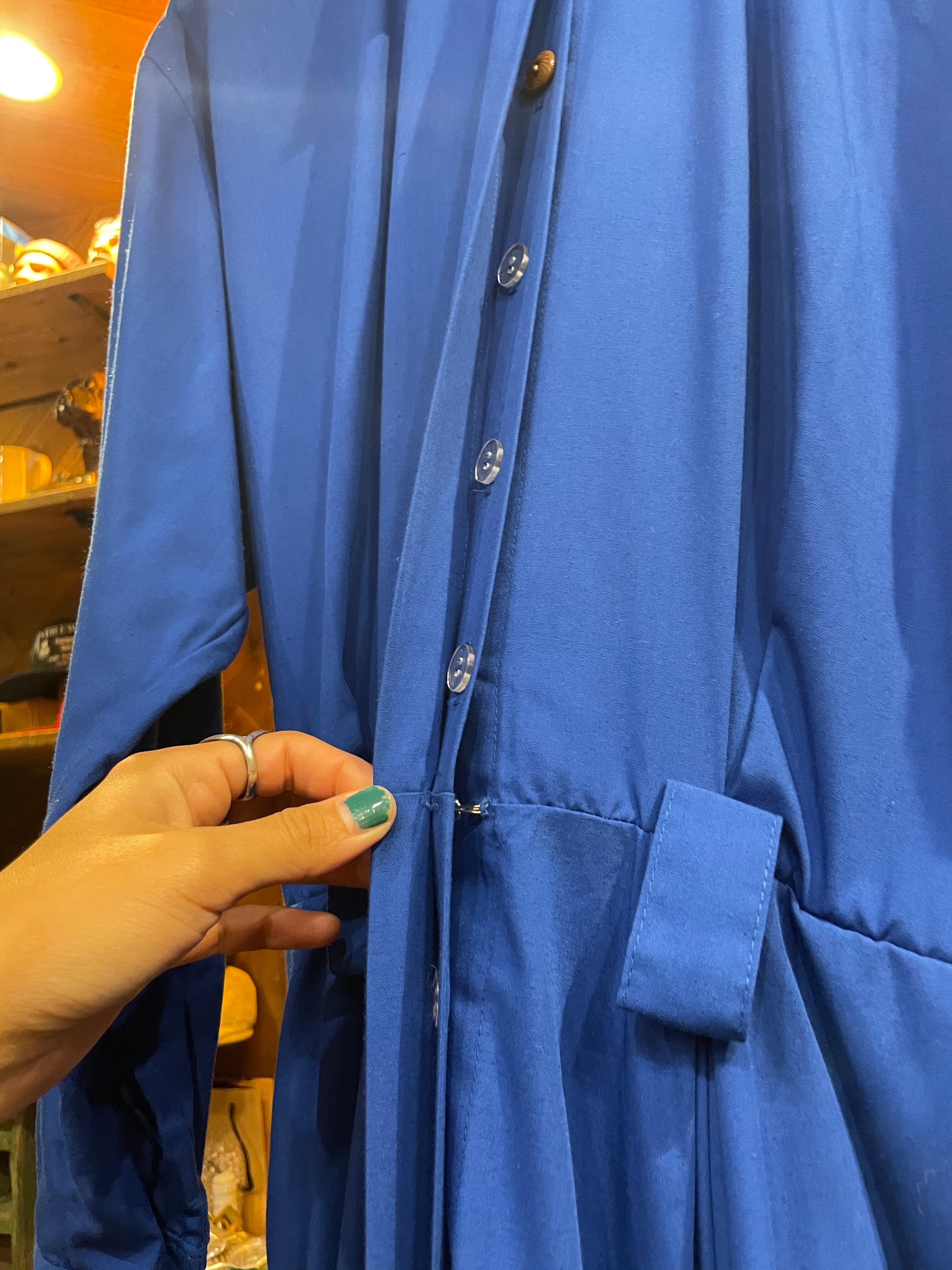 濃いめの青一色が潔くてかっこいいシャツワンピースです。