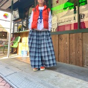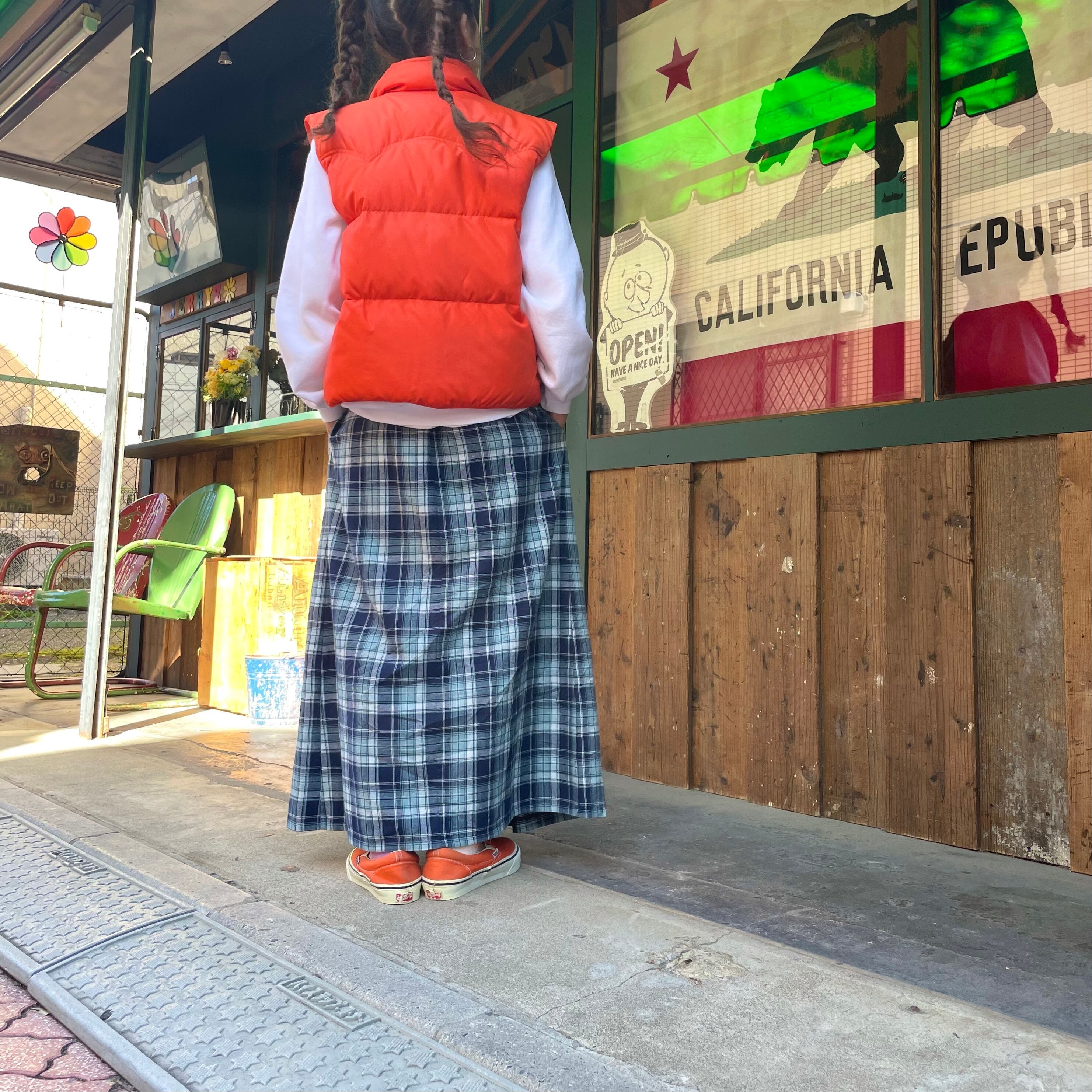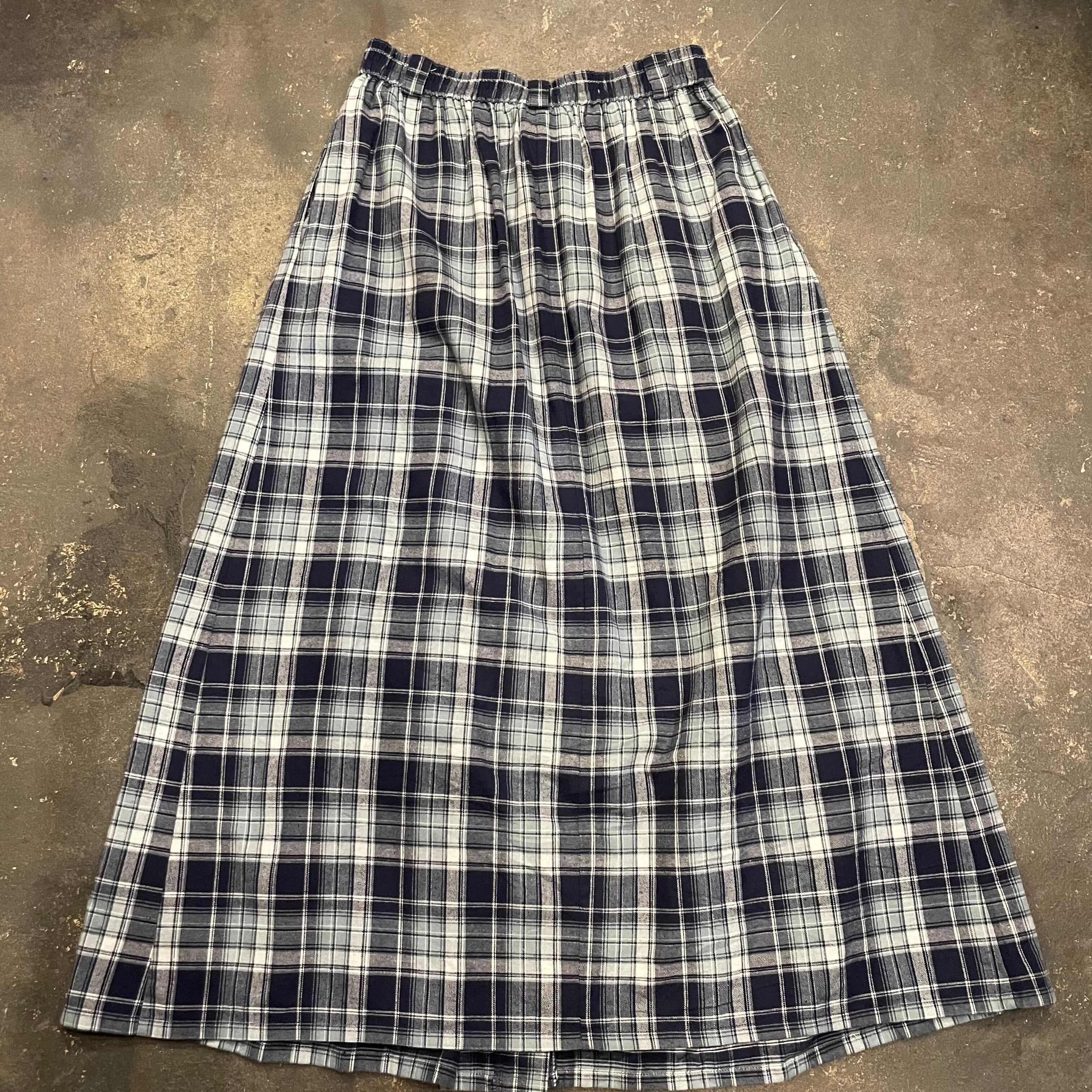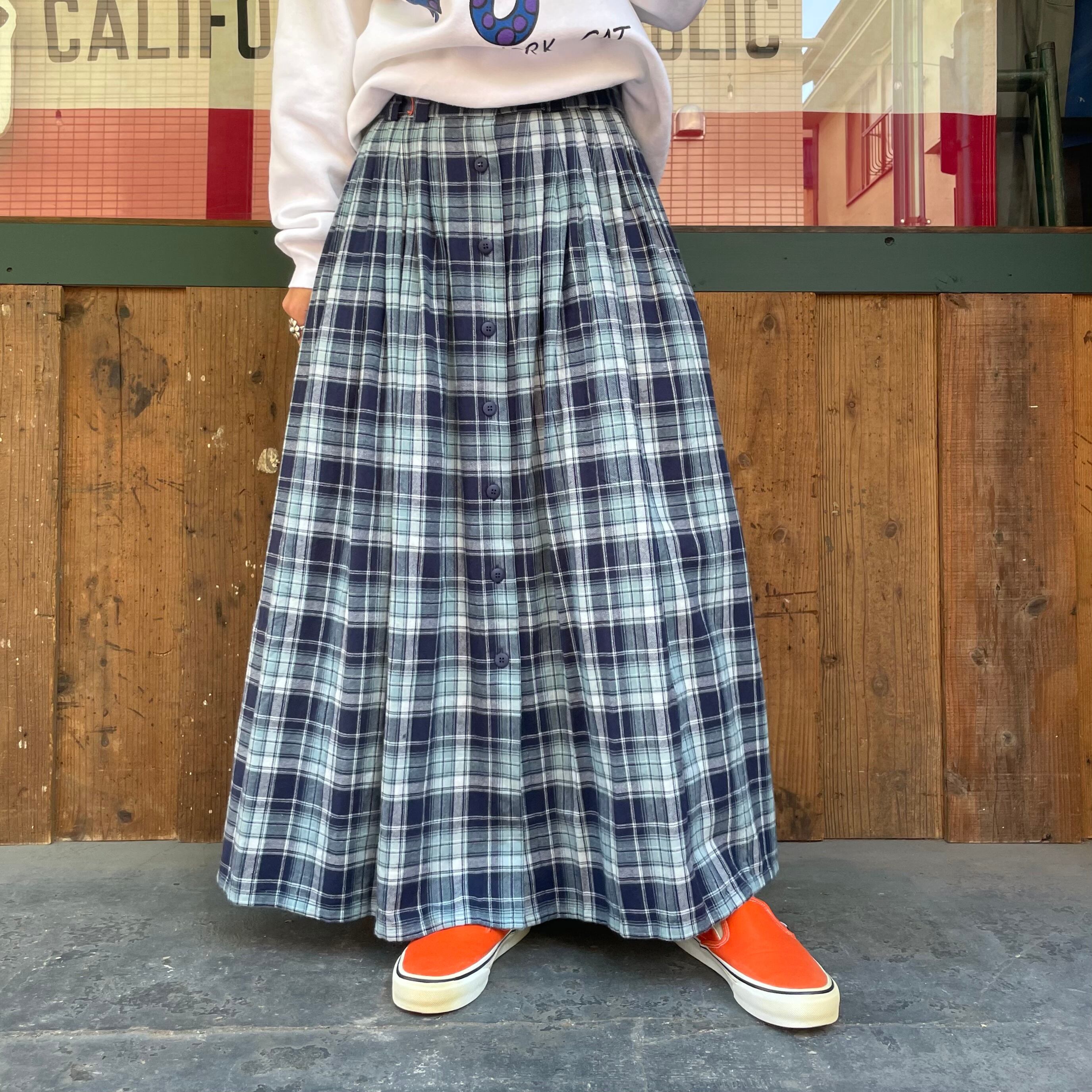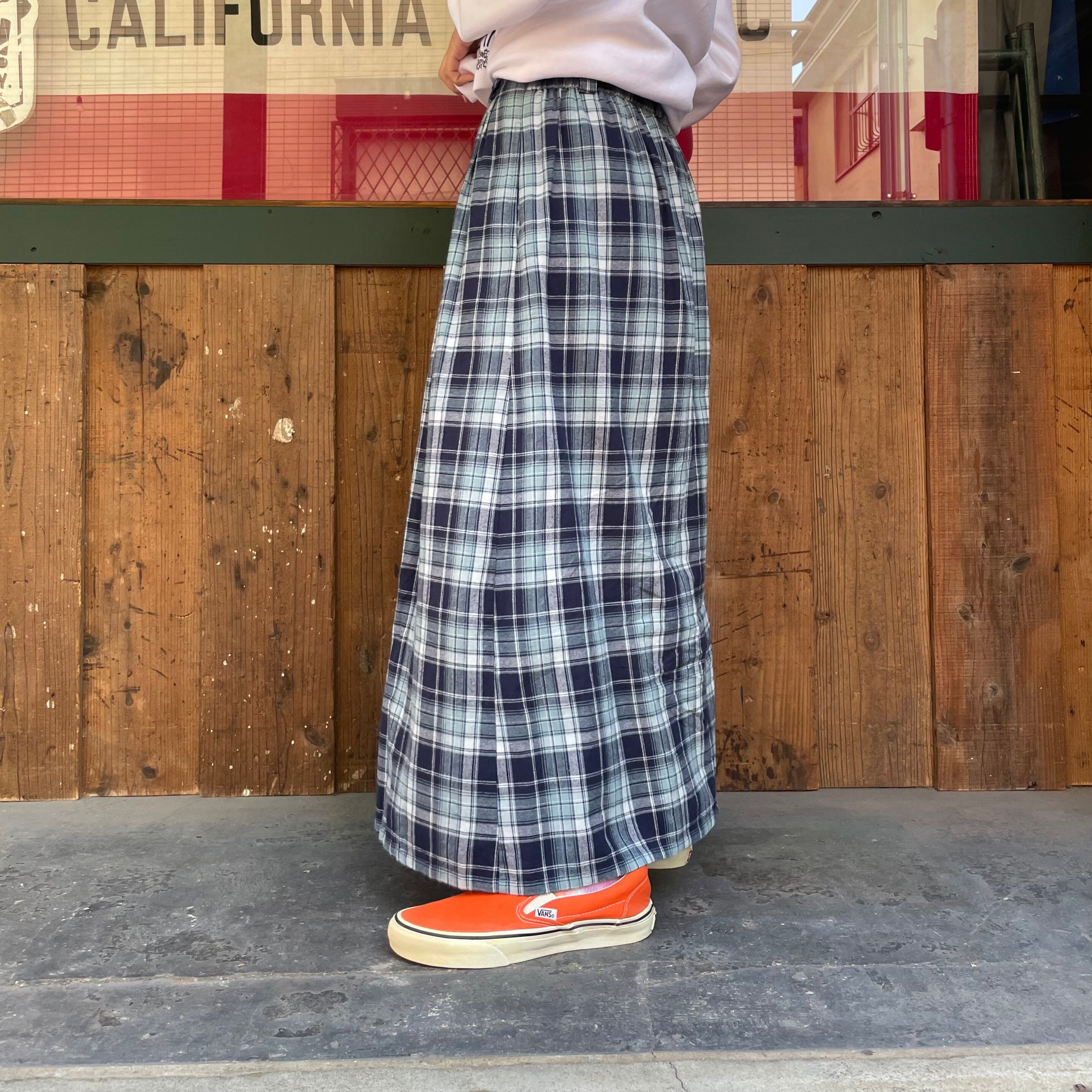 青系のチェック柄がかわいいコットン素材のロングスカートです。
