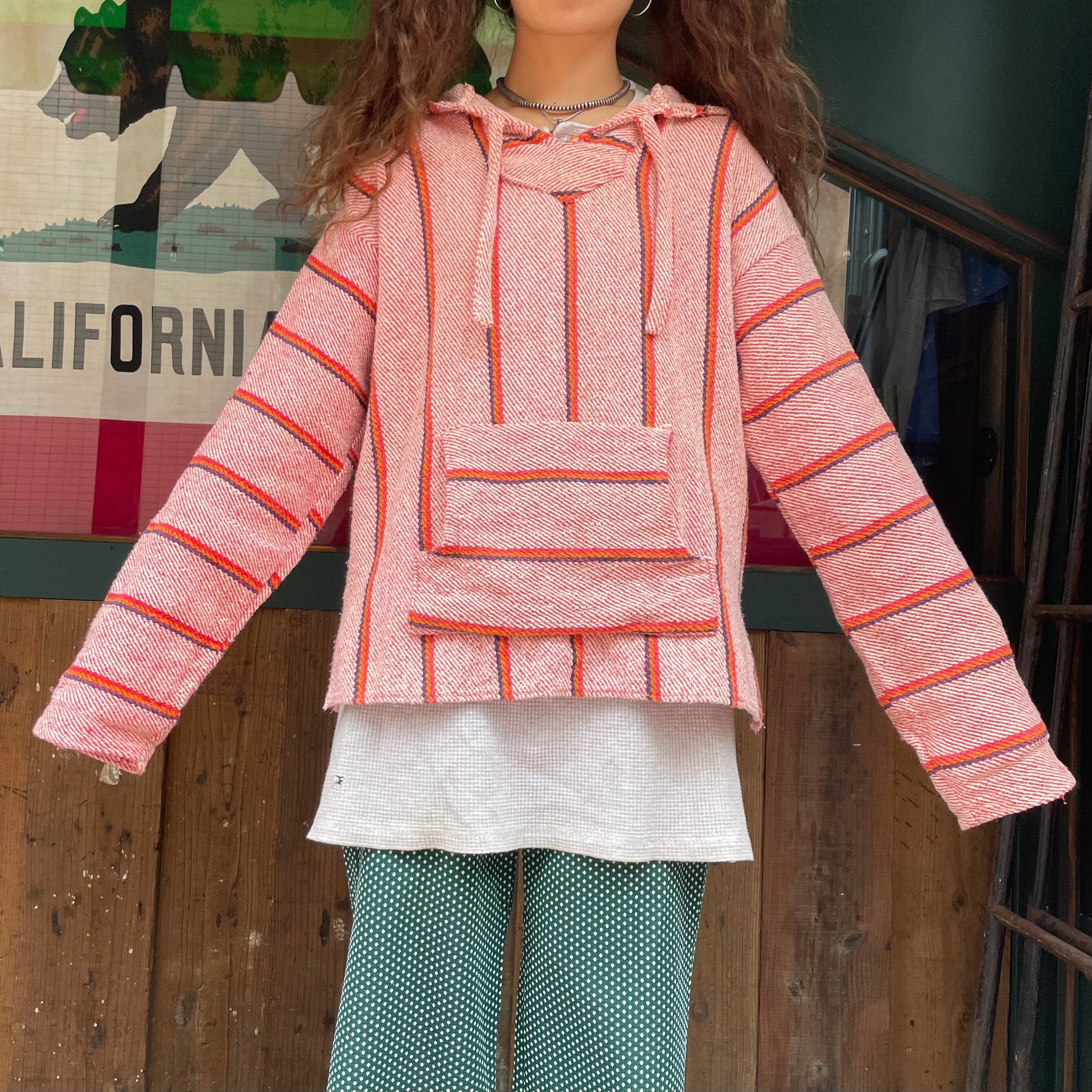オレンジっぽいピンクの色味が可愛いメキシカンパーカーです。