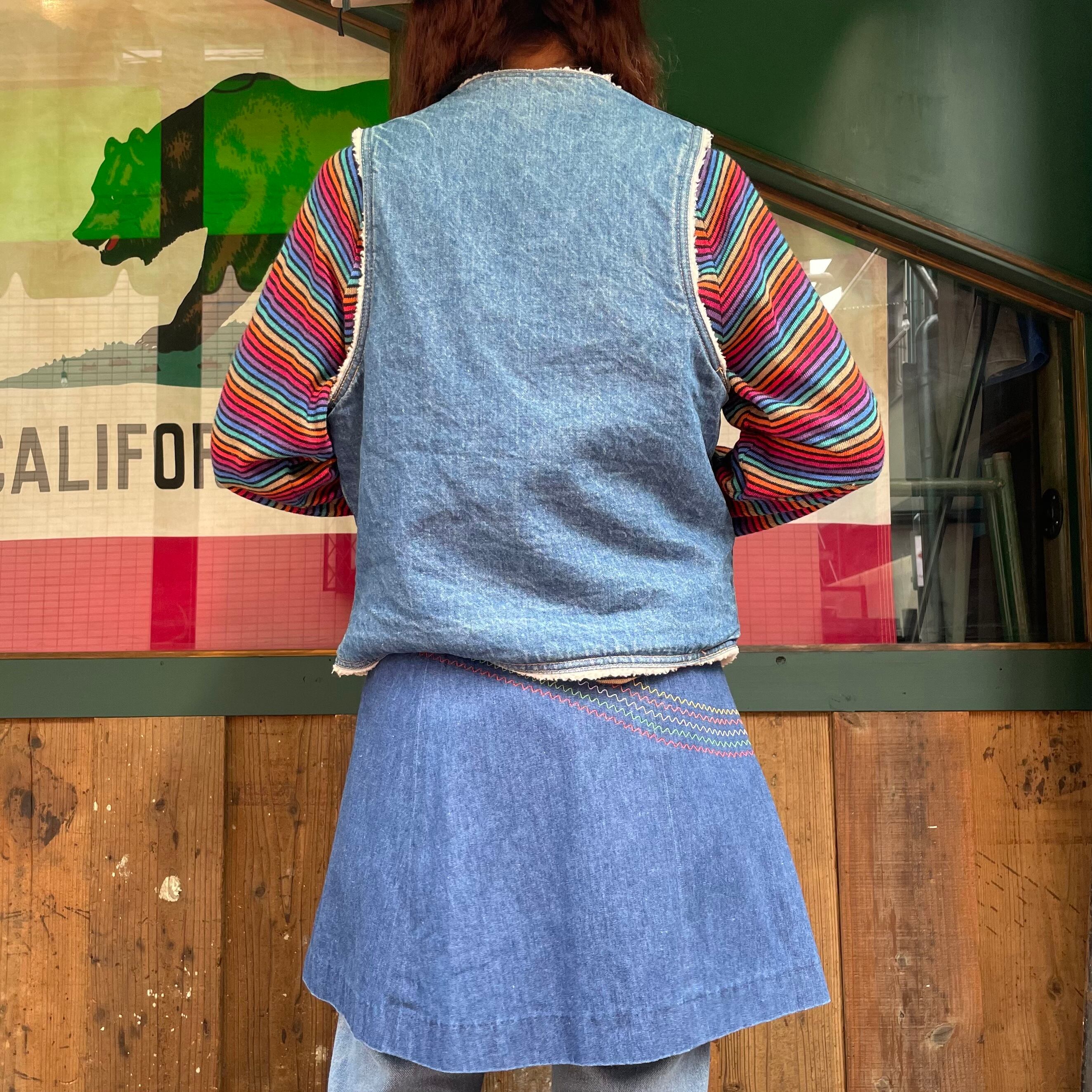 程良い色落ち具合で合わせやすいと思いますし、袖ぐりが広めに開いているので軽めのアウターの上にも、ニットやスウェットの上にも羽織れて暖かいです。
