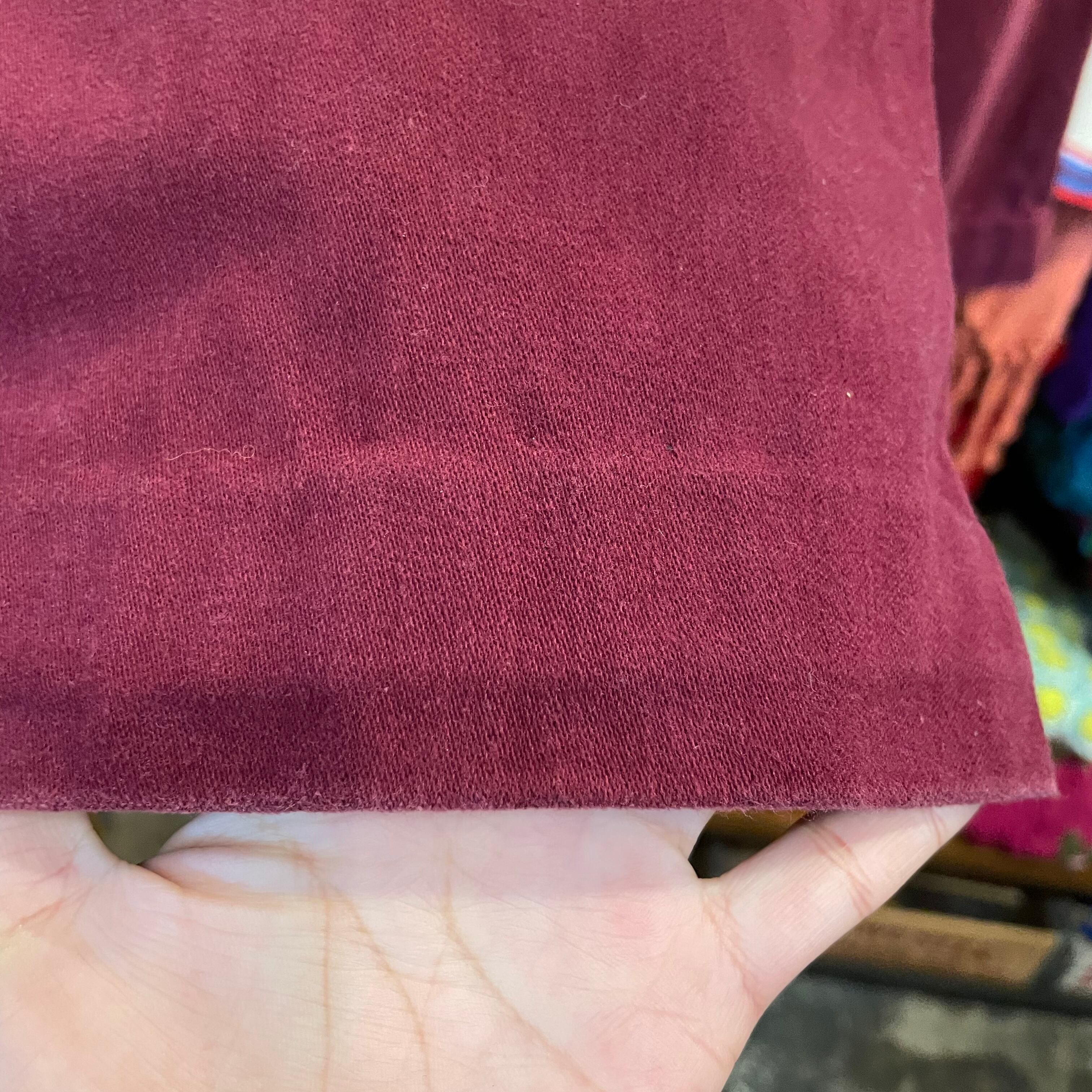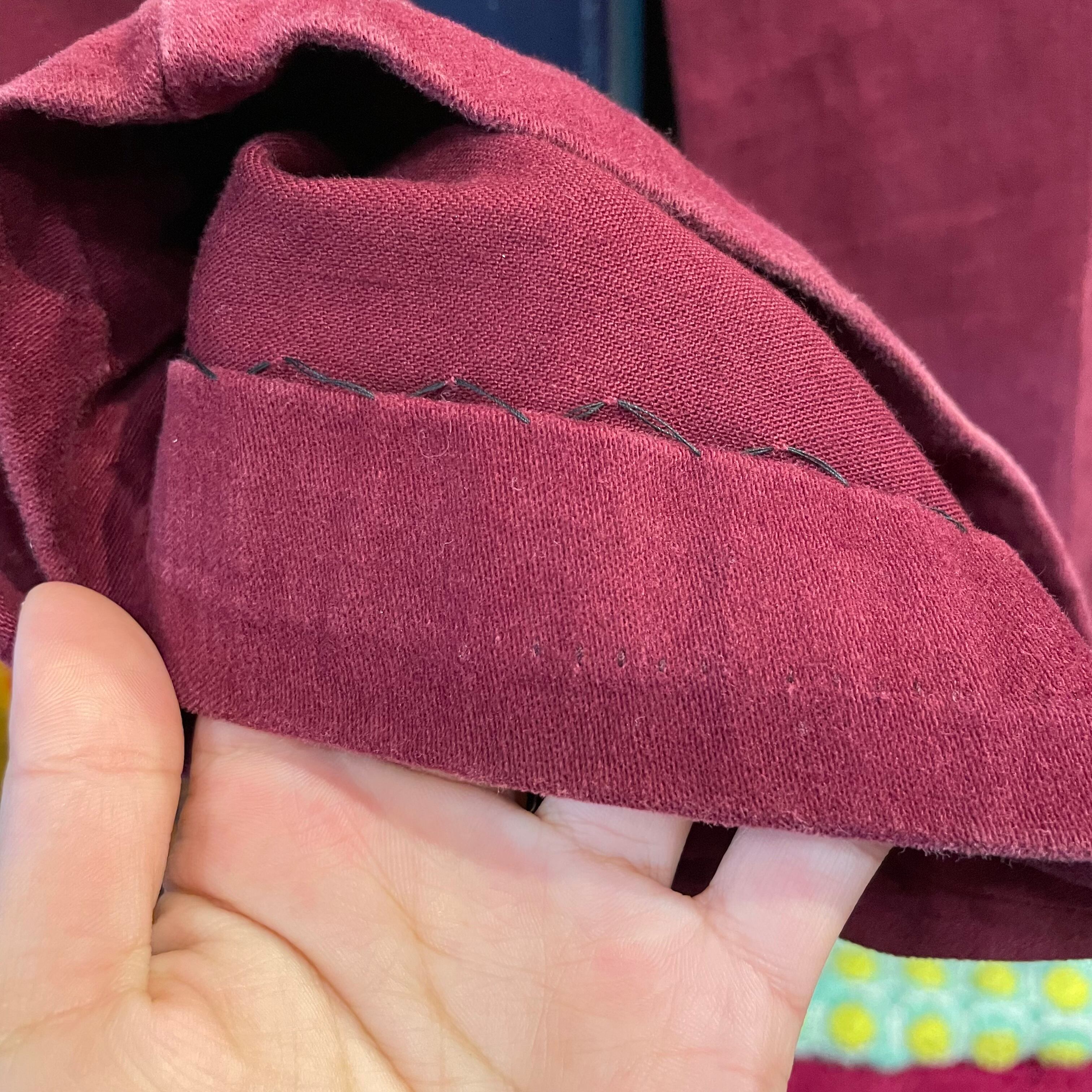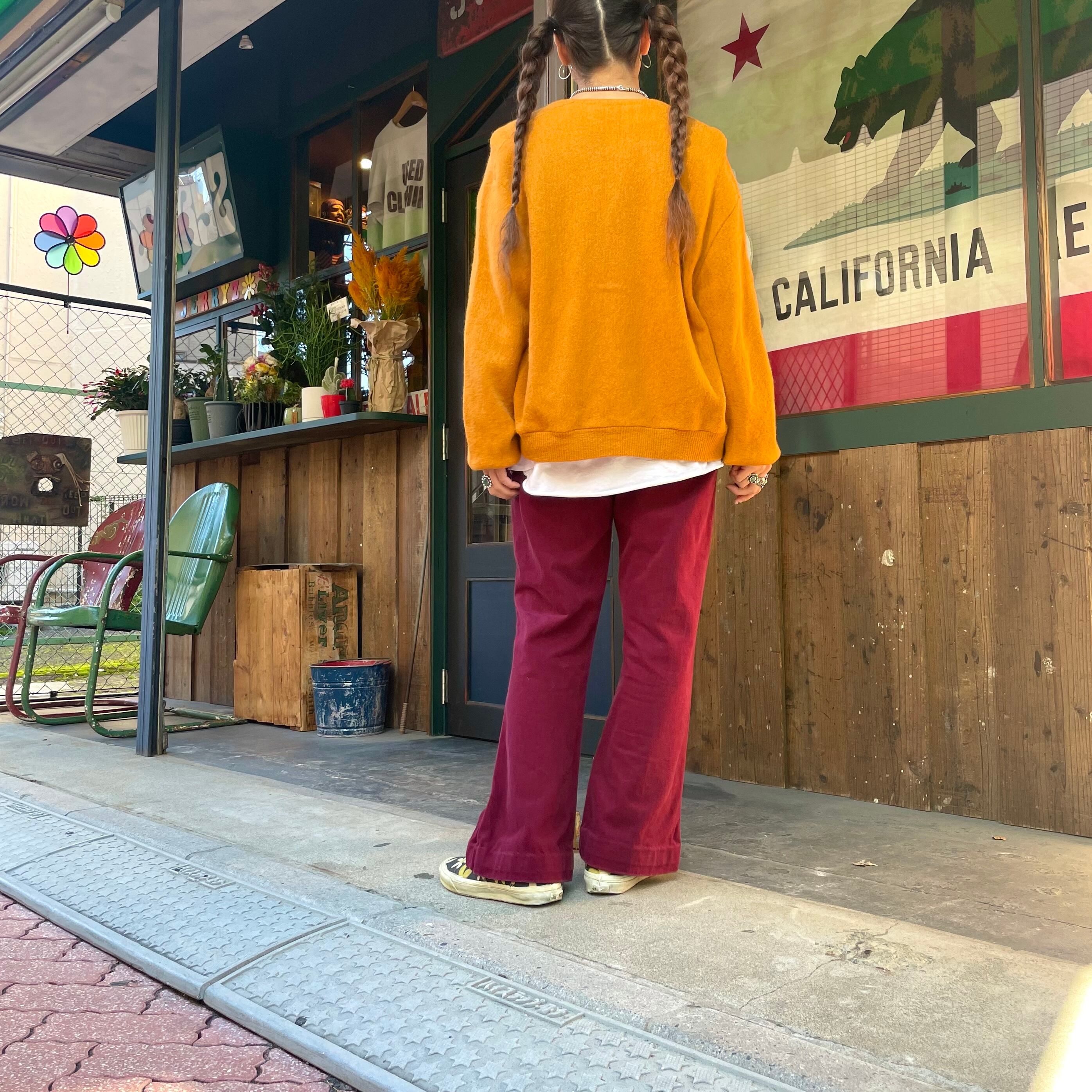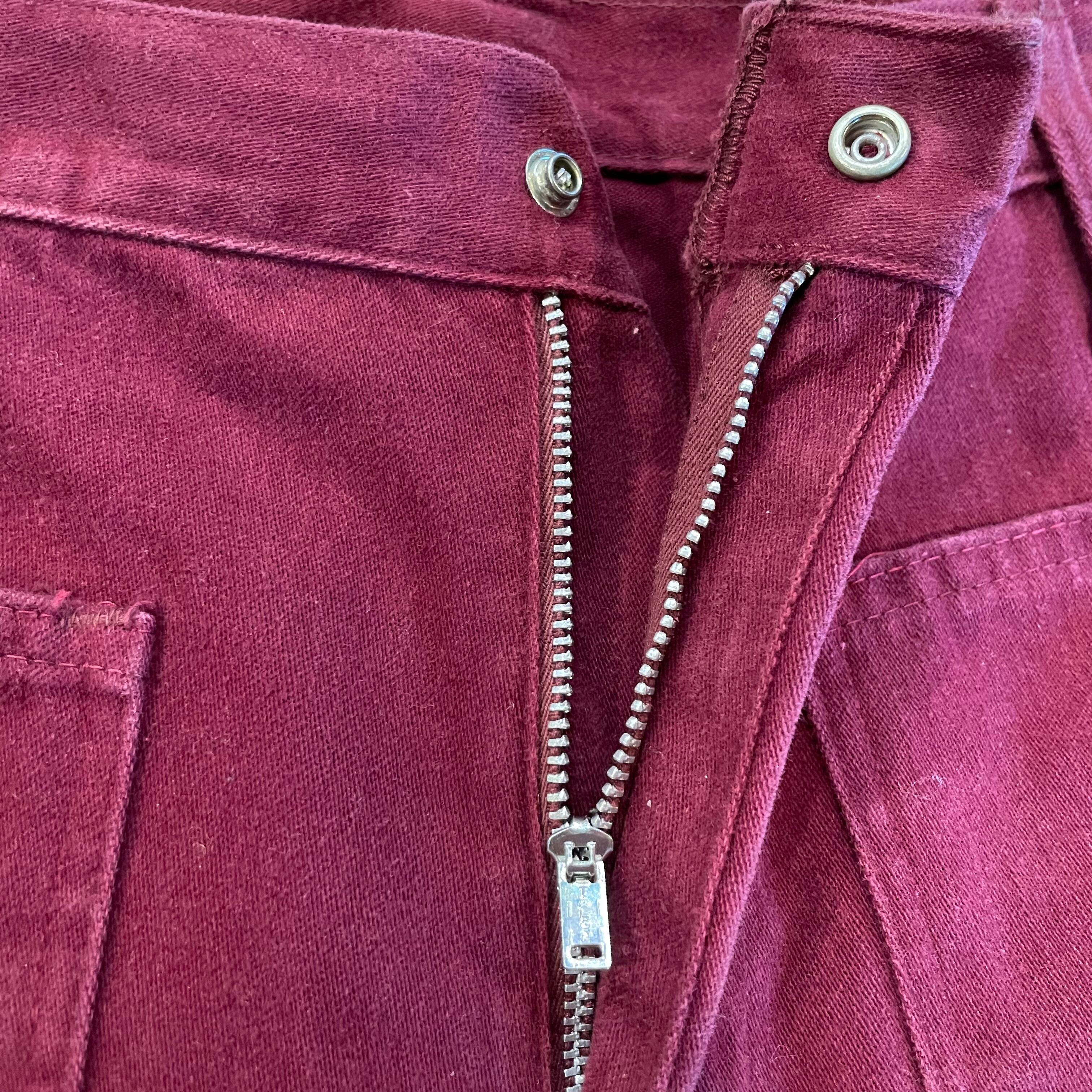 えんじのようなチェリーレッドのような、絶妙な色味がかわいいフレアパンツです。
