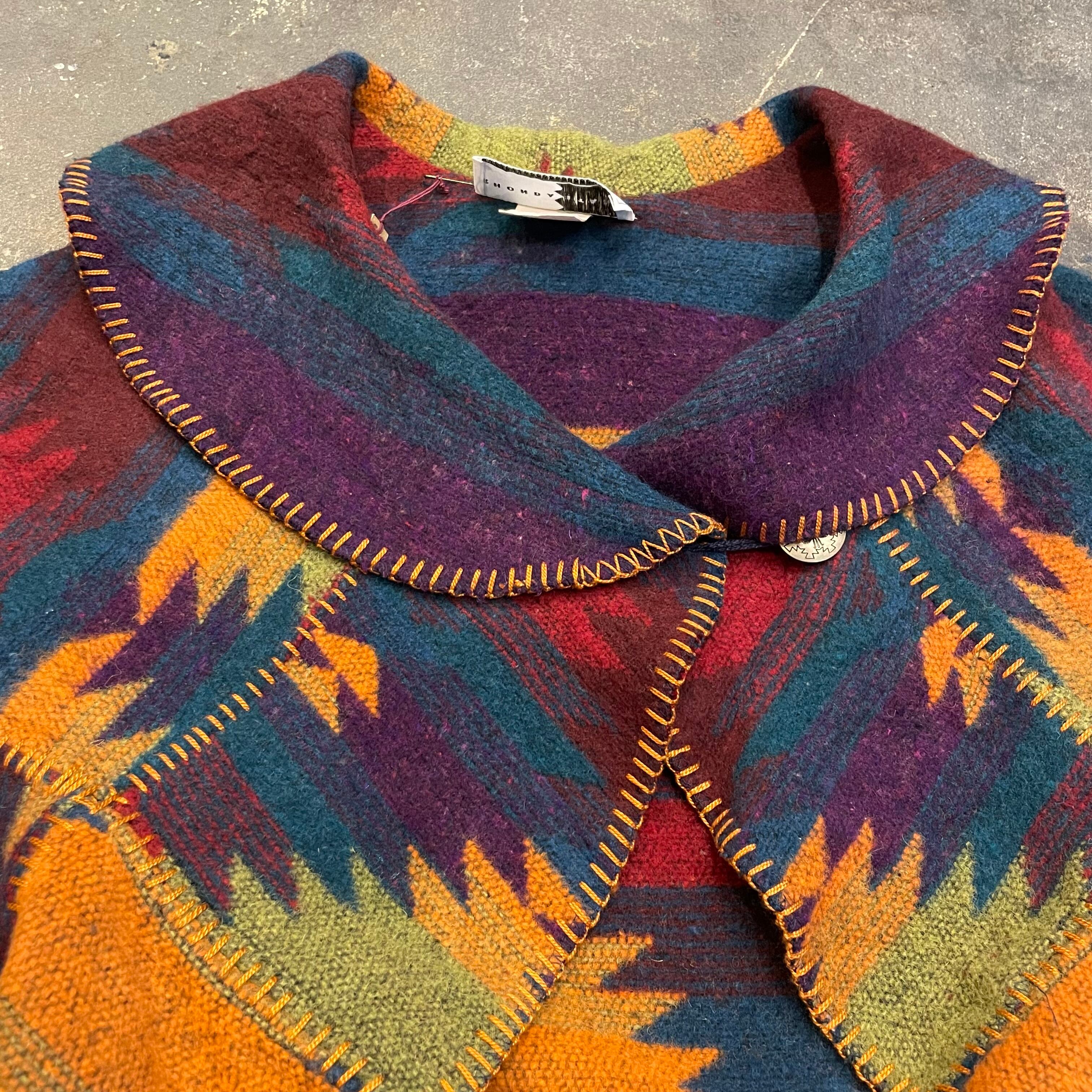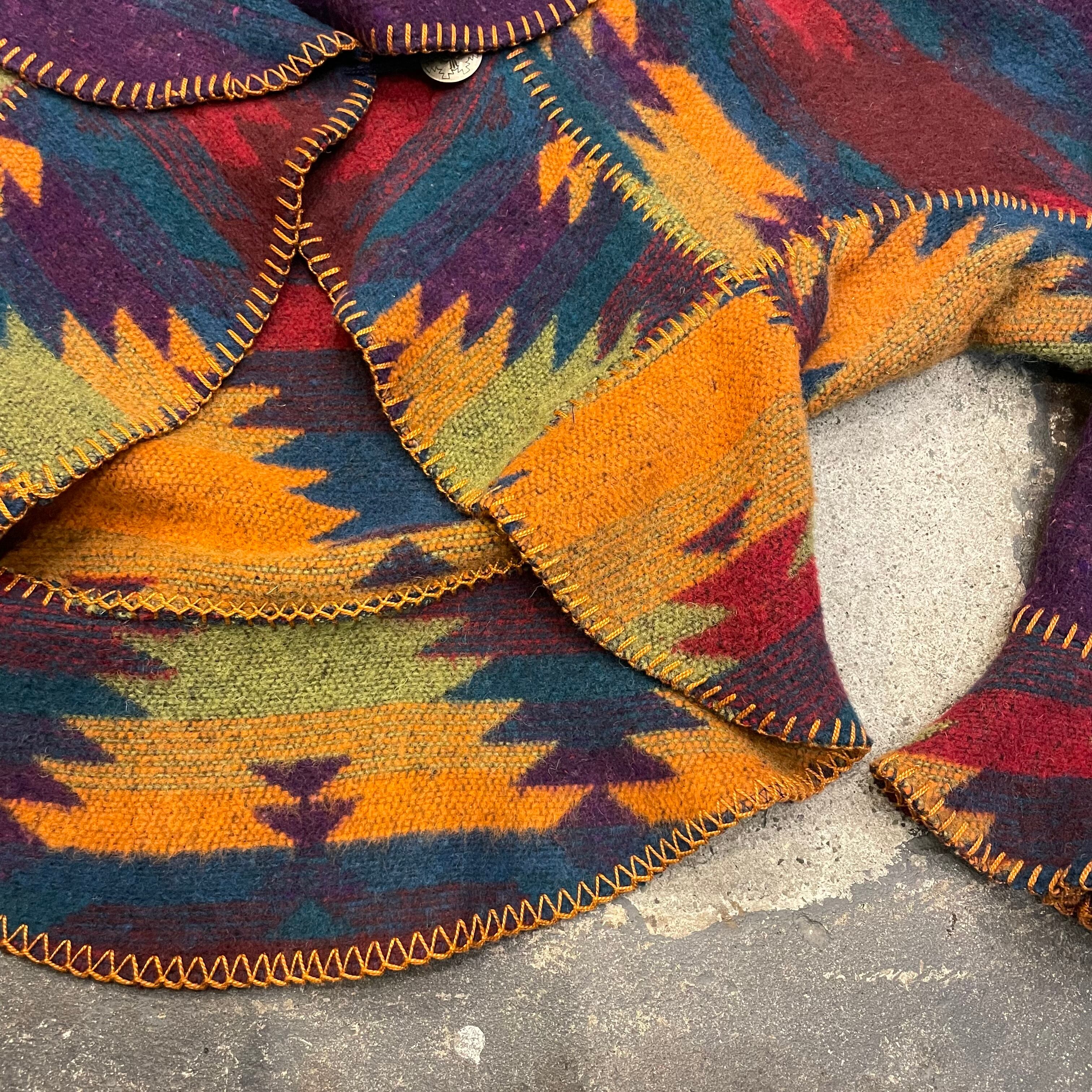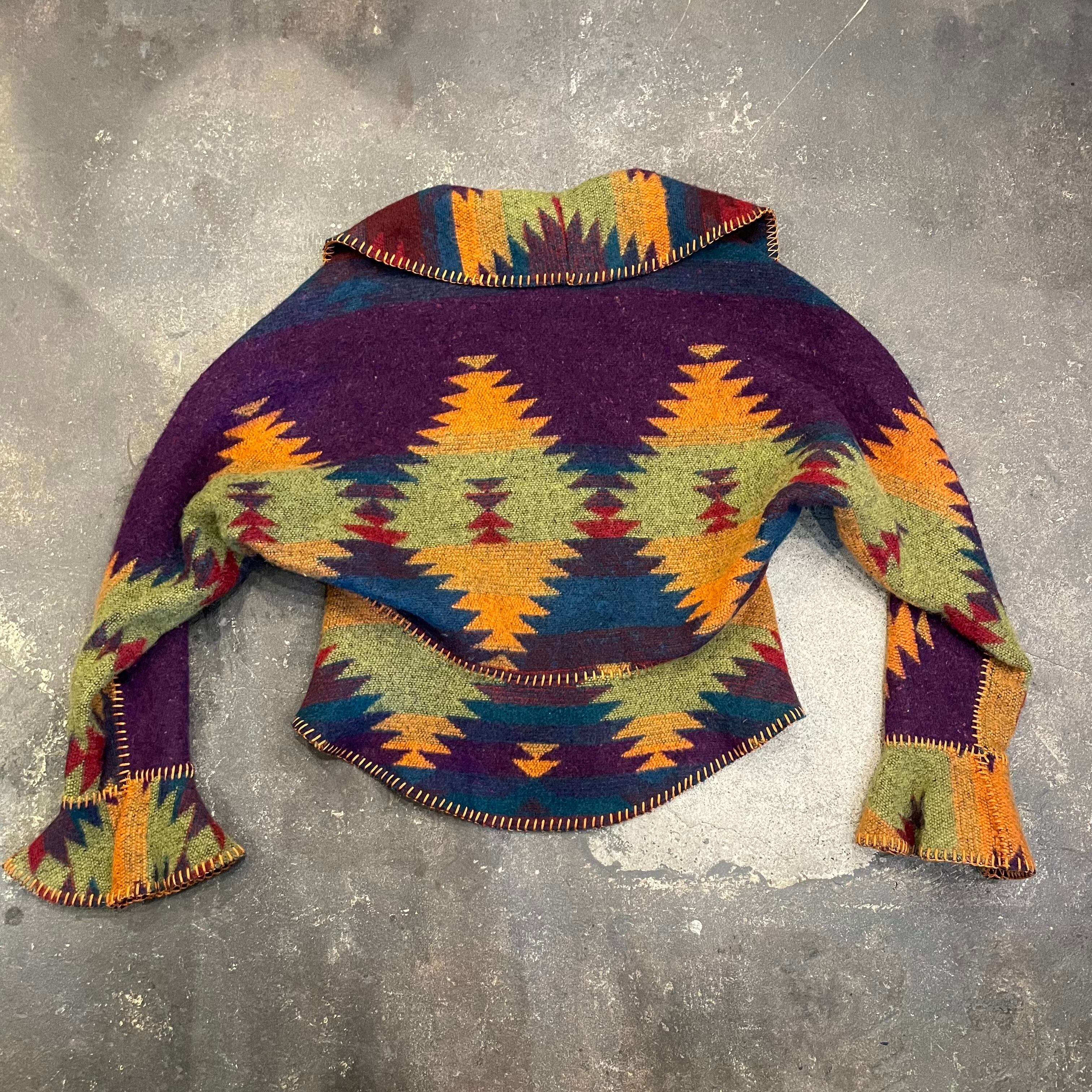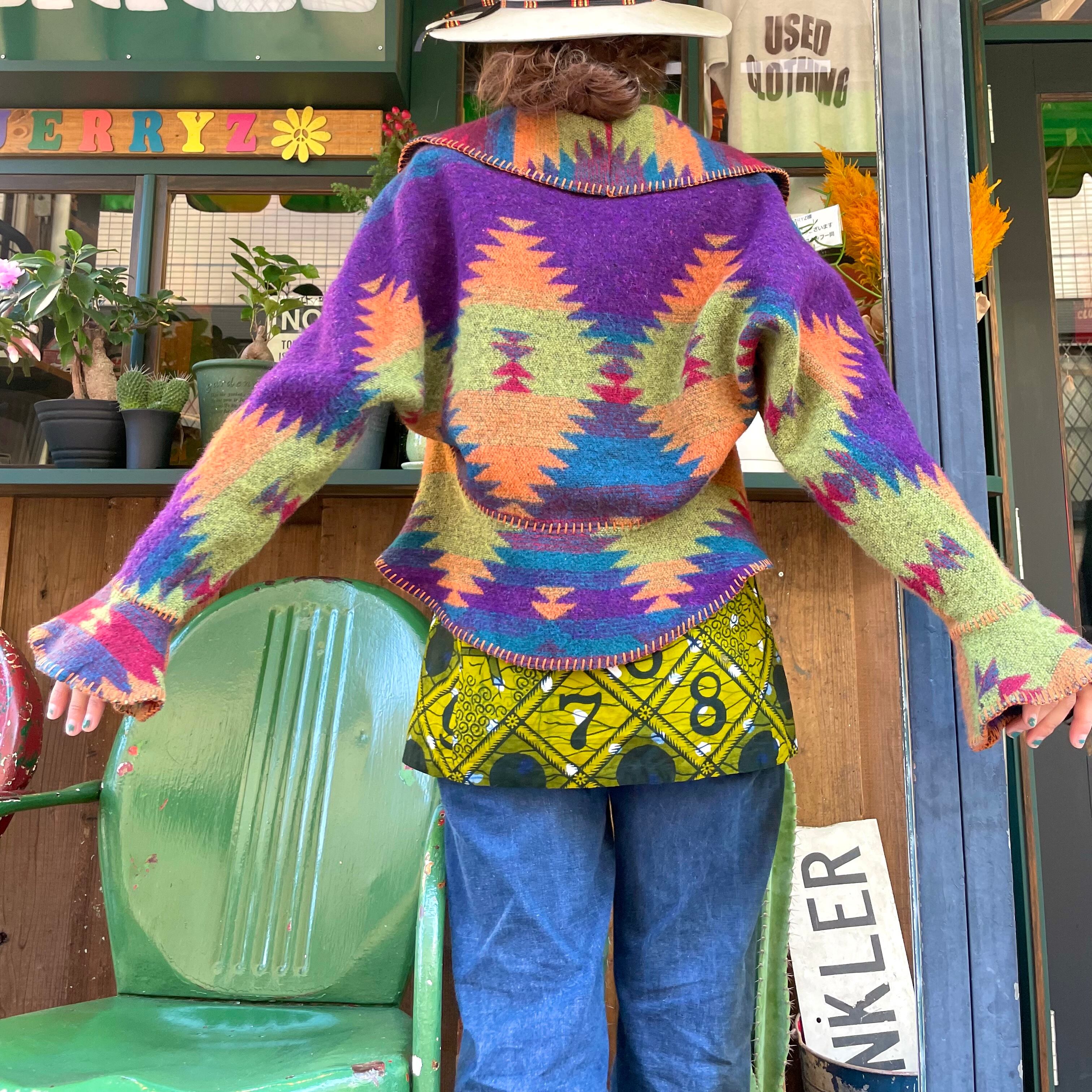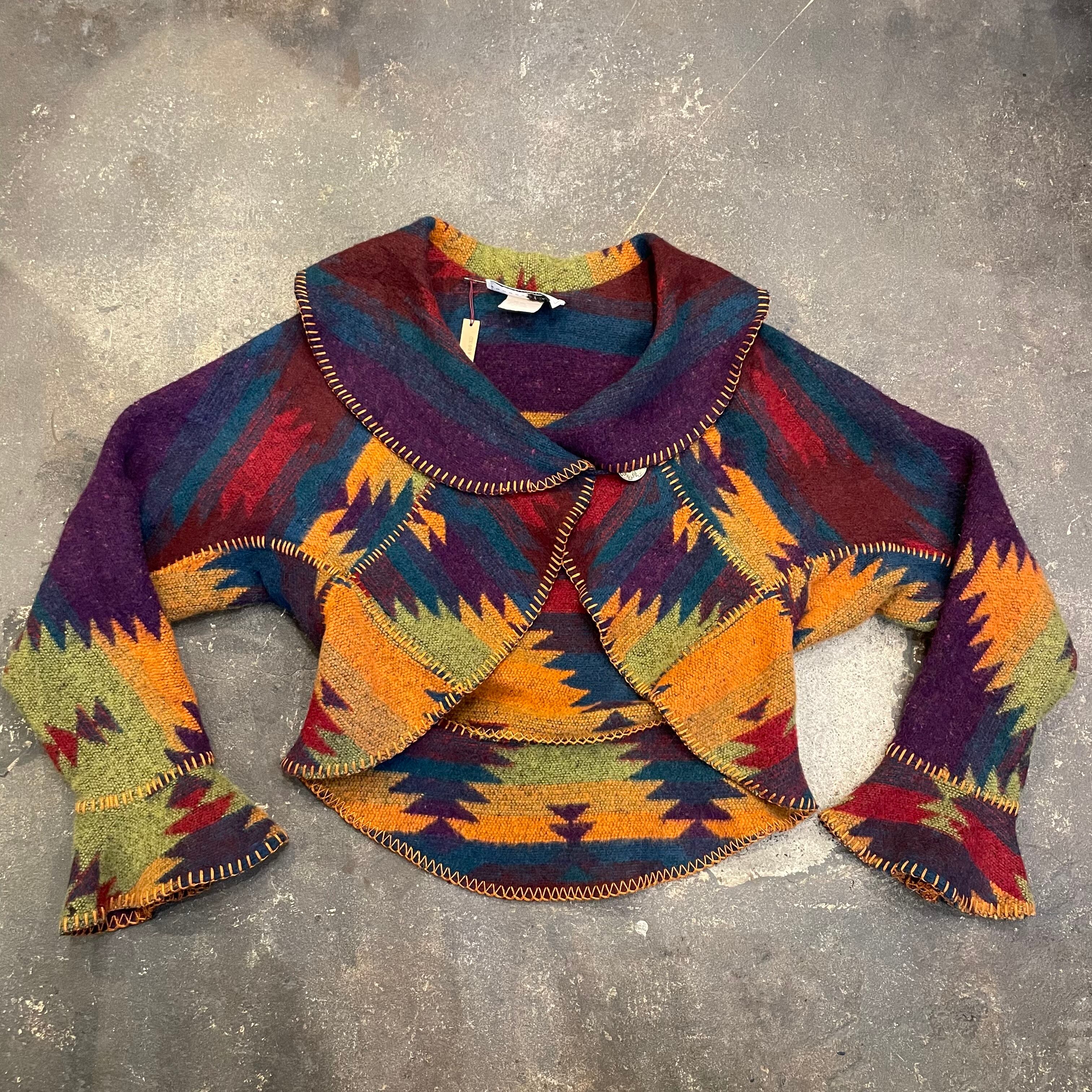 不思議なシルエットでツギハギしてあるデザインも、ショート丈なところも、袖口のフレア感も雰囲気たっぷりでかわいいです。