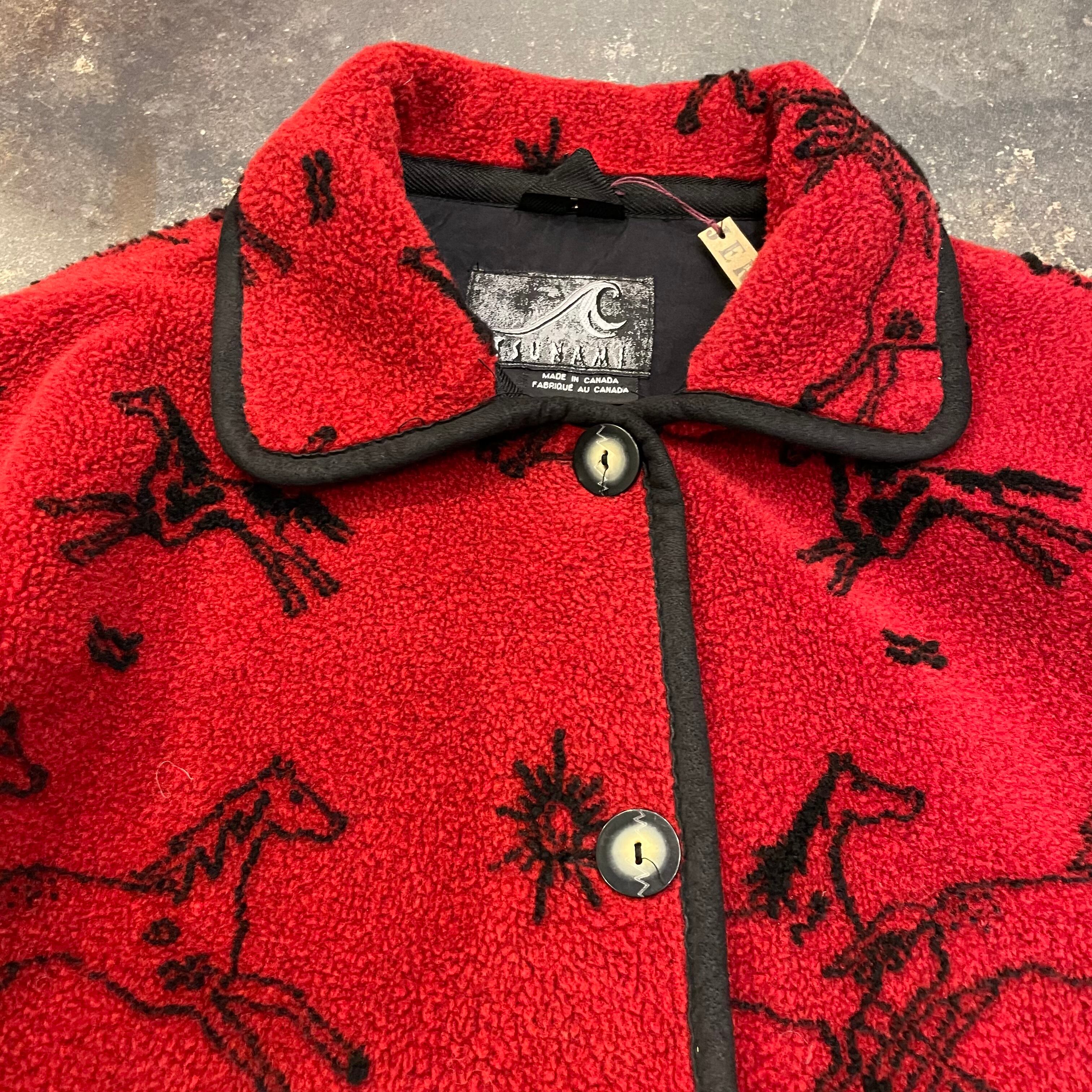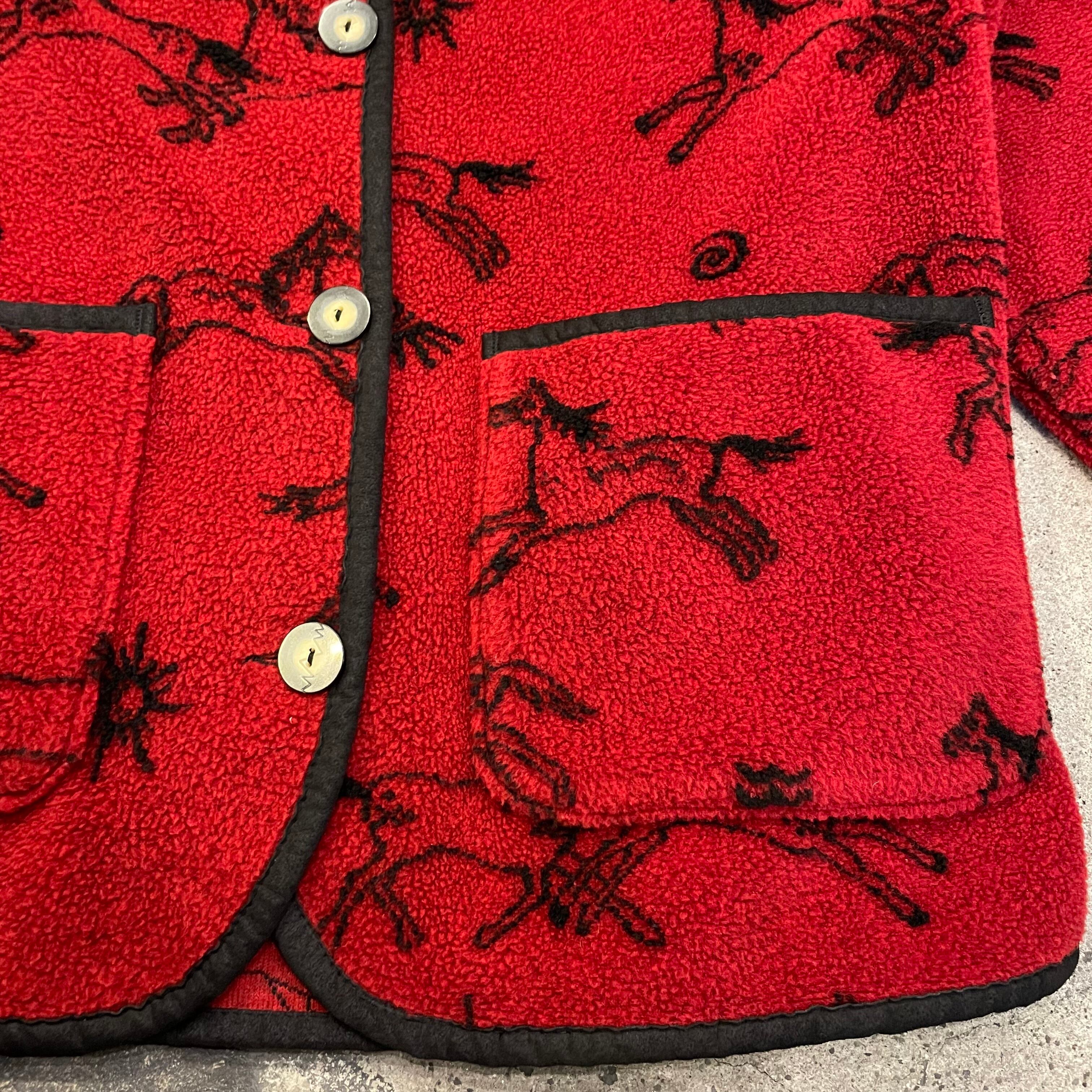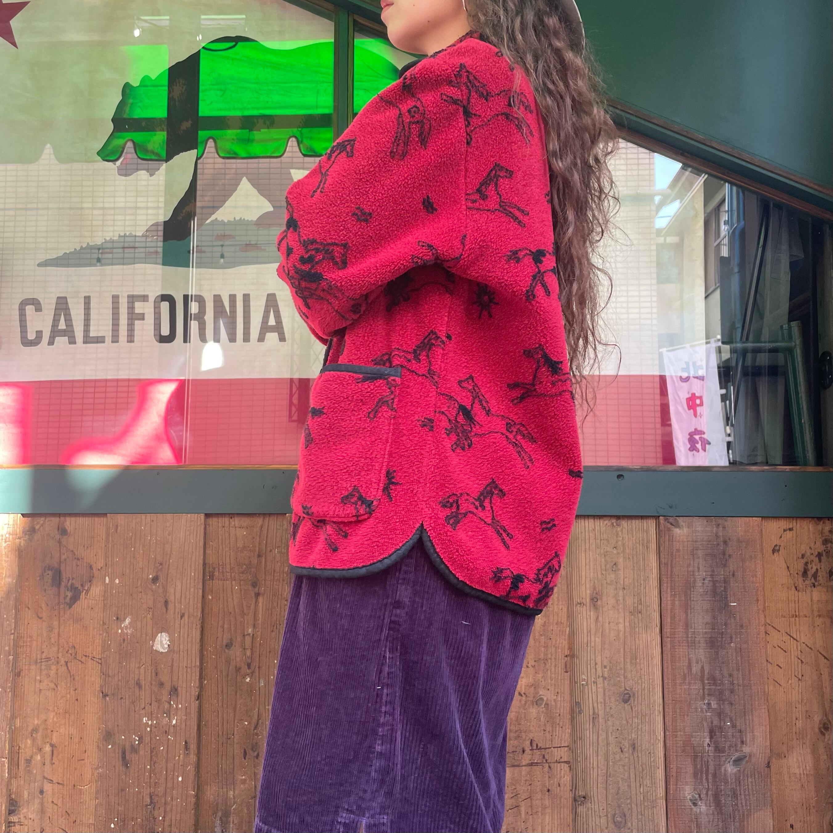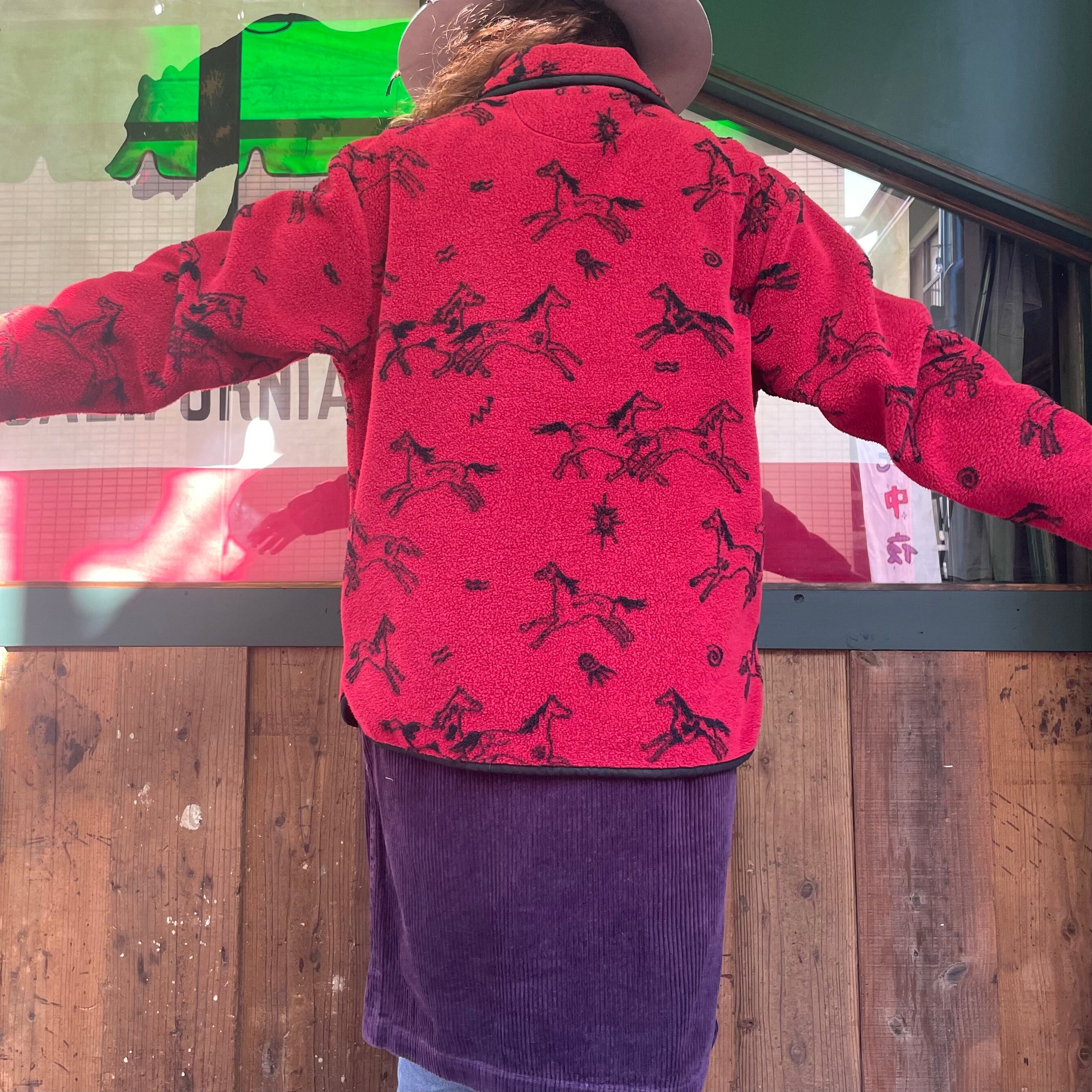 馬たちが駆け抜けている柄がかわいいフリースジャケットです。