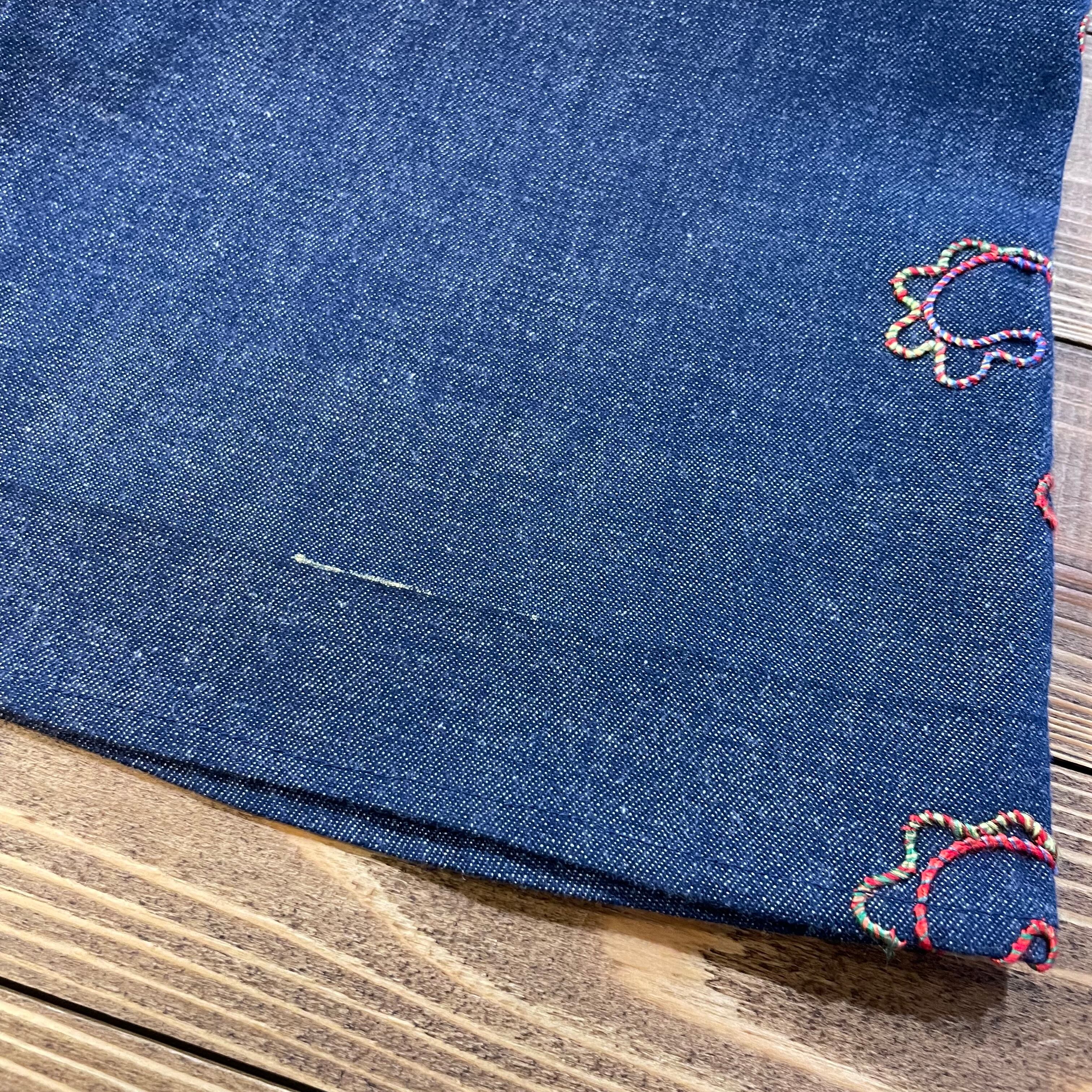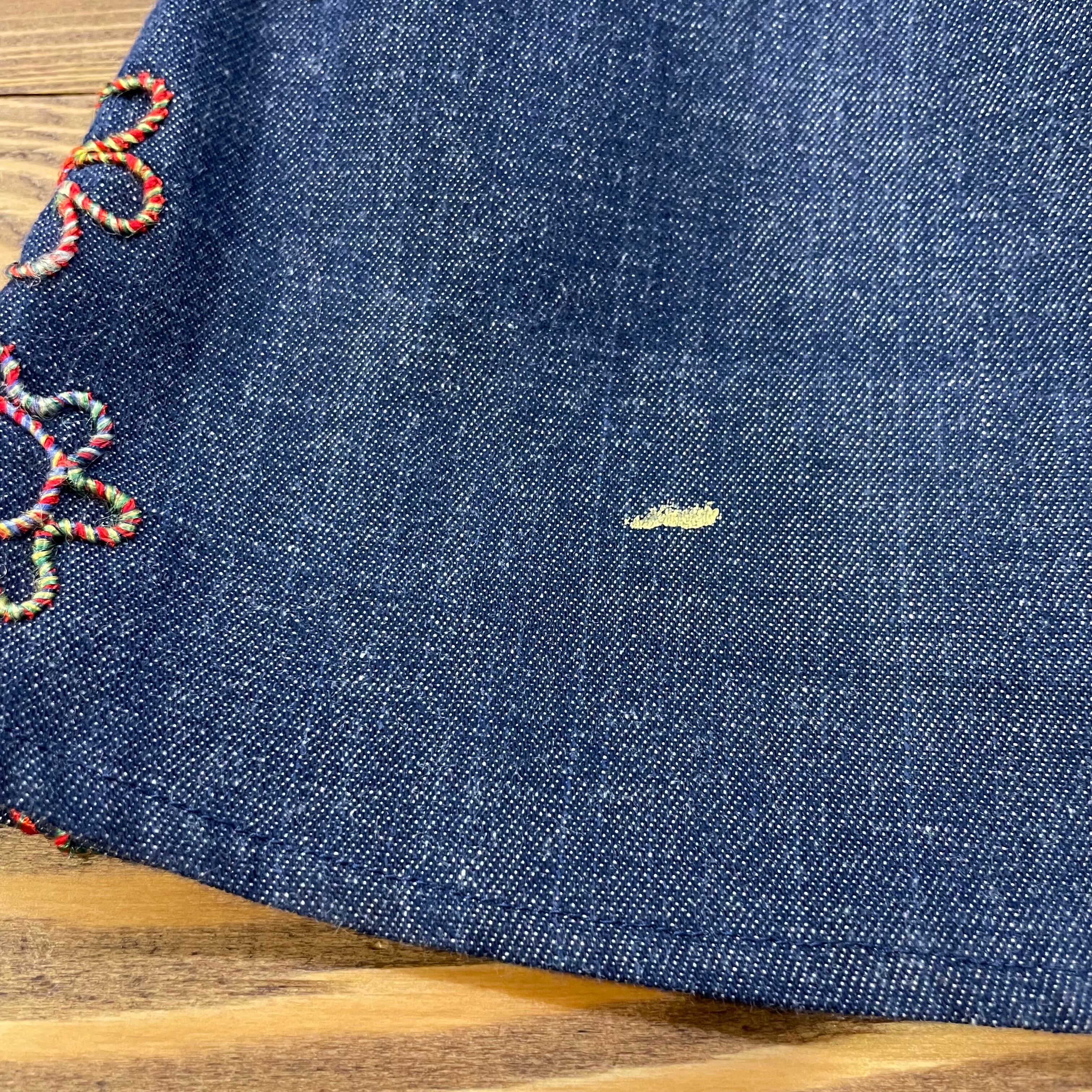 両サイドに紐を縫い付けたお花の模様がポイントになっていてとてもかわいい一枚です。