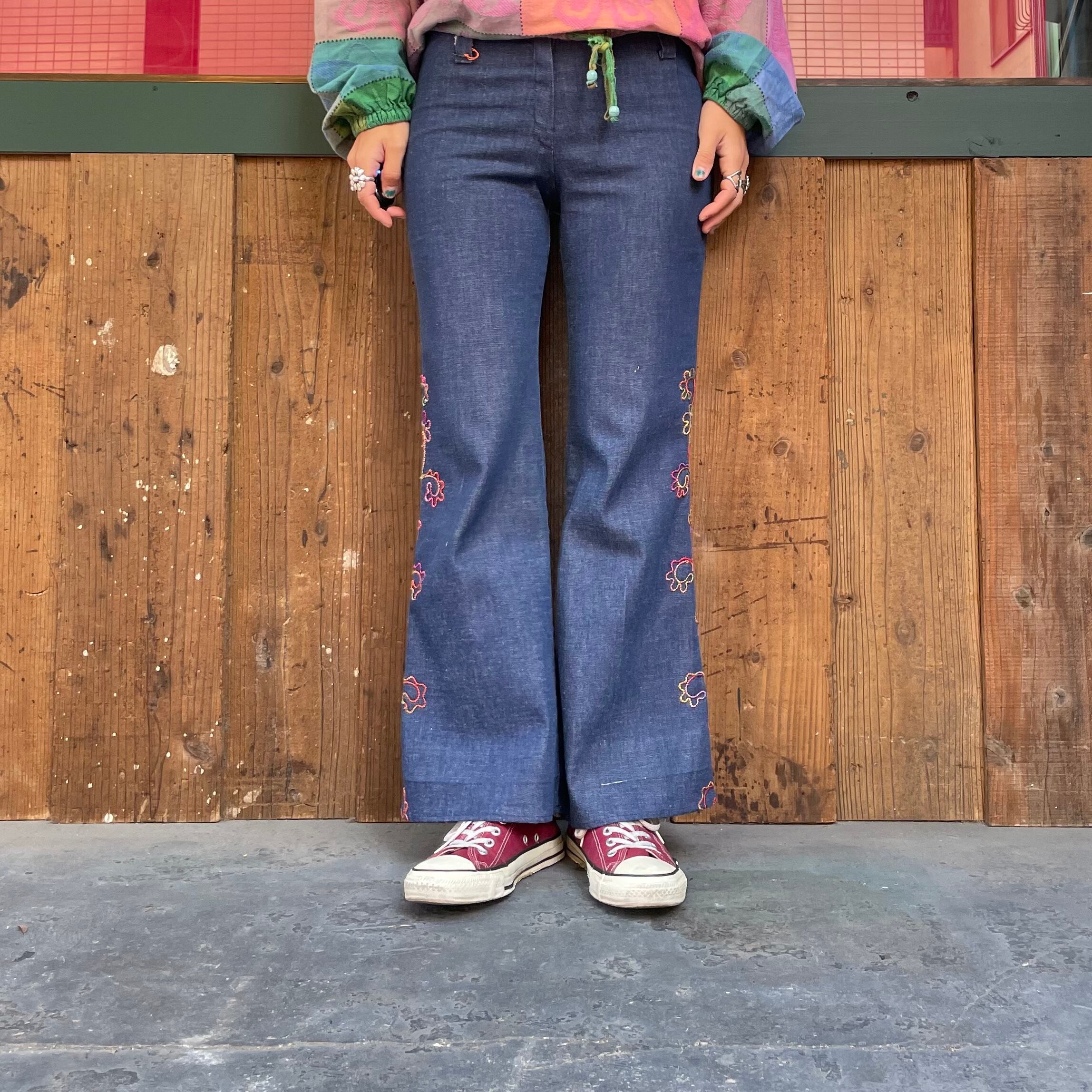 ポケットは無くスッキリしたシルエットでしっかりフレアな裾が良い感じです。チュニックやニット、大きめのスウェット、夏はゆったりしたTシャツともバランス良く着ていただけると思います。
