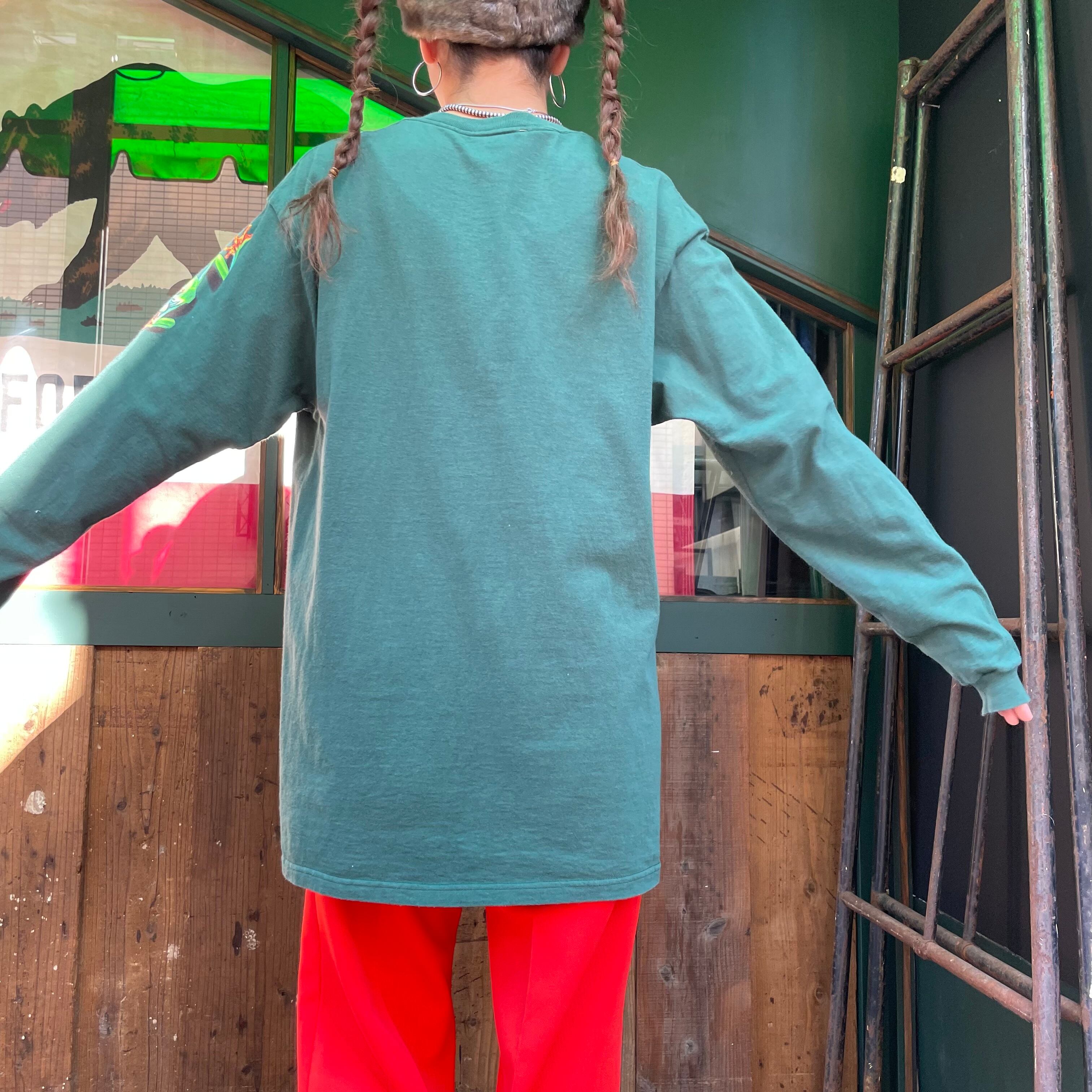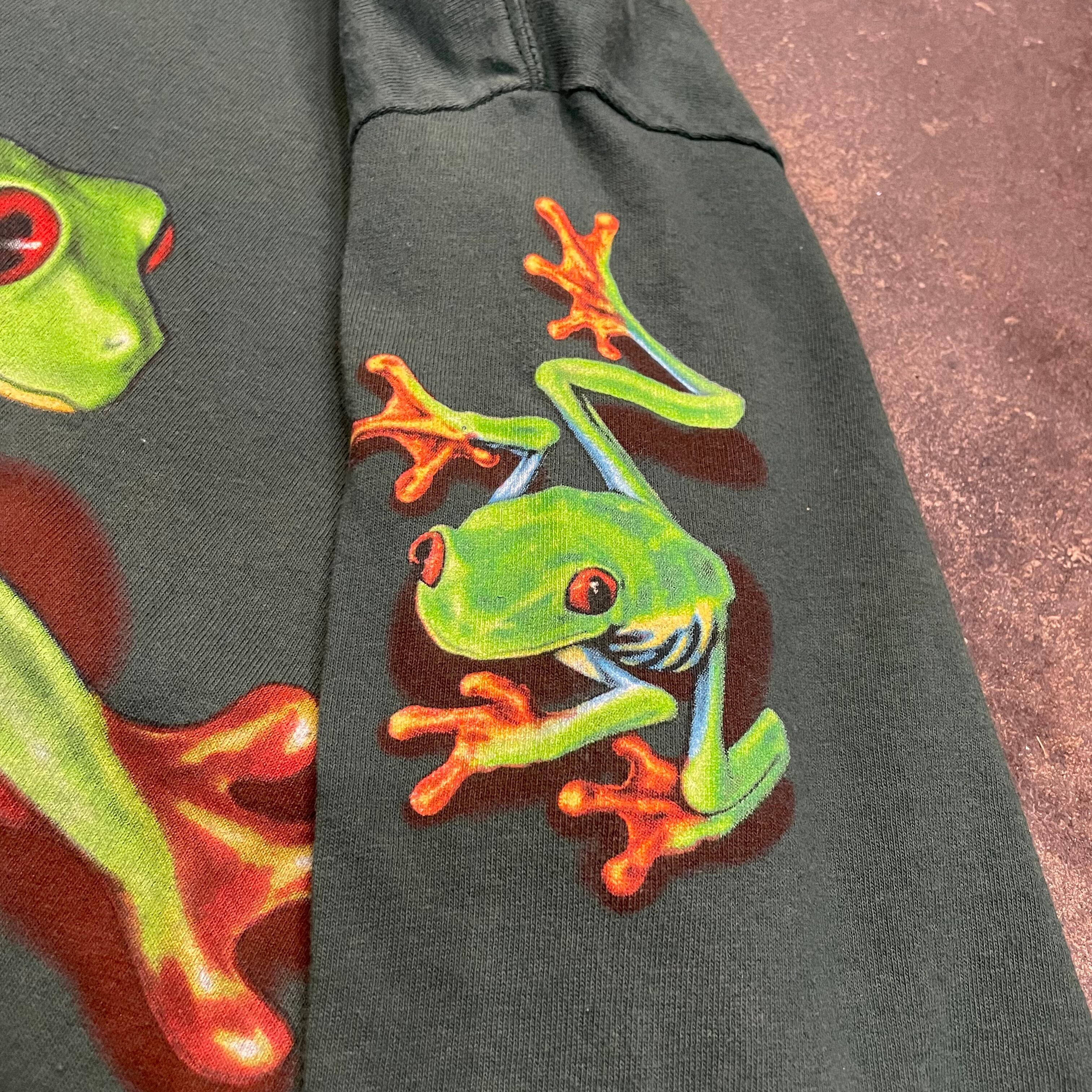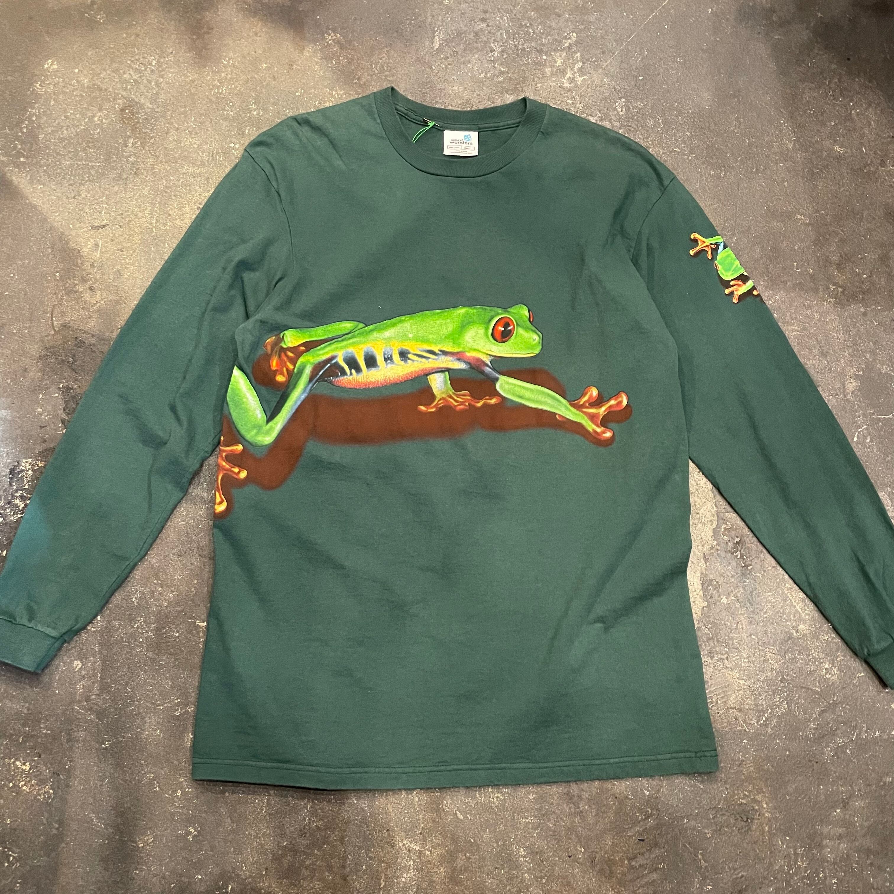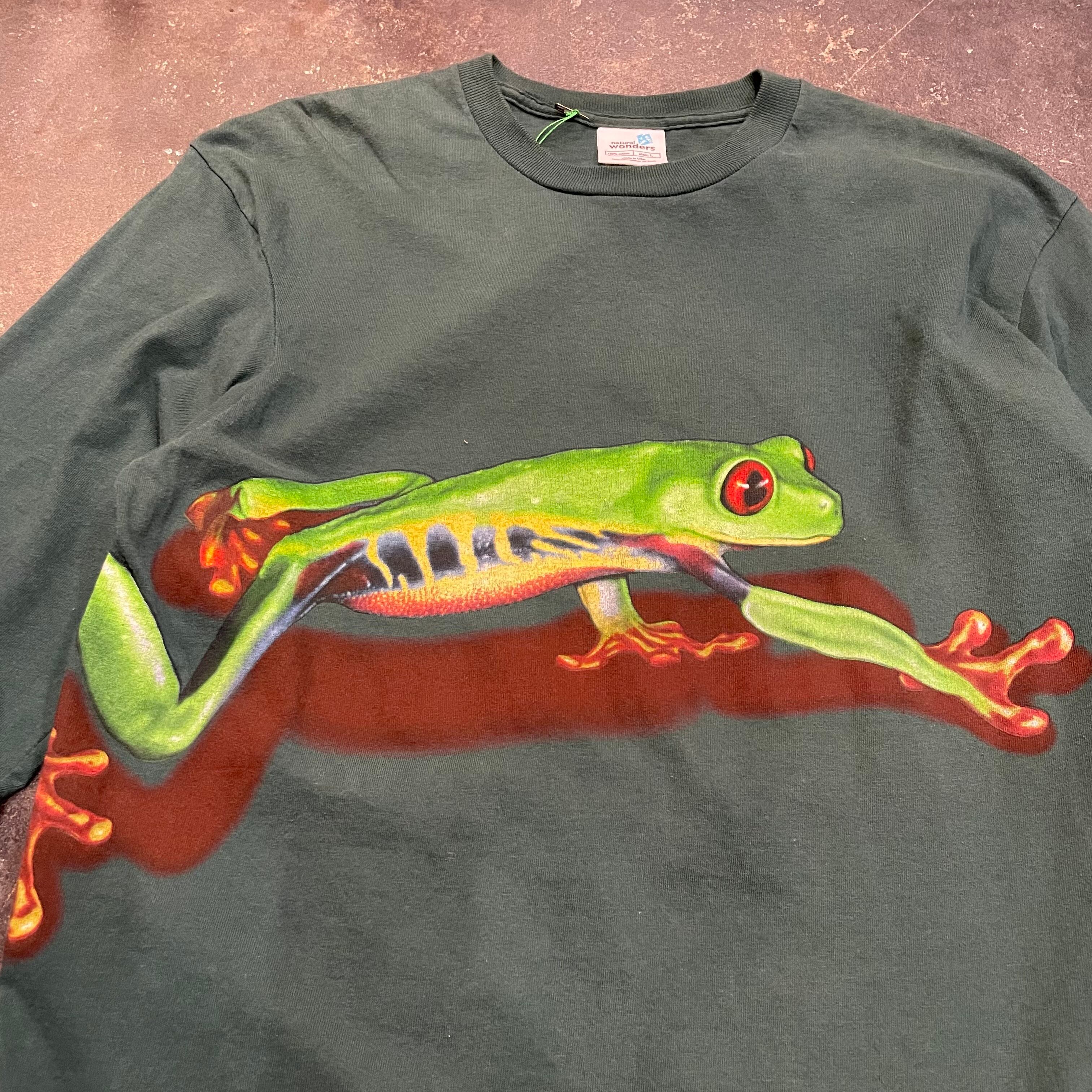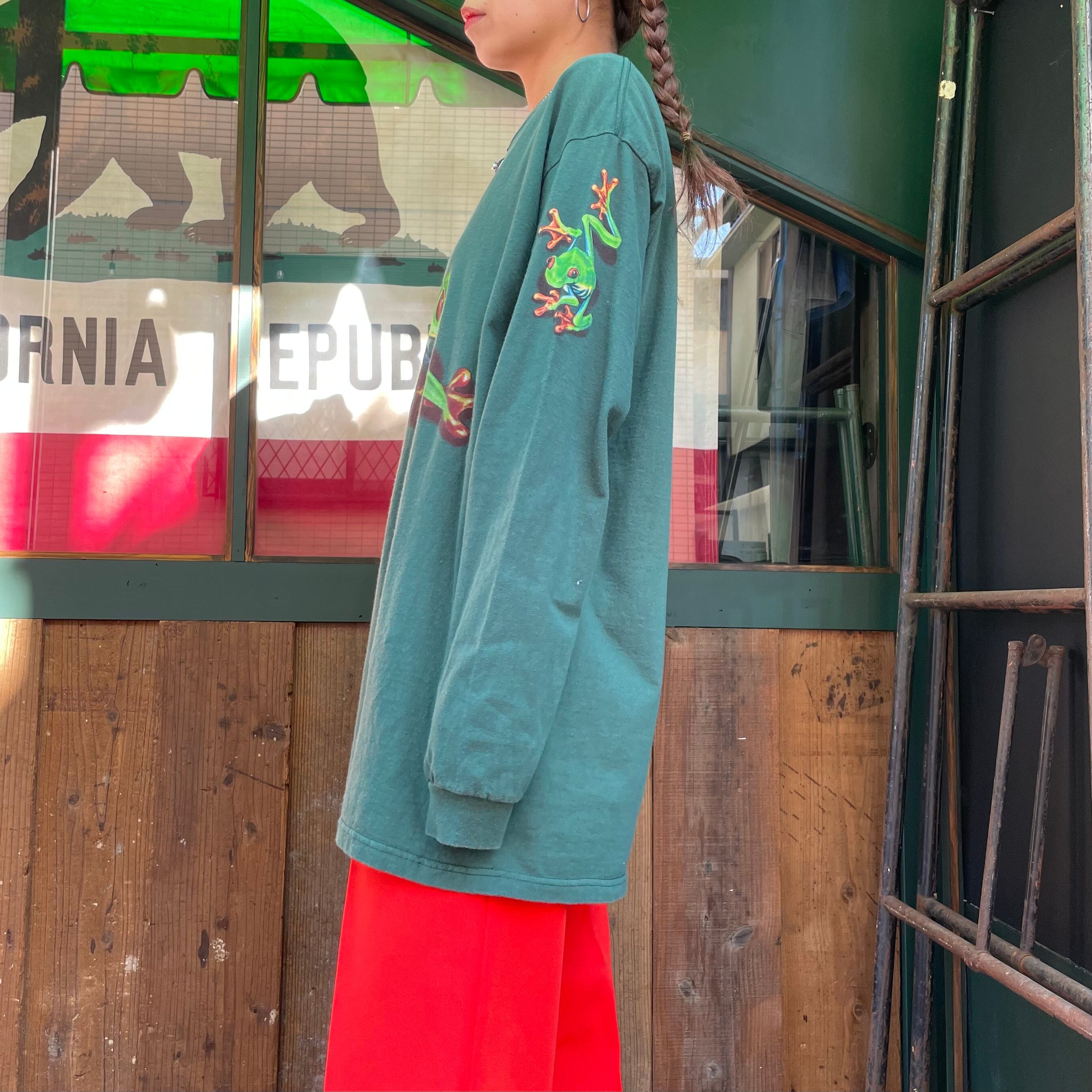 どーんと大きなカエルのプリントがかわいい90年代USA製のロンTです。