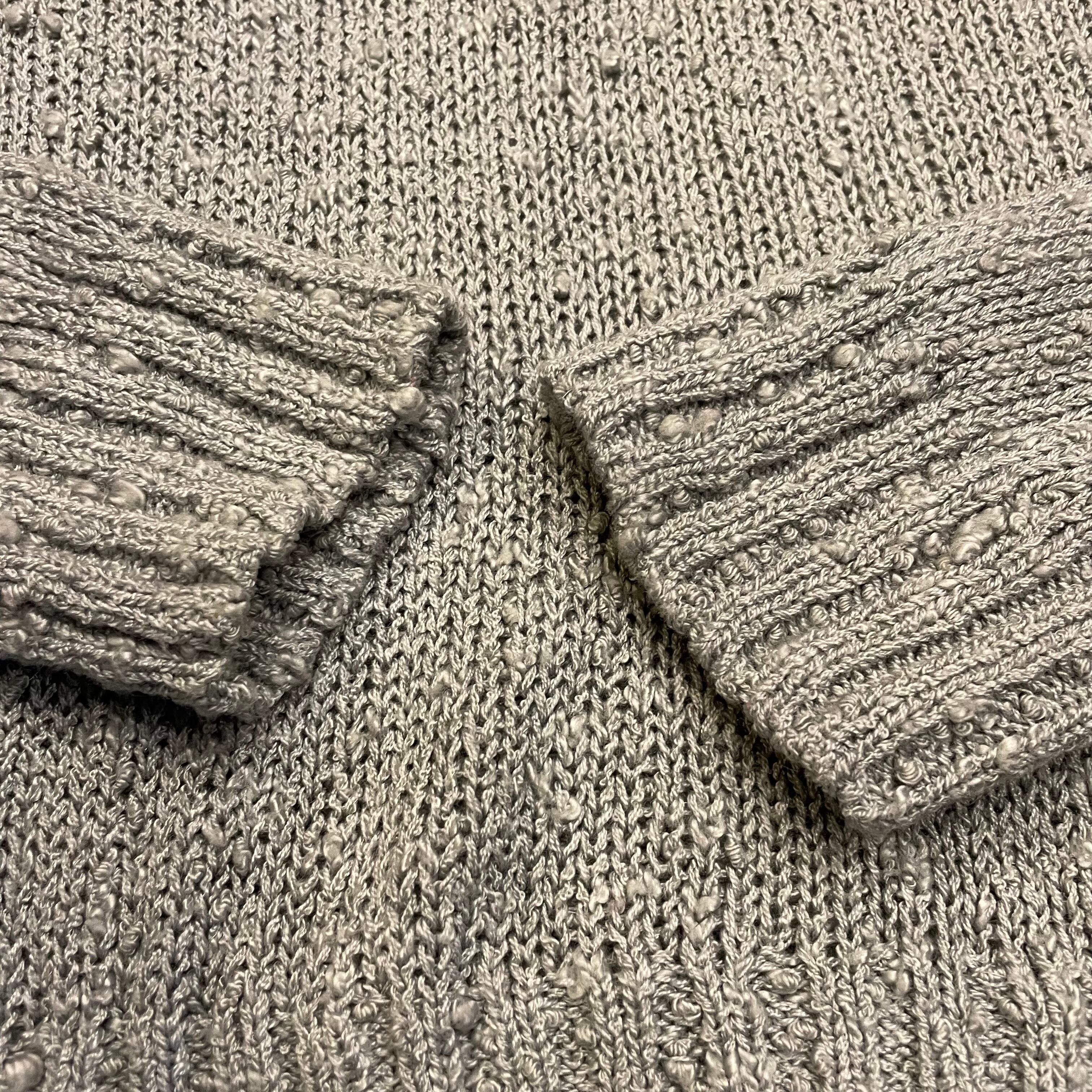 淡いグレーで控えめですが粒々のある毛糸がさりげなくポイントになっていたり、ニットの襟2枚は可愛いこと間違いなしなデザインですね。