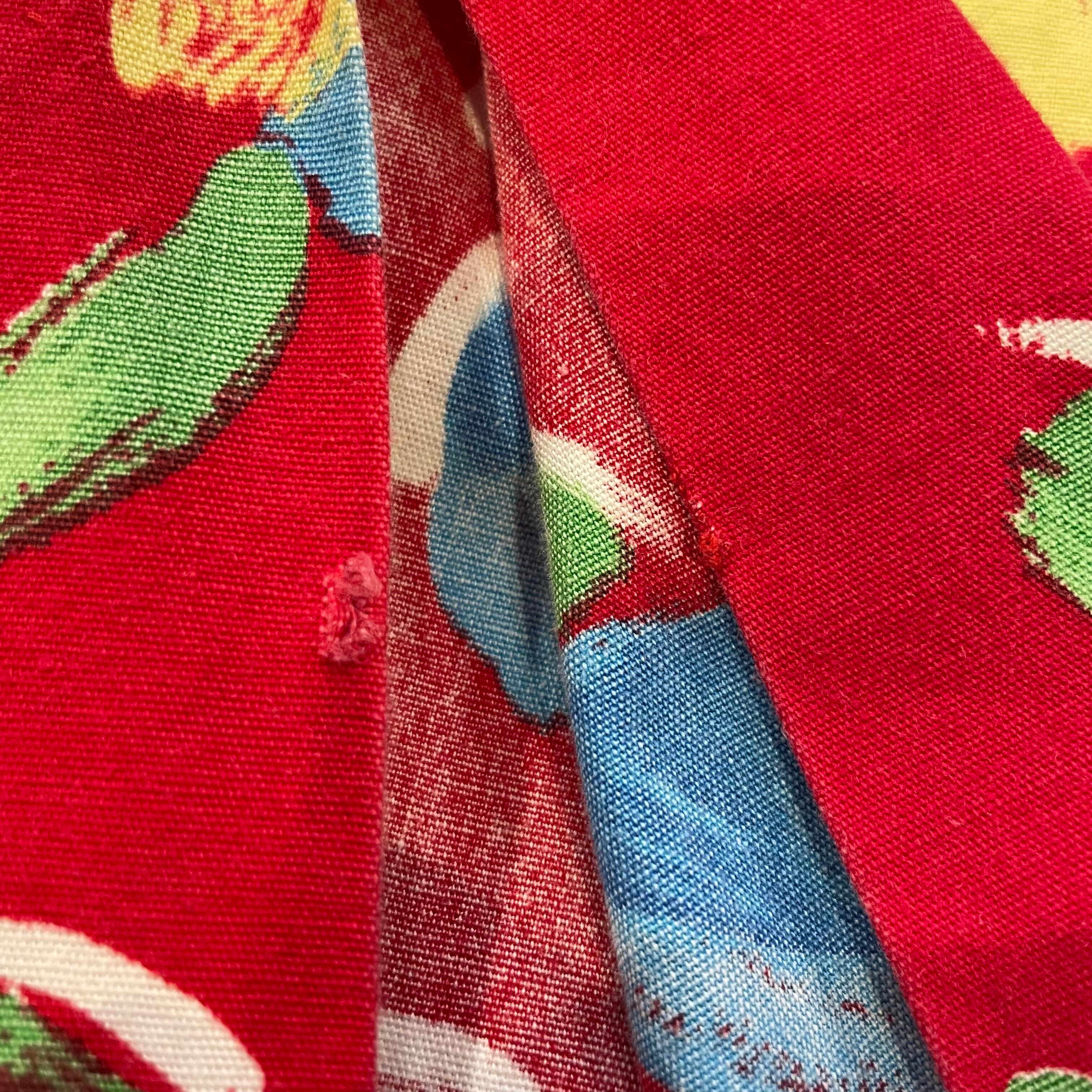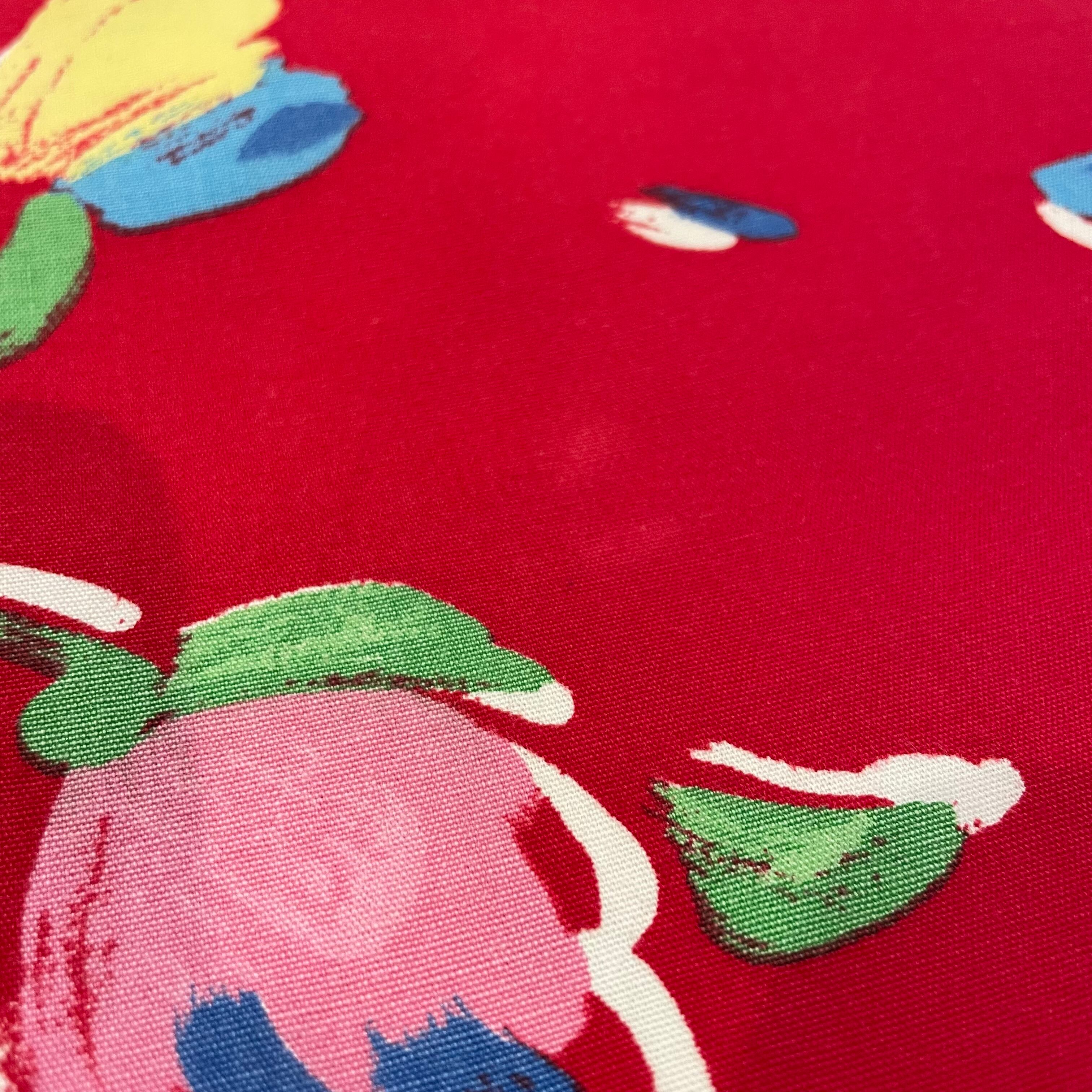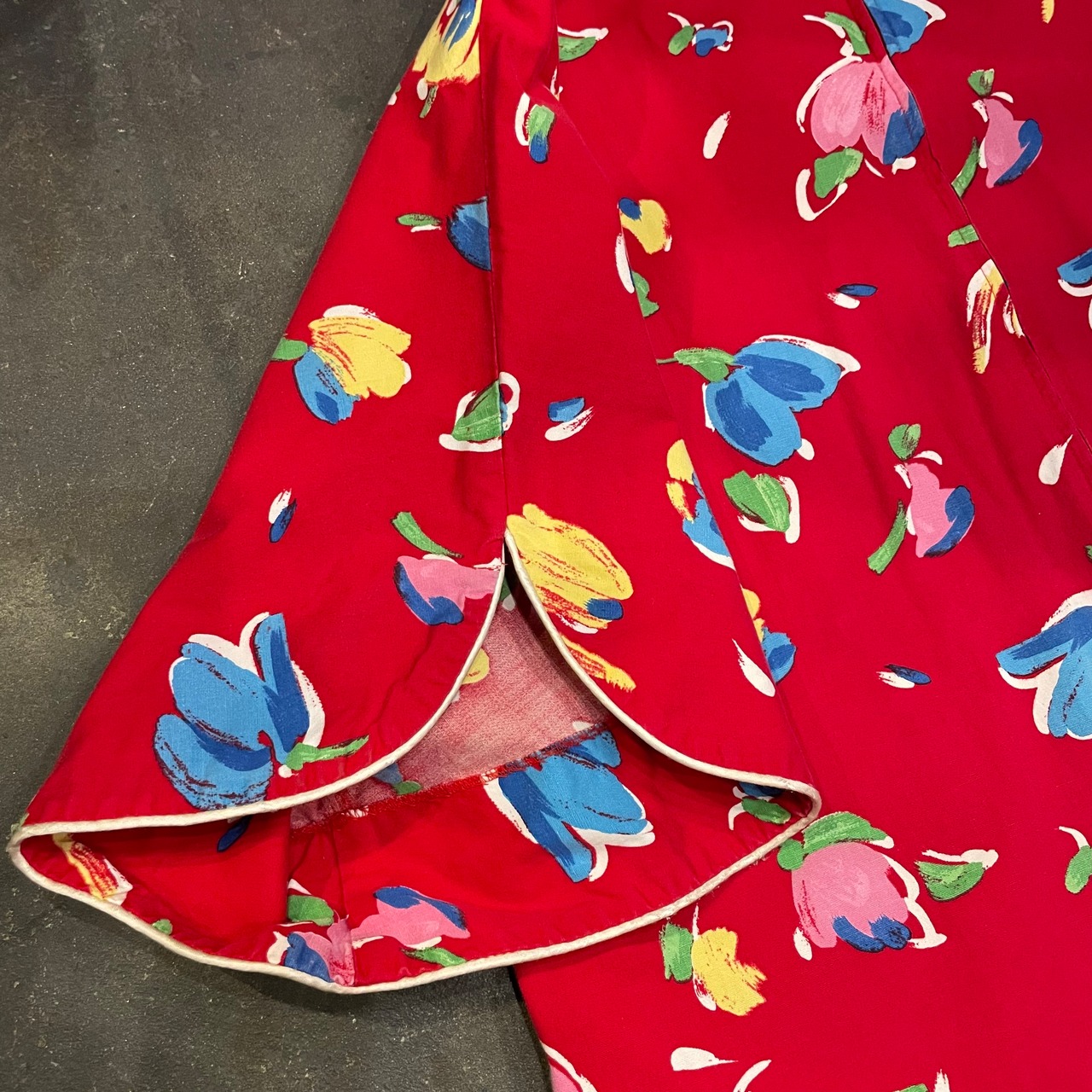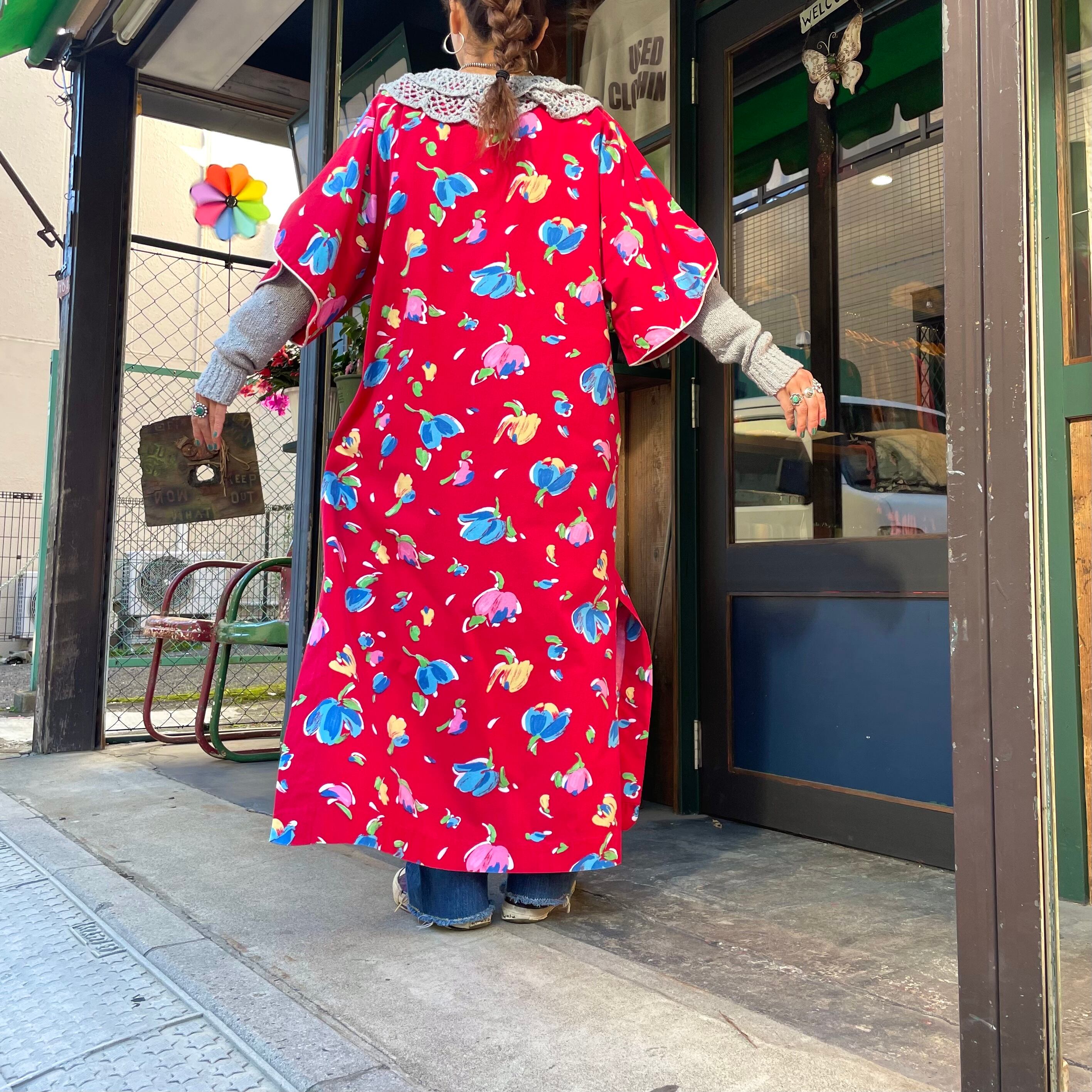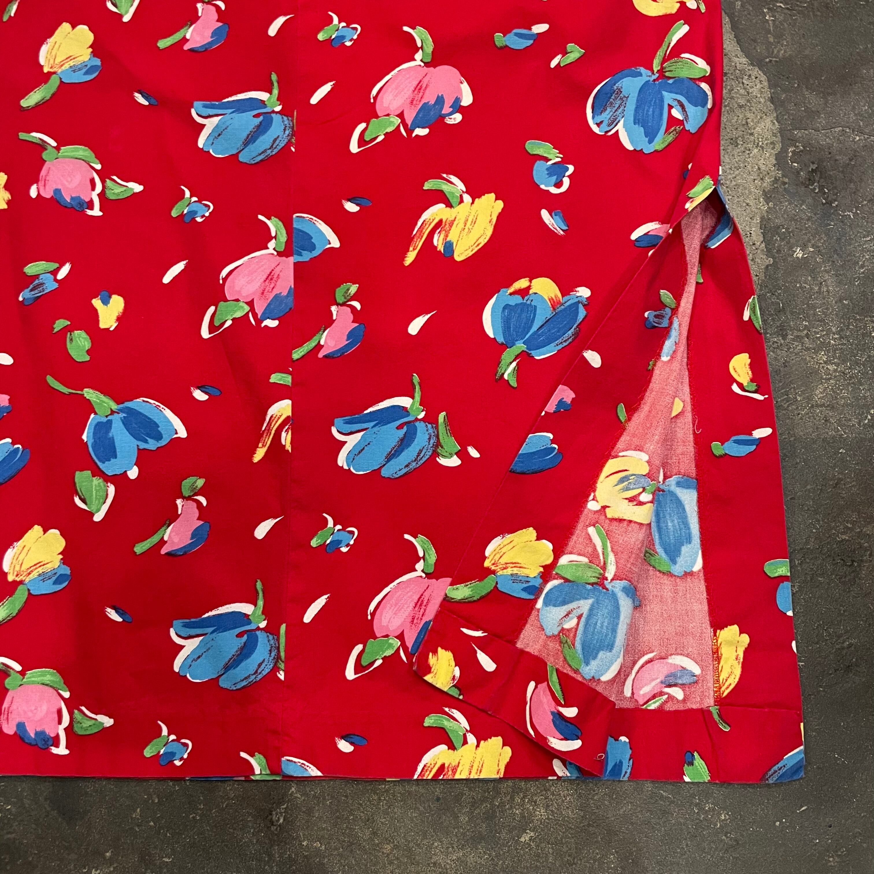 赤地にチューリップのようなお花の柄がかわいいワンピースです。