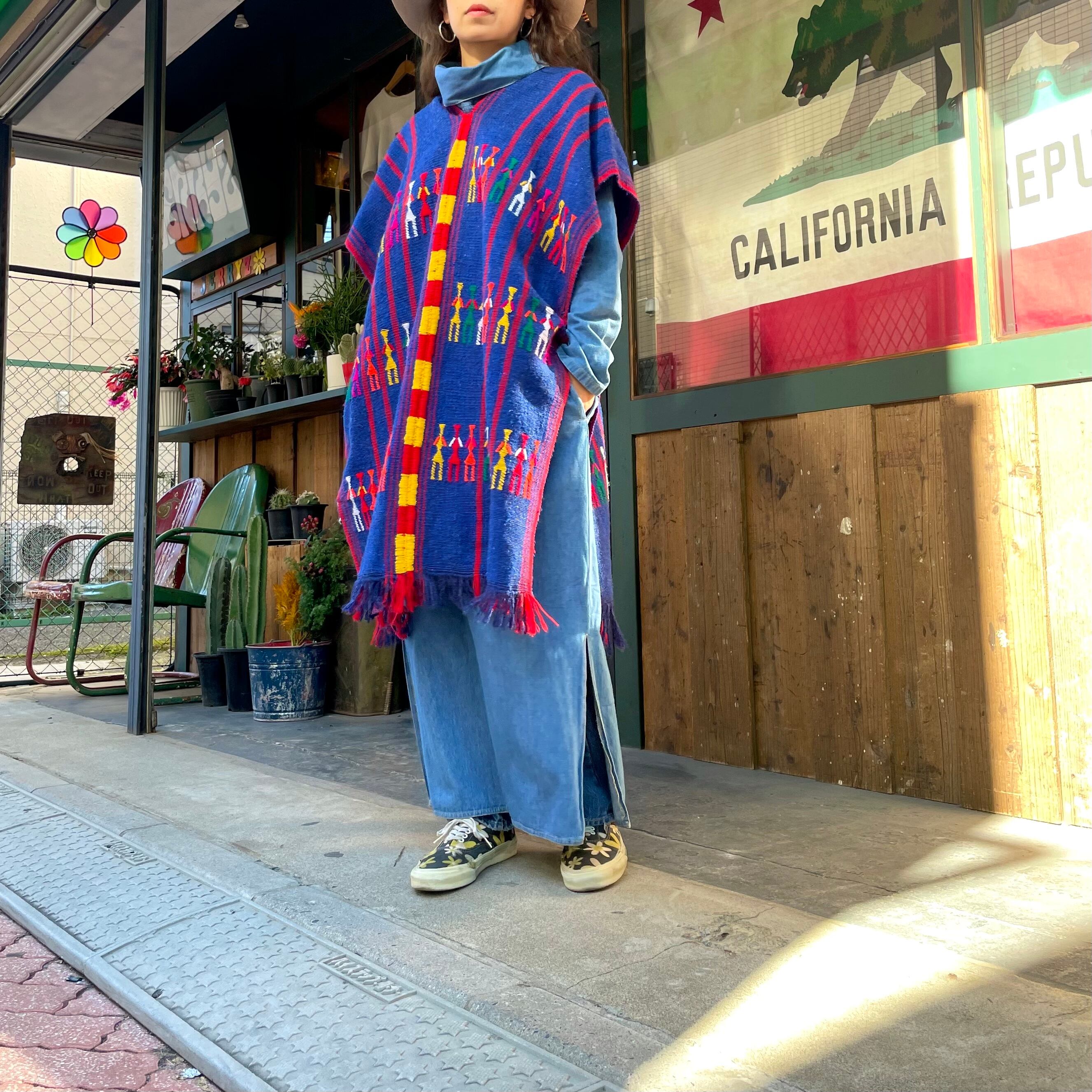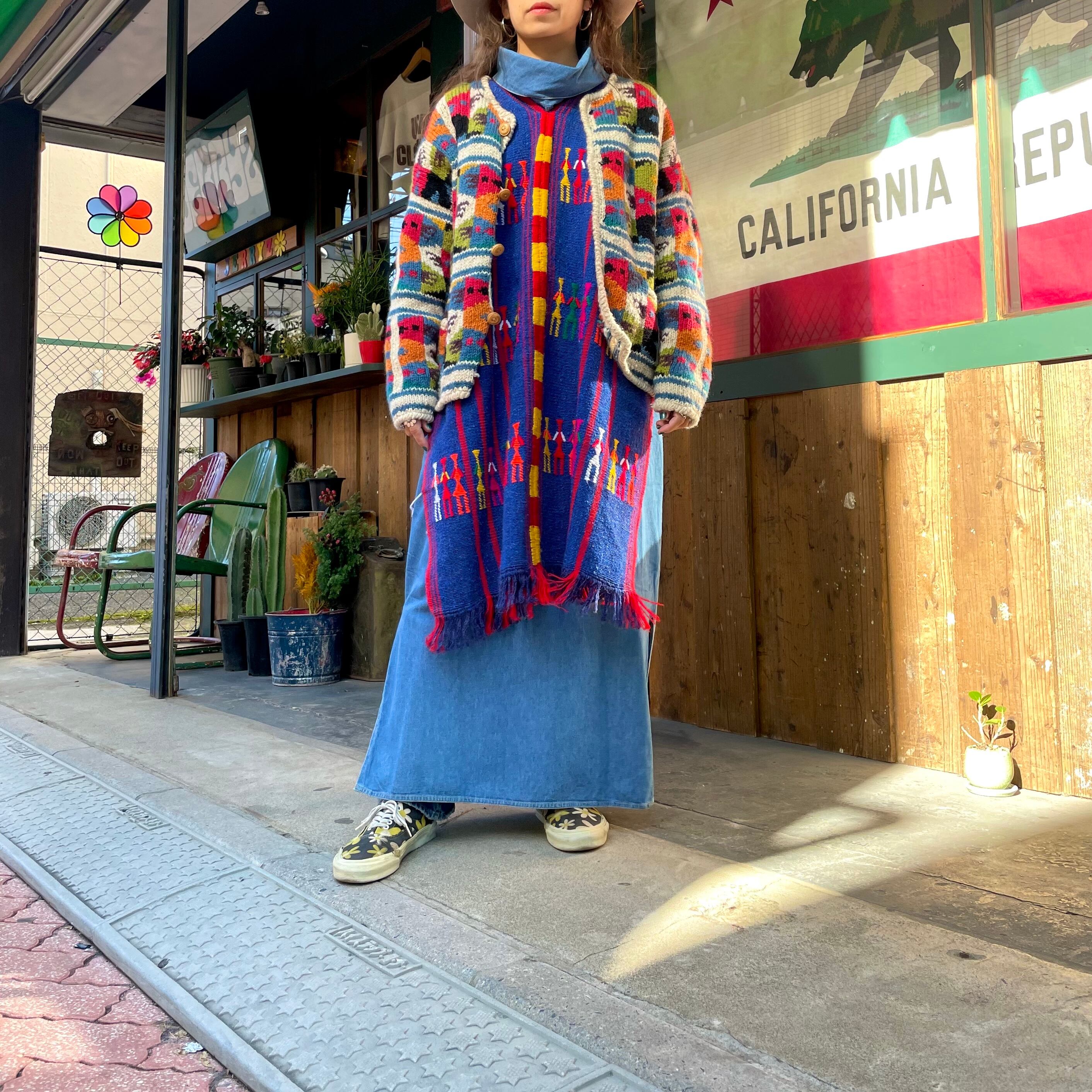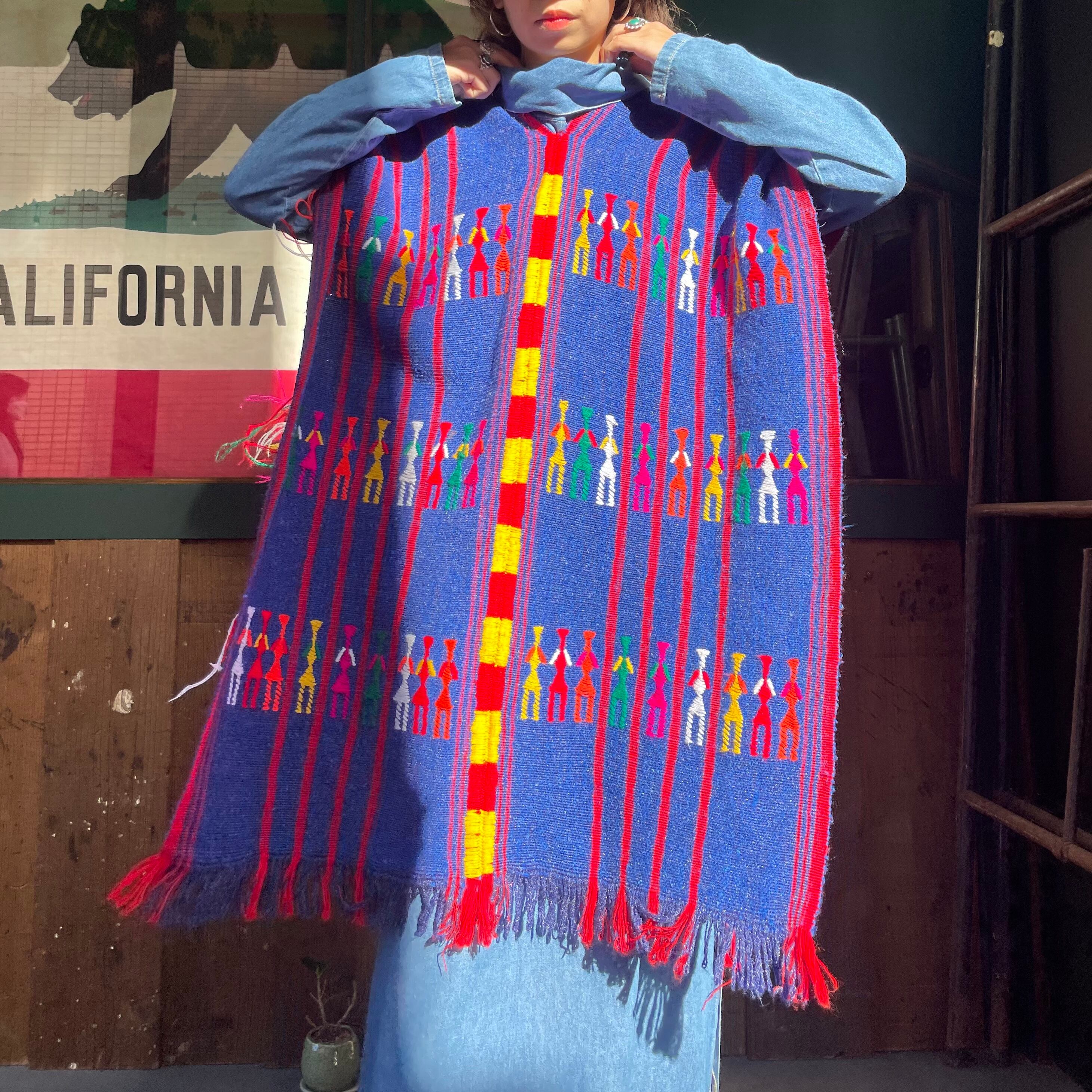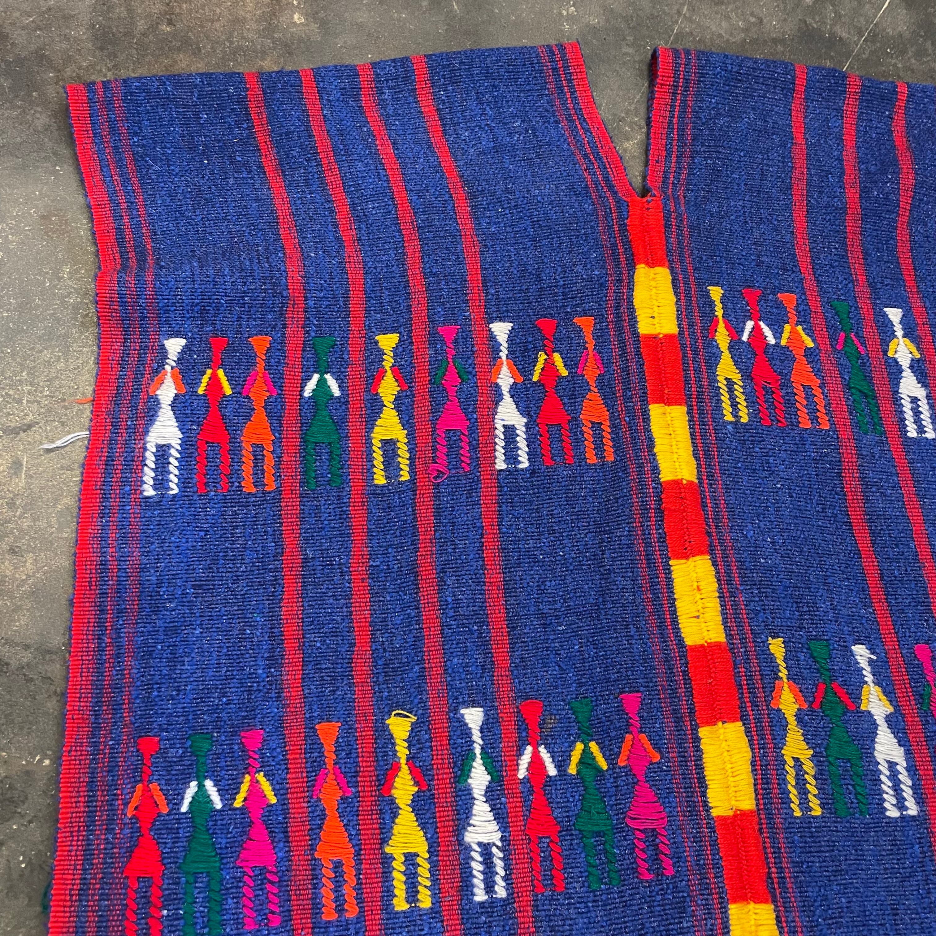 青地にカラフルな人達の手刺繍がかわいいポンチョです。