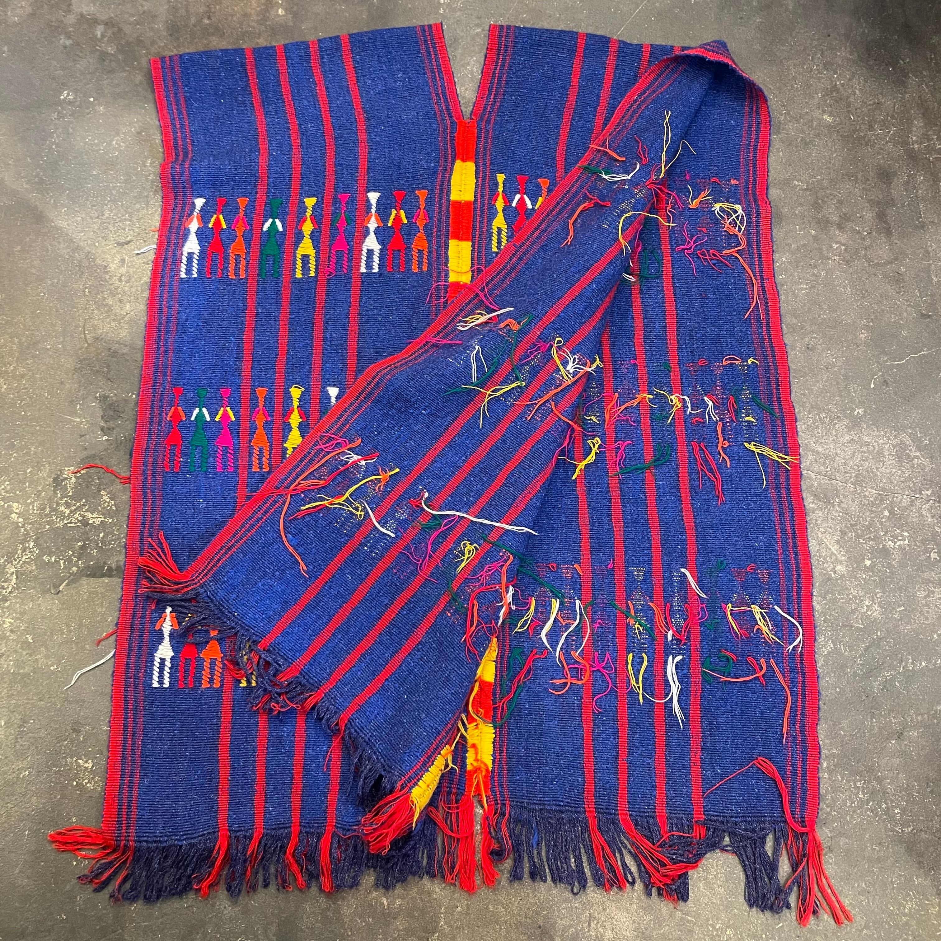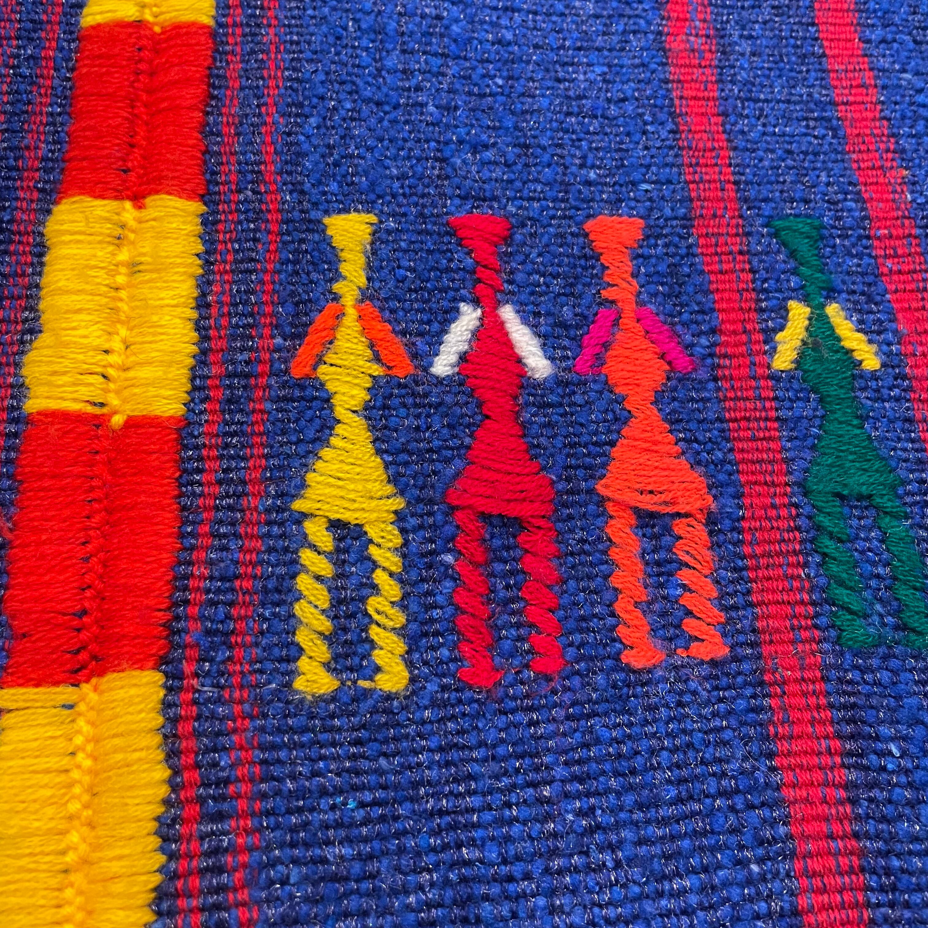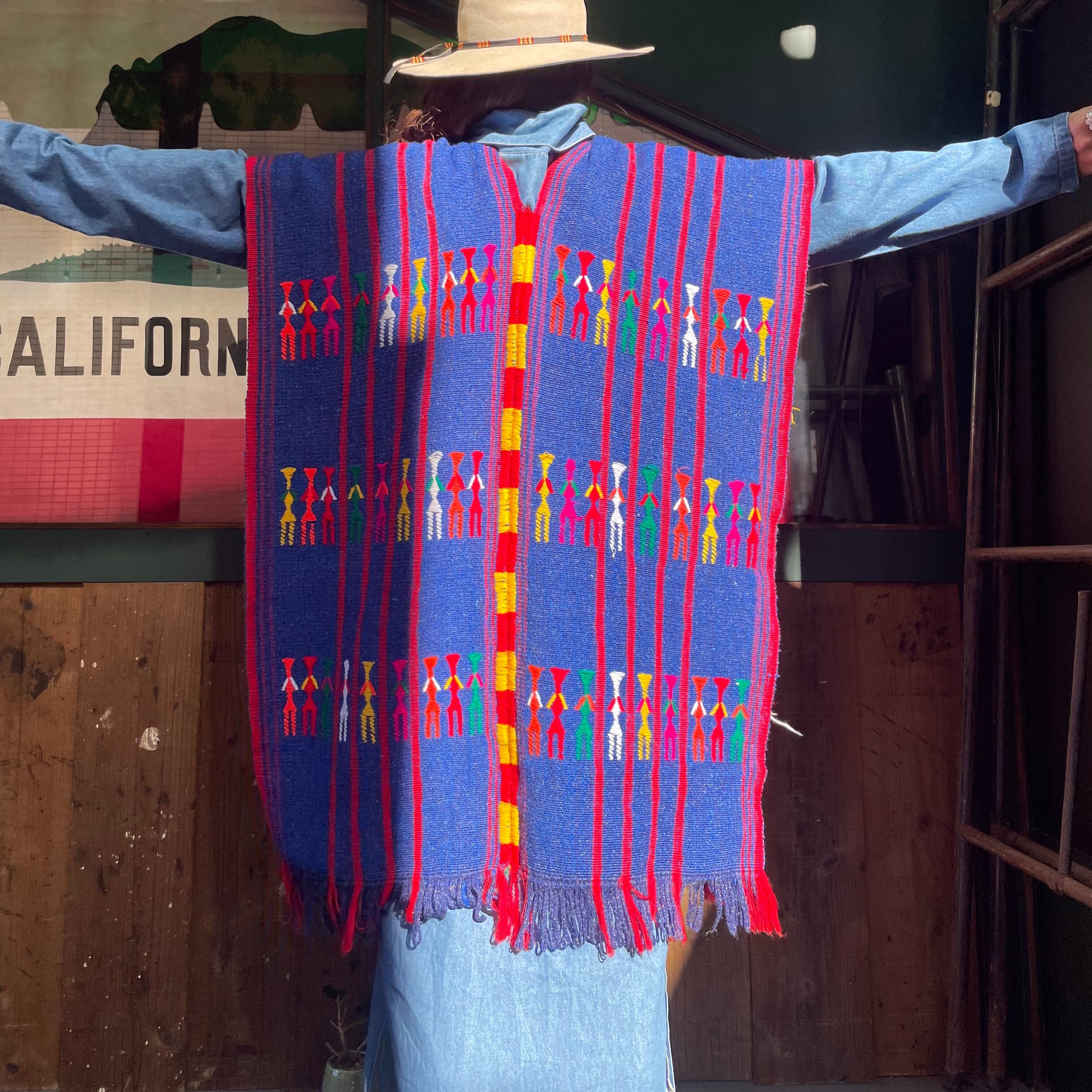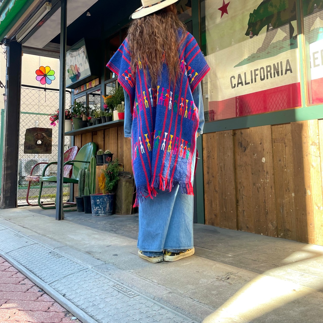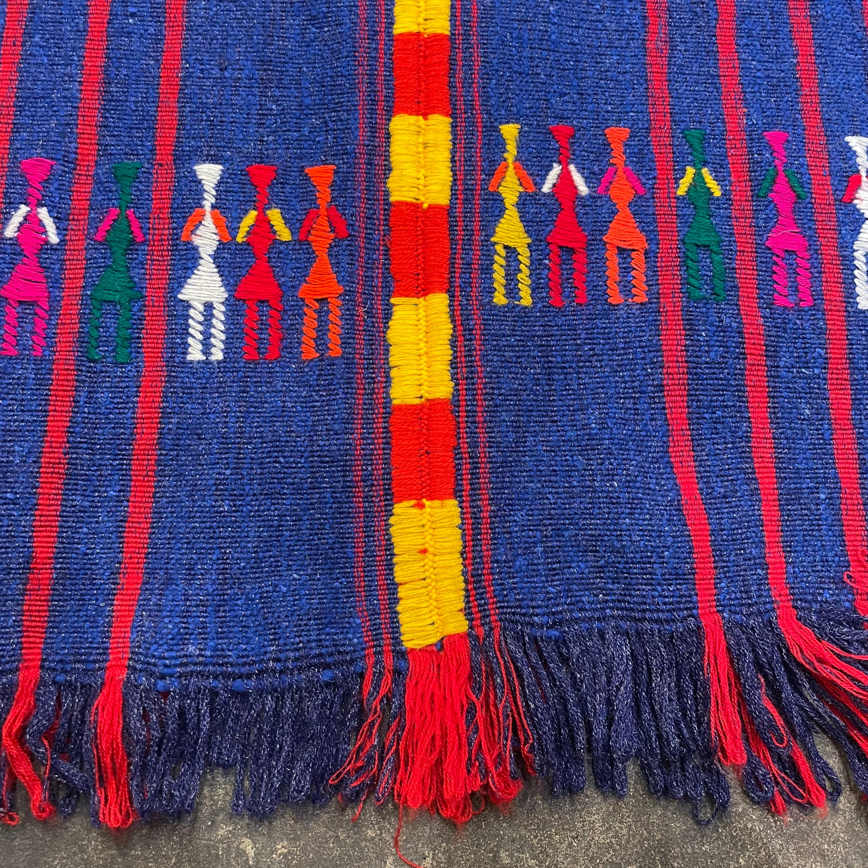 青地にカラフルな人達の手刺繍がかわいいポンチョです。