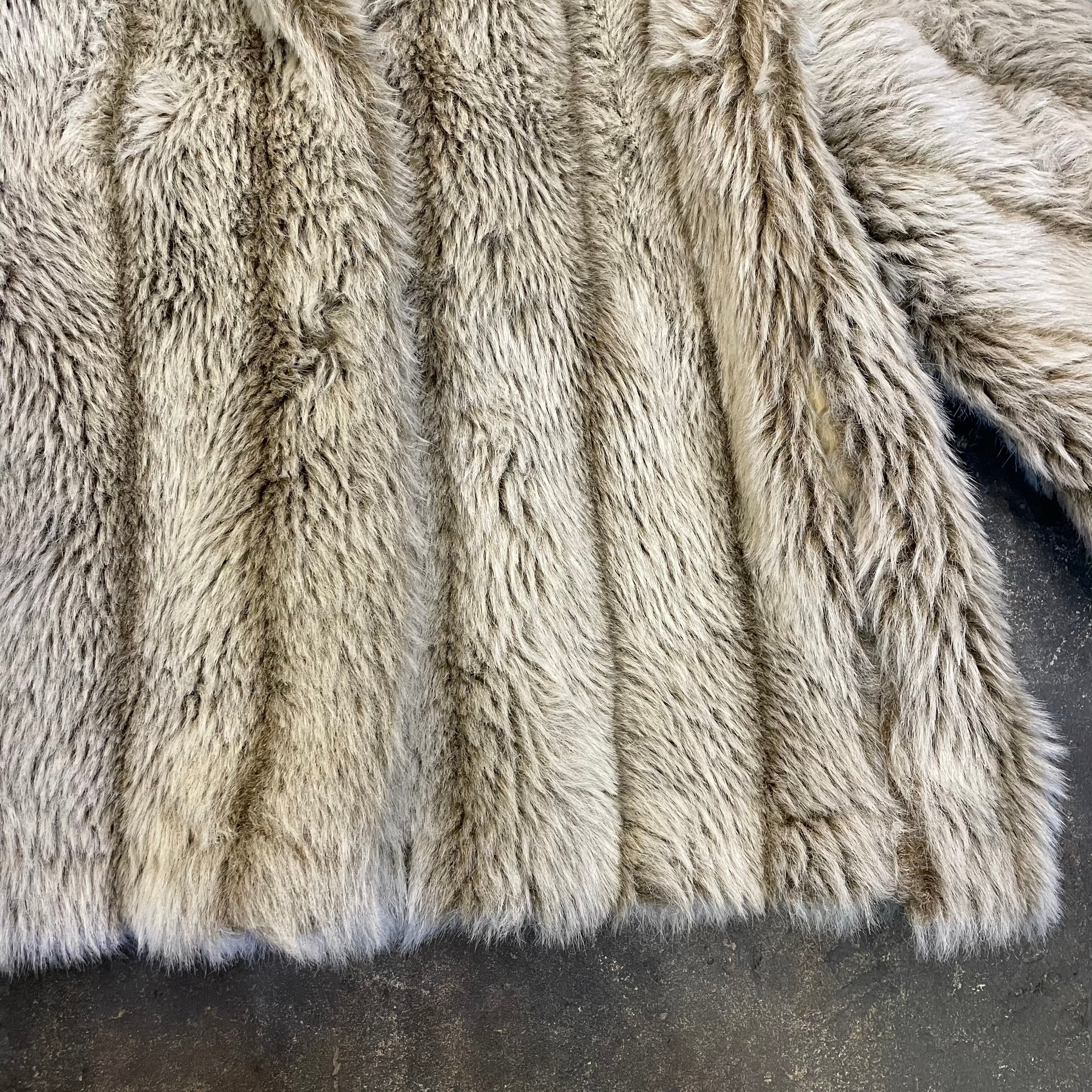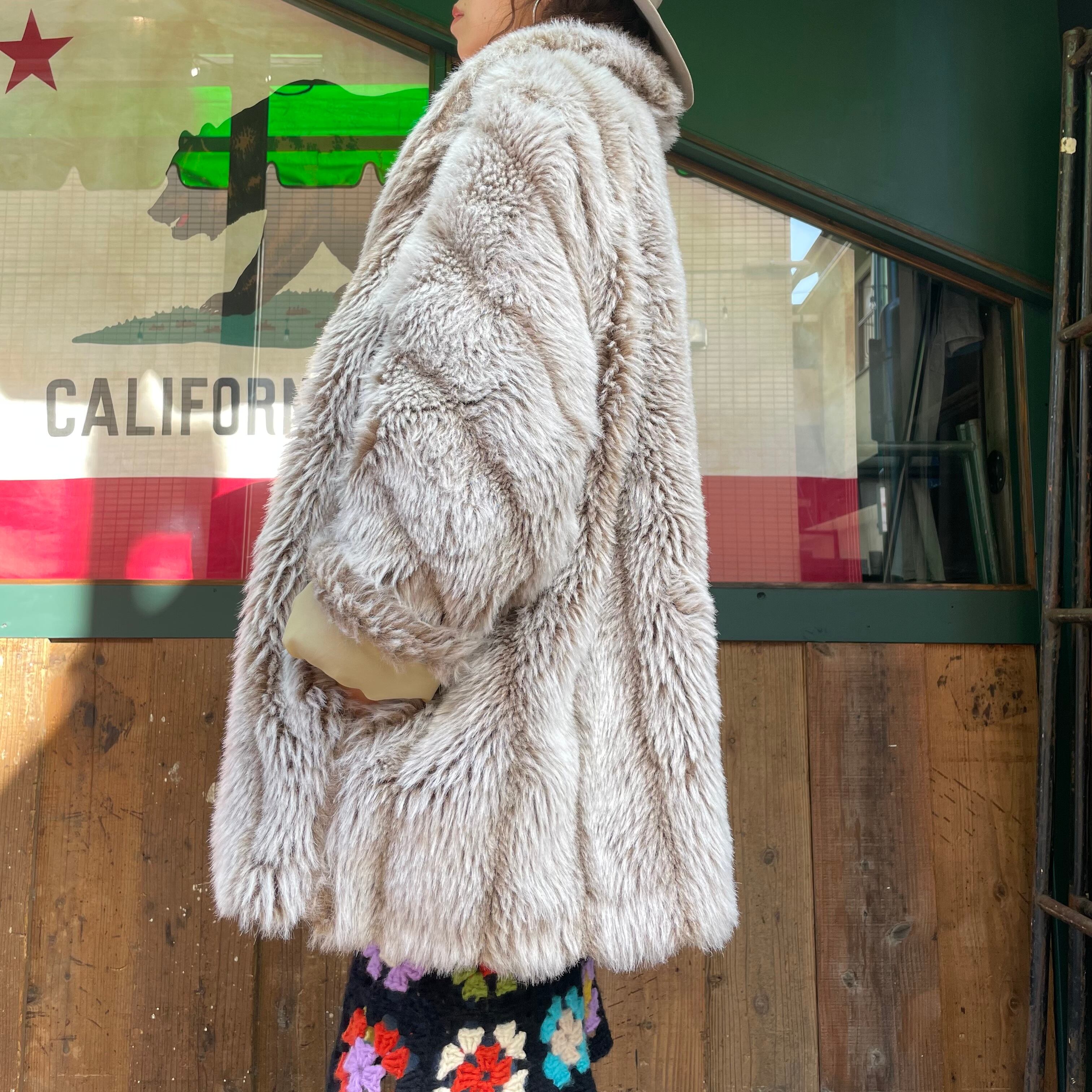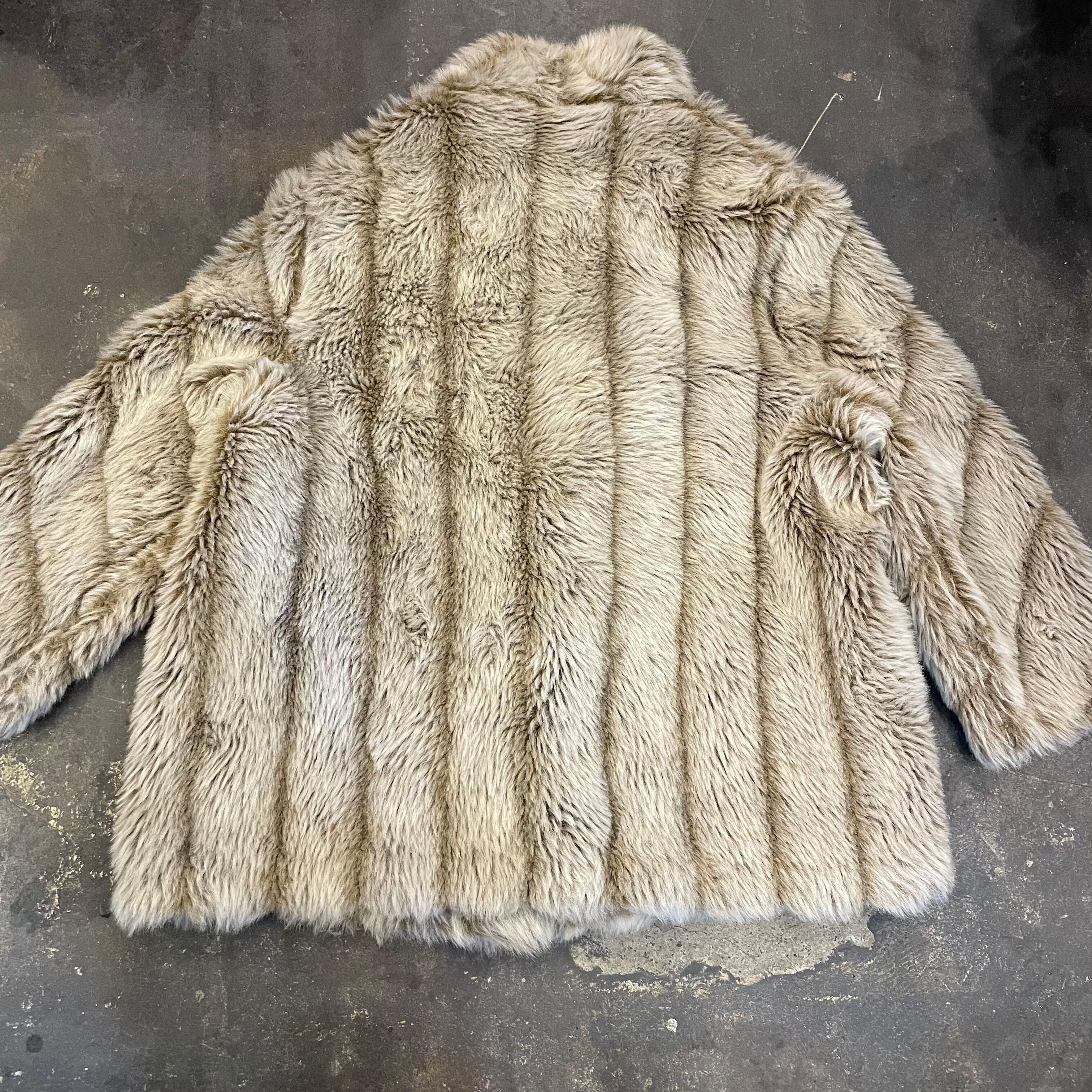 毛足の長いフェイクファーがかわいいコートです。ストライプのようなラインが入っていて動きがあるのも良いですね。