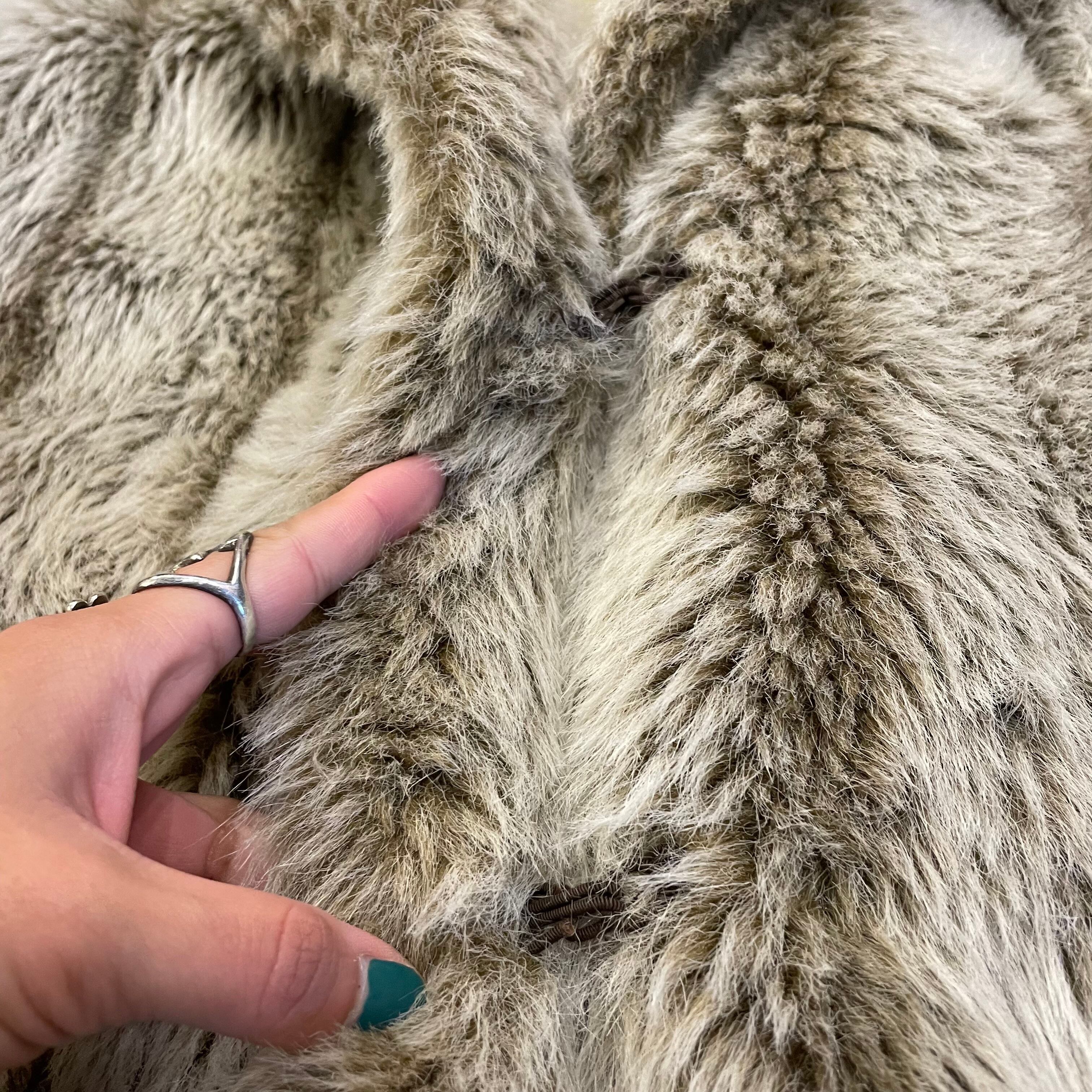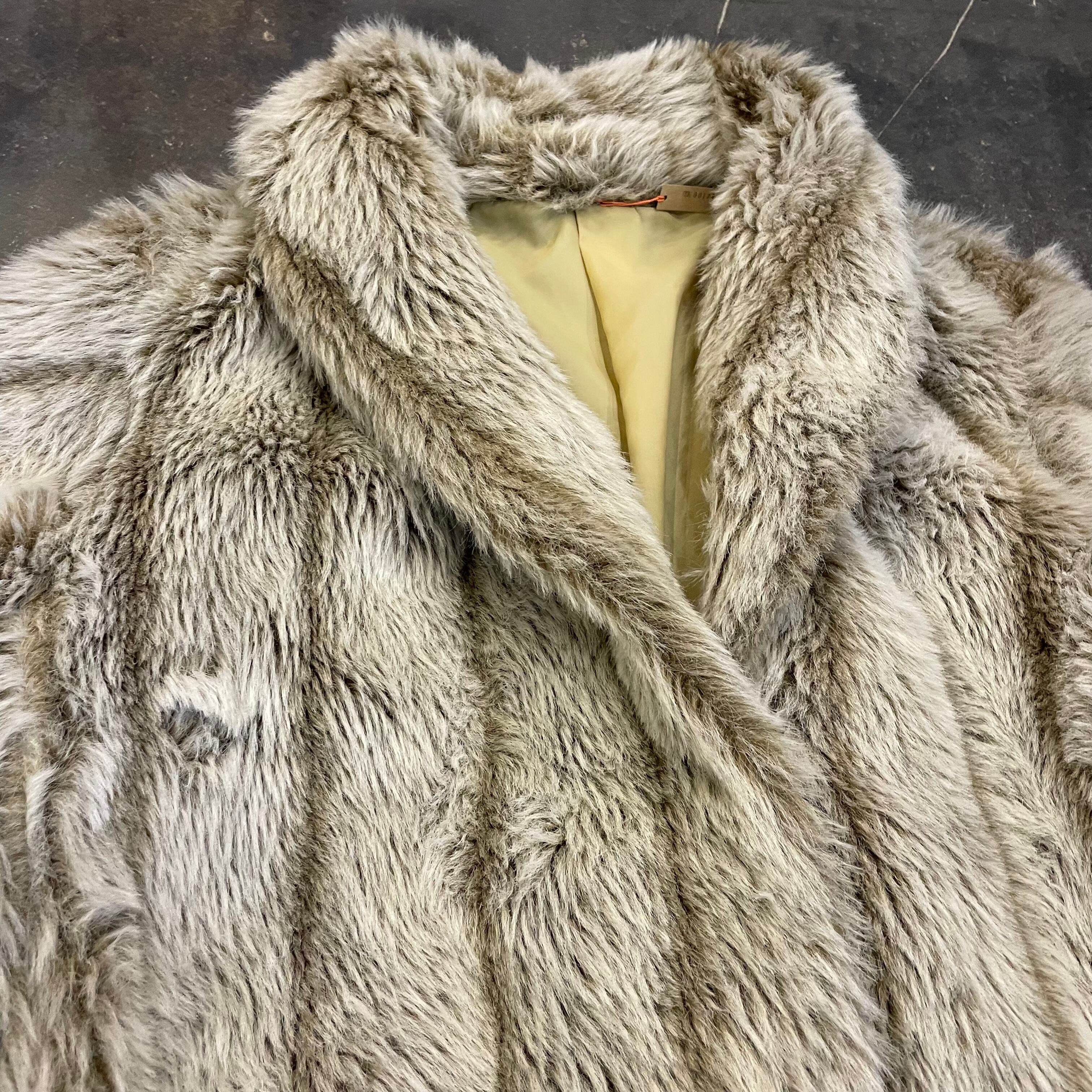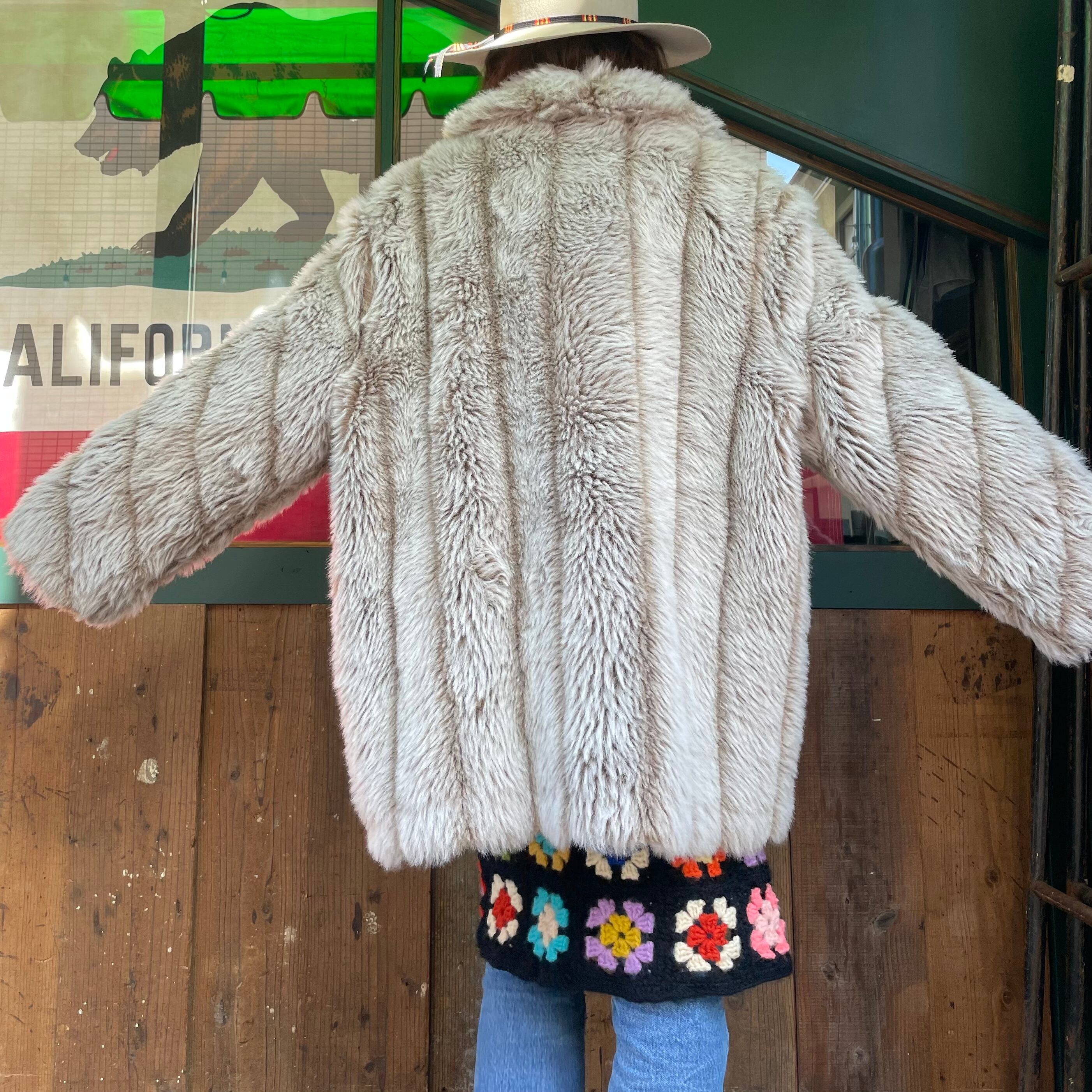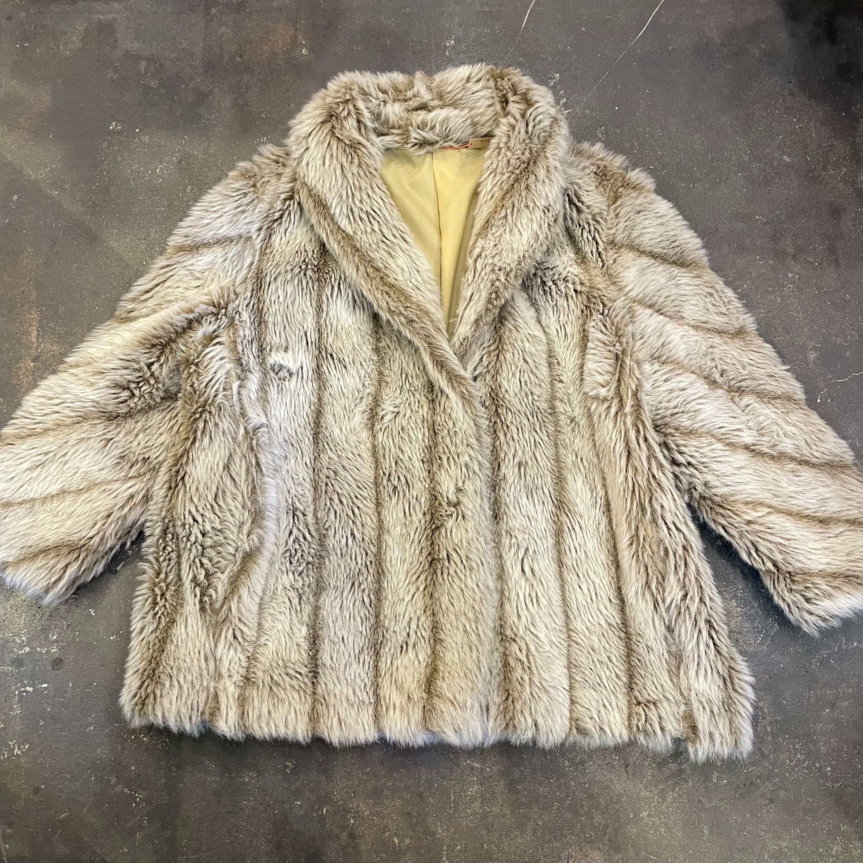 毛足の長いフェイクファーがかわいいコートです。ストライプのようなラインが入っていて動きがあるのも良いですね。