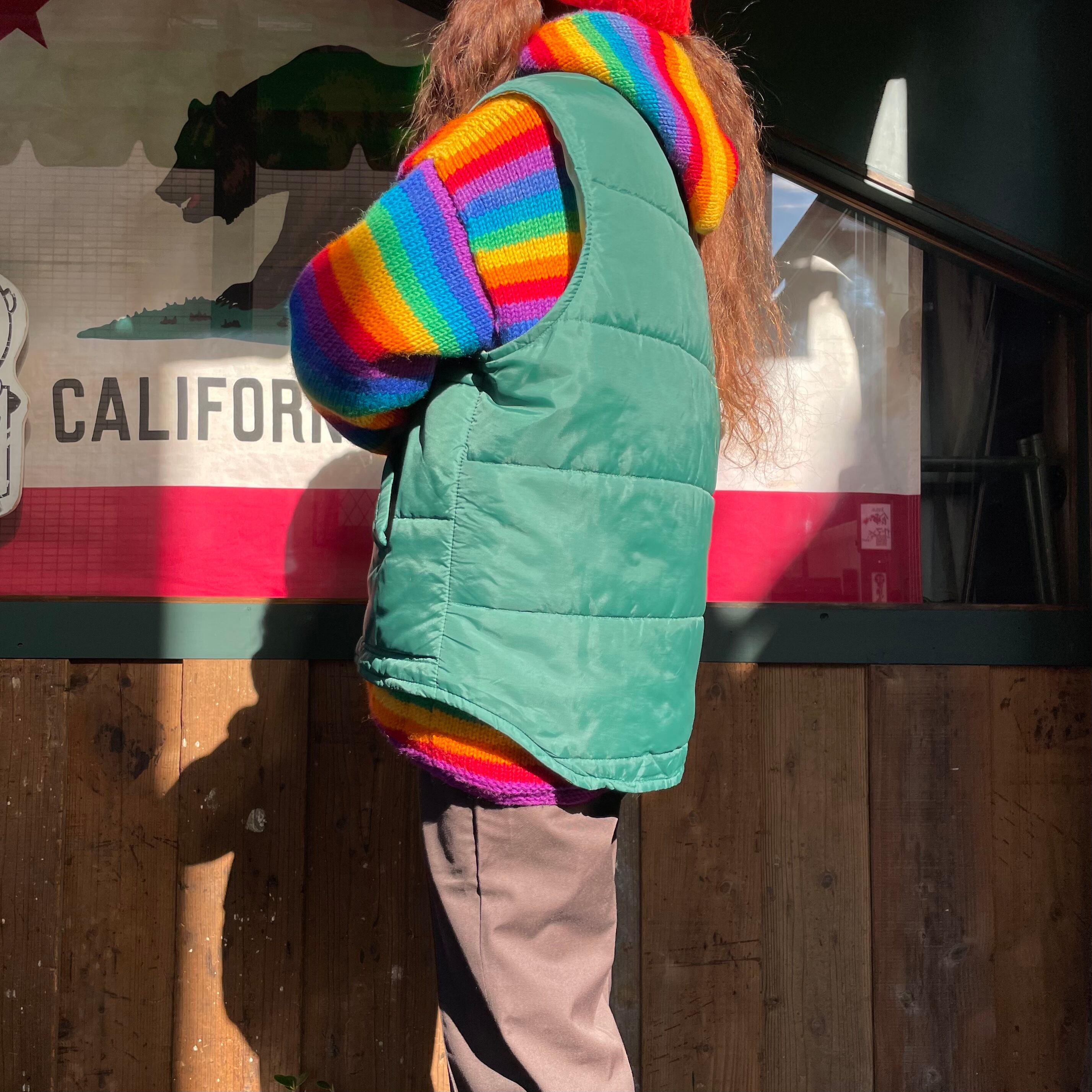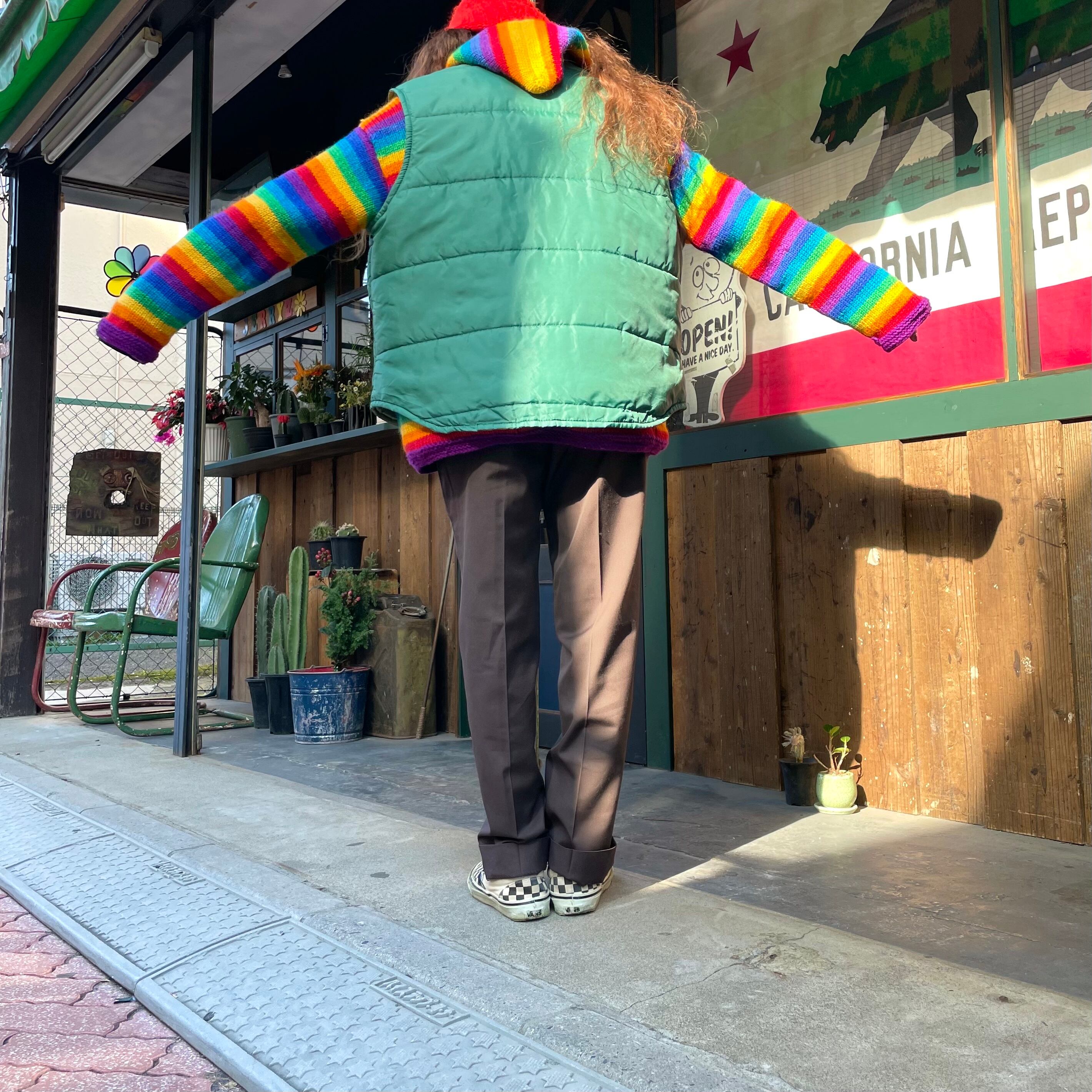 こちらは身幅が広くて大きめのサイズ感ですので、厚手のニットやスウェットの上、軽めのアウターの上などにも合わせられそうです。