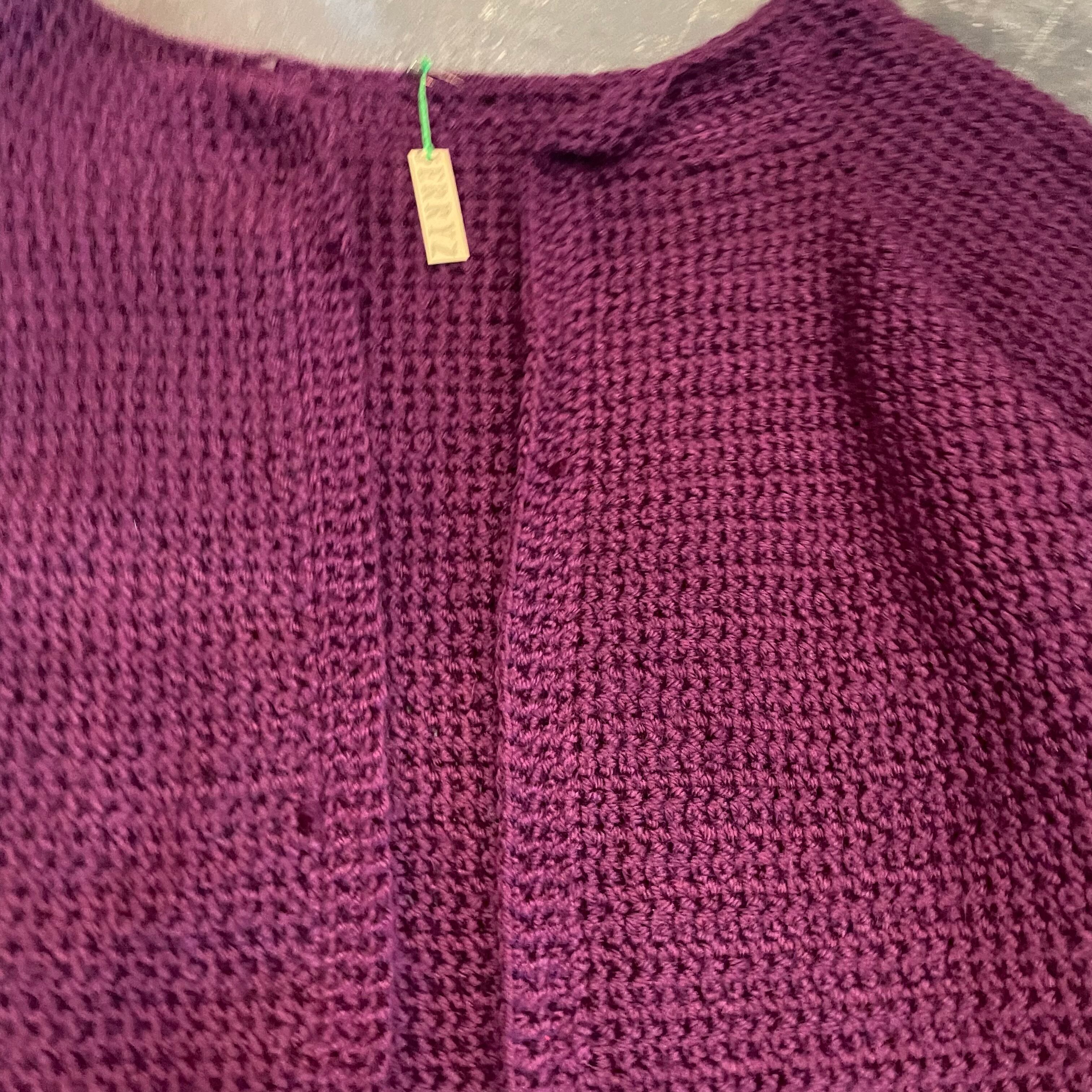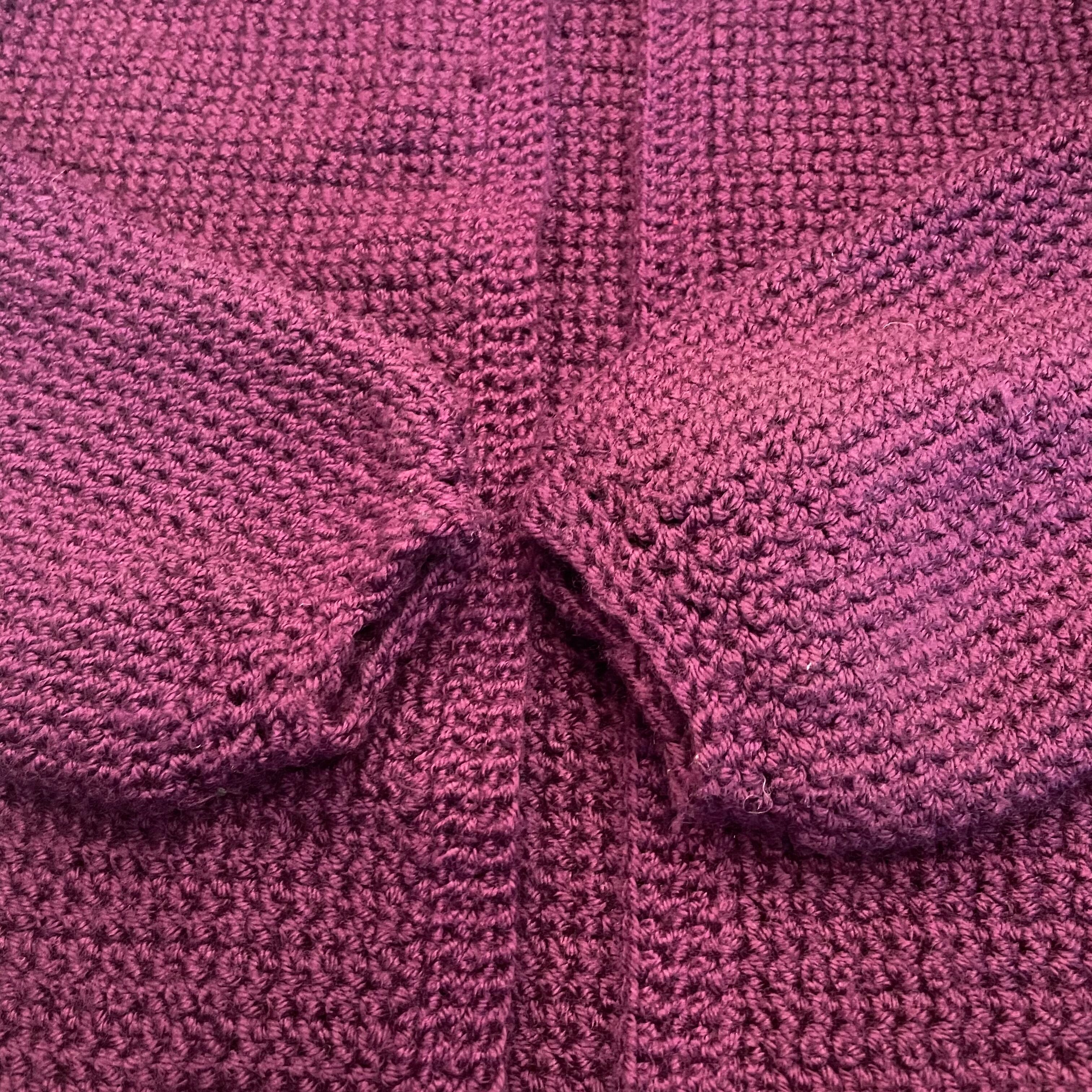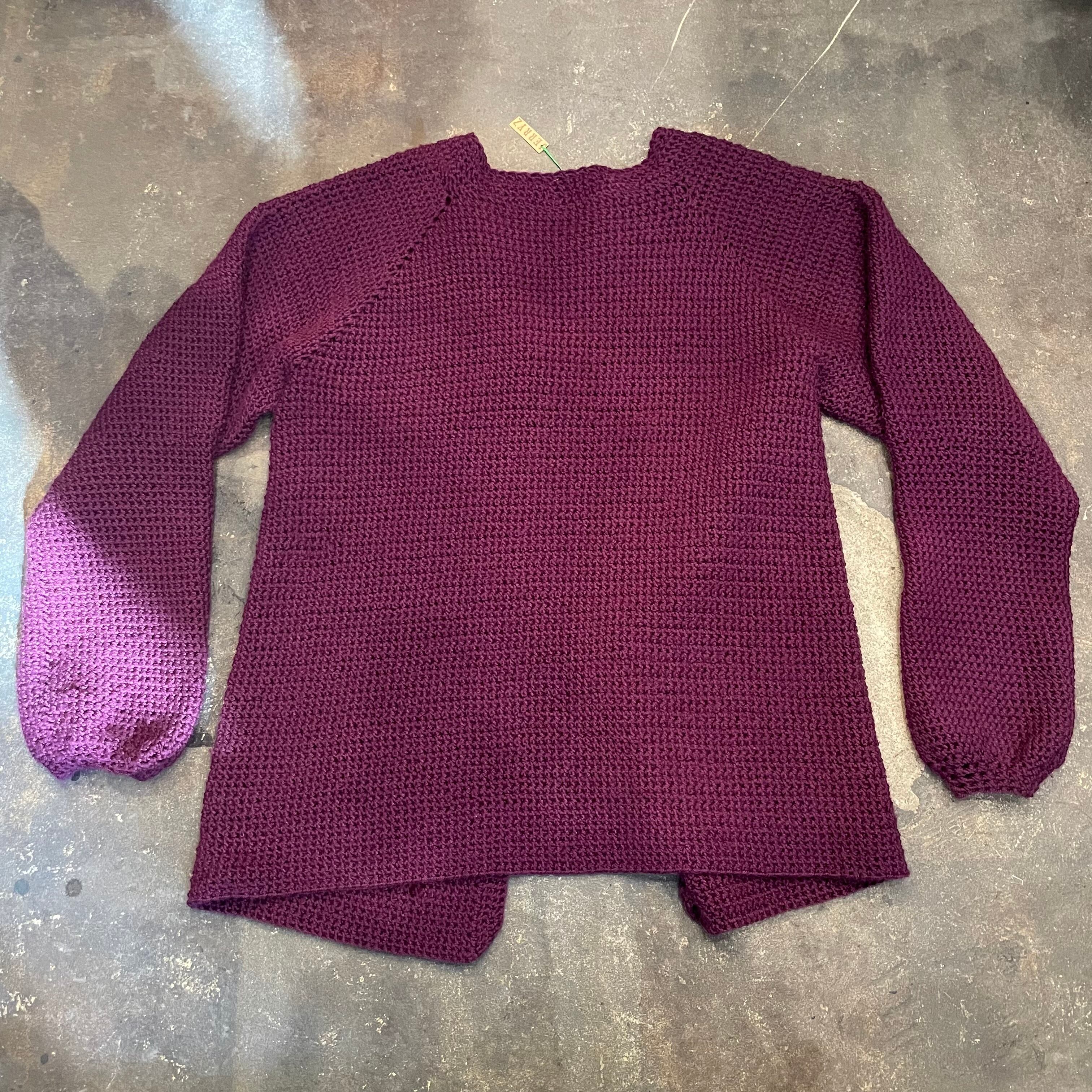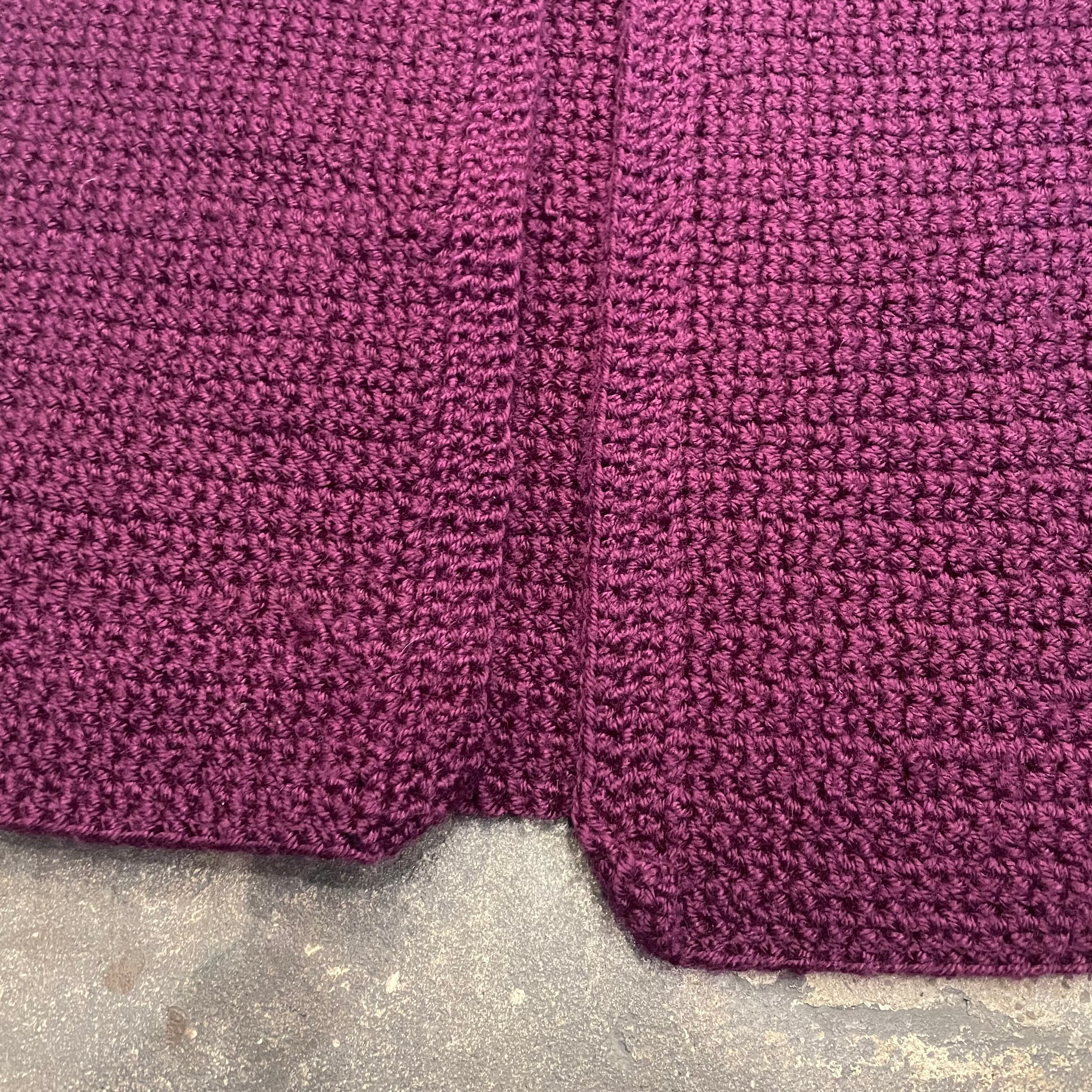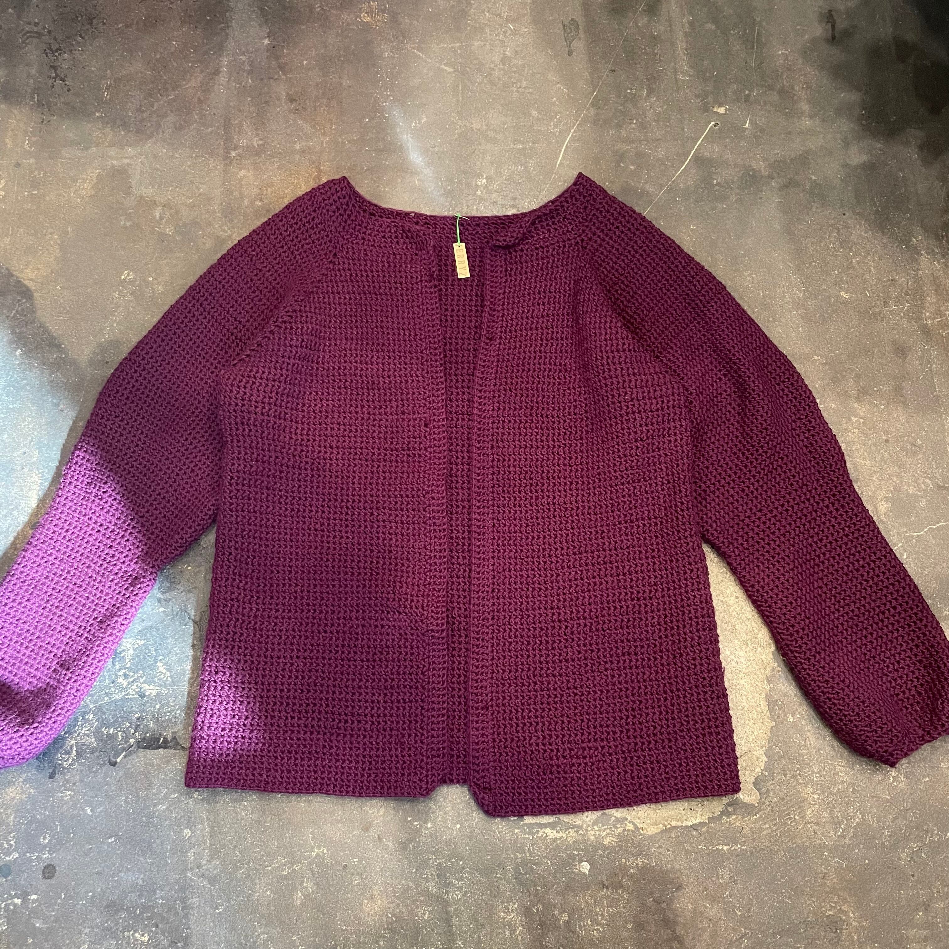 深い紫色のかなり大きいサイズ感がかわいいカーディガンです。