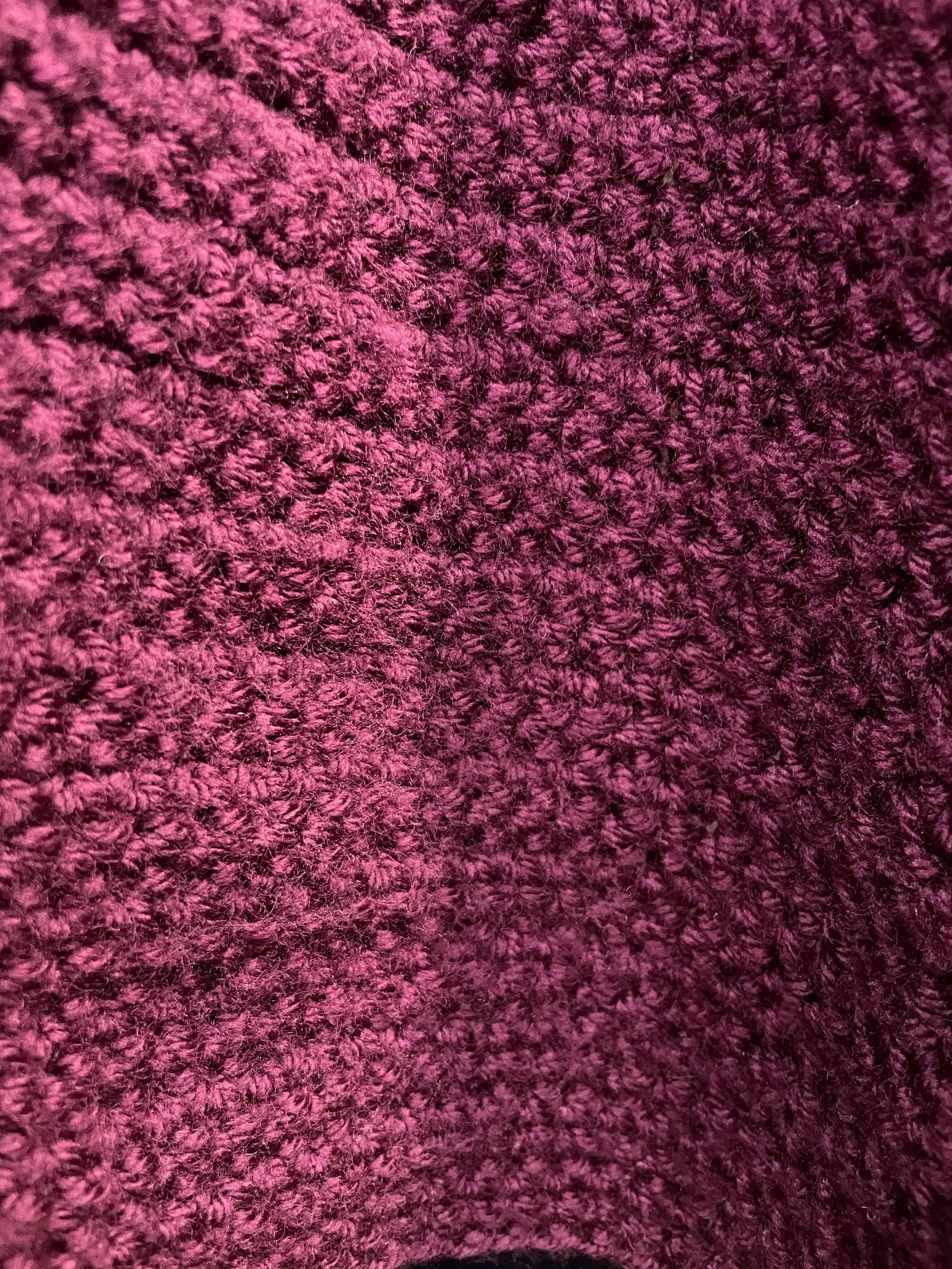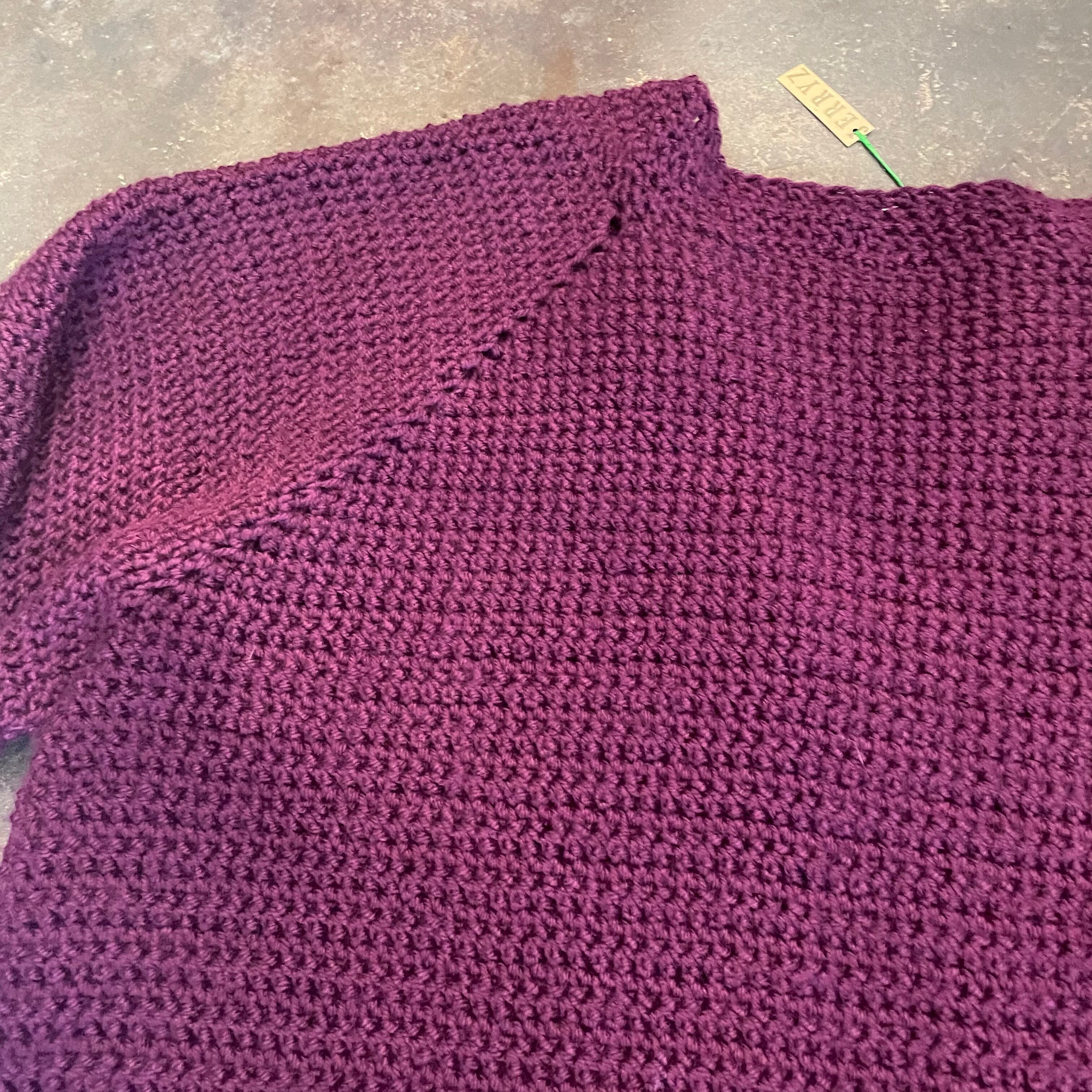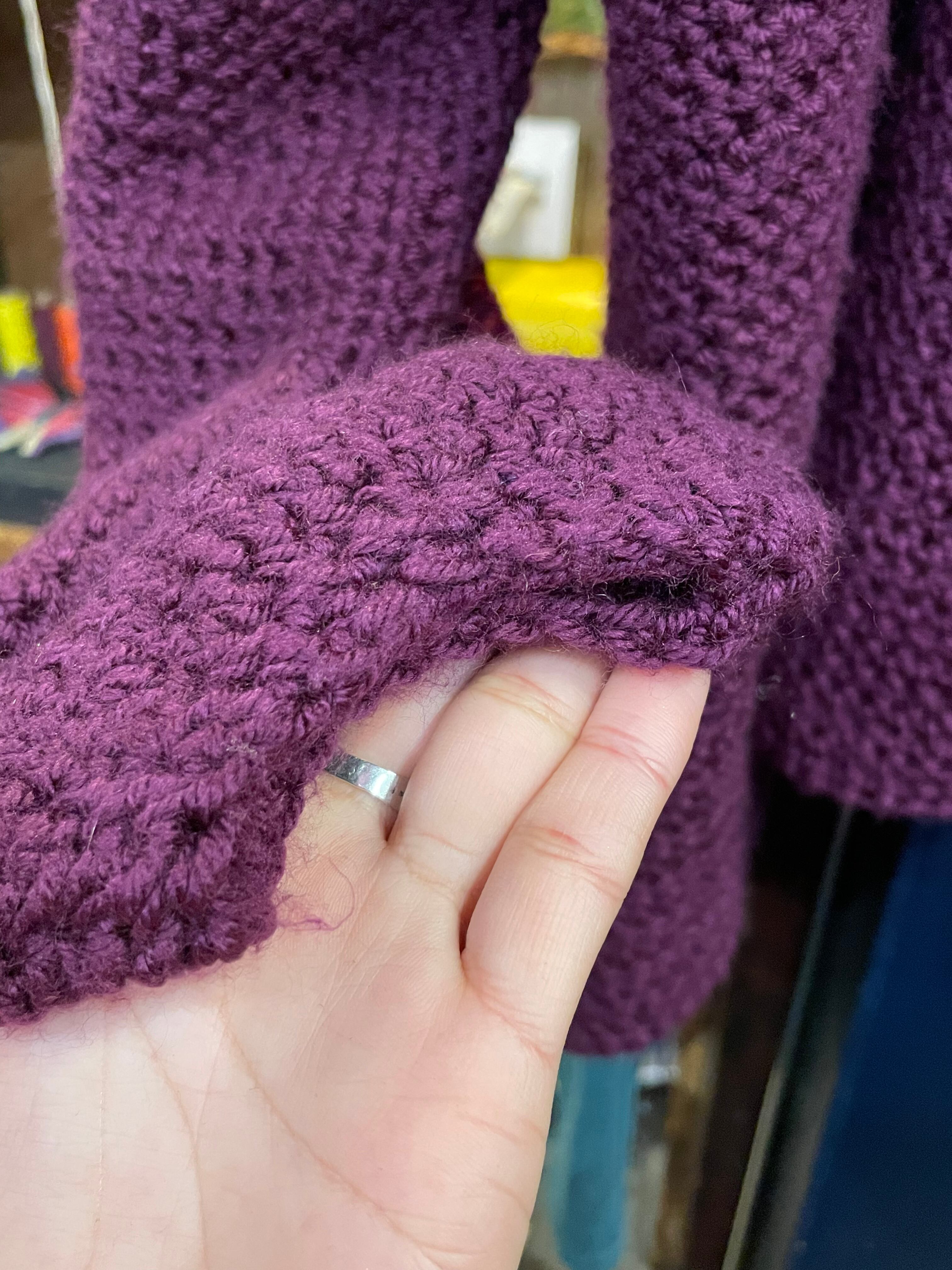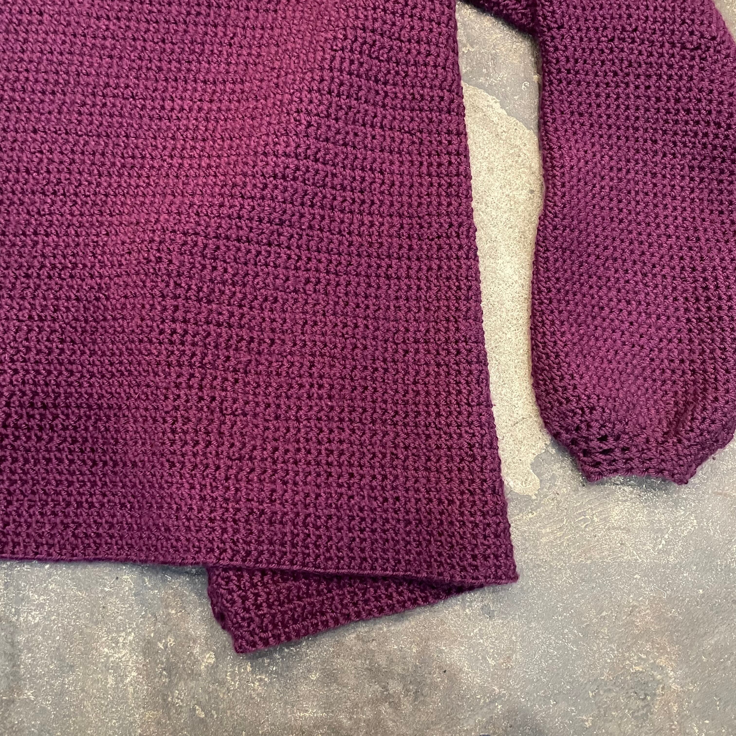 深い紫色のかなり大きいサイズ感がかわいいカーディガンです。