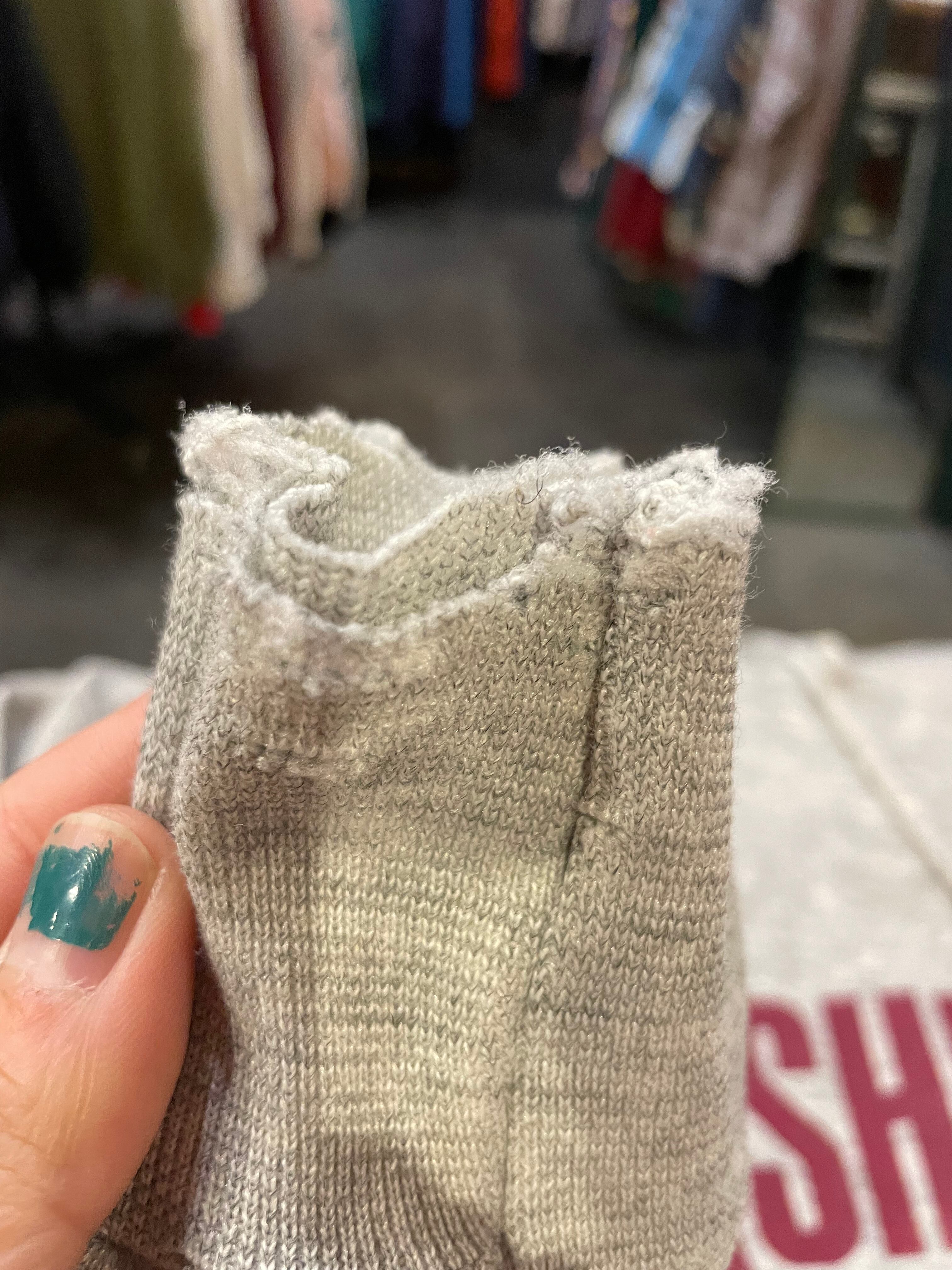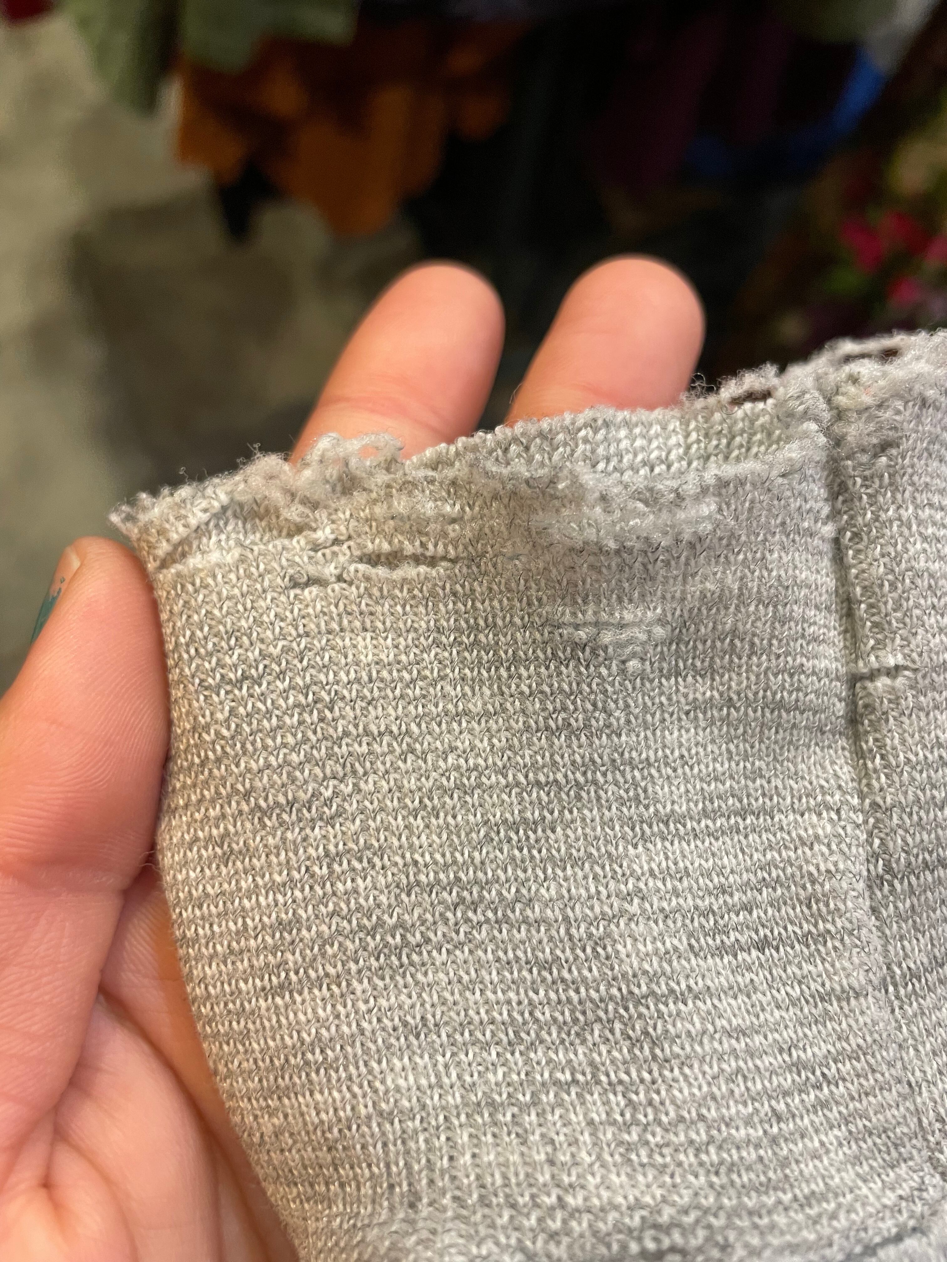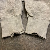 袖口にかなりダメージがございます。ポケットがやや右にズレています。