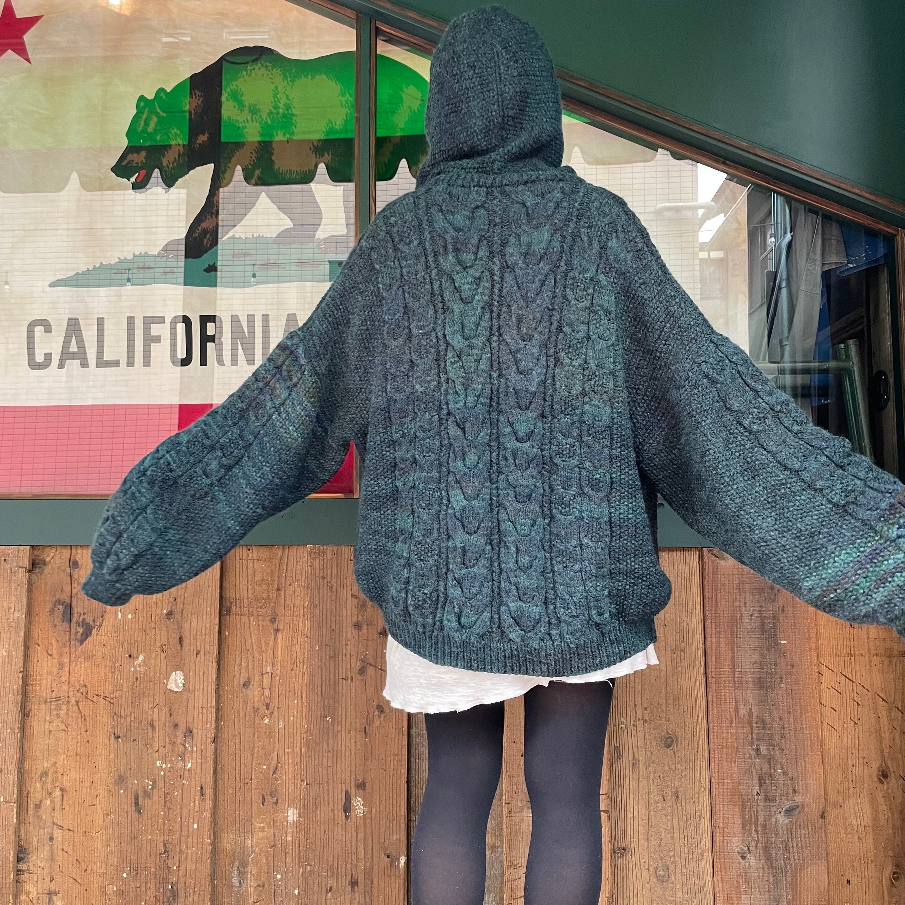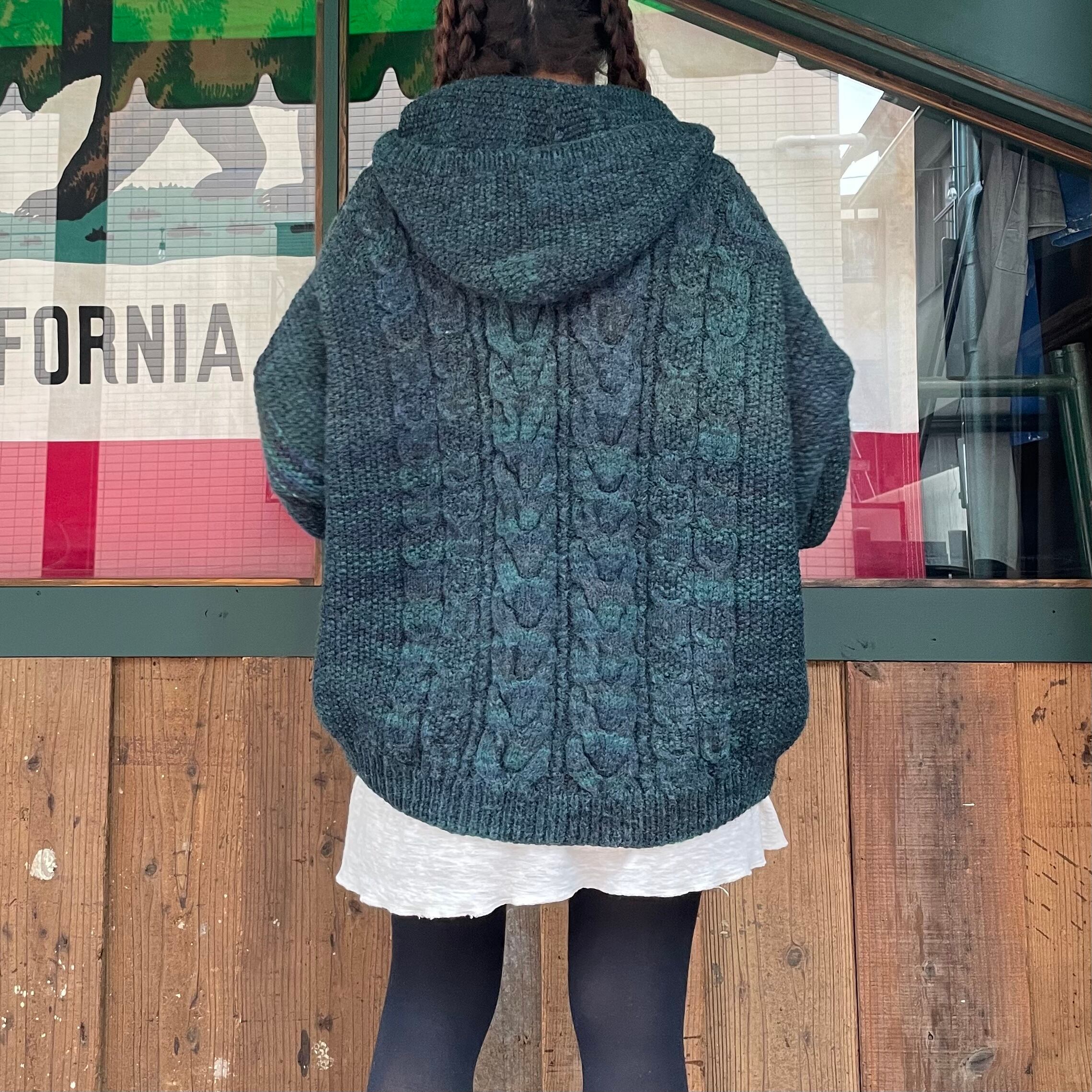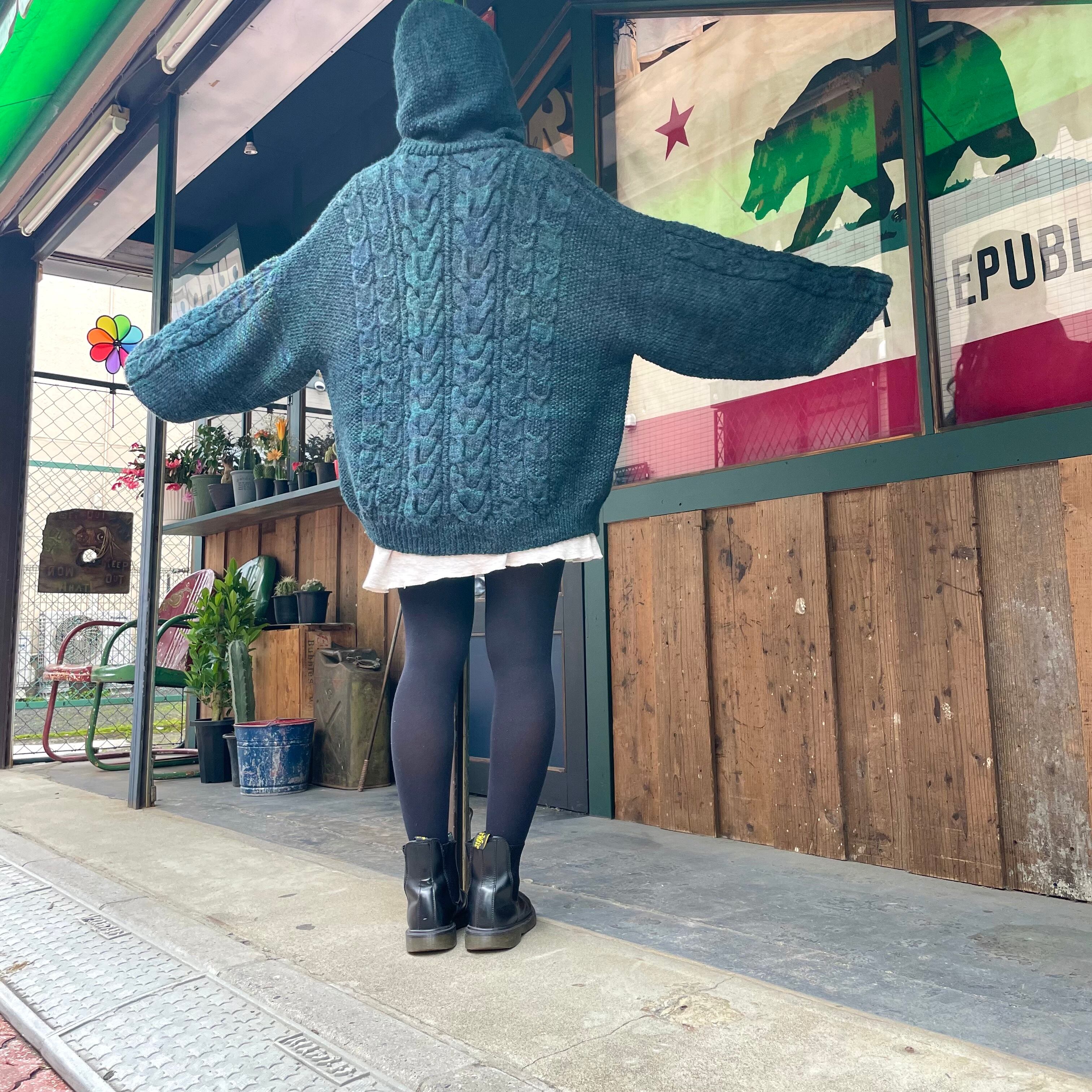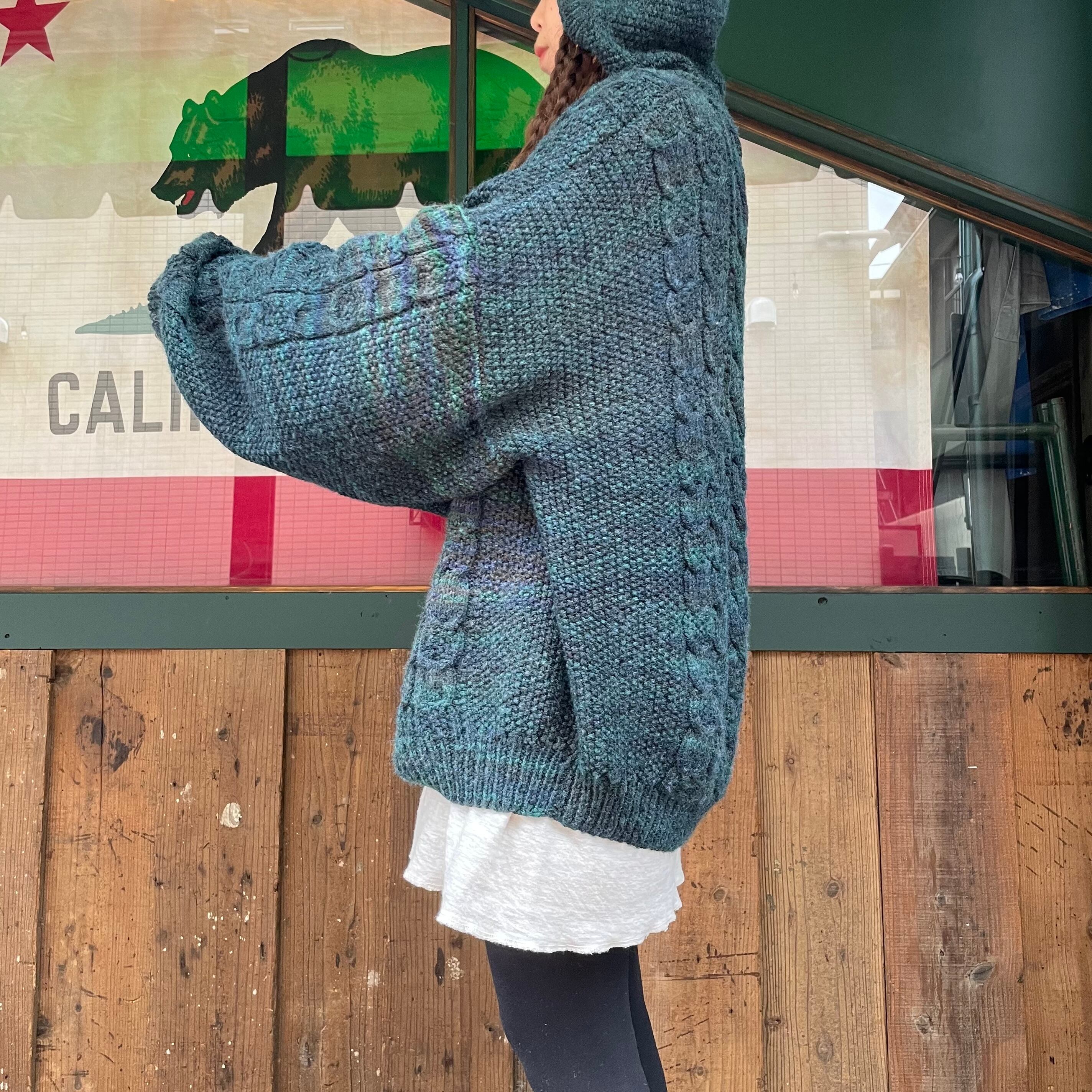 green oversized knit parka