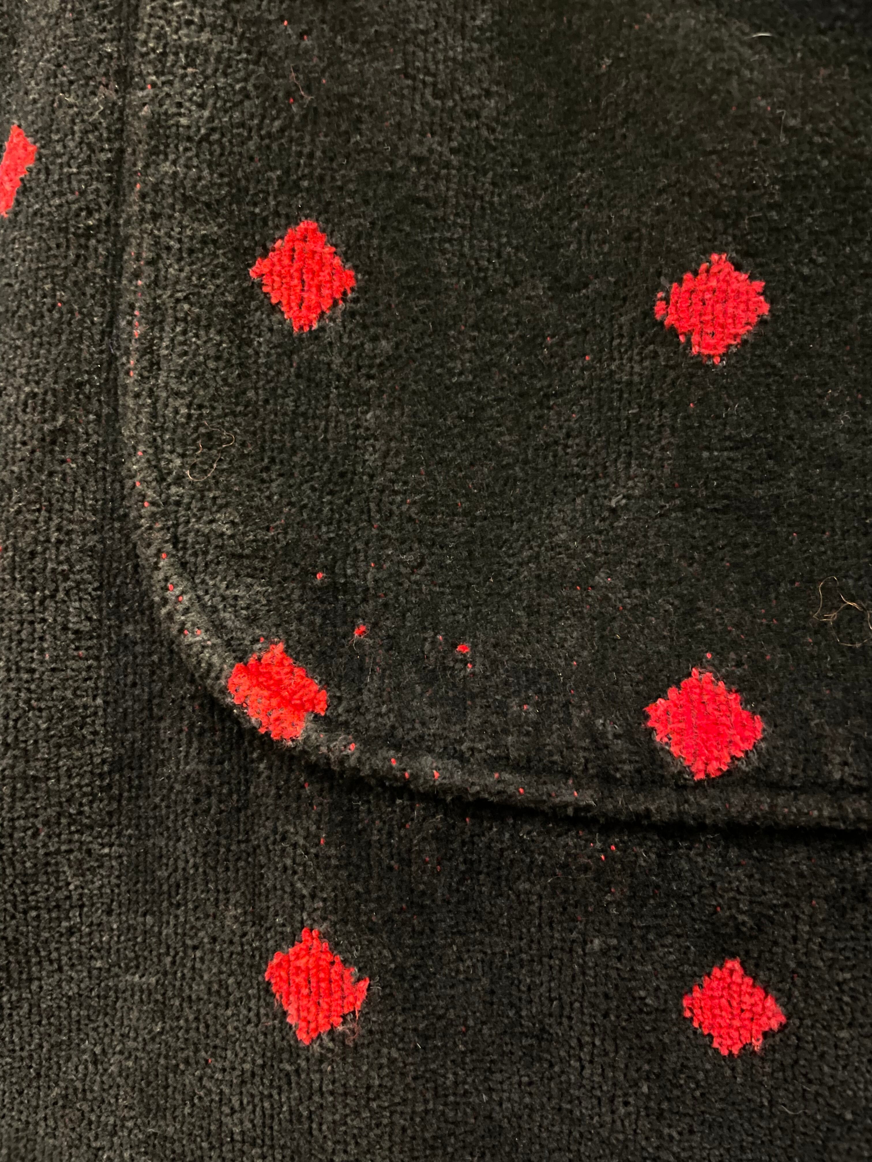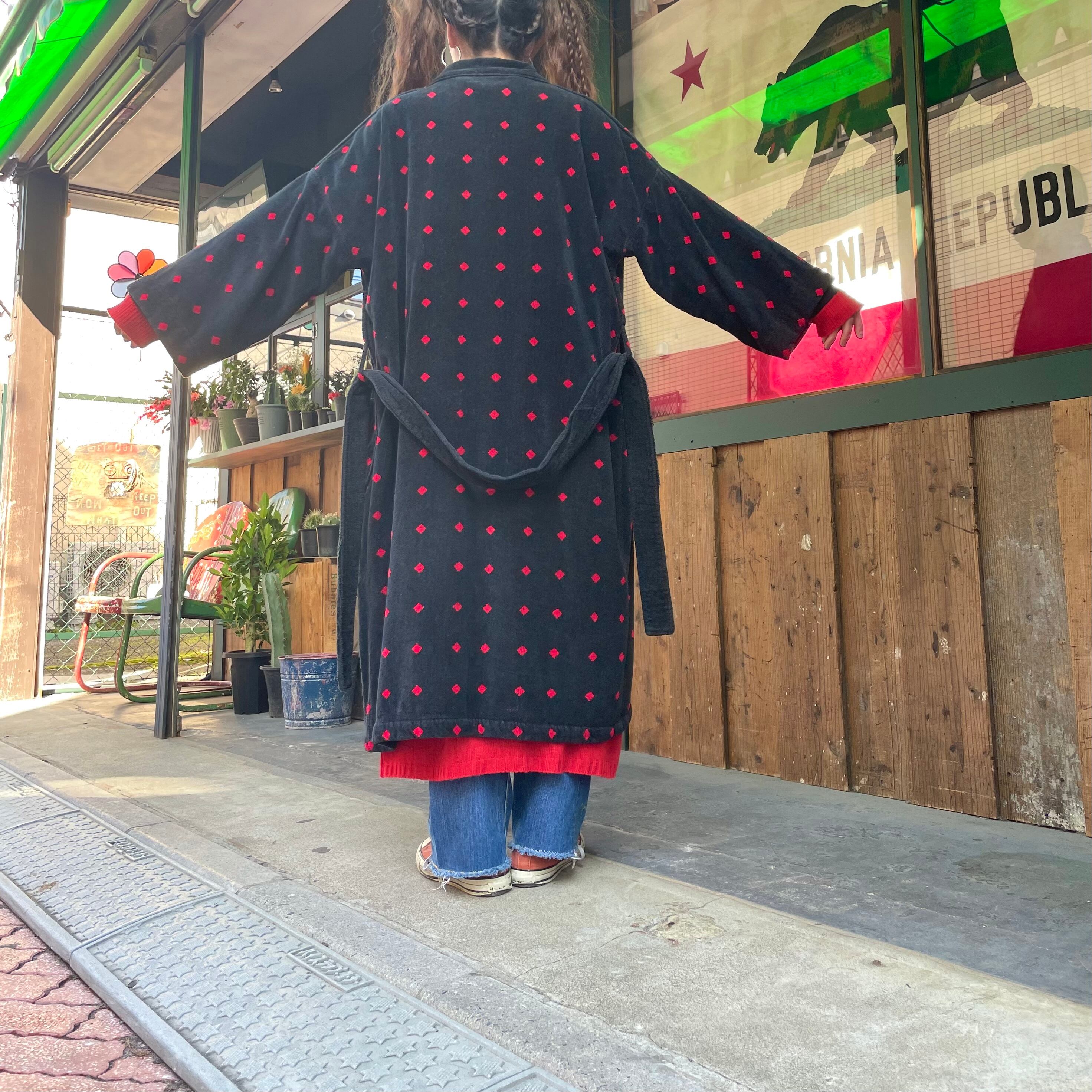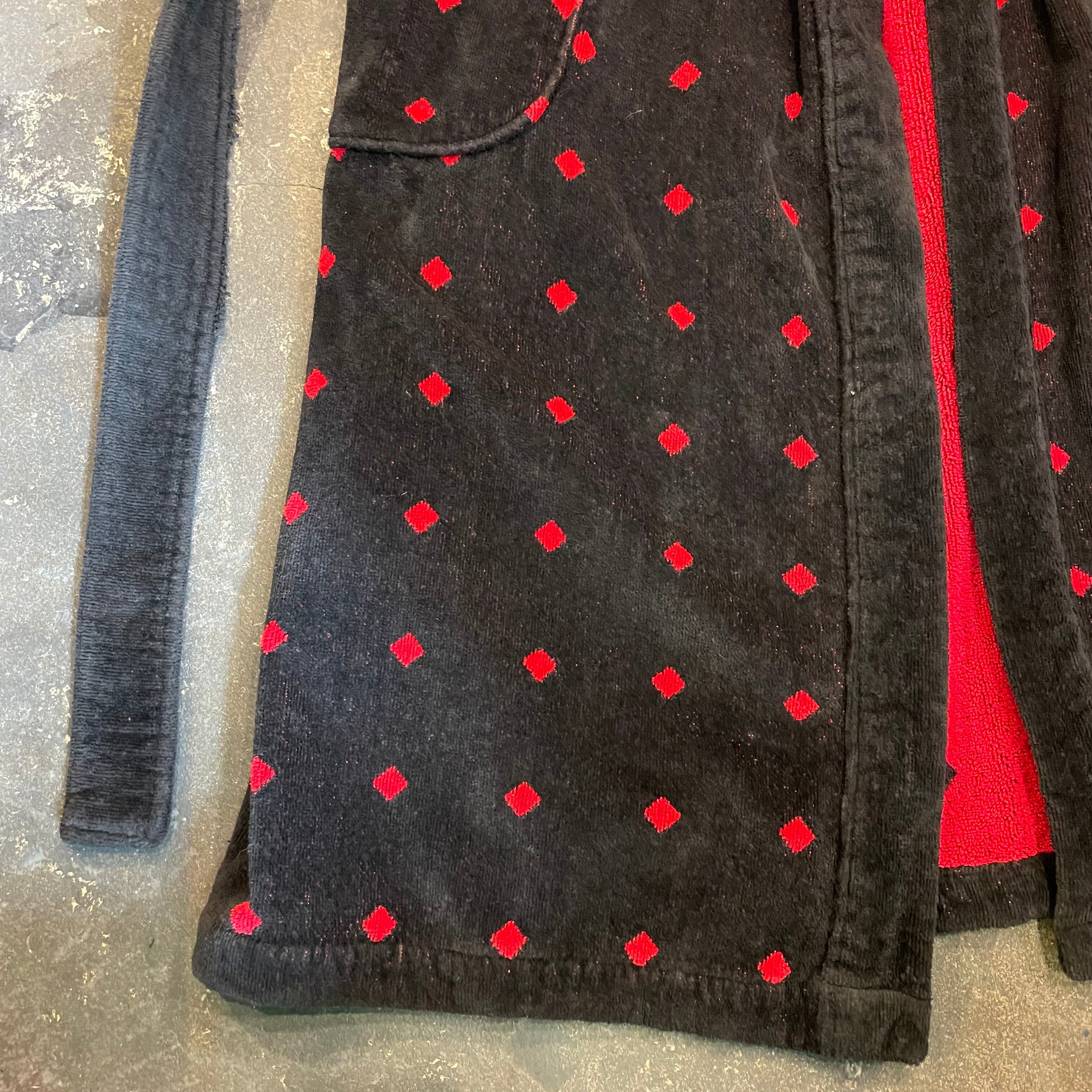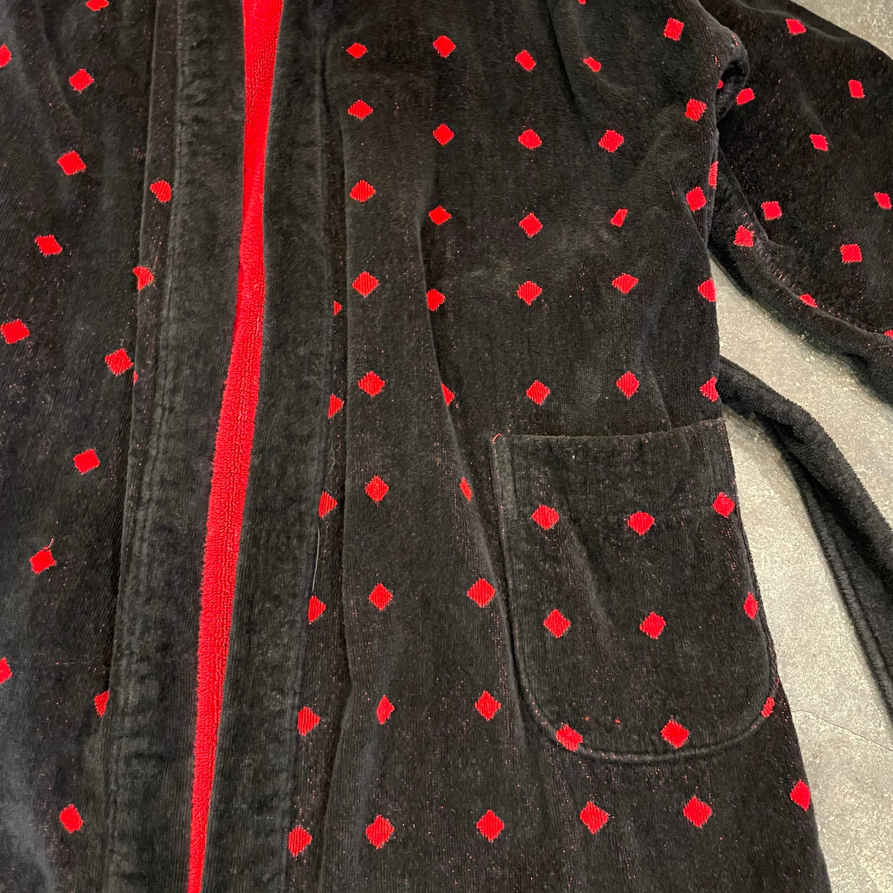 黒×赤の配色がかっこいい厚手のパイルガウンです。コットン素材で肌触りも気持ち良く、包まれる安心感のある一着です。