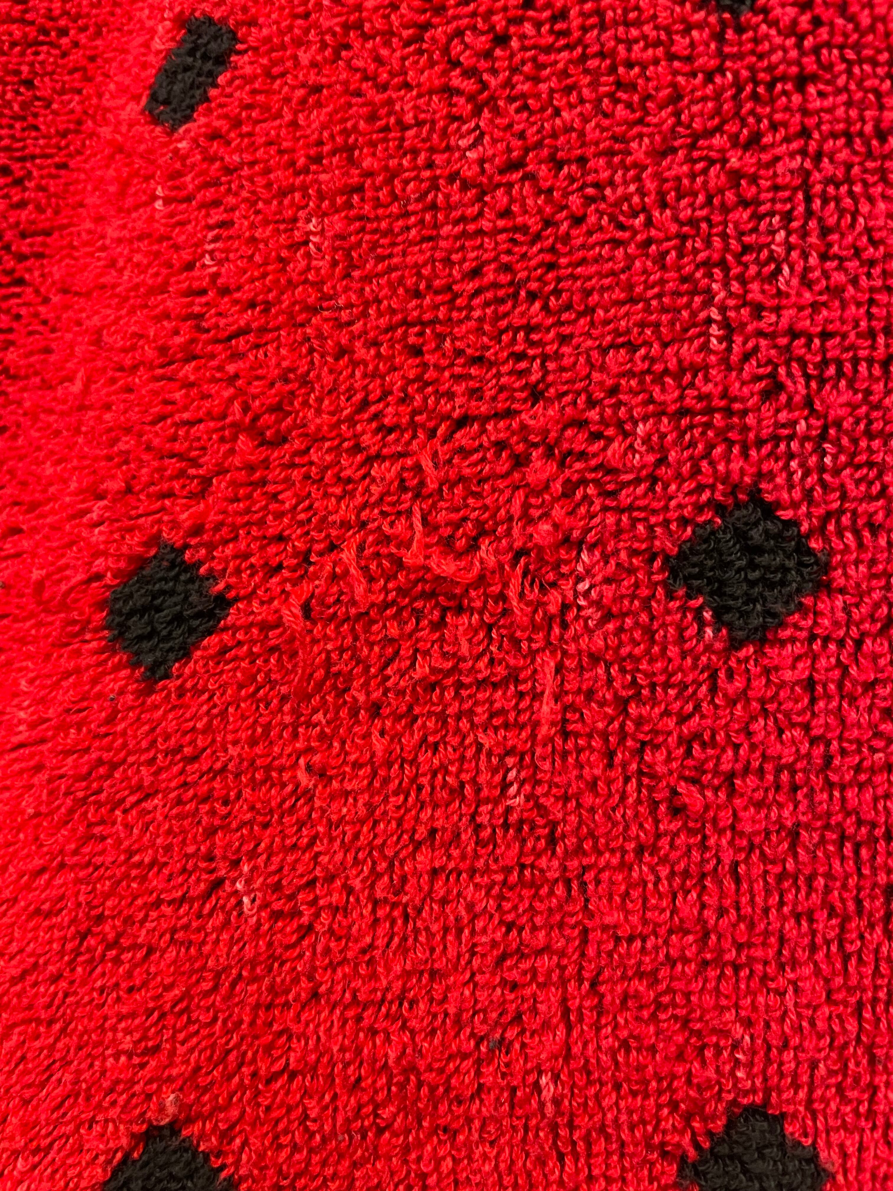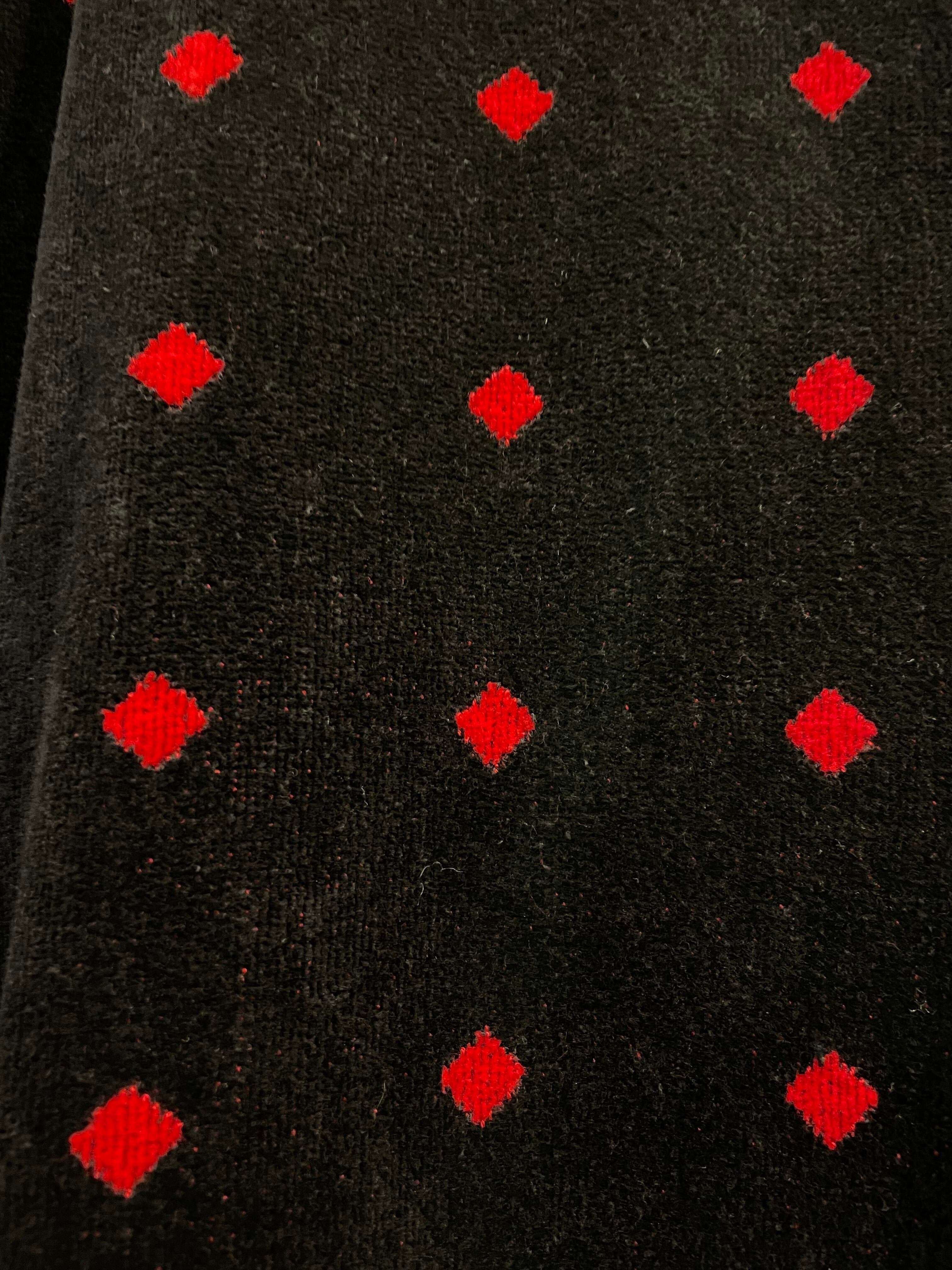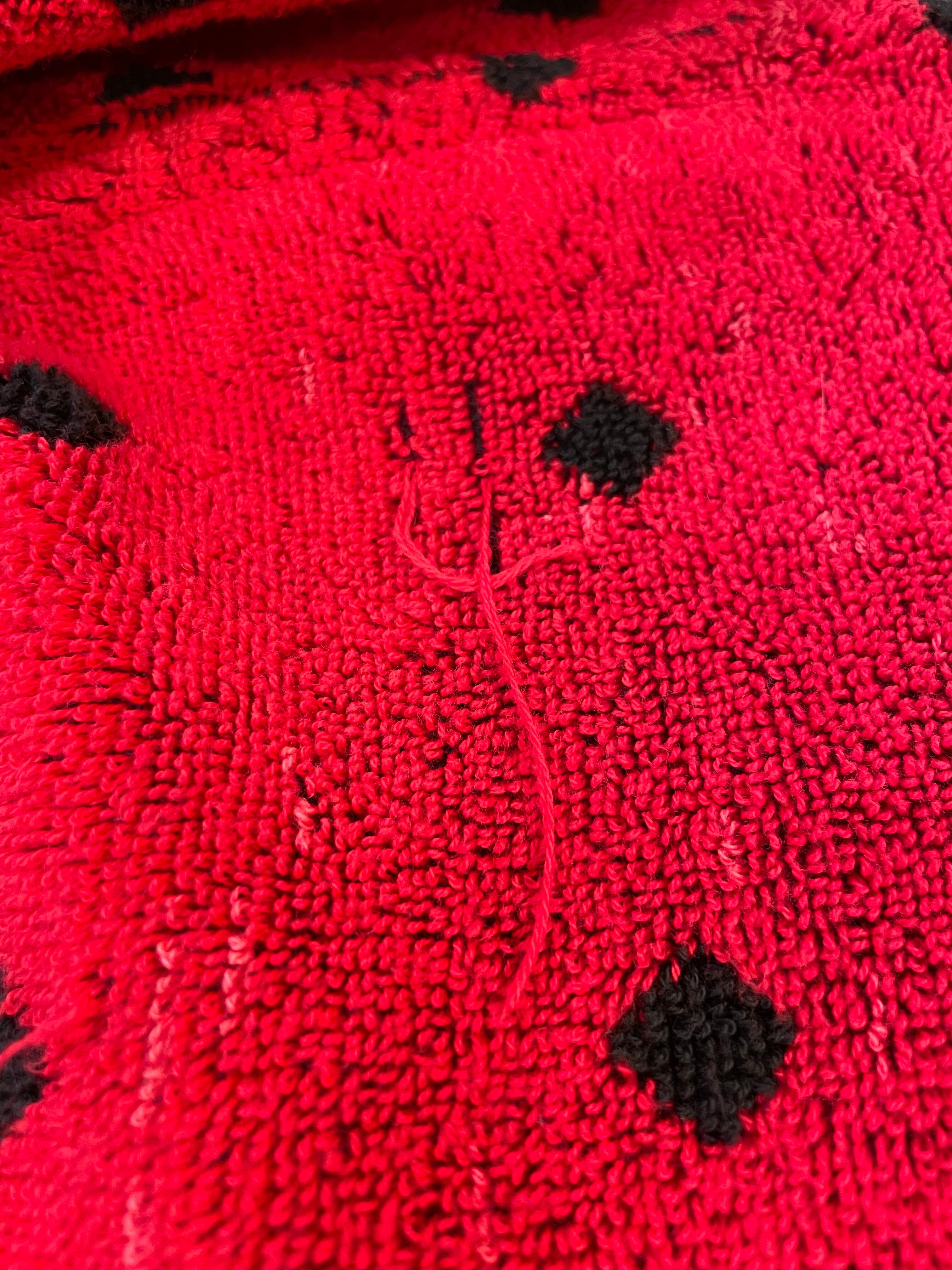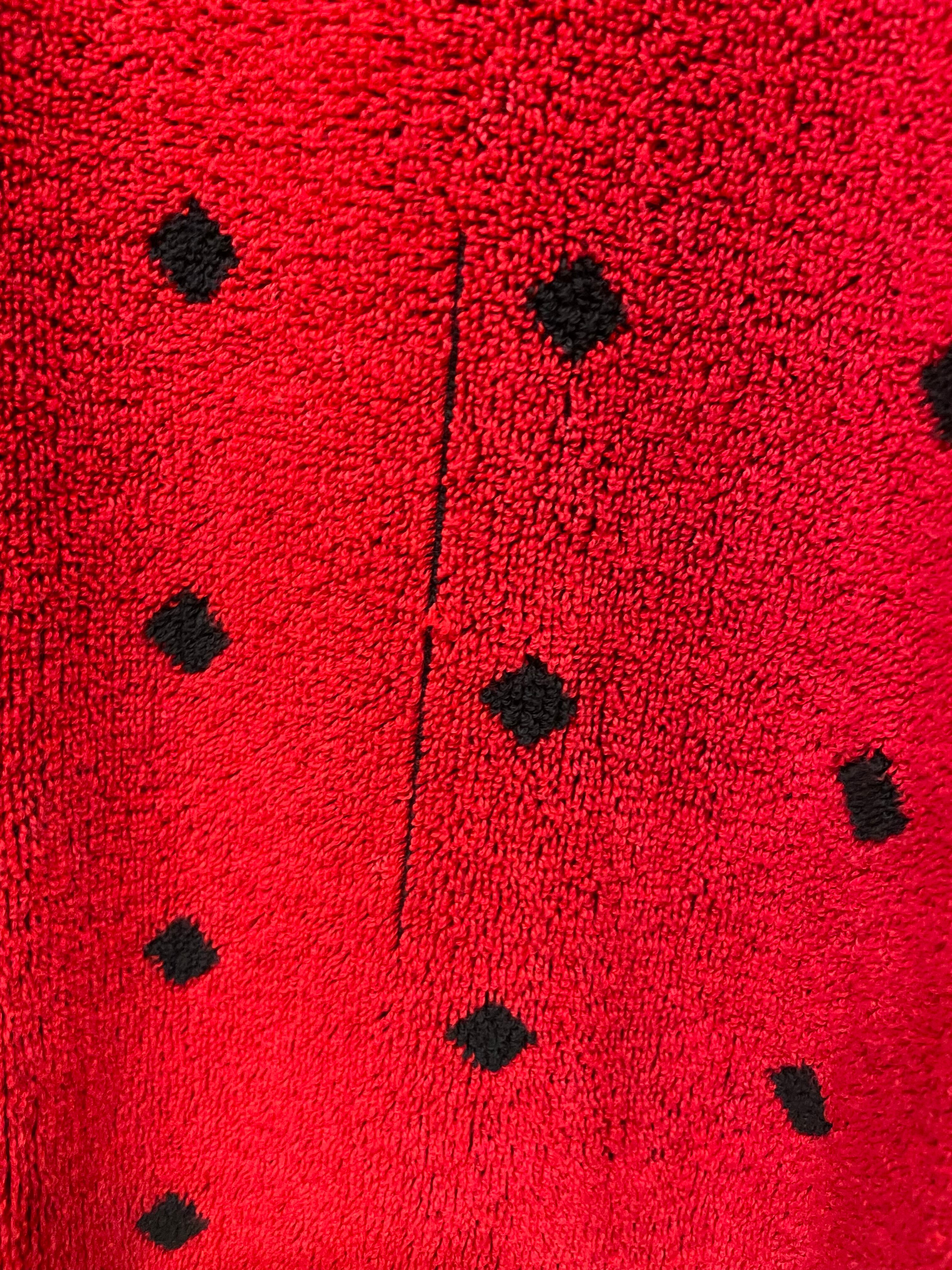 黒×赤の配色がかっこいい厚手のパイルガウンです。コットン素材で肌触りも気持ち良く、包まれる安心感のある一着です。