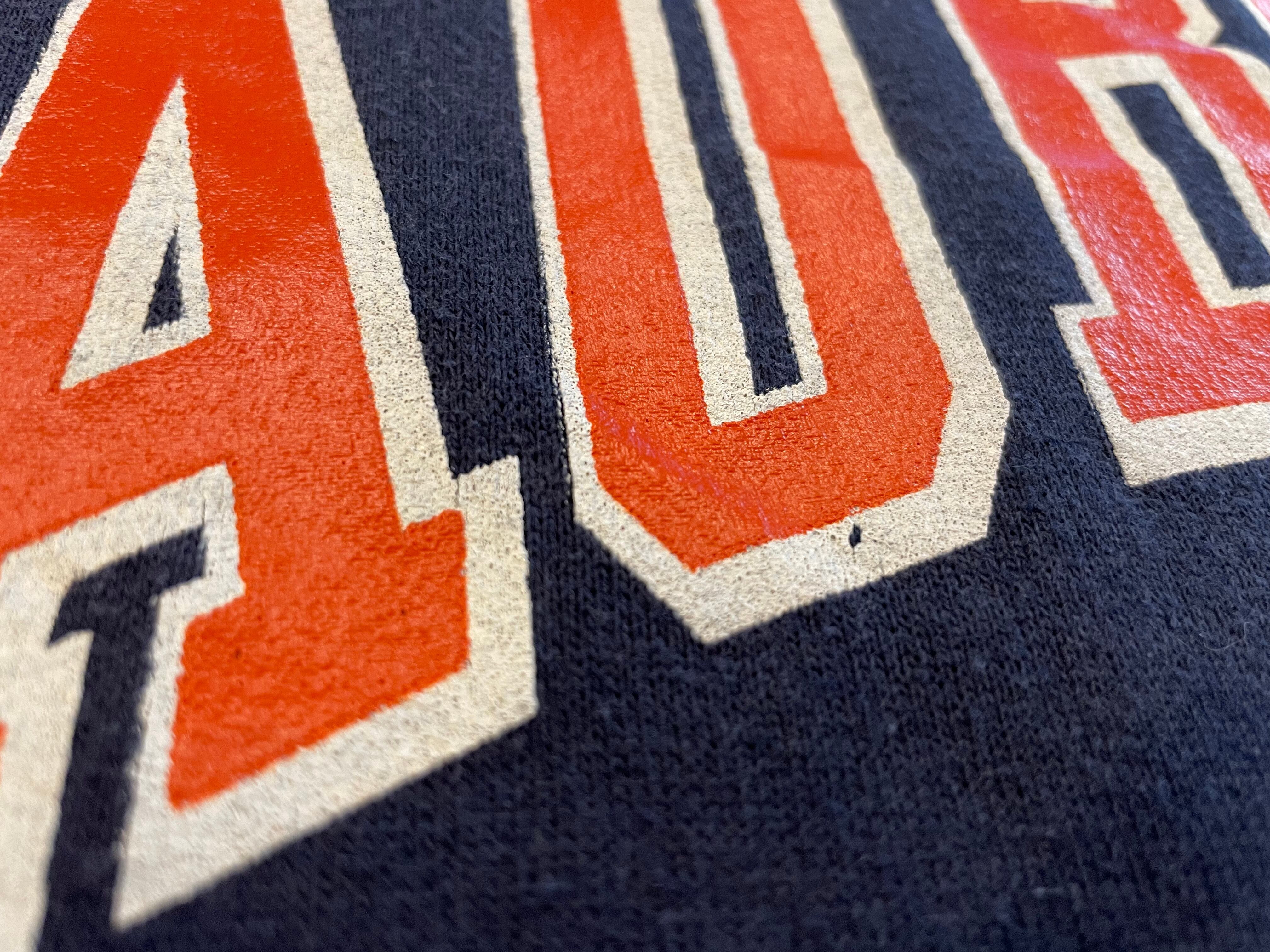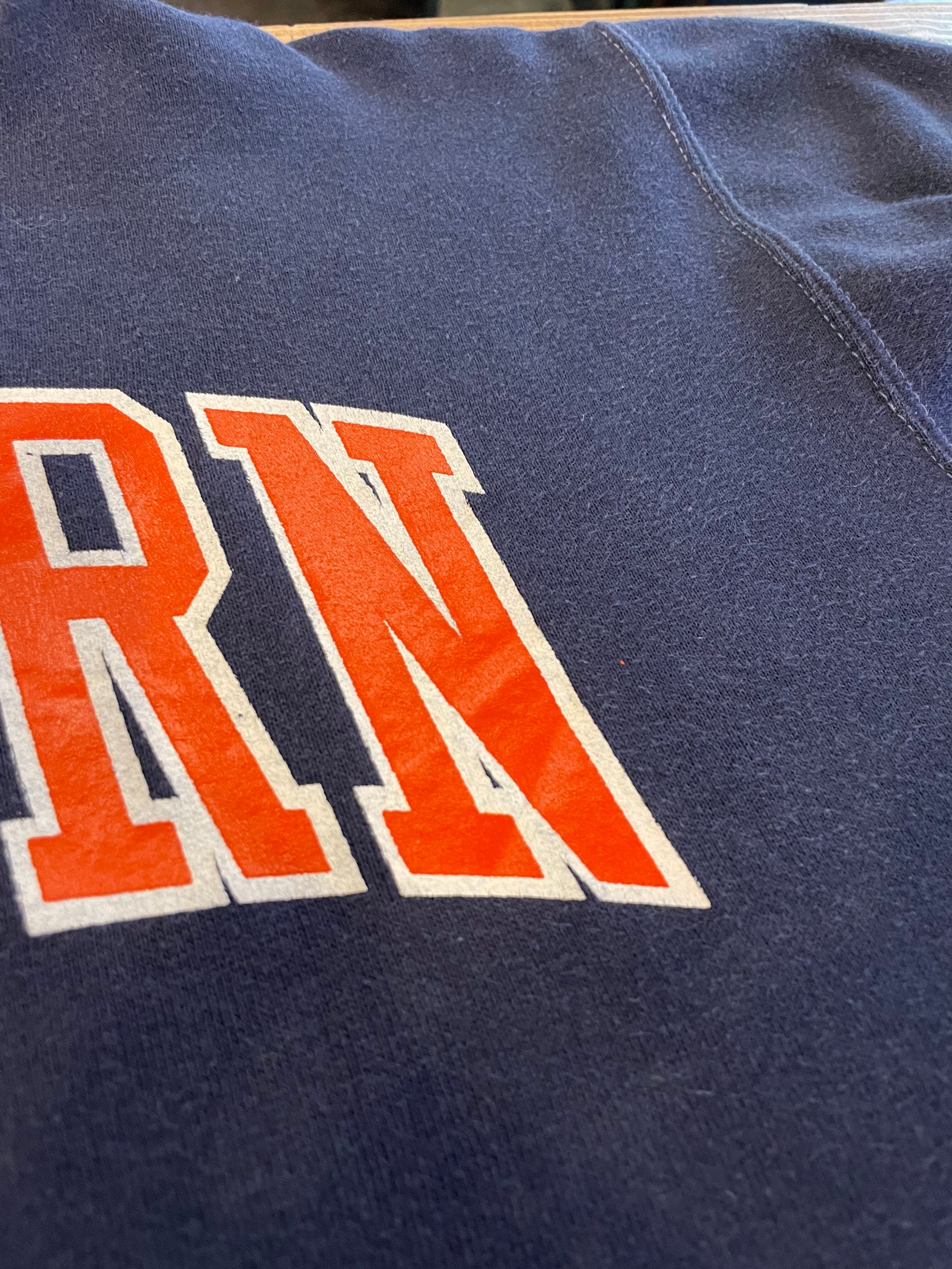 ネイビー地にオレンジのカレッジロゴがかわいい70〜80年代USA製のスウェットです。