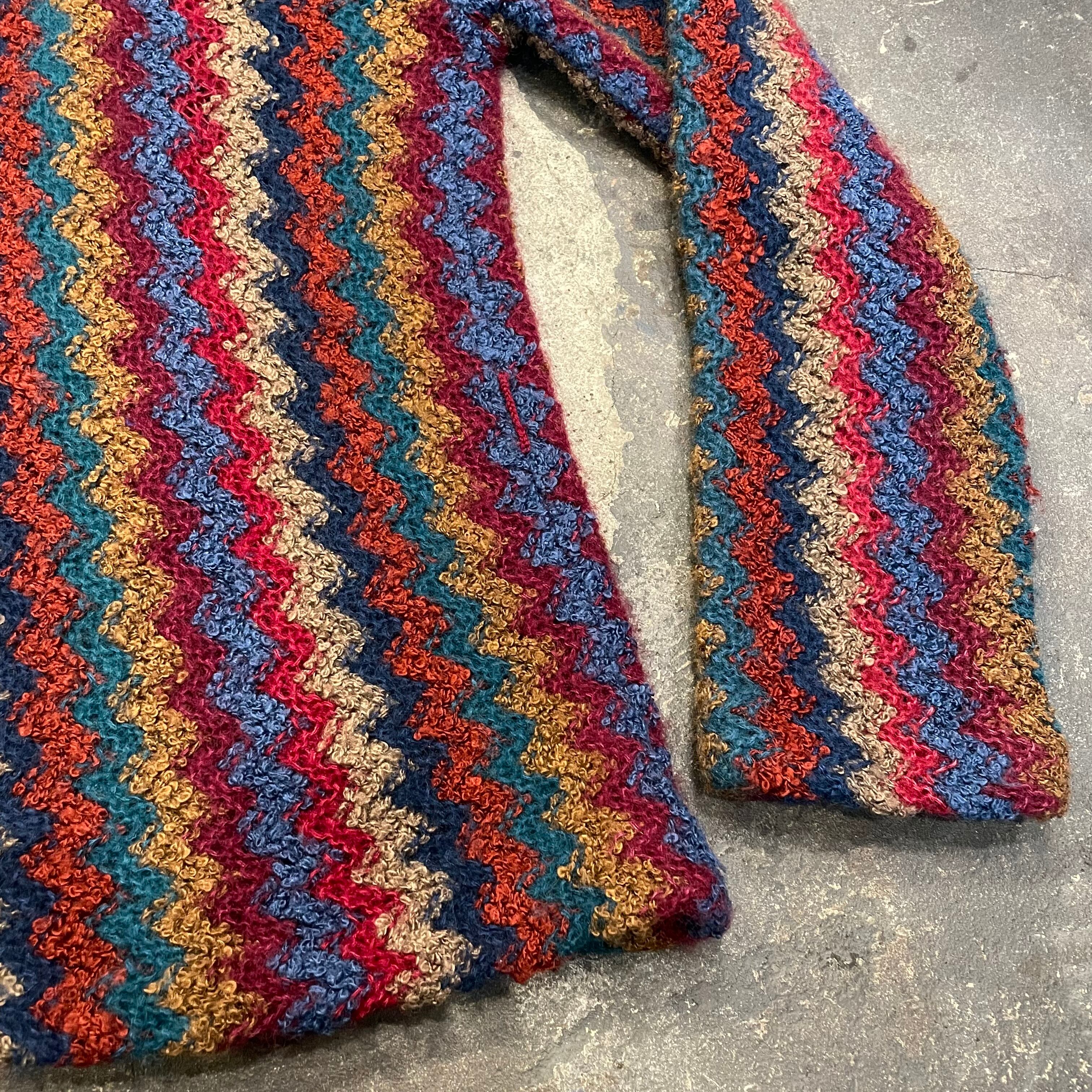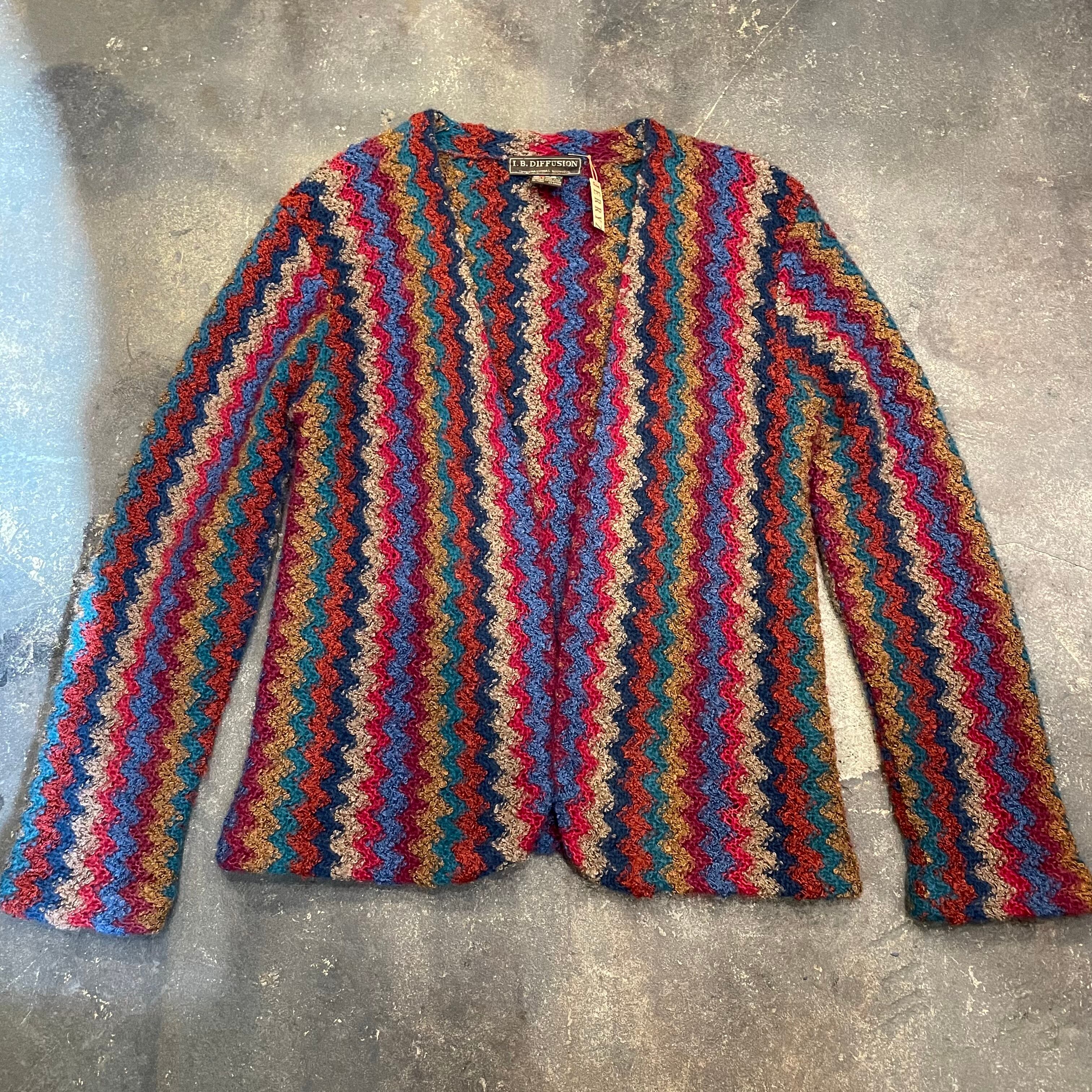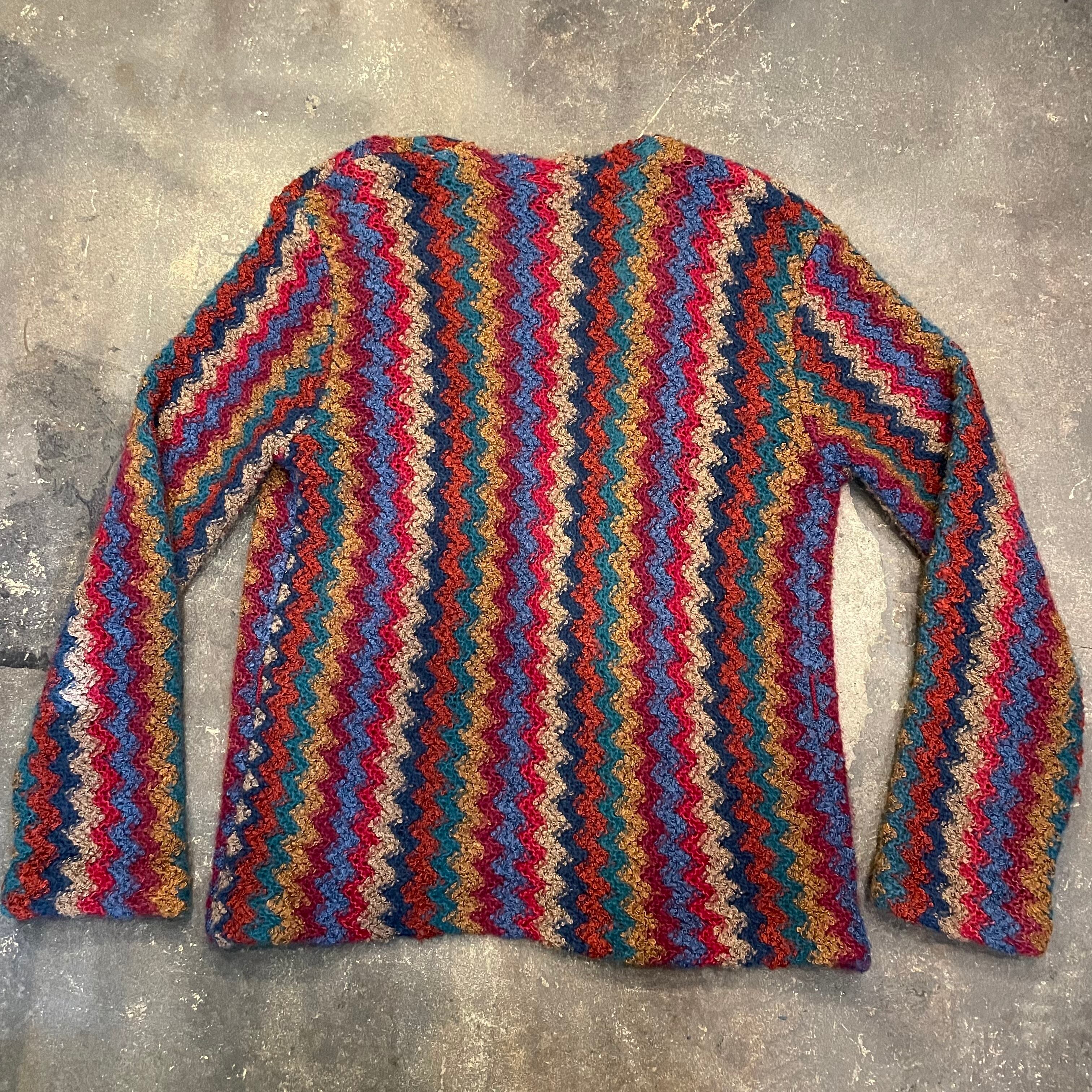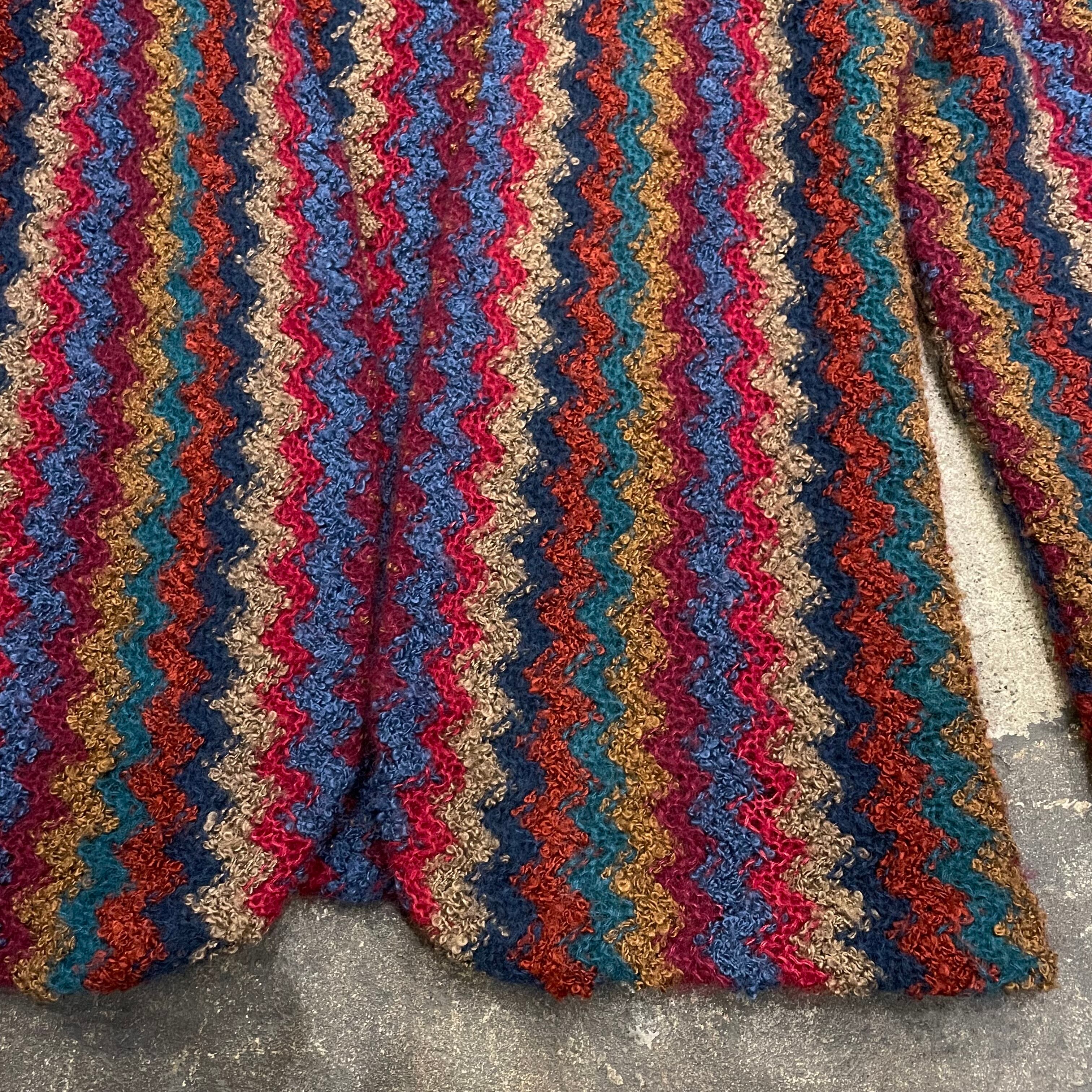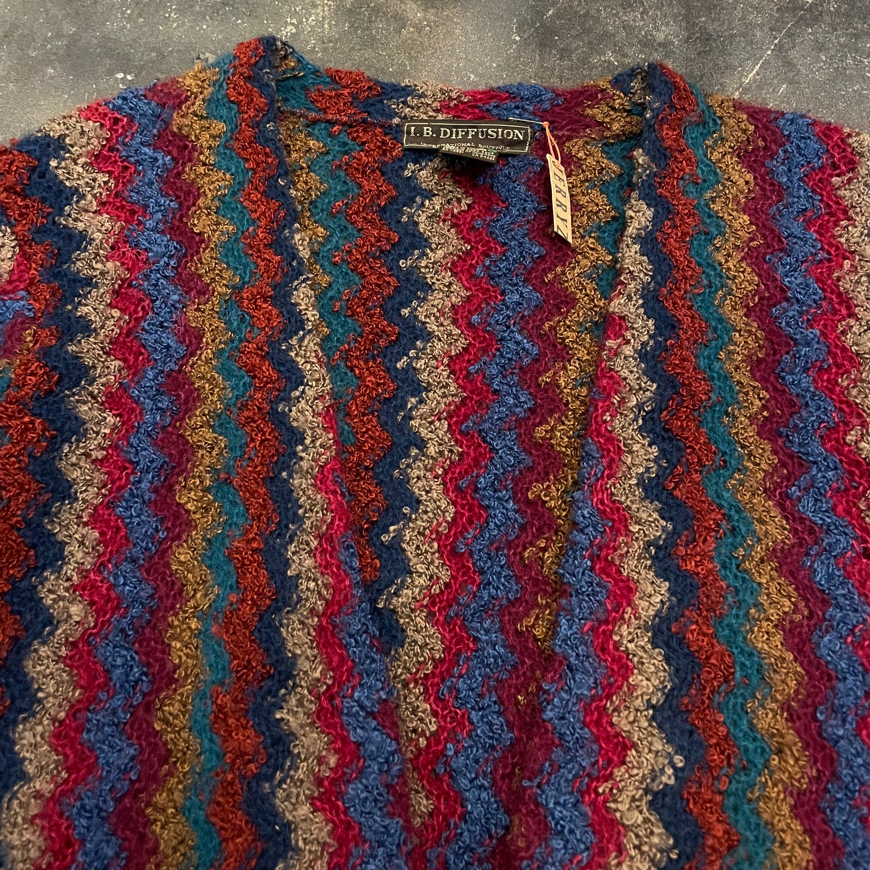 ギザギザのストライプがかわいいニットガーディガンです。シルエット的にはカーディガンというよりジャケットっぽいややかちっとした感じです。
