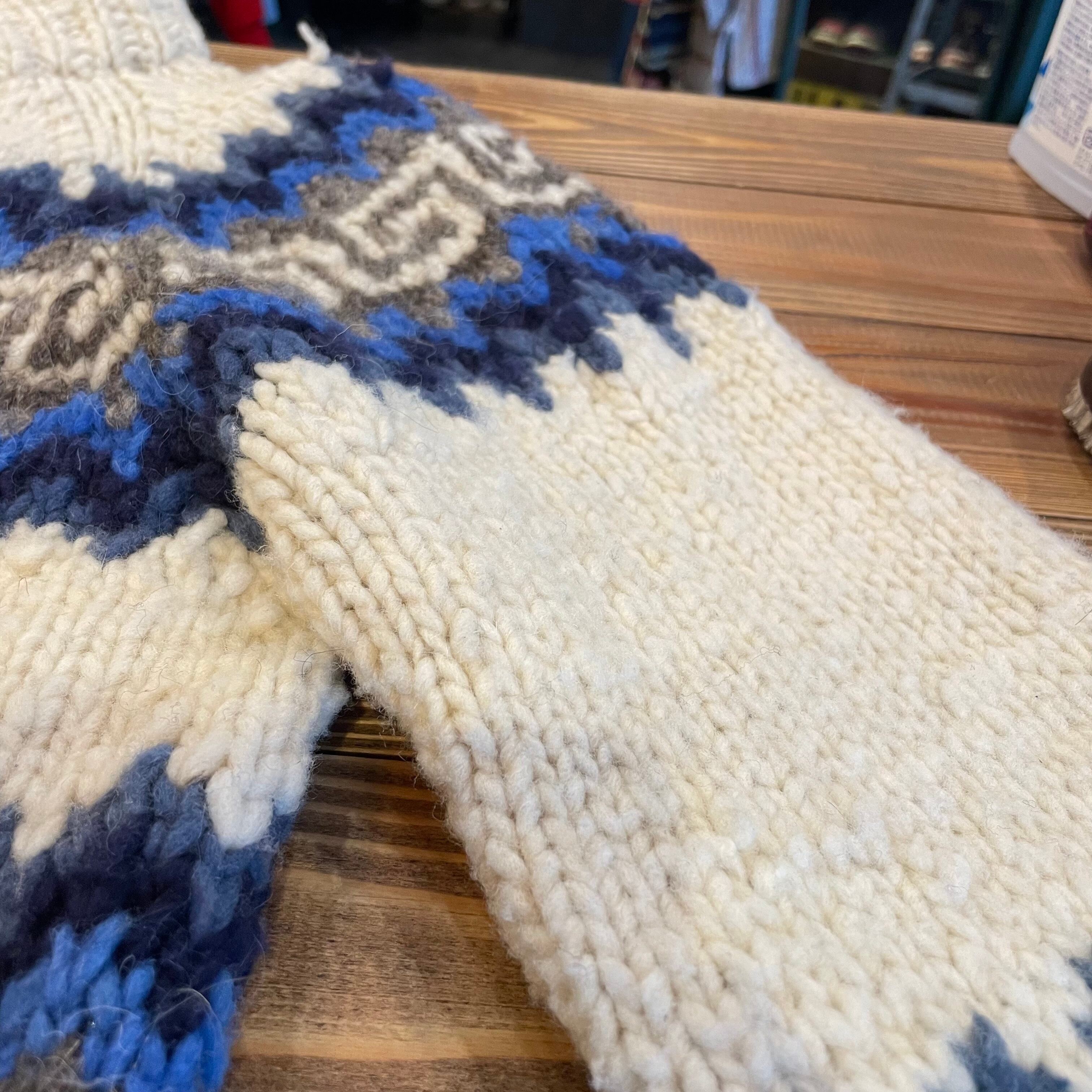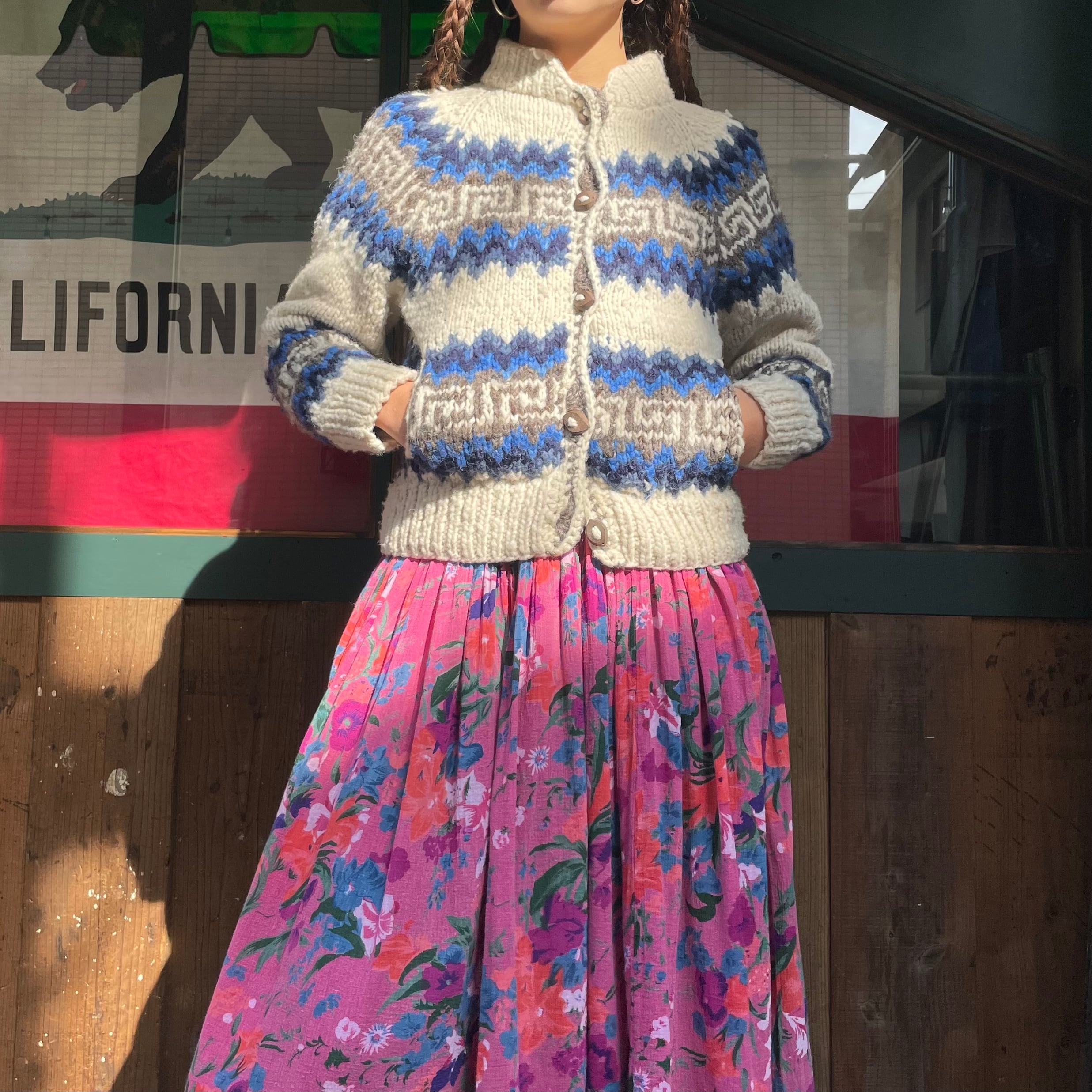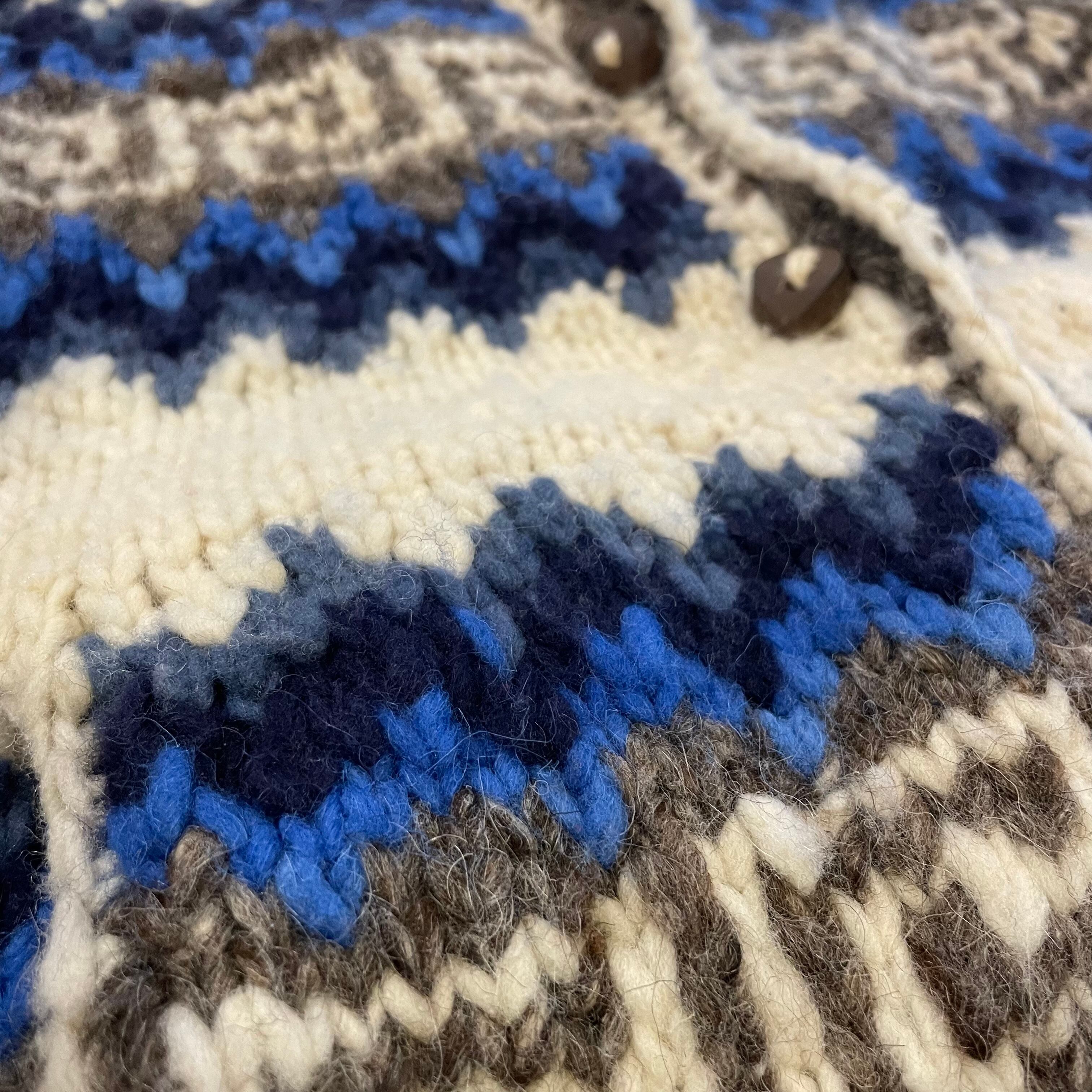 コンパクトなサイズ感がかわいい、エクアドル製手編みのカーディガンです。