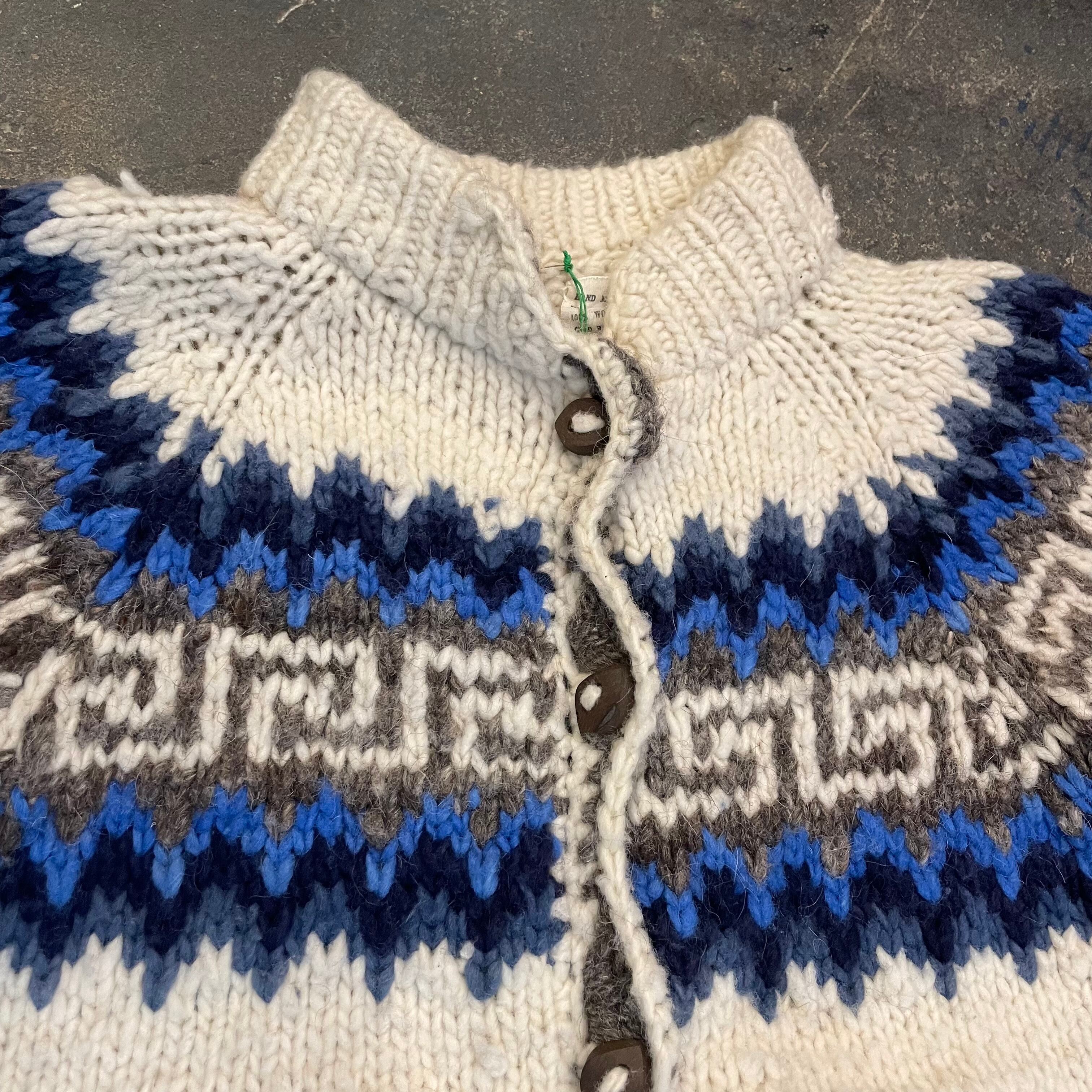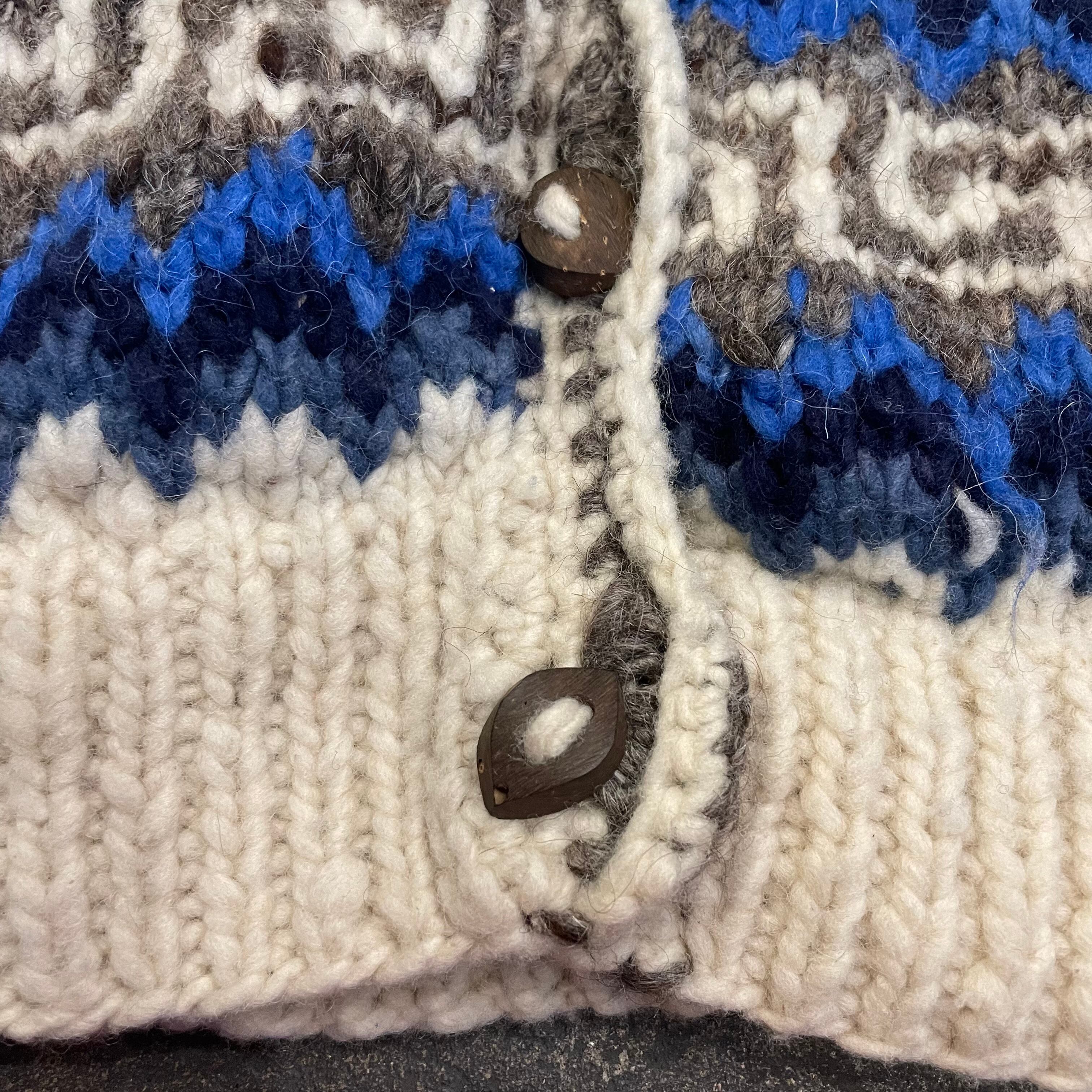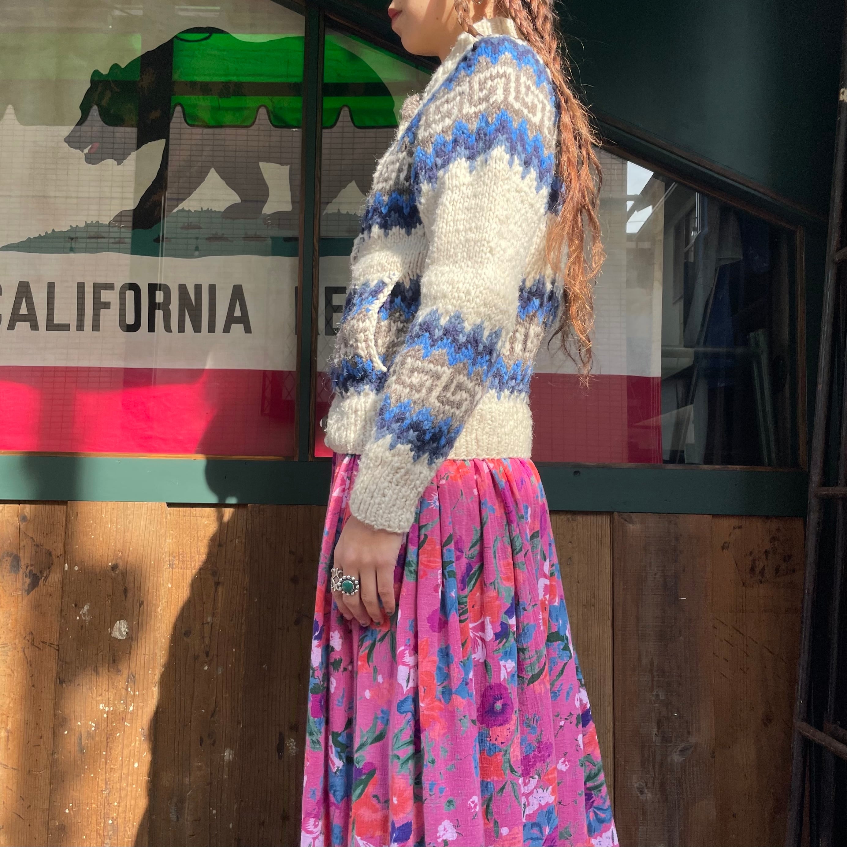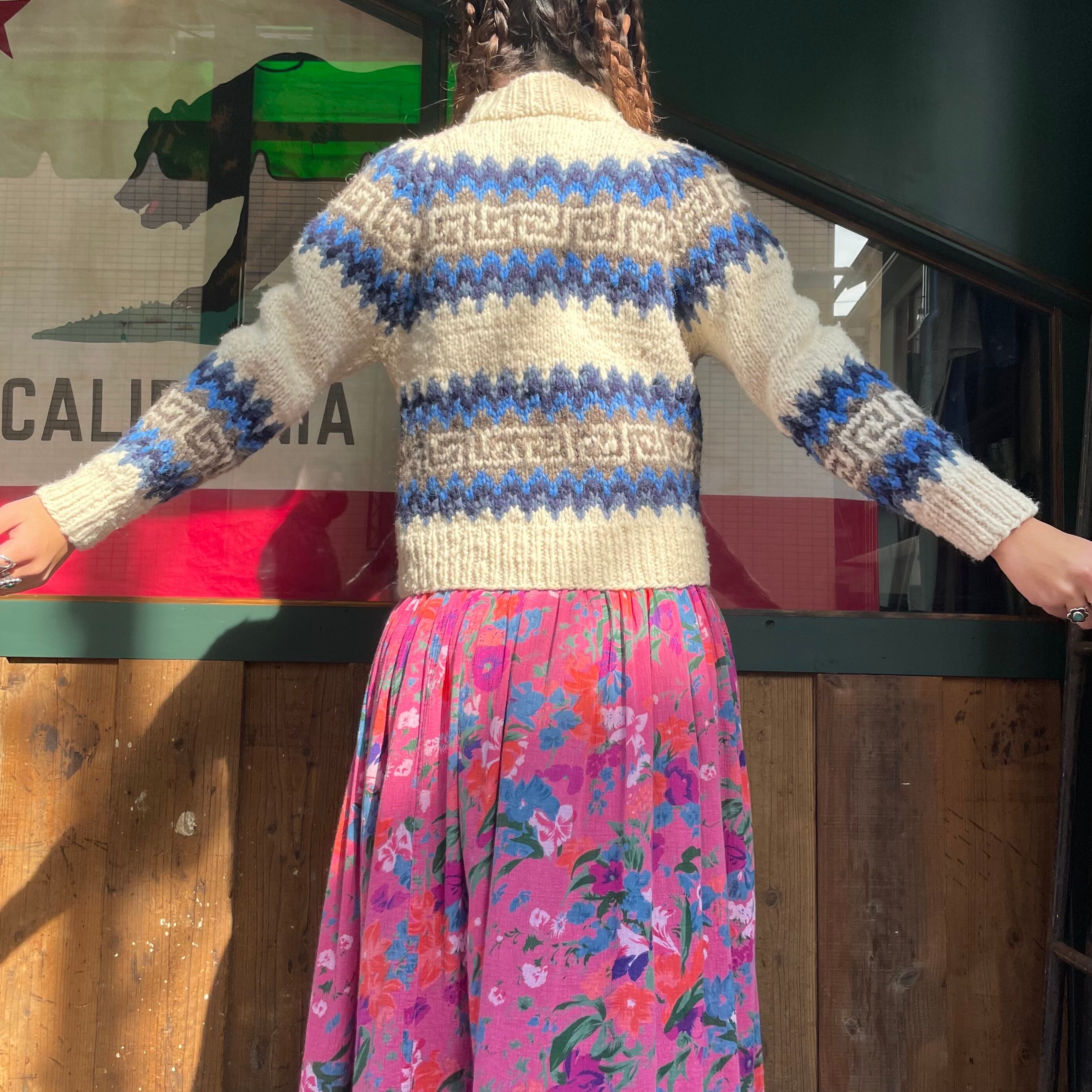 コンパクトなサイズ感がかわいい、エクアドル製手編みのカーディガンです。