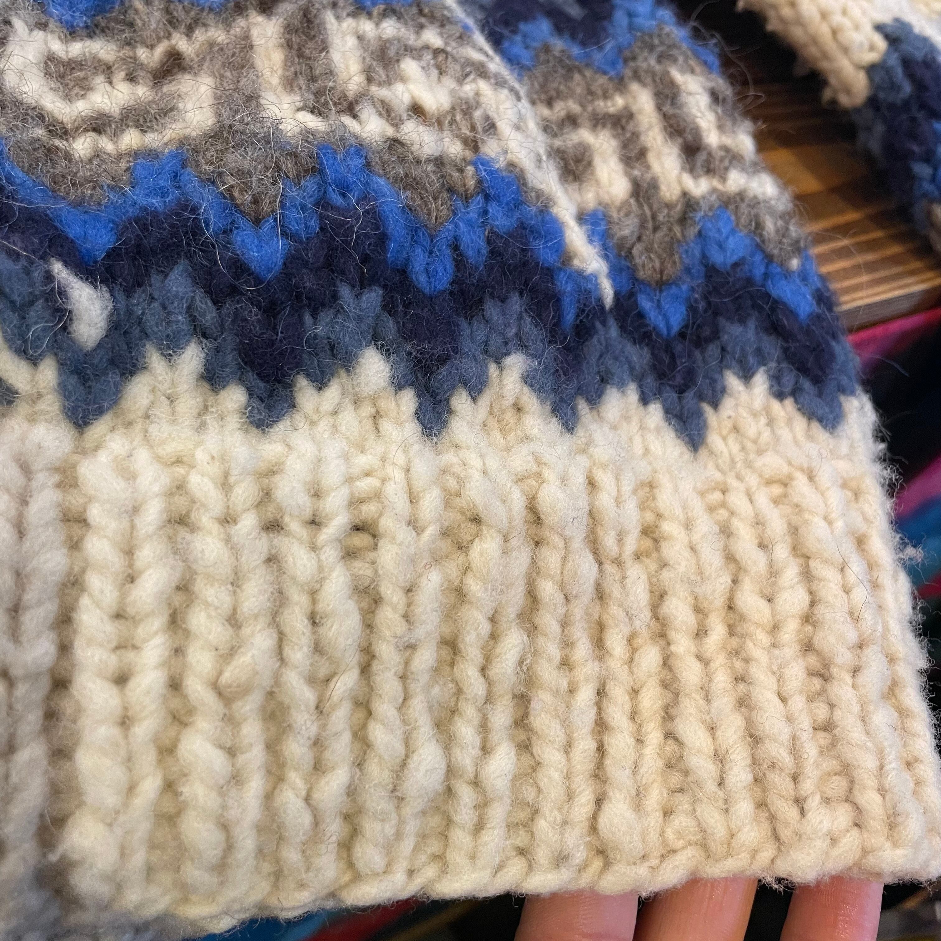 肉厚な毛糸でとても暖かいのにあまり嵩張らないスッキリしたサイズ感が良いですね。