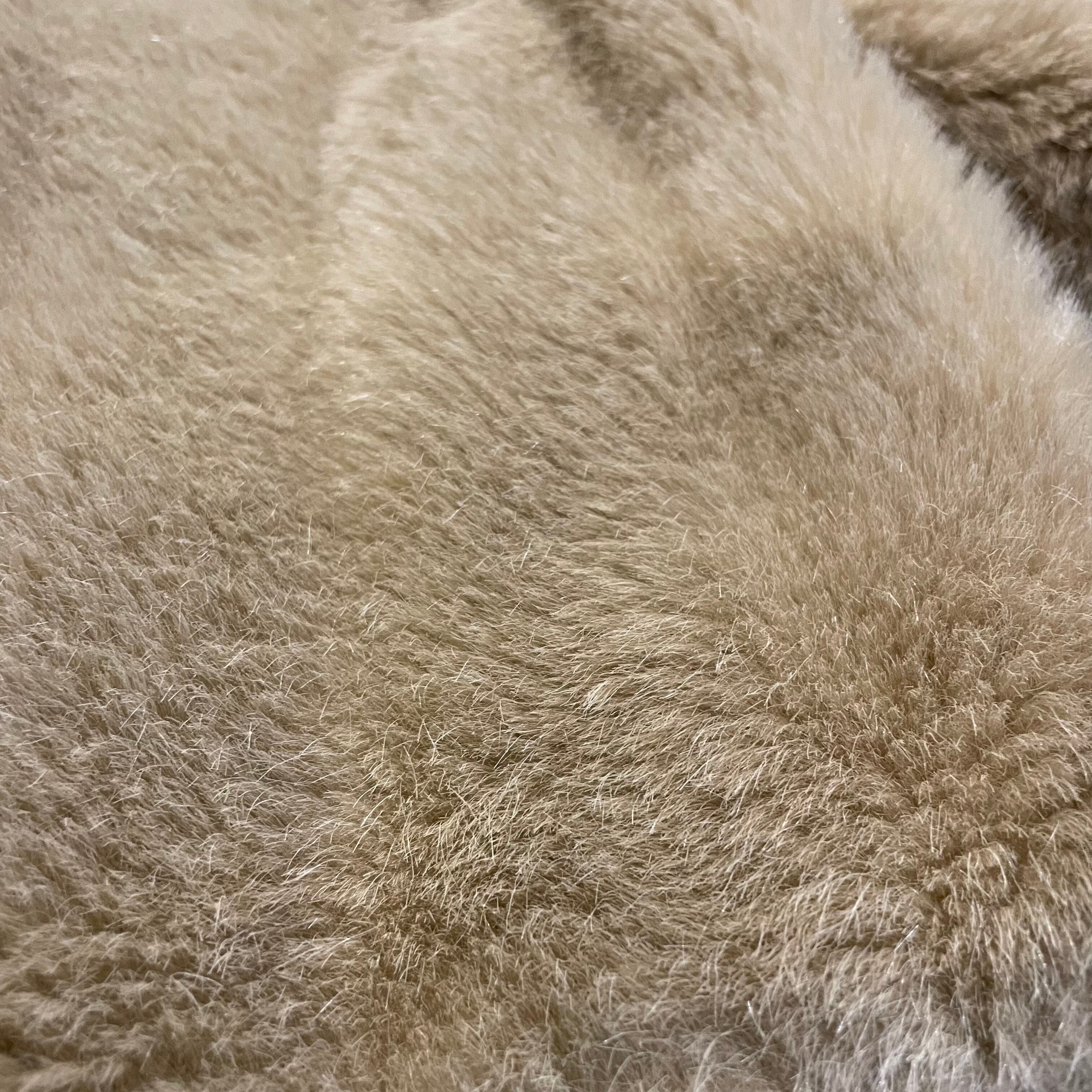 毛足の長めな明るいベージュがゴールデンレトリバーのようでかわいいフェイクファーコートです。