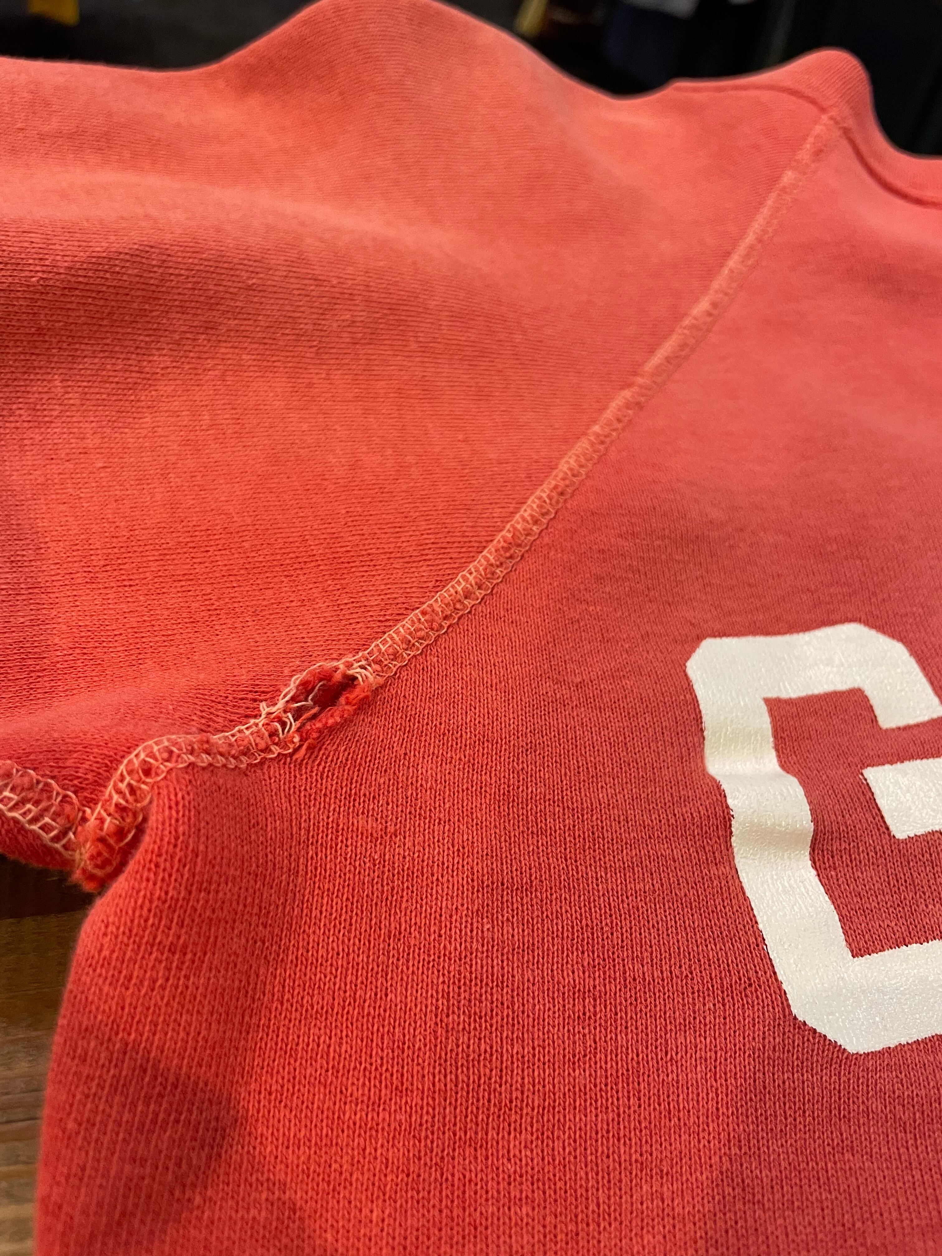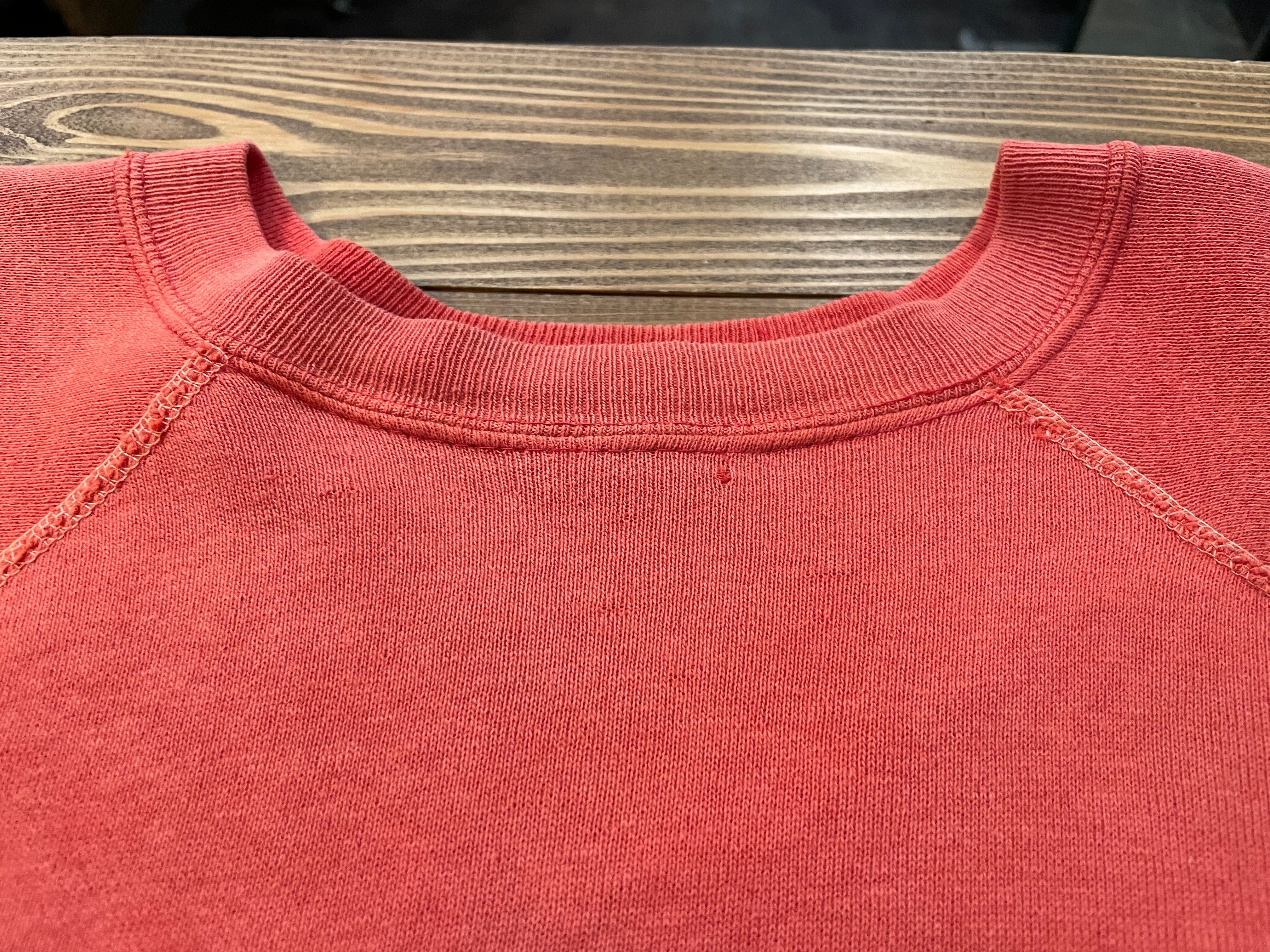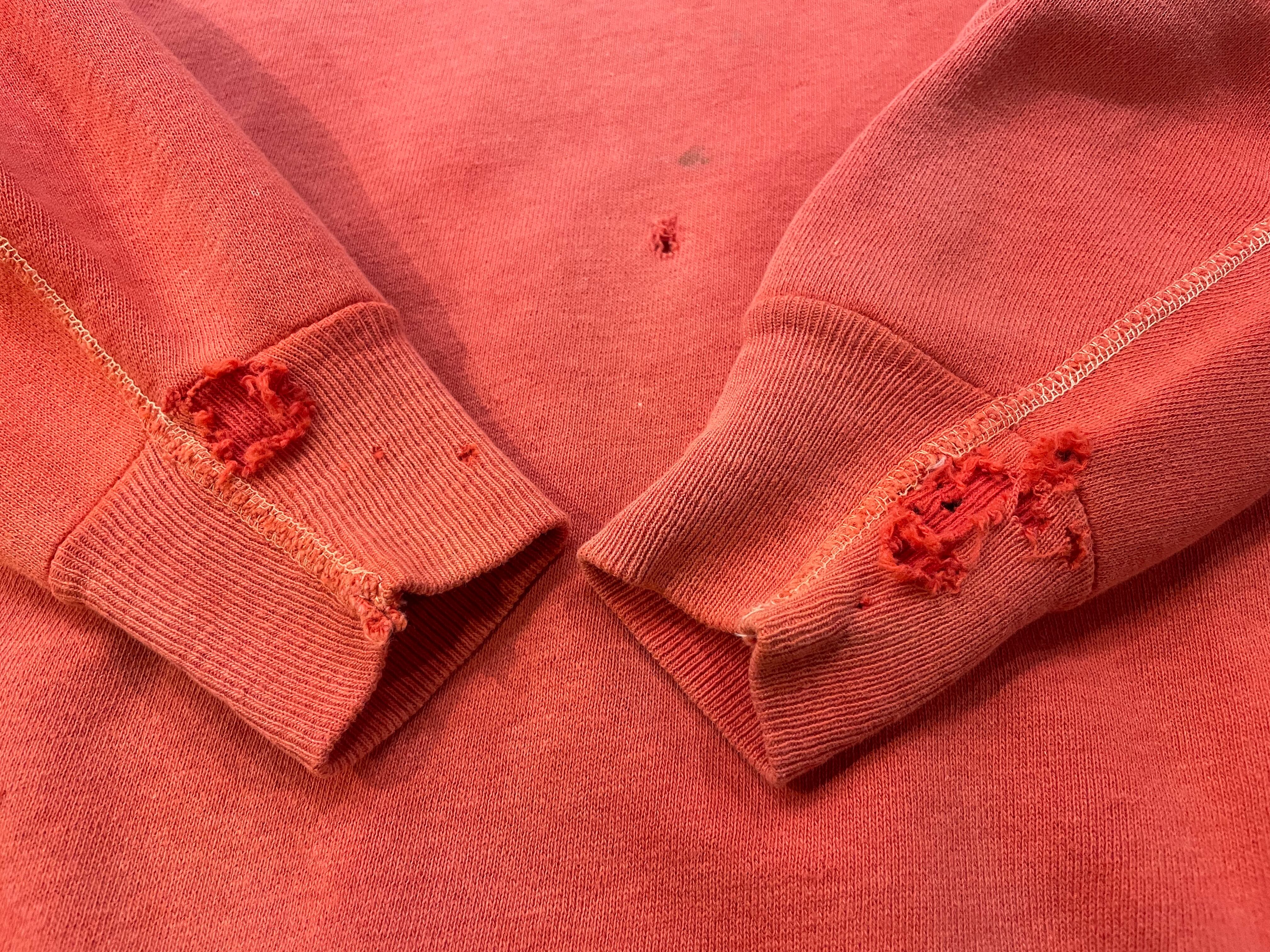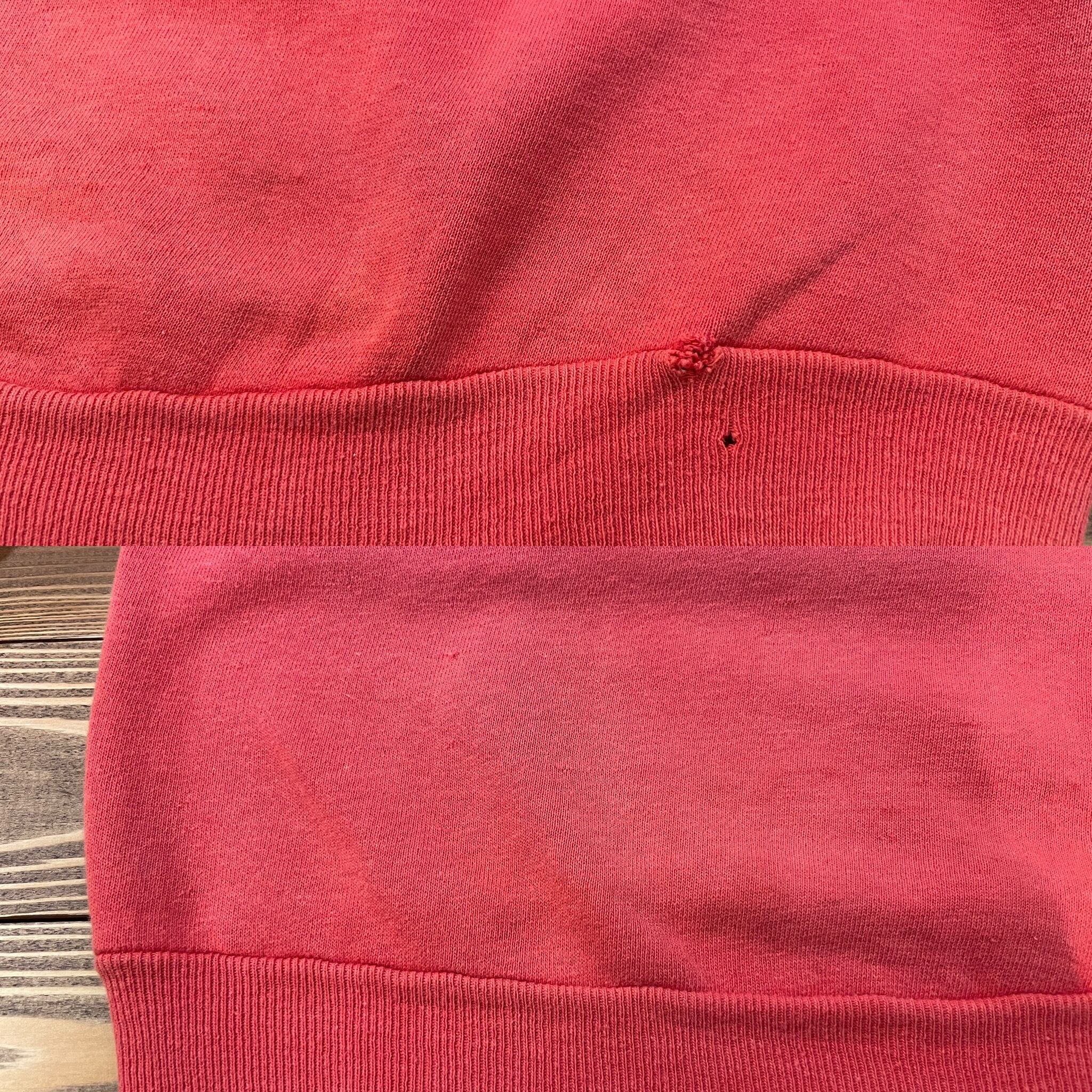 赤の色褪せた色味やダメージがとても良い感じの70年代のスウェットです。