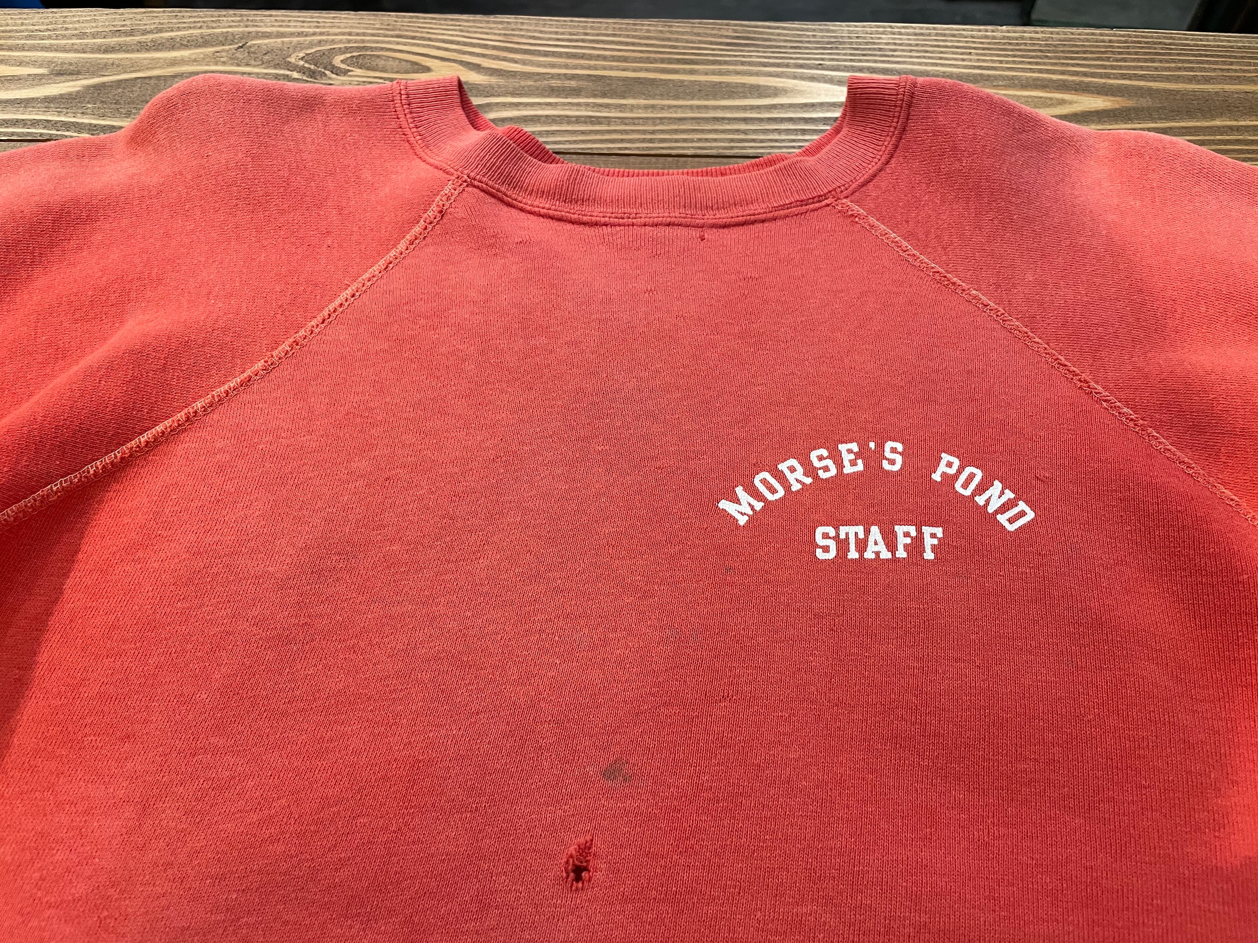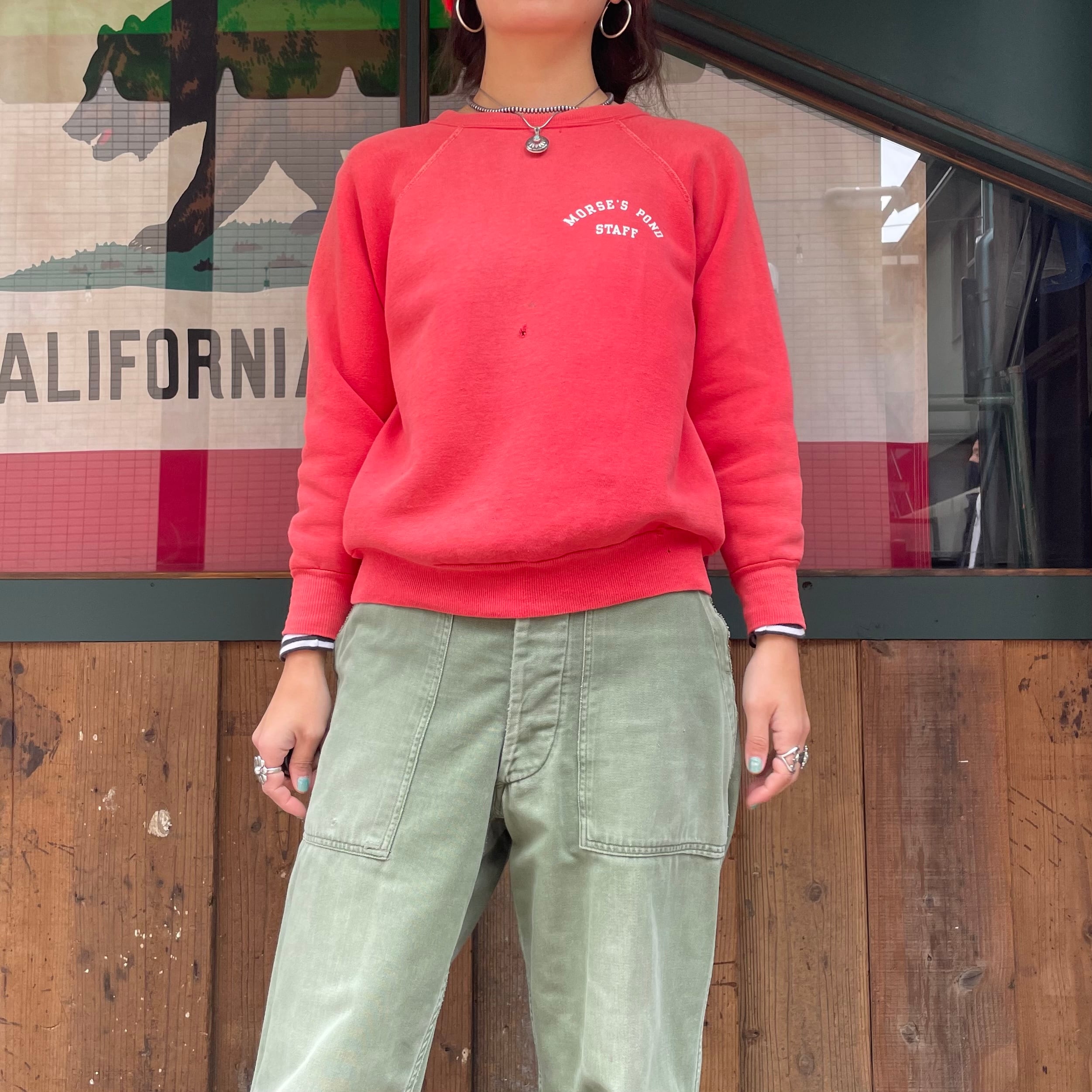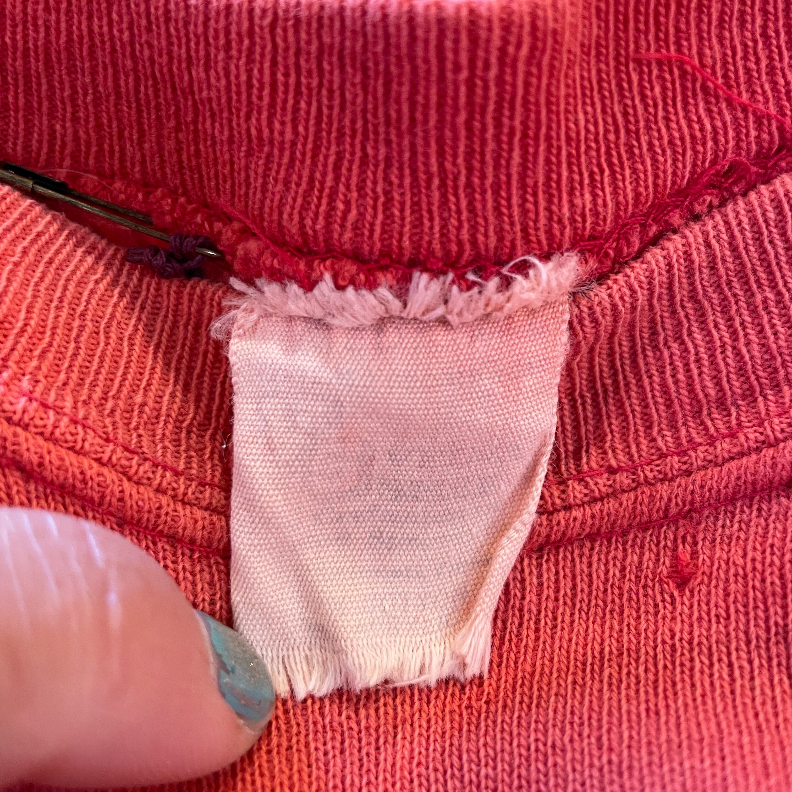 赤の色褪せた色味やダメージがとても良い感じの70年代のスウェットです。