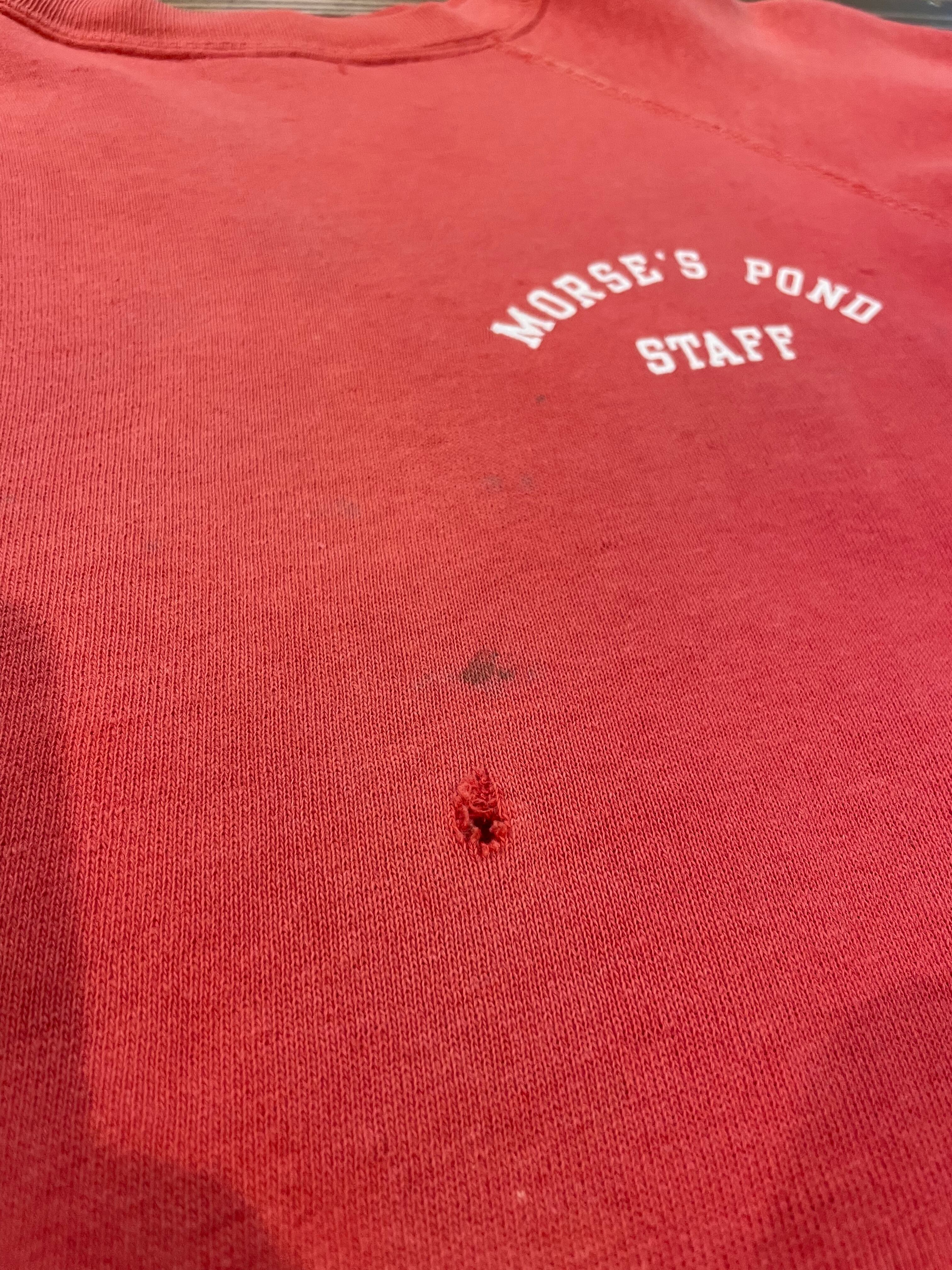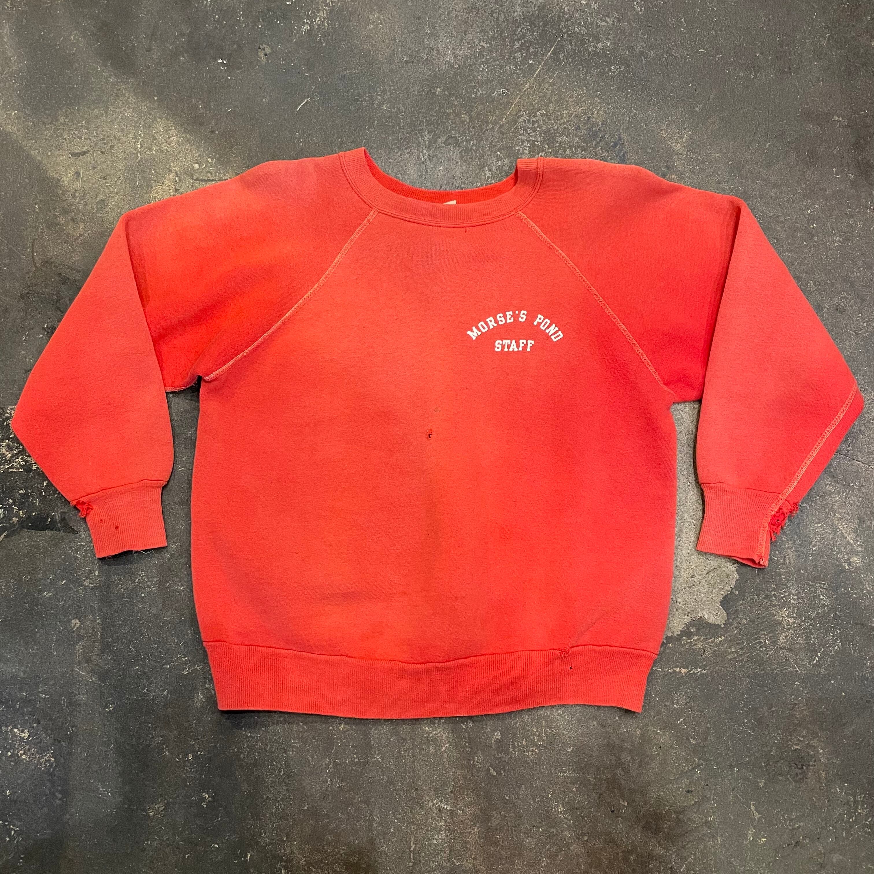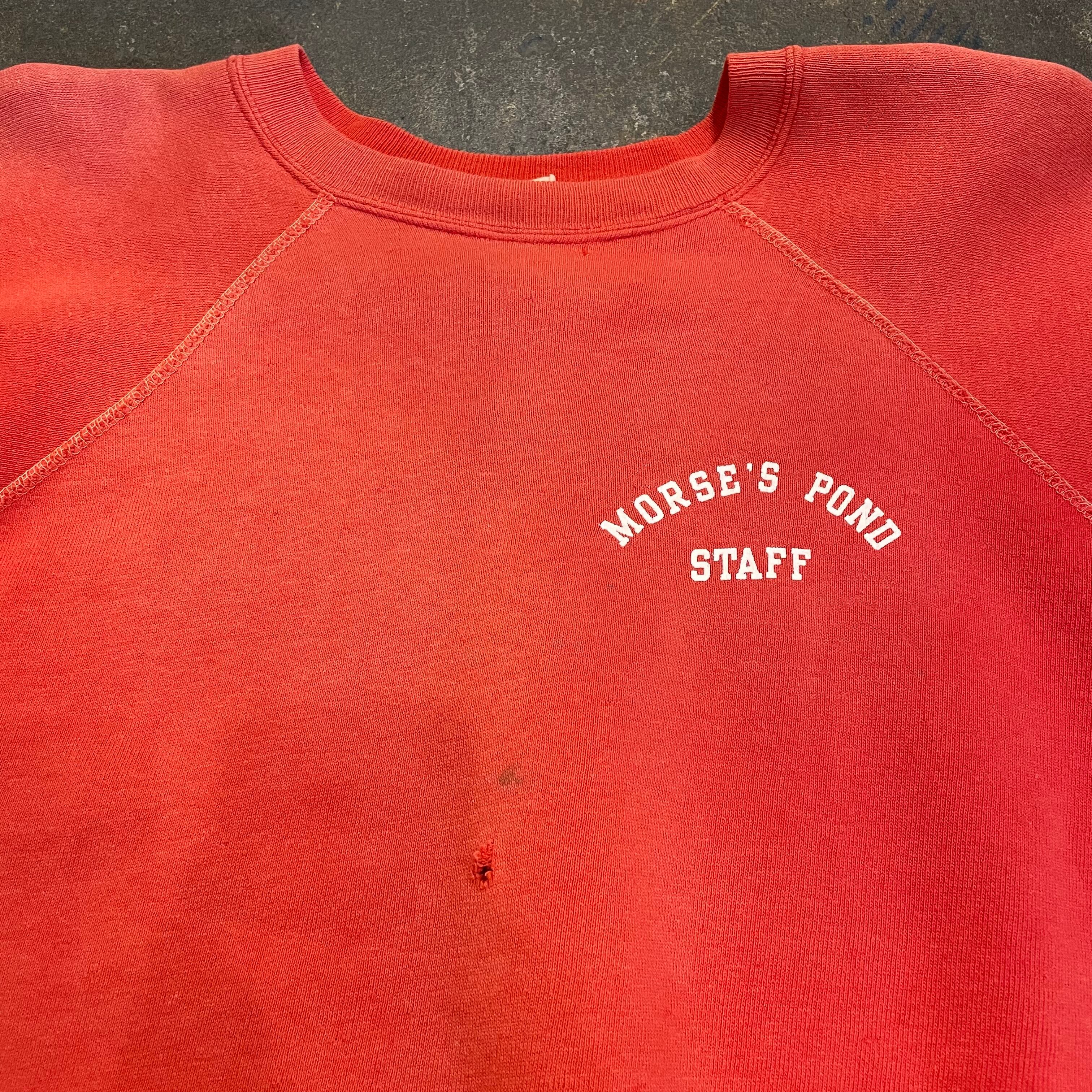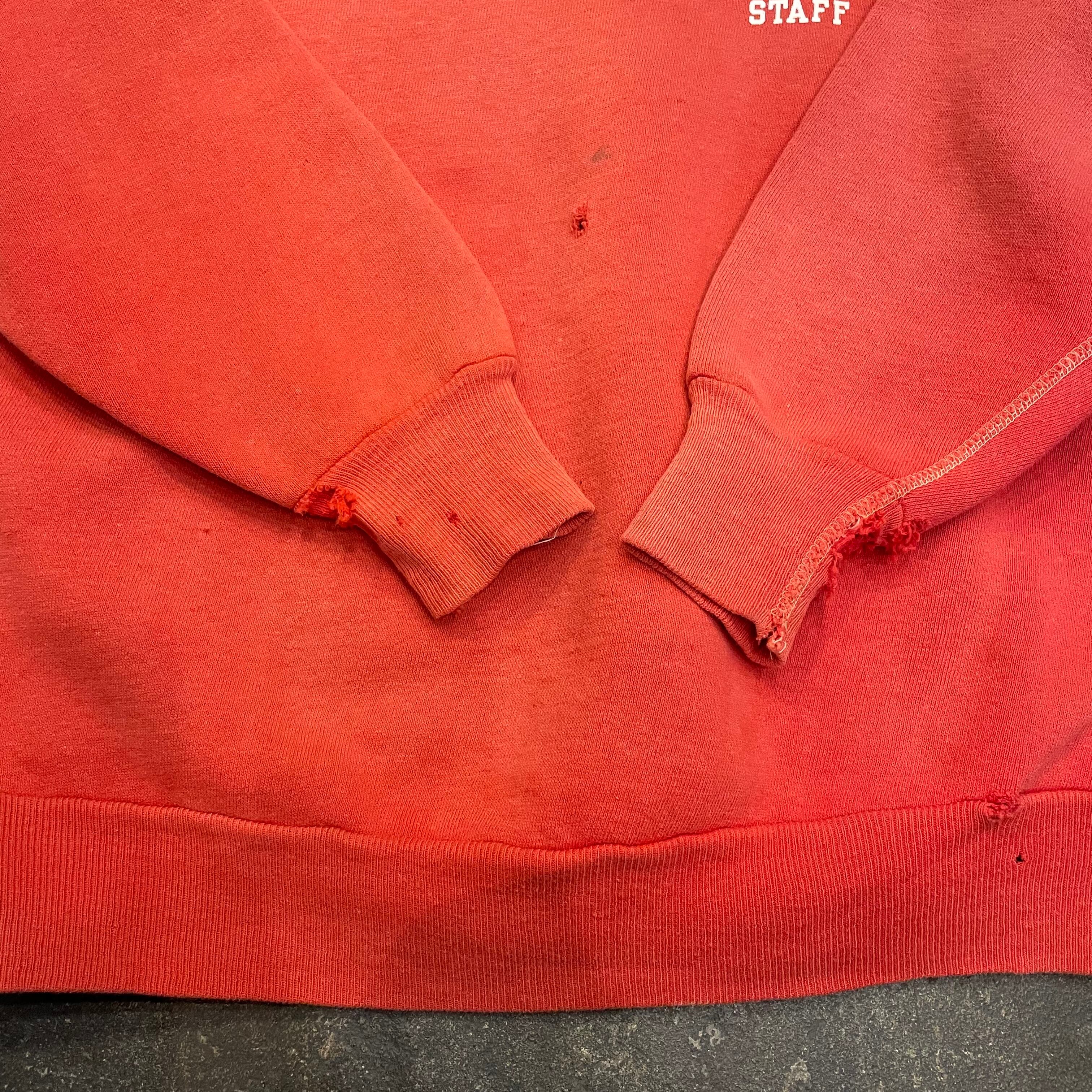赤の色褪せた色味やダメージがとても良い感じの70年代のスウェットです。