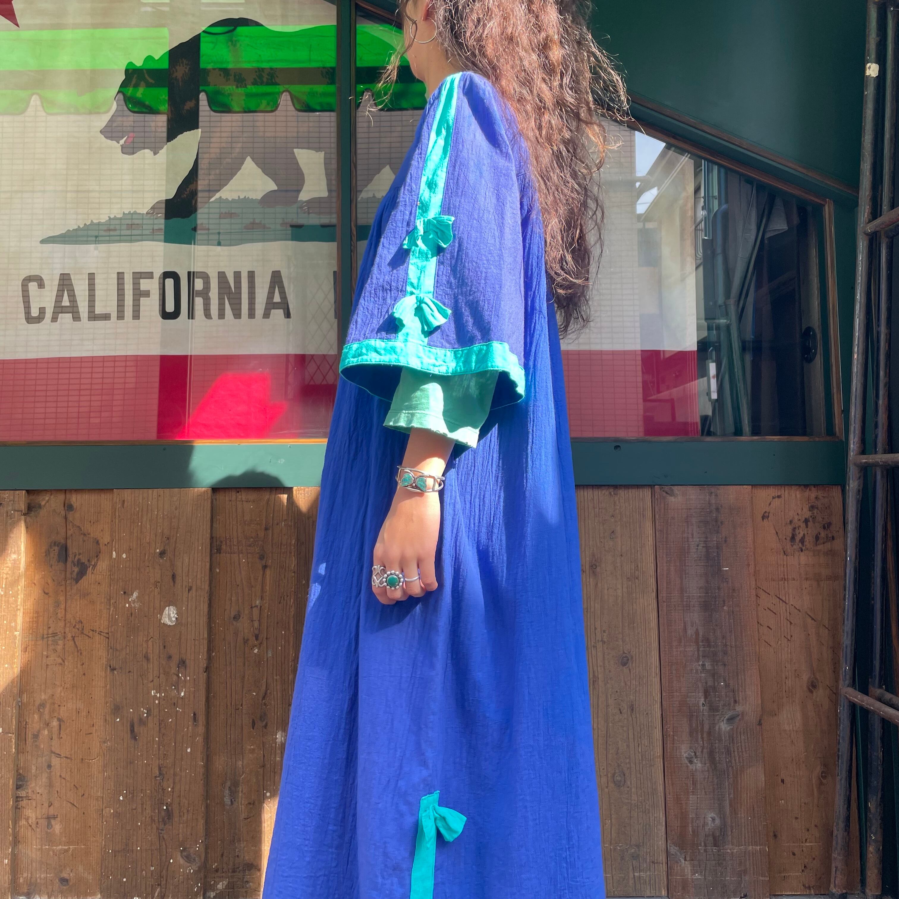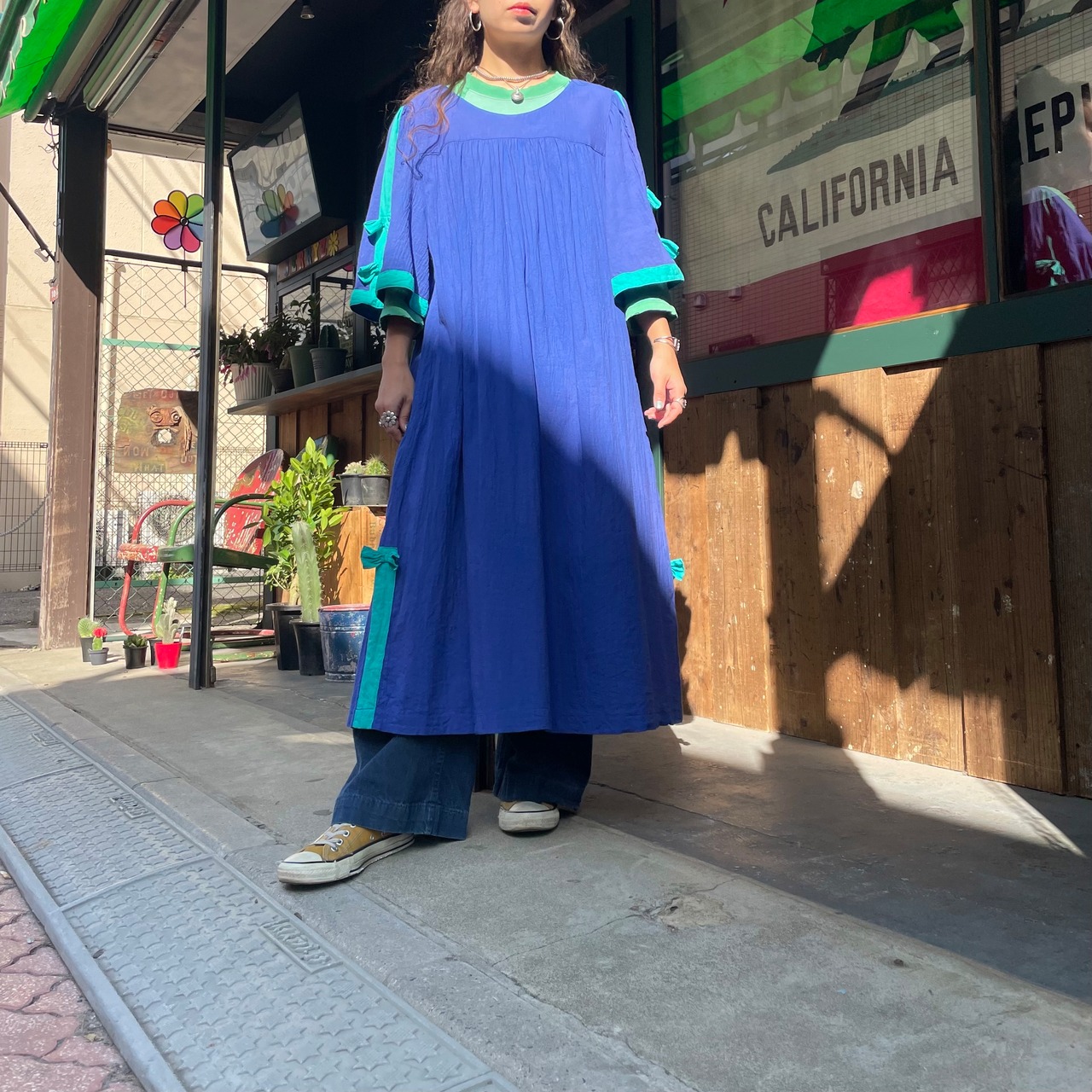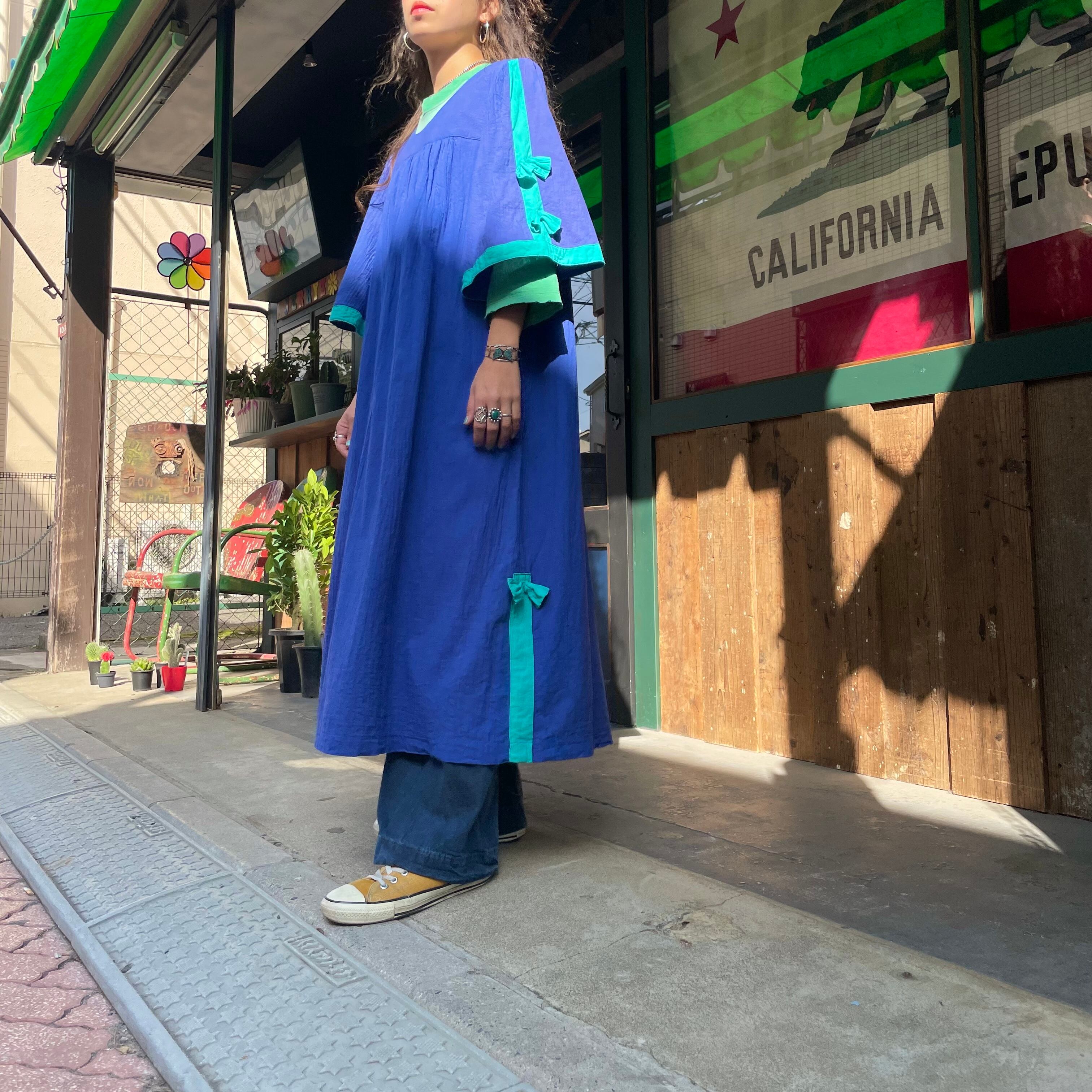 エメラルドグリーンの切り替えとリボンがかわいいのに、ラブリー過ぎず緩い雰囲気で良いですね。