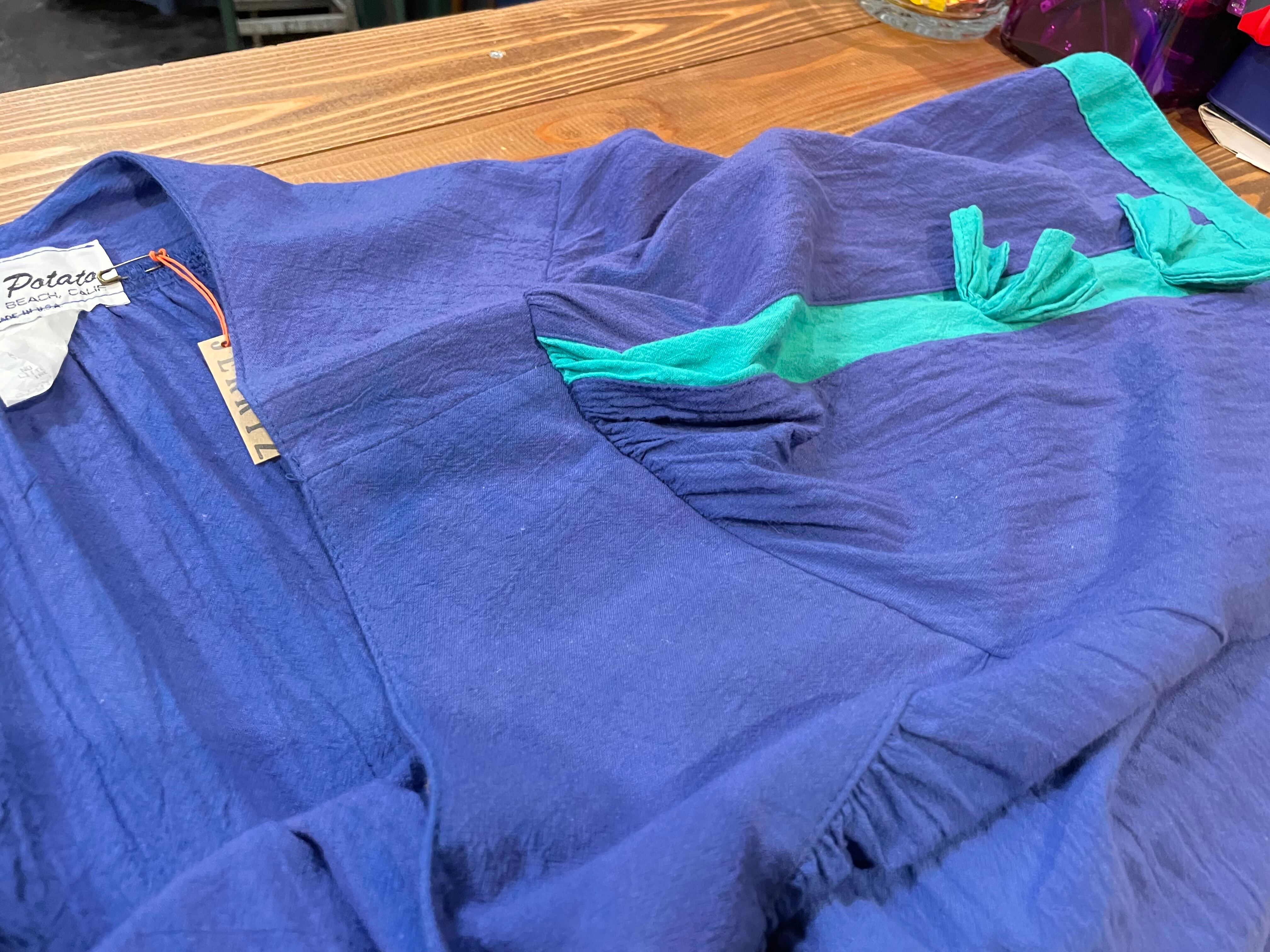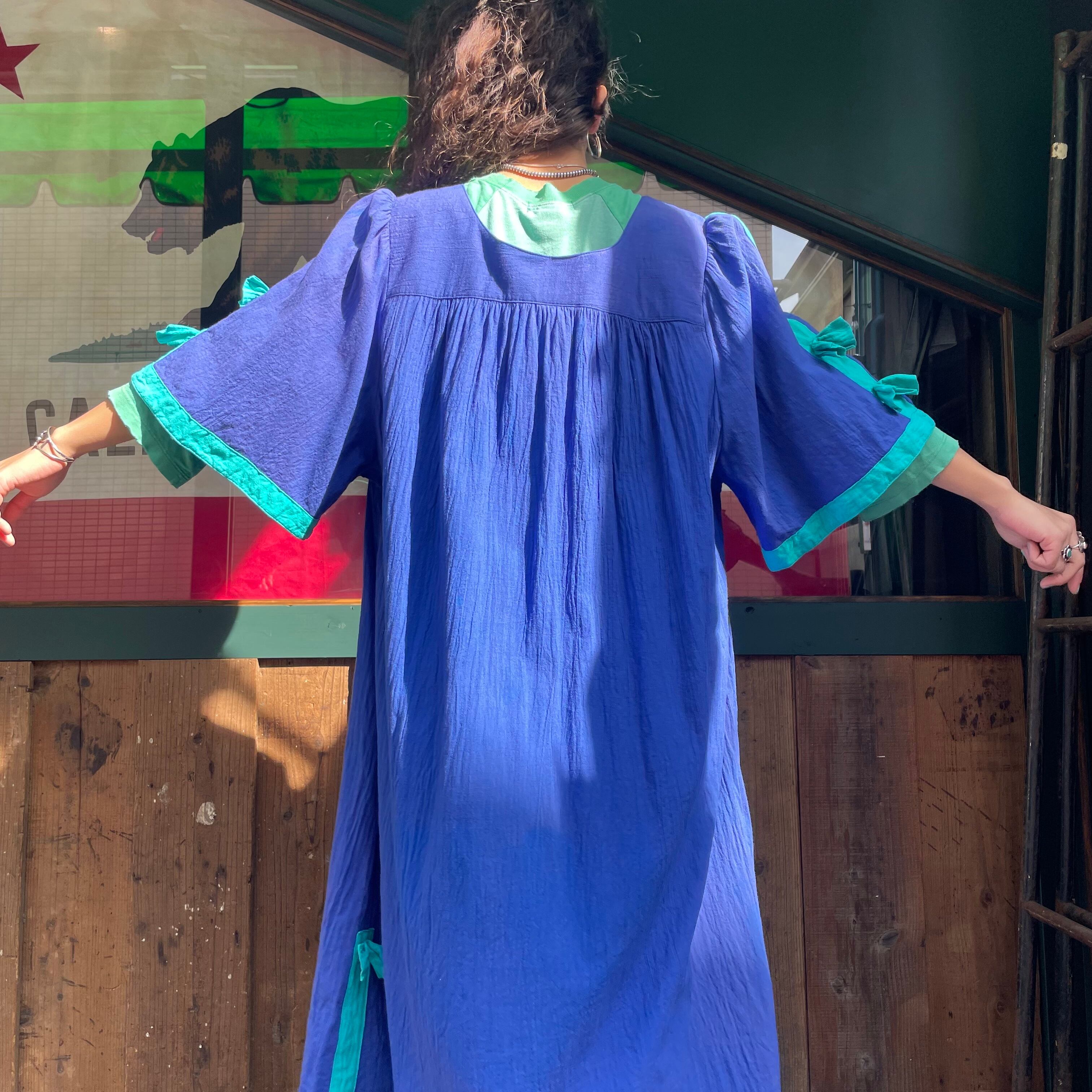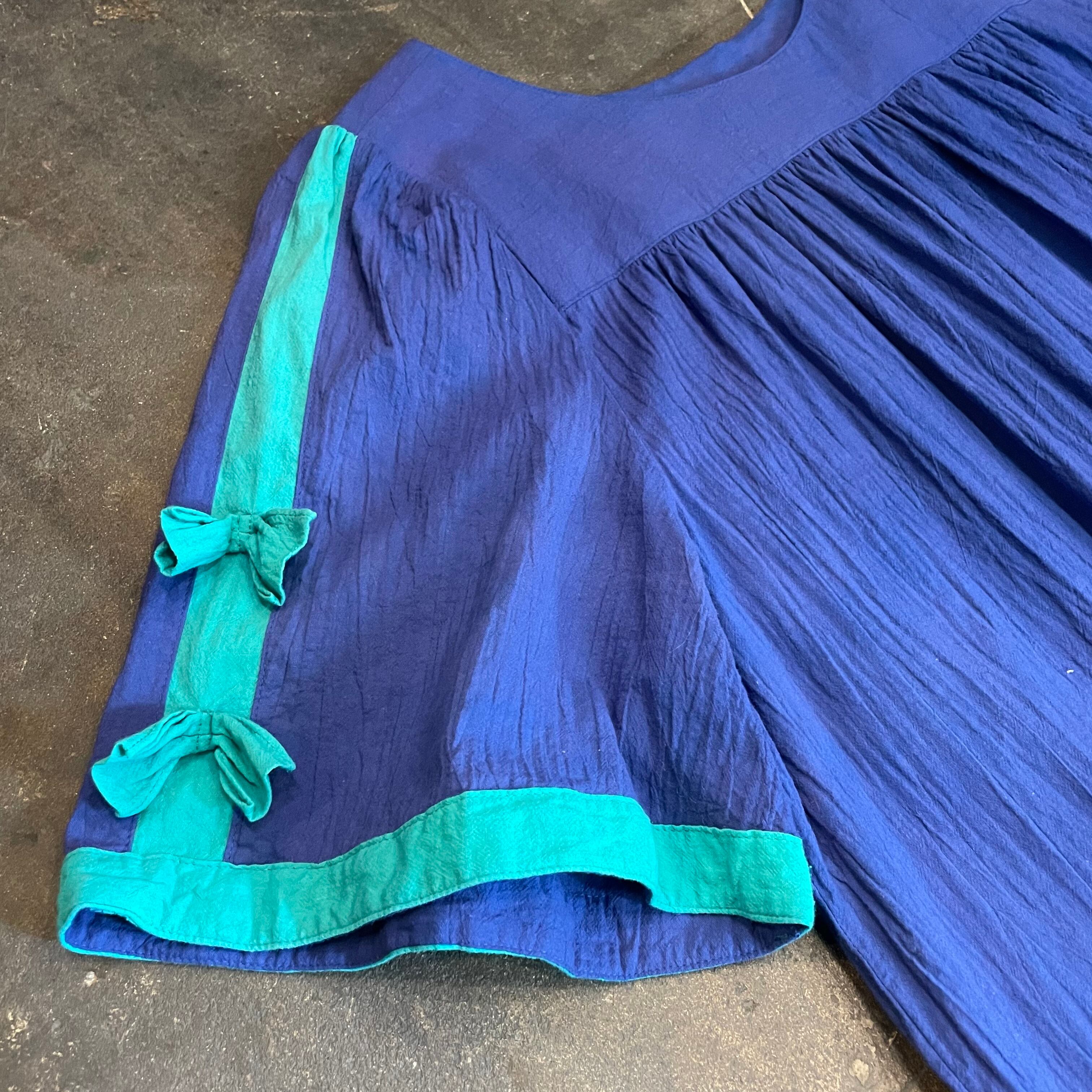 エメラルドグリーンの切り替えとリボンがかわいいのに、ラブリー過ぎず緩い雰囲気で良いですね。